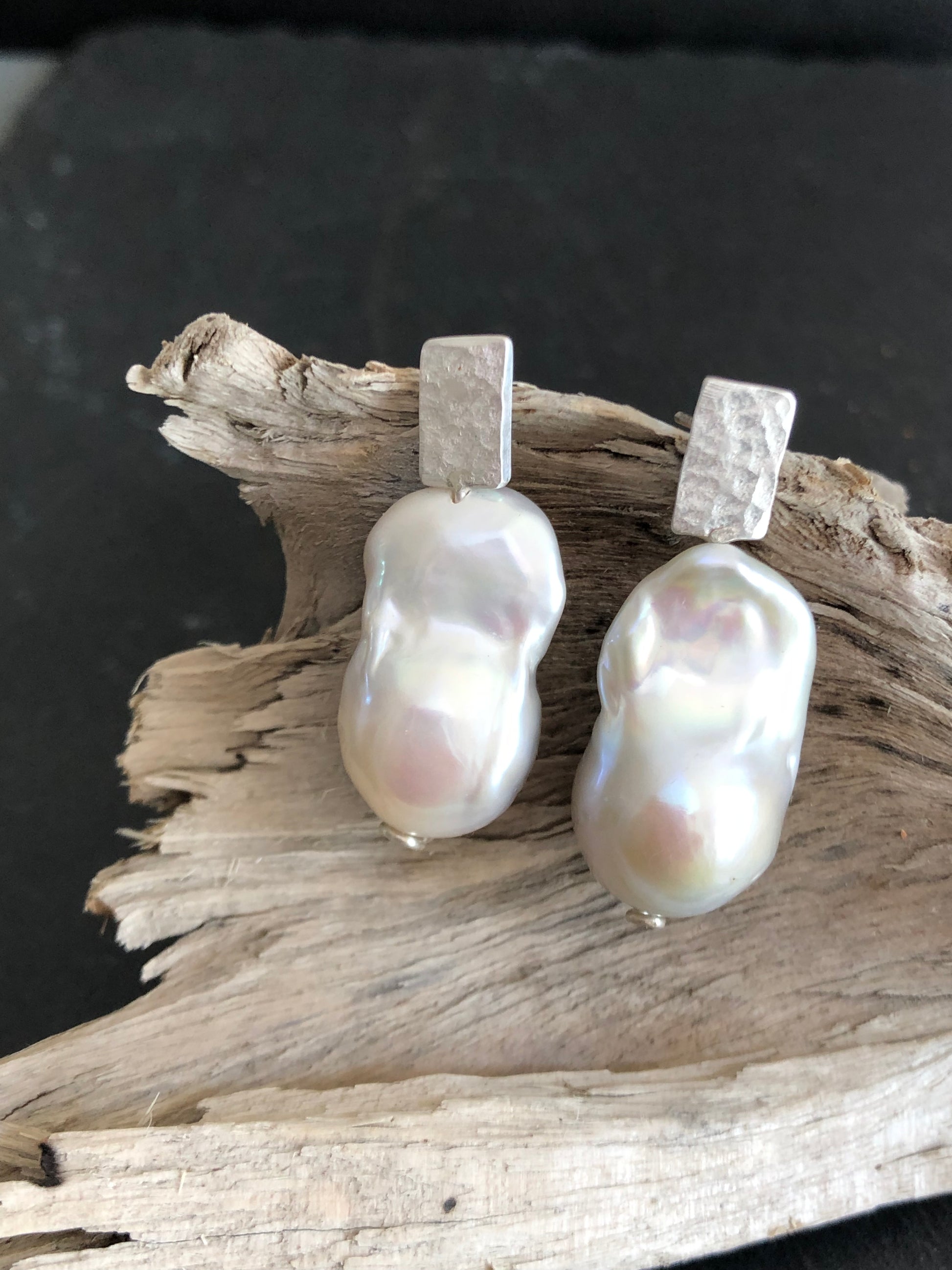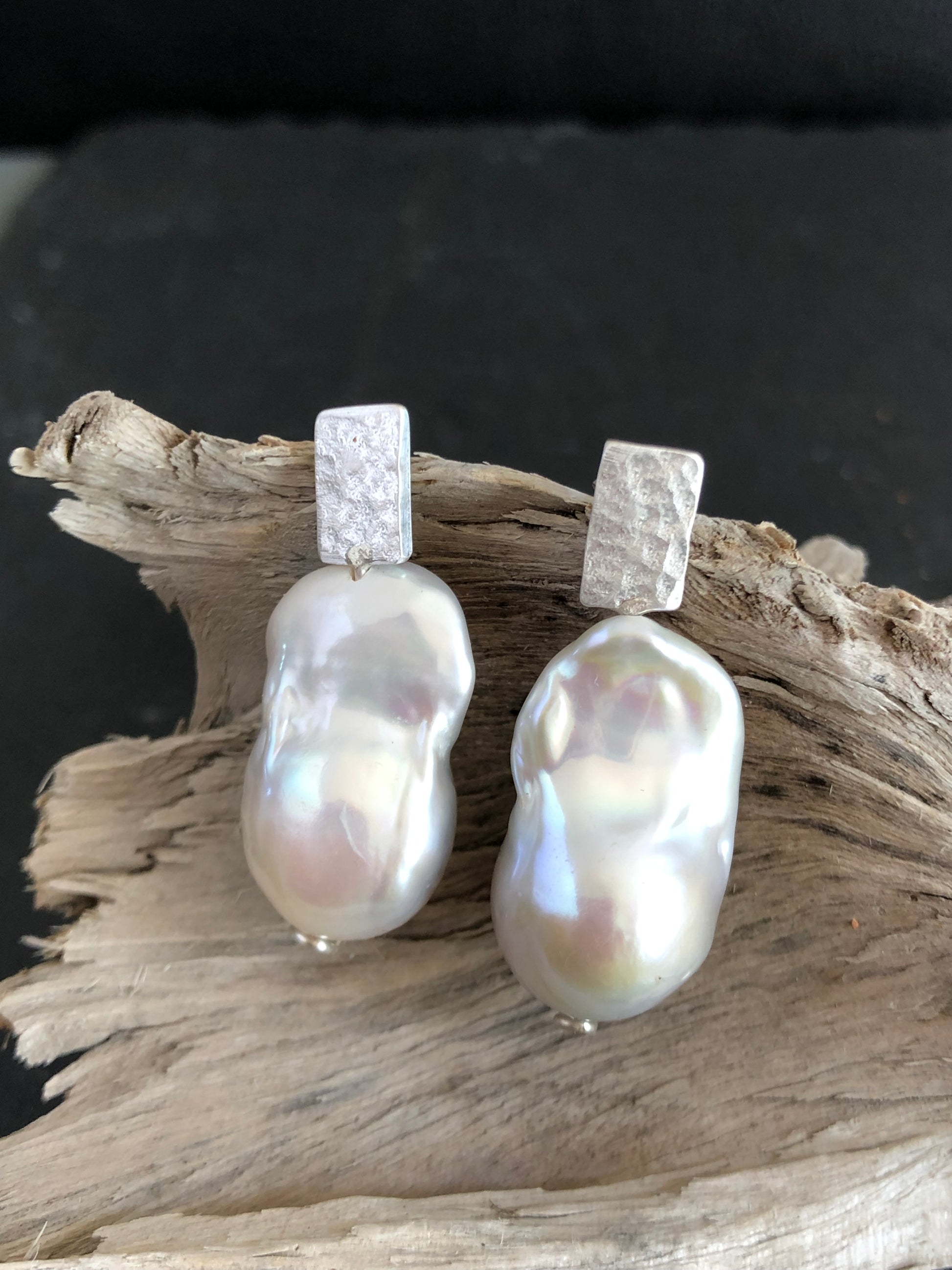 Hand shaped and hammered on fine silver, every pair will be slightly different in shape and color.