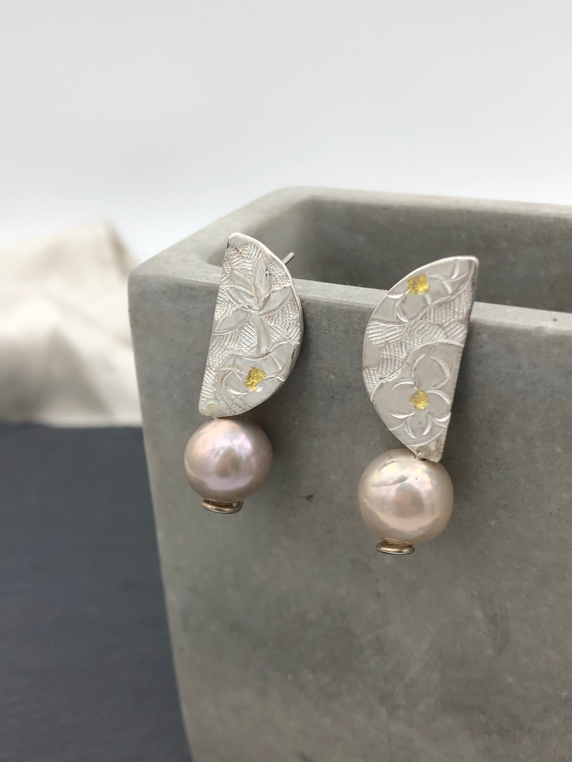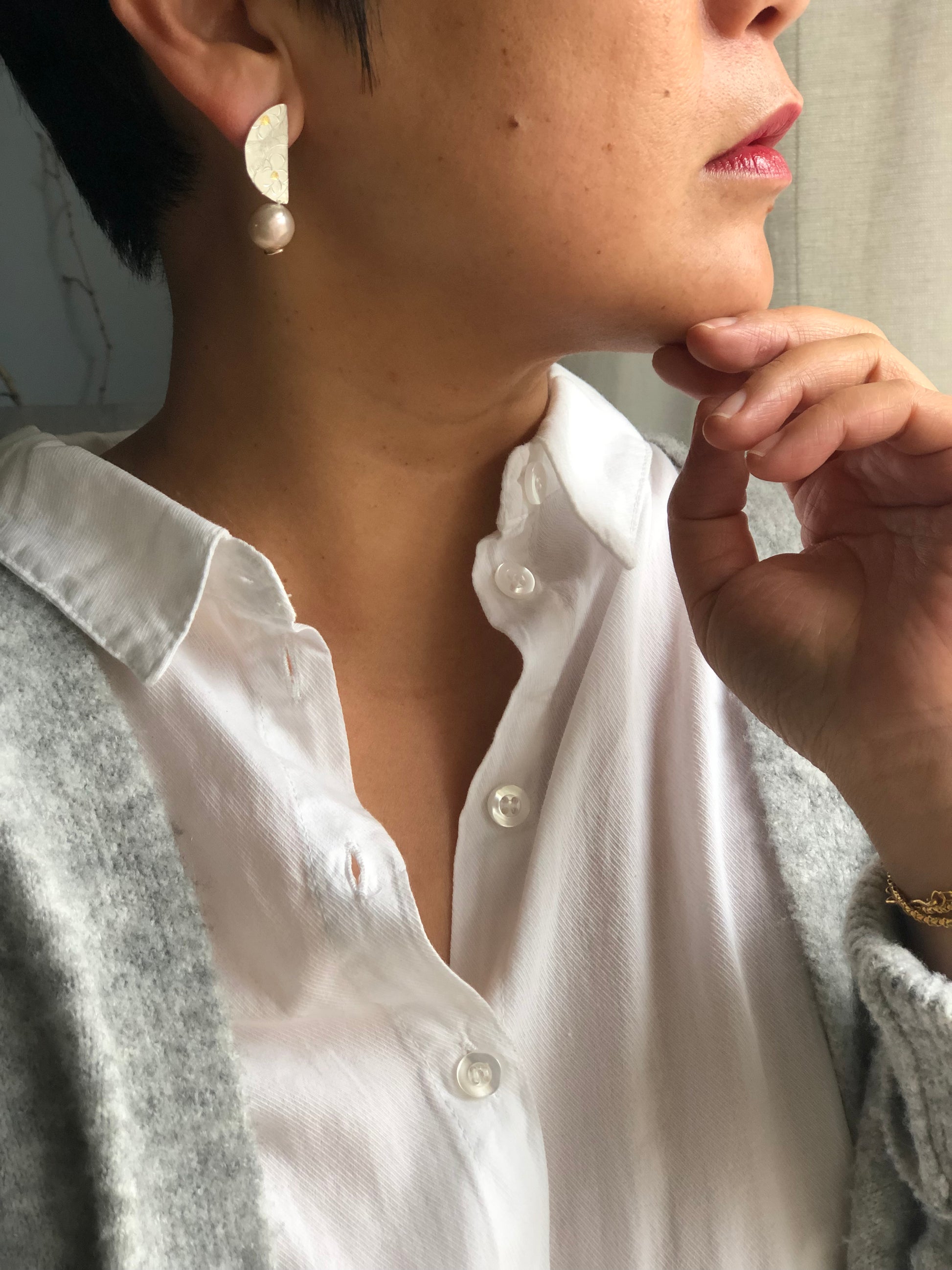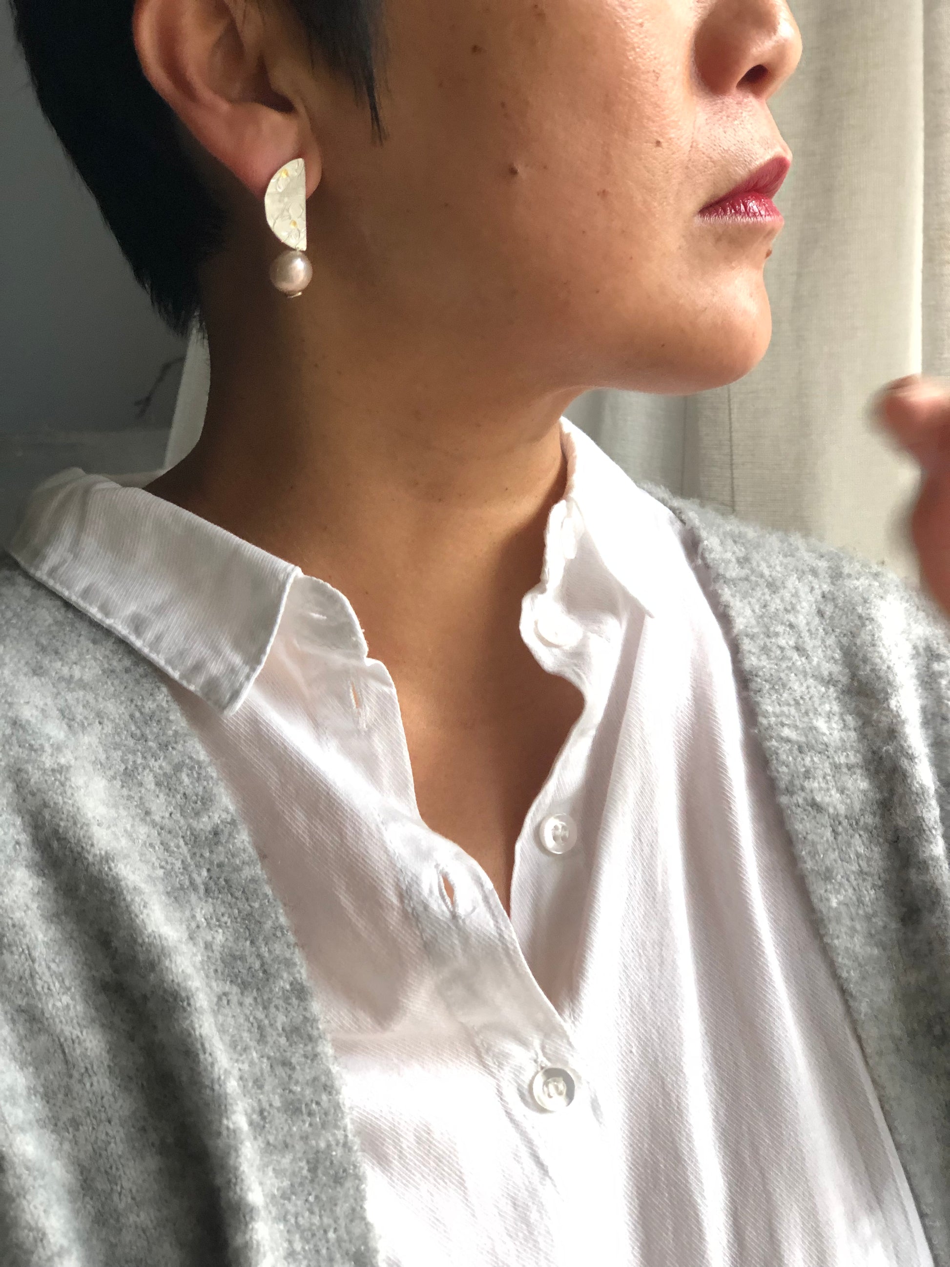 Materials : Fine silver, fine gold, fresh water pearl