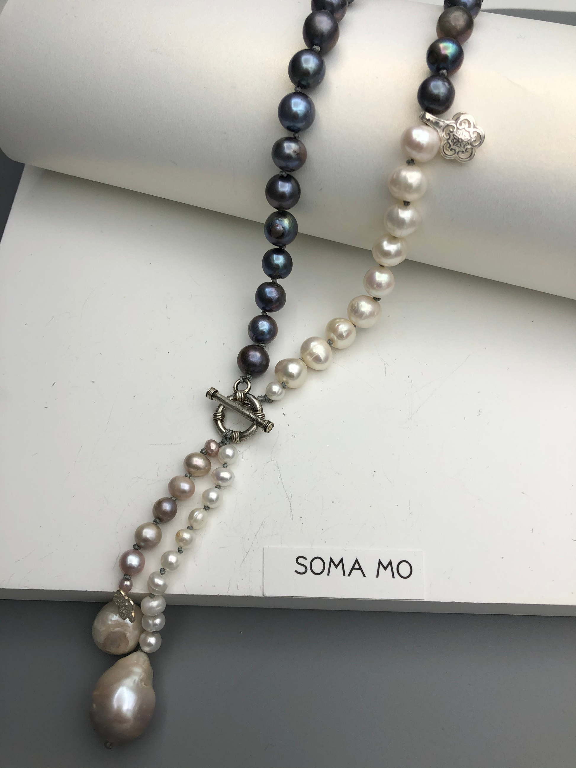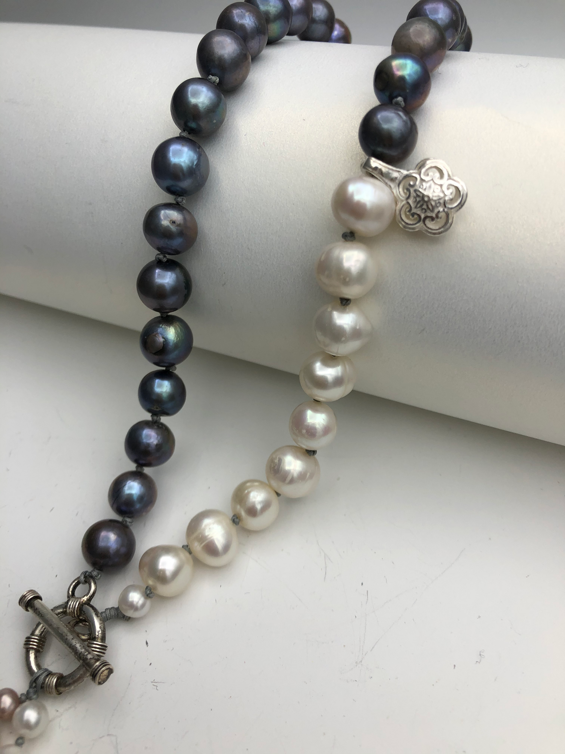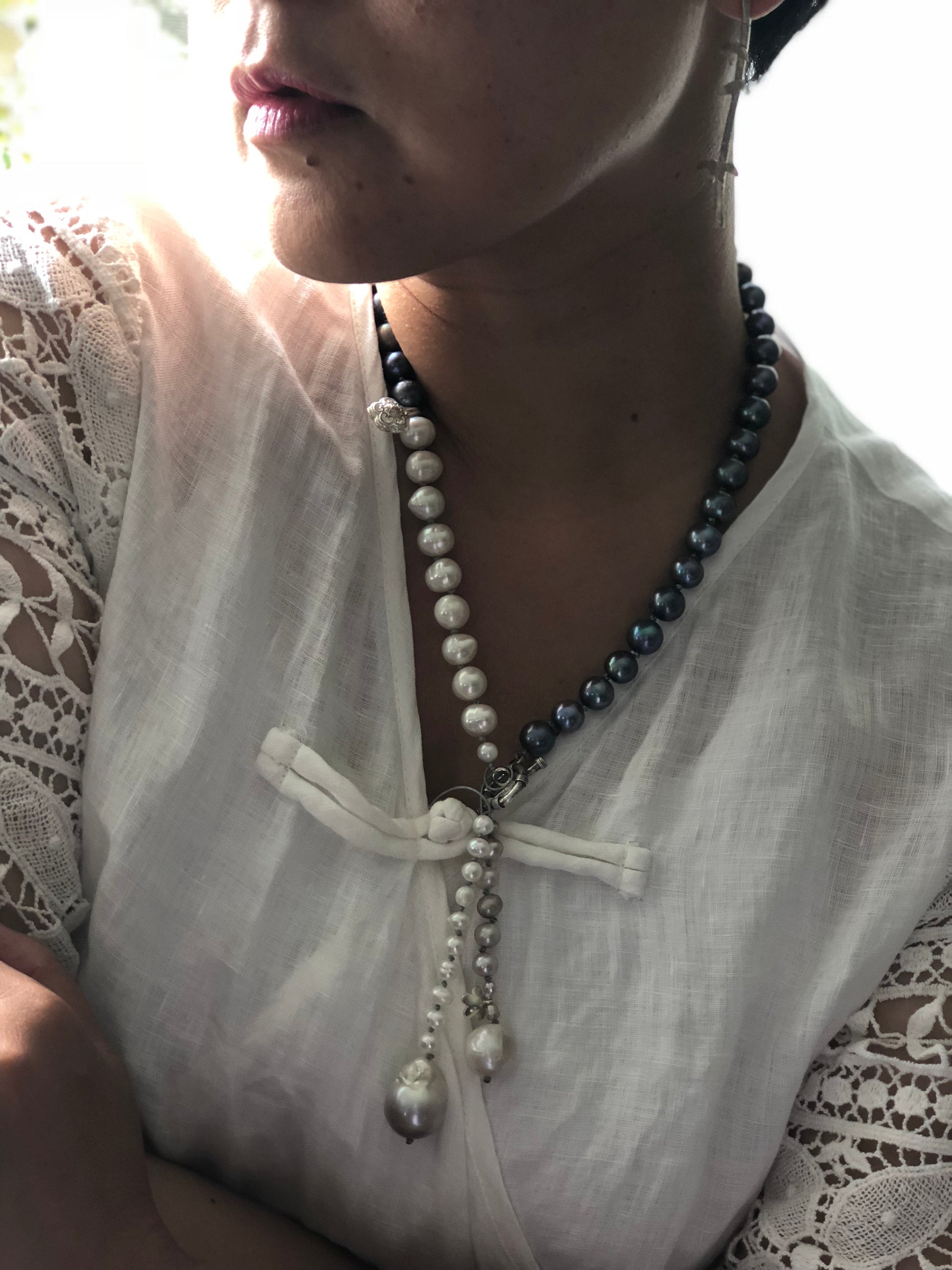 Classic black and white . Hand knotted between each beads, can be resized for special request.