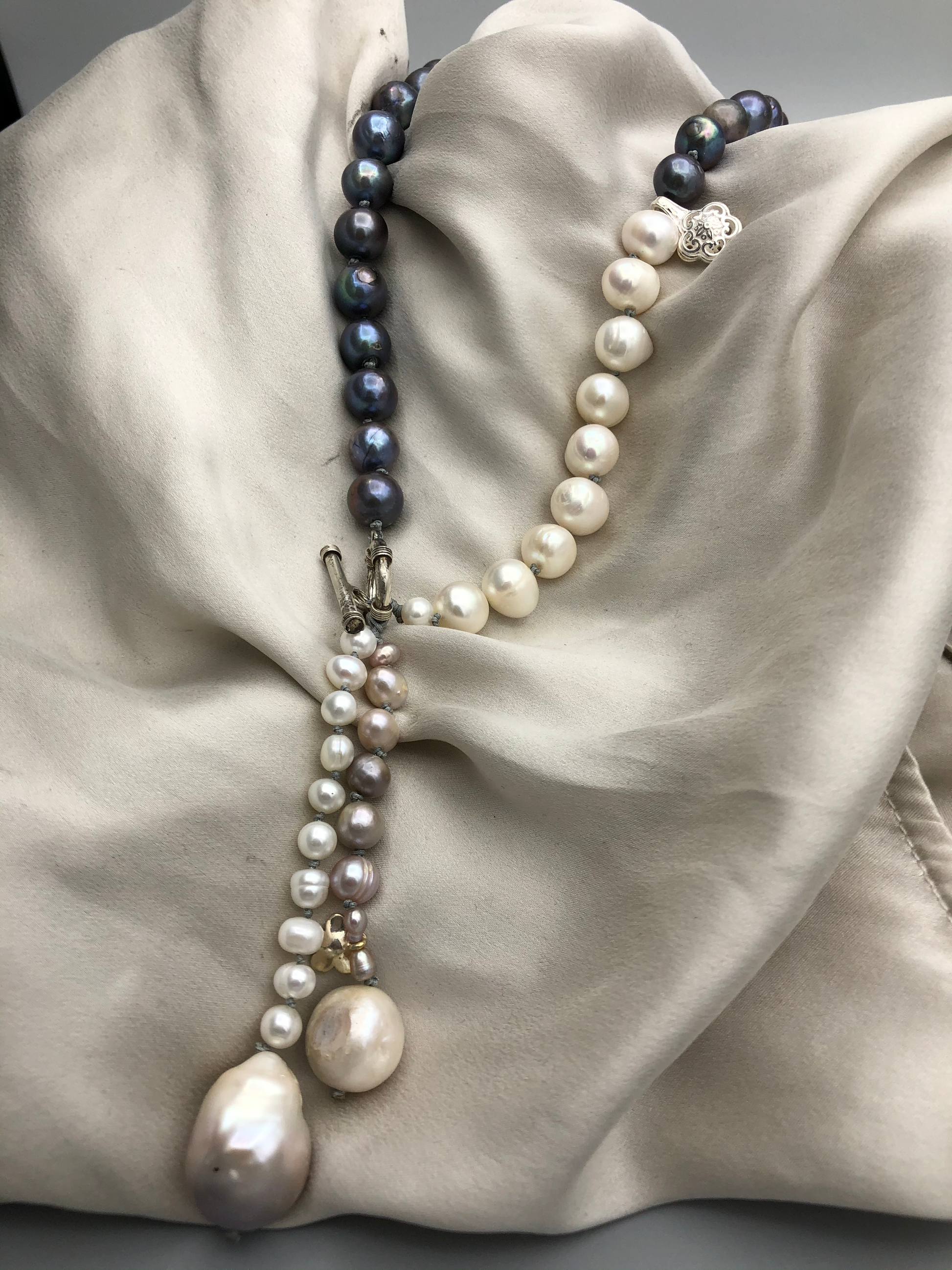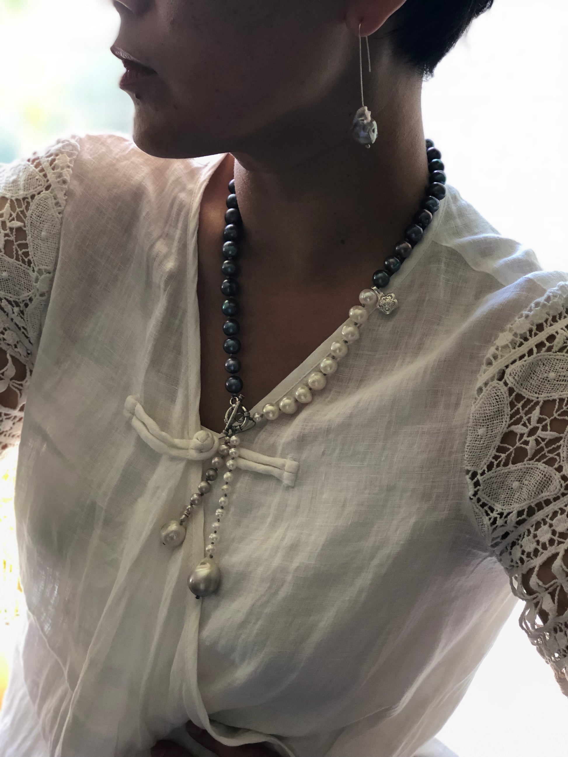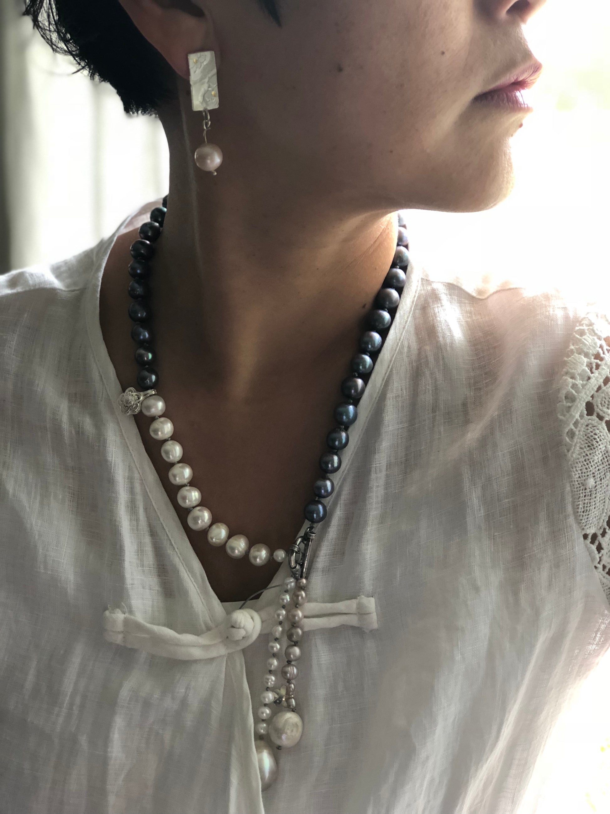 Classic black and white . Hand knotted between each beads, can be resized for special request.