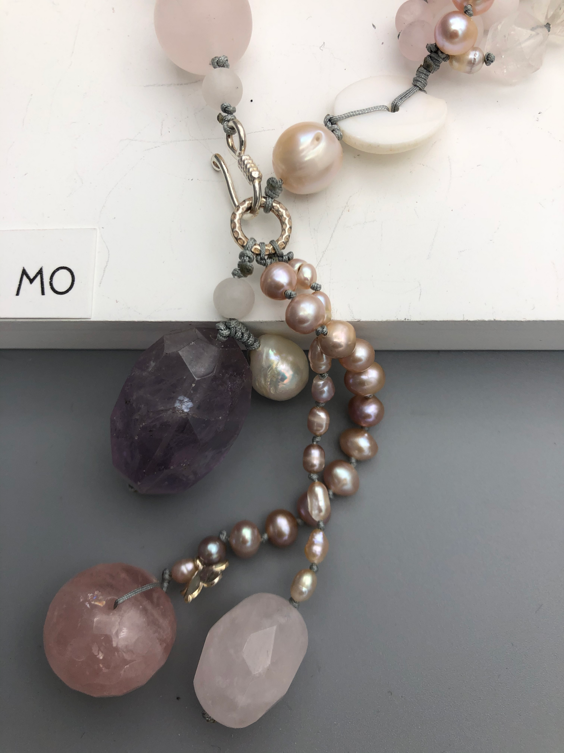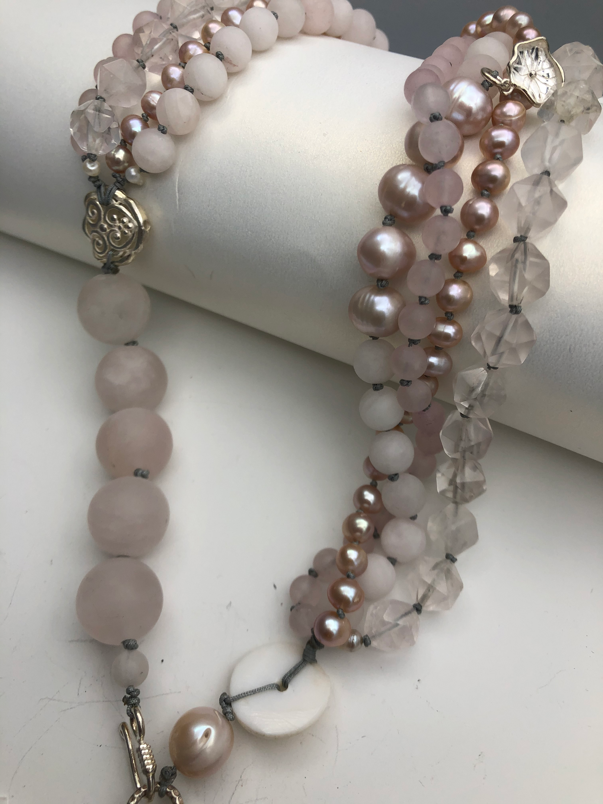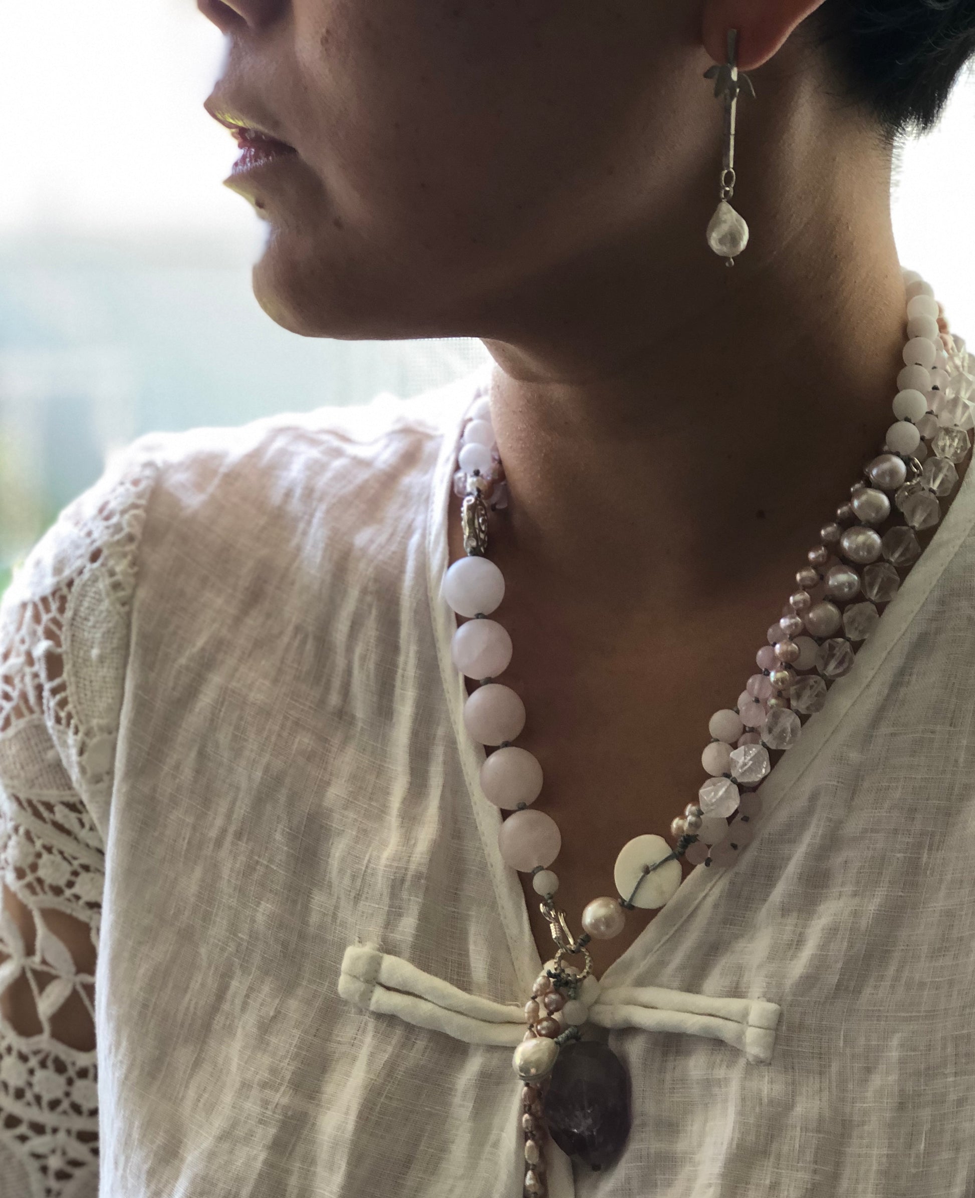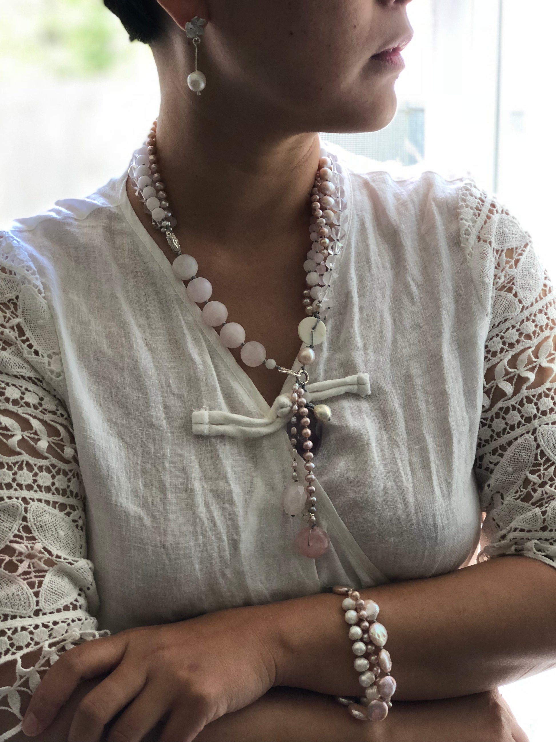Materials : Rose quartz, fresh water pearl, amethyst , quartz.