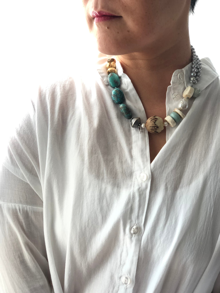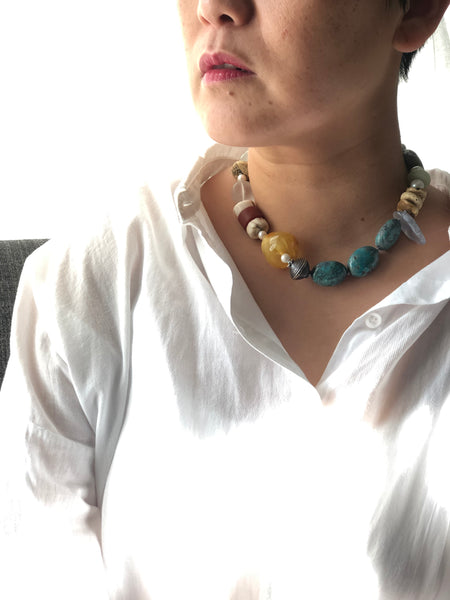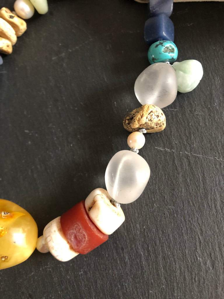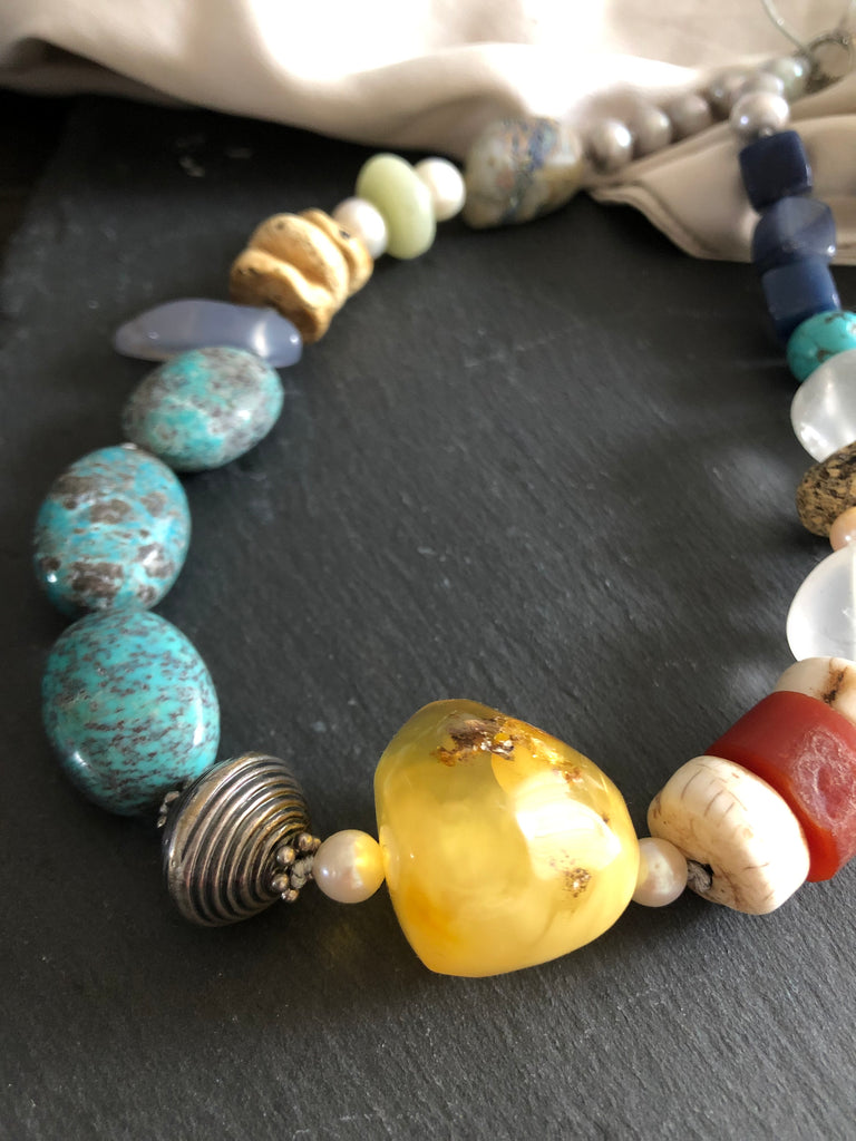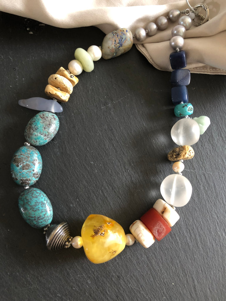 Materials : Tequoise, Baltic amber, clear quartz, agate, pearl