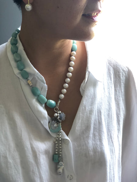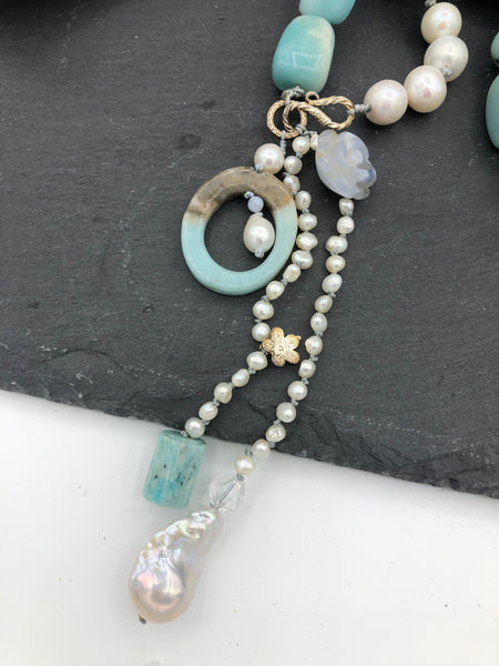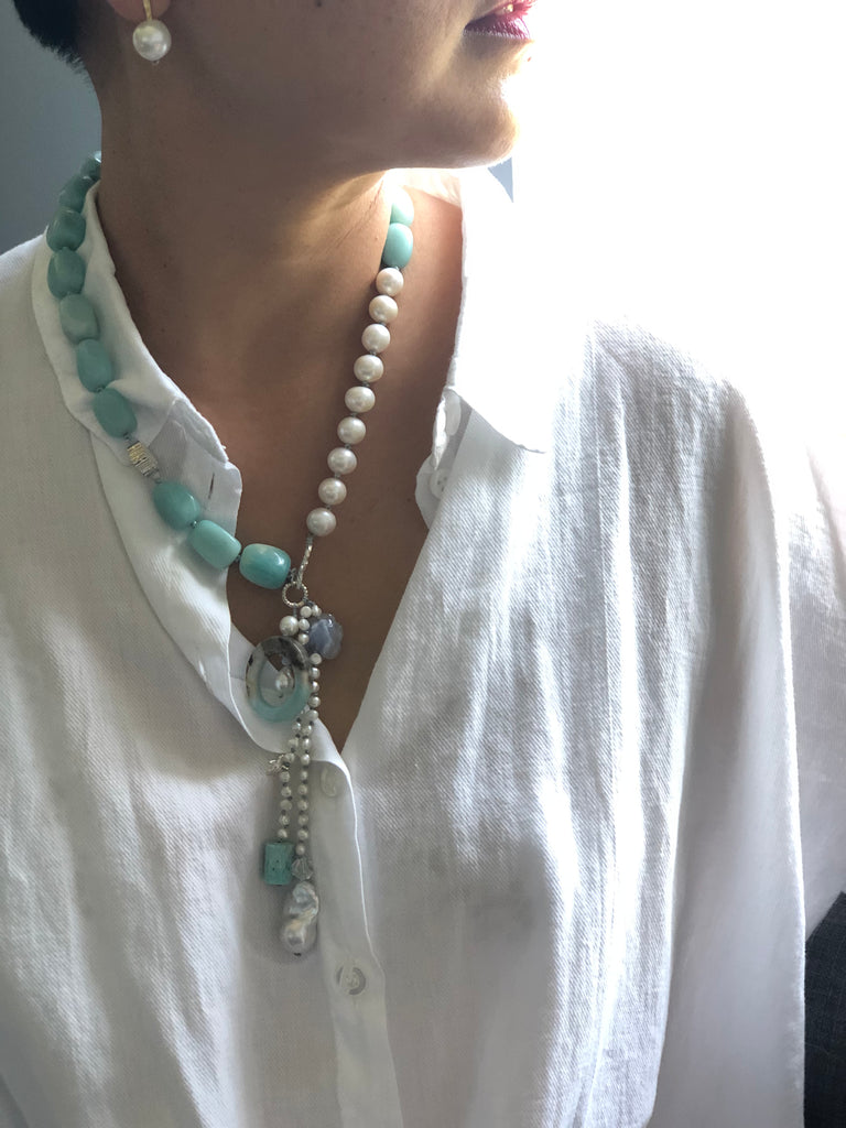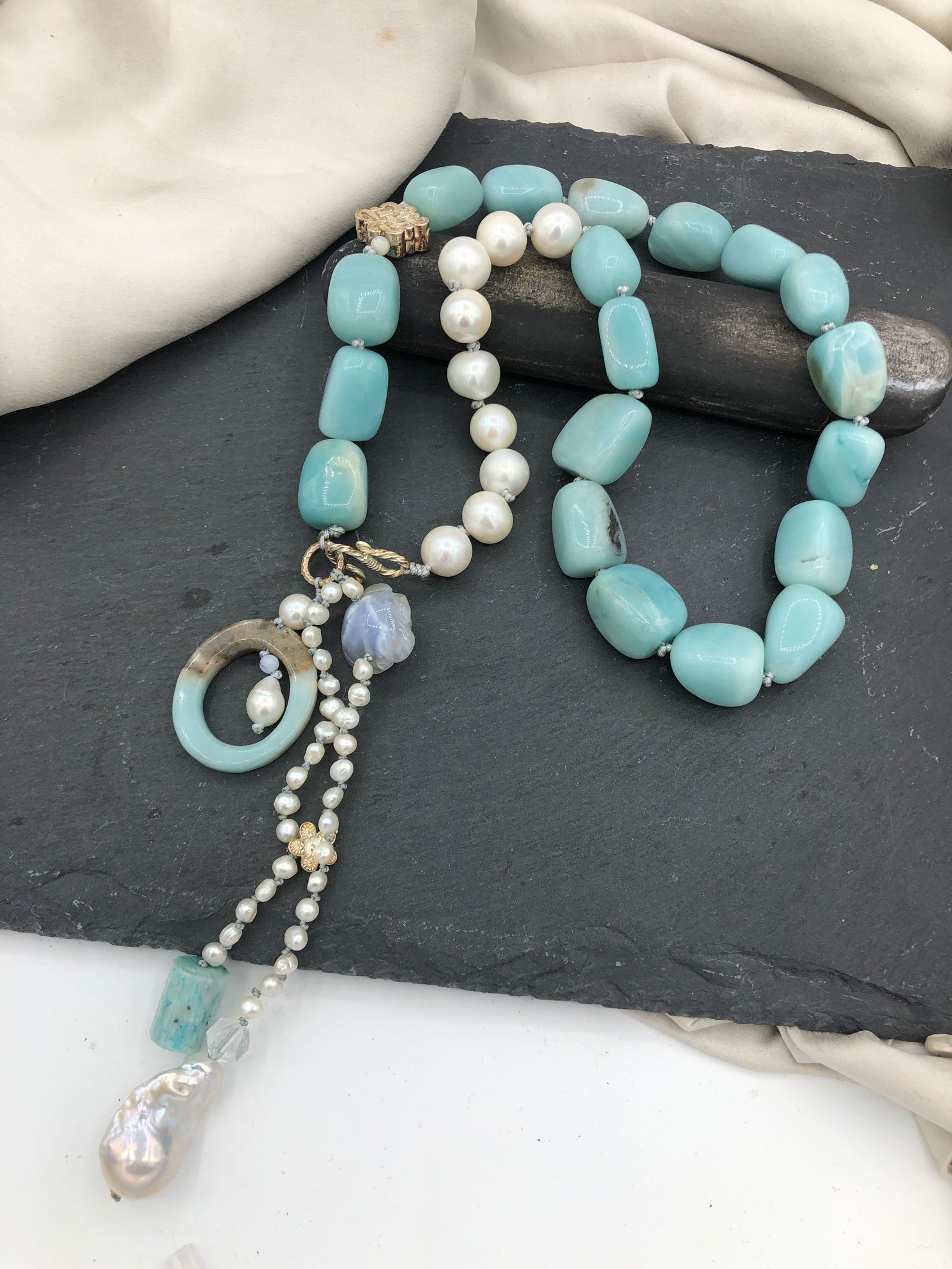 Materials : Amazonite, fresh water pearl , baroque pearls, silver