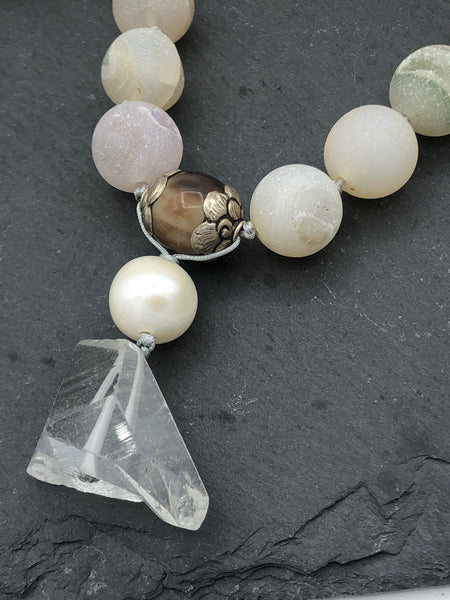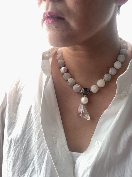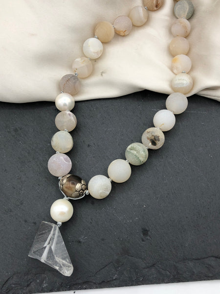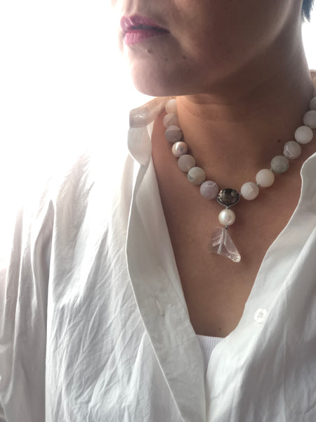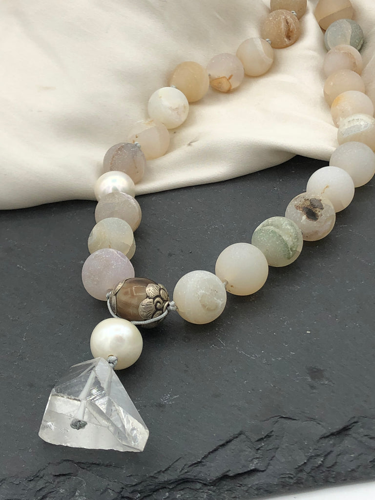 Materials : Agate, clear quartz, Tibetan bead, fresh water pearl