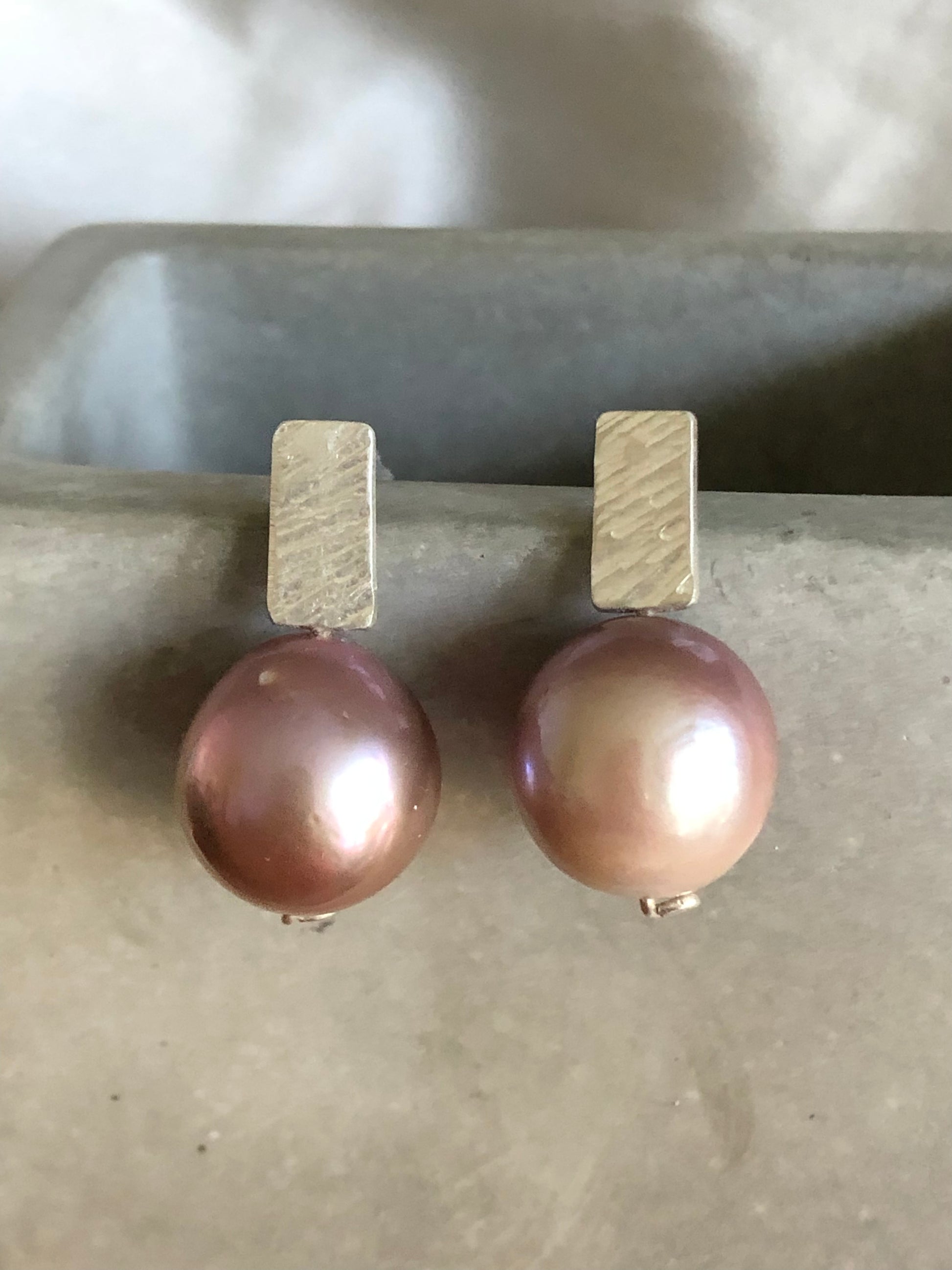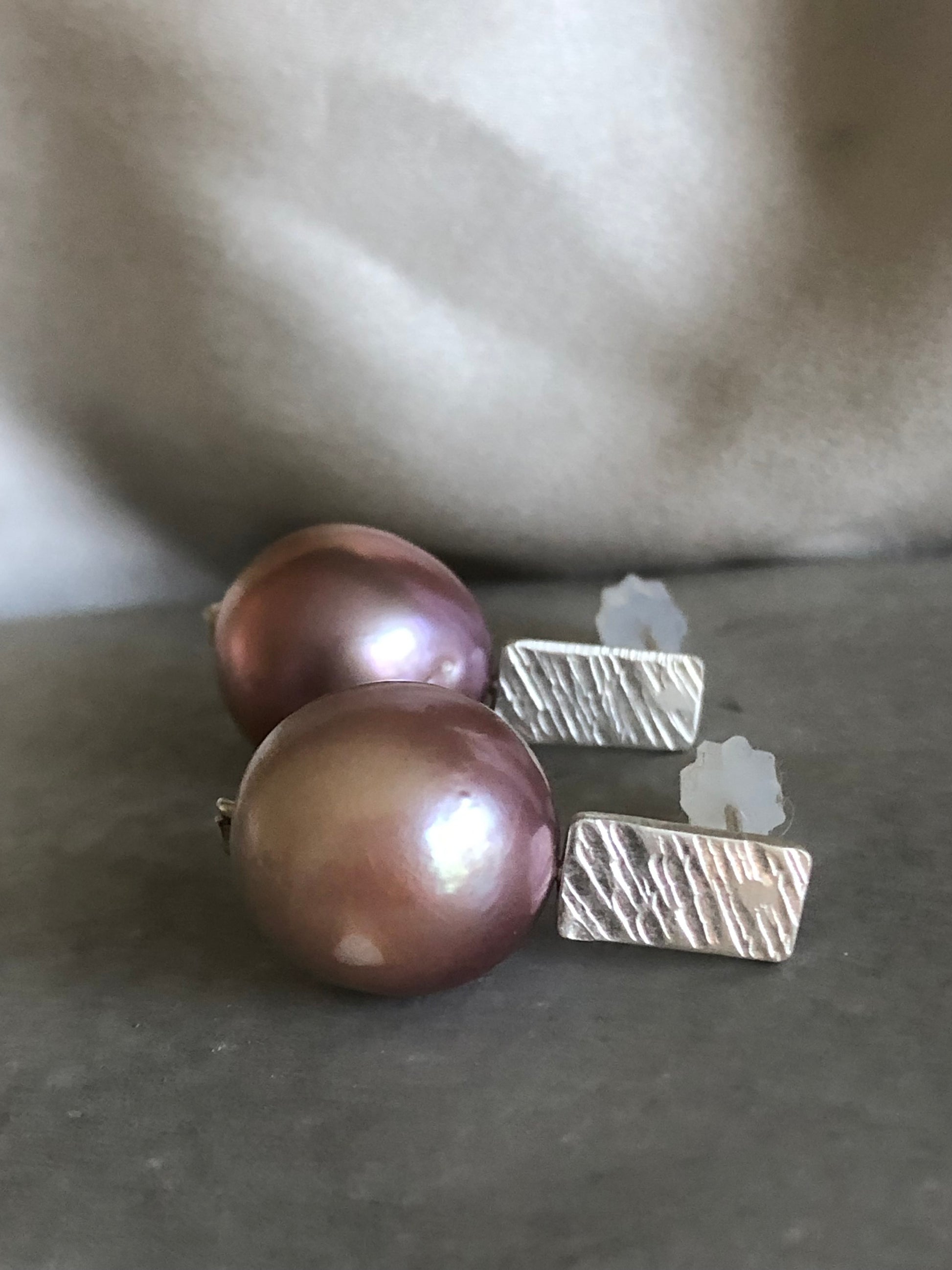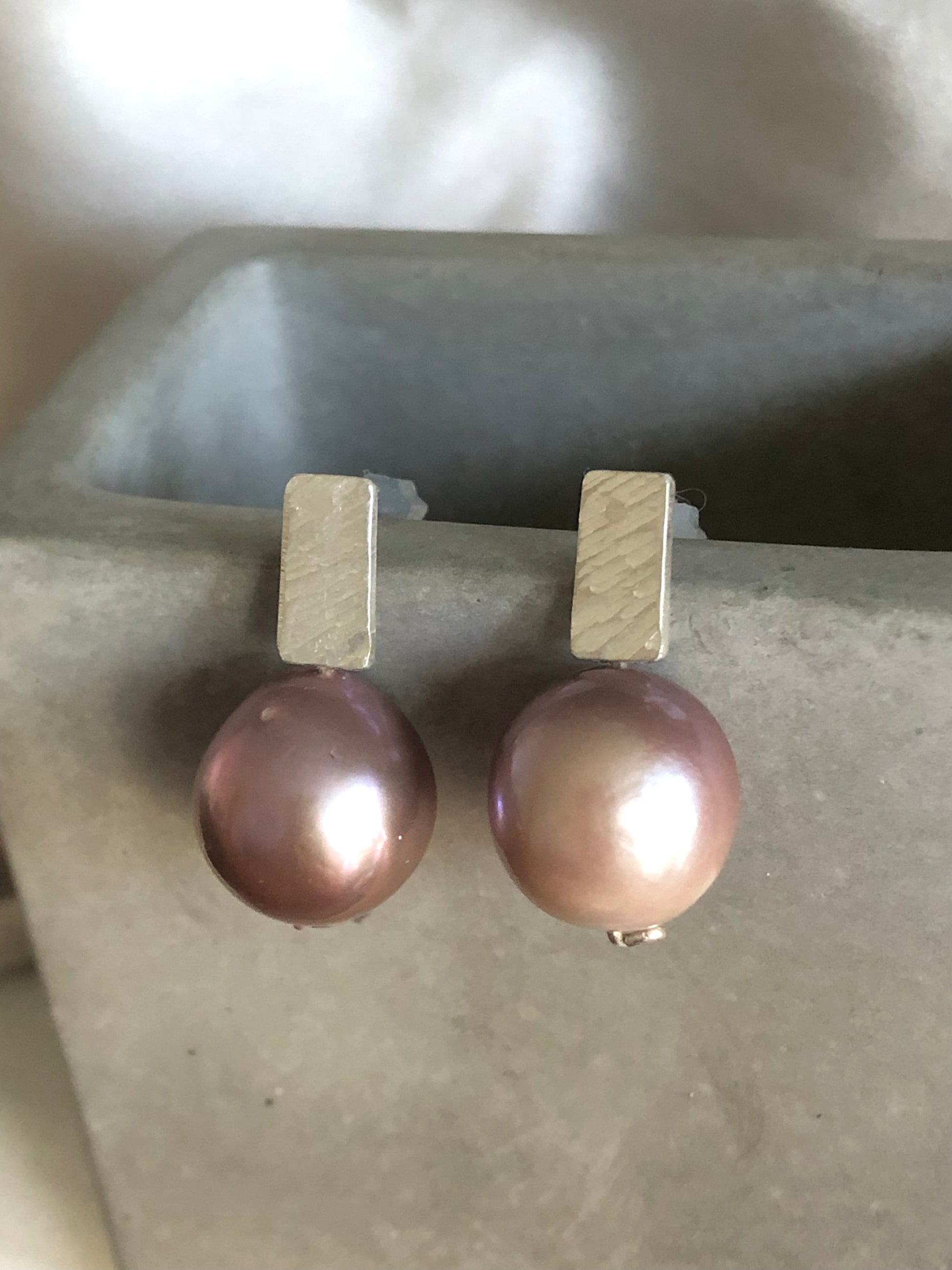 Hand hammered on fine silver, very rare color of fresh water pearl, these type of pearl sometimes will have a little bit texture, but not obvious.