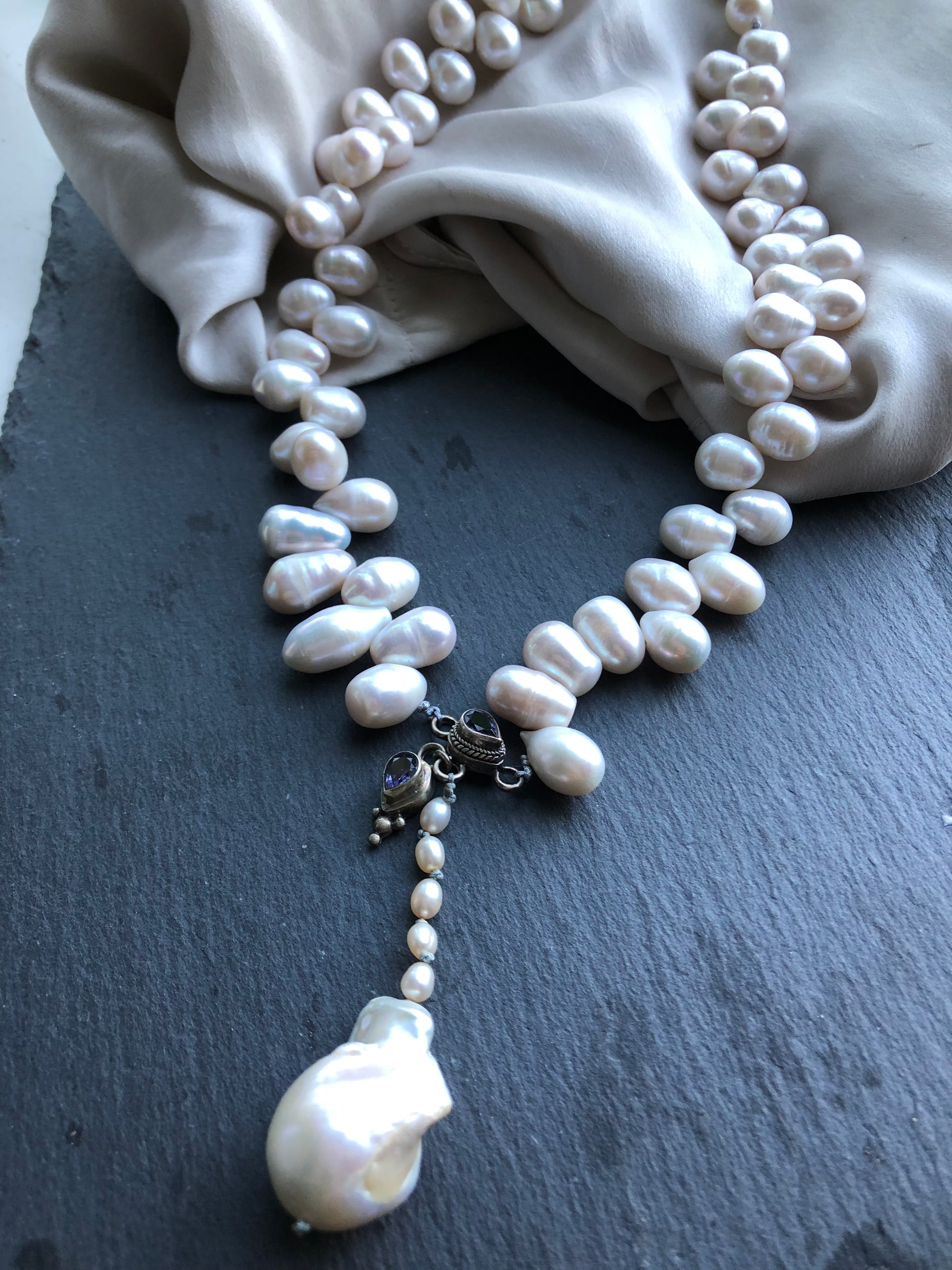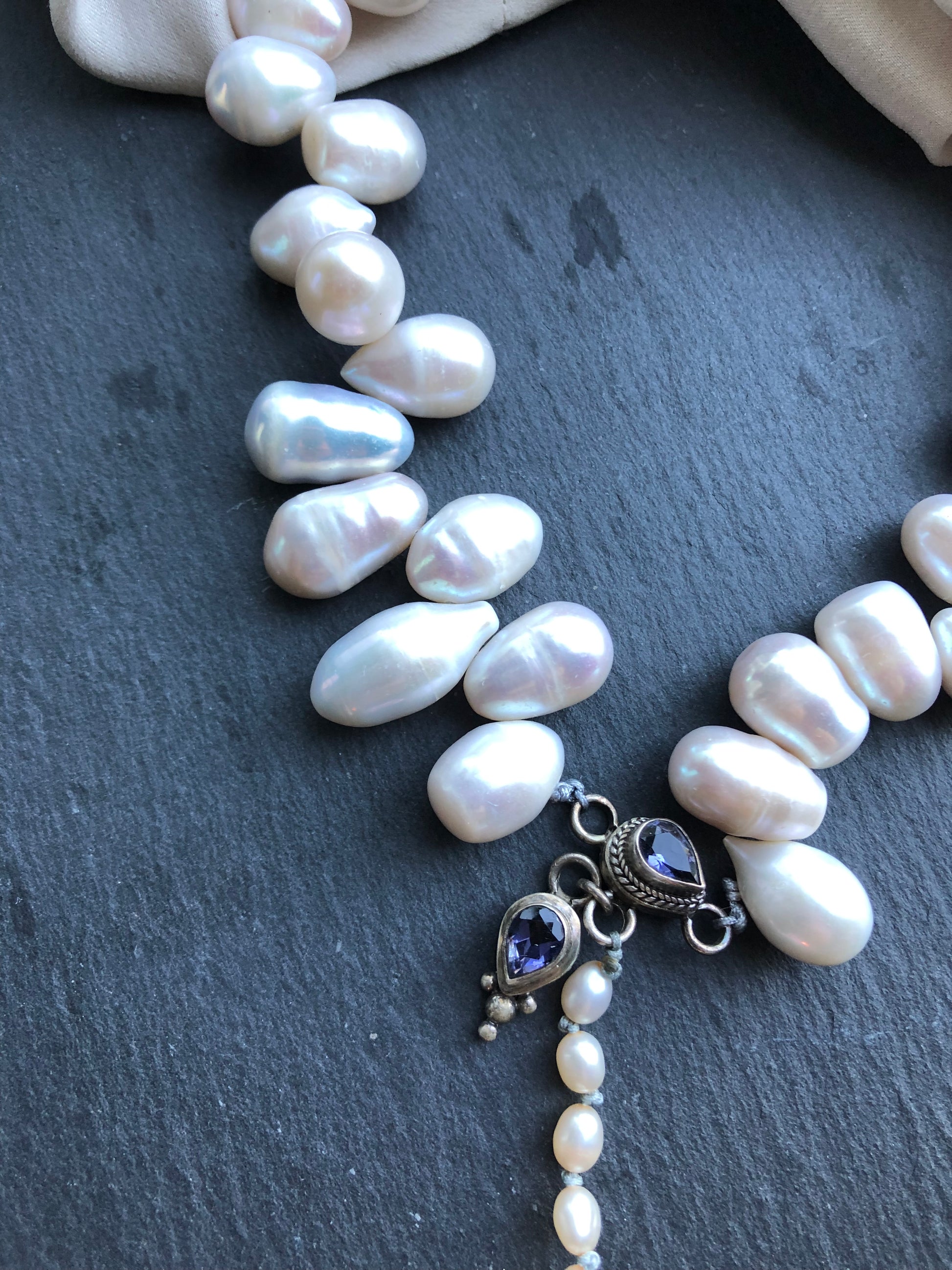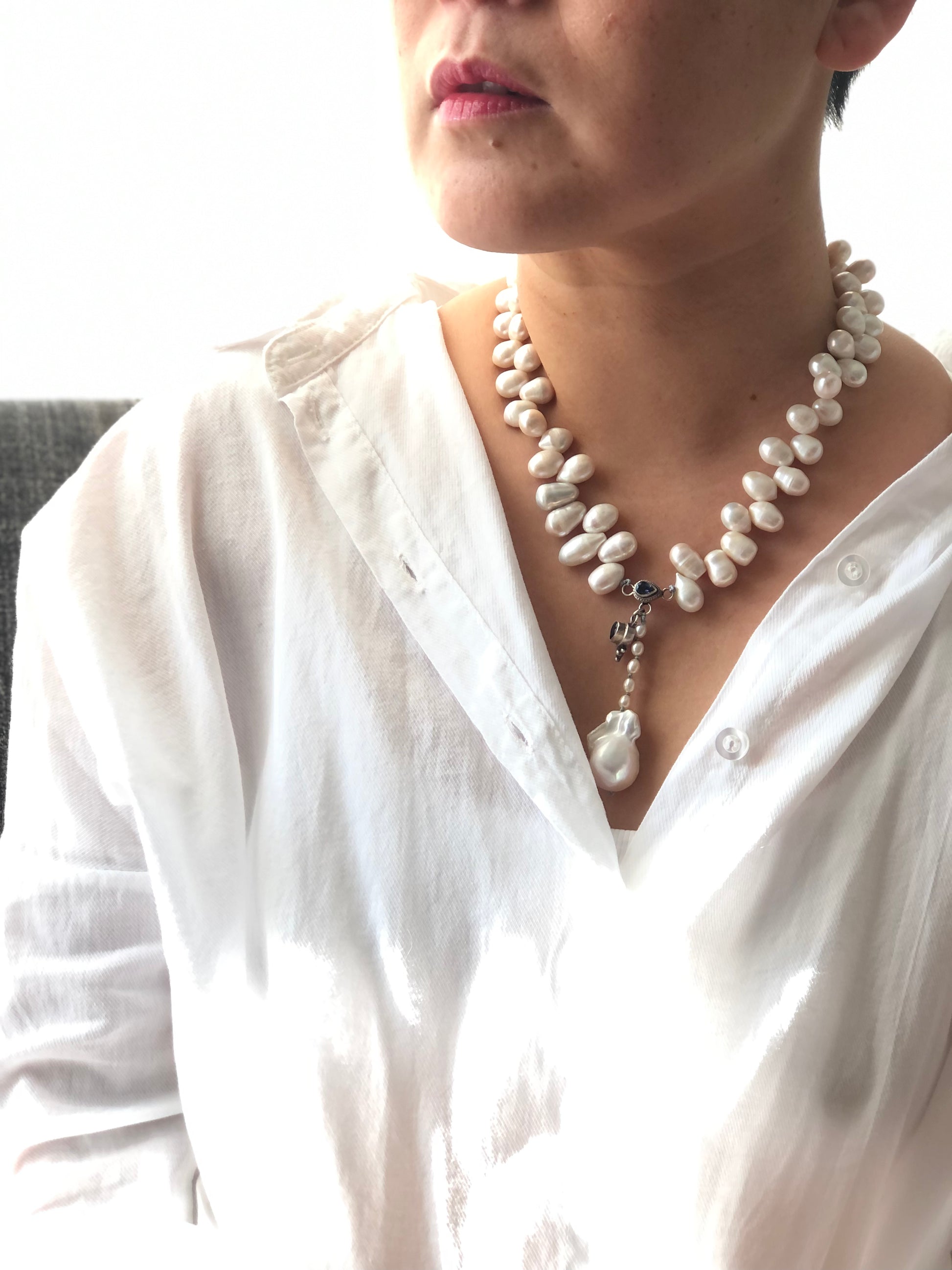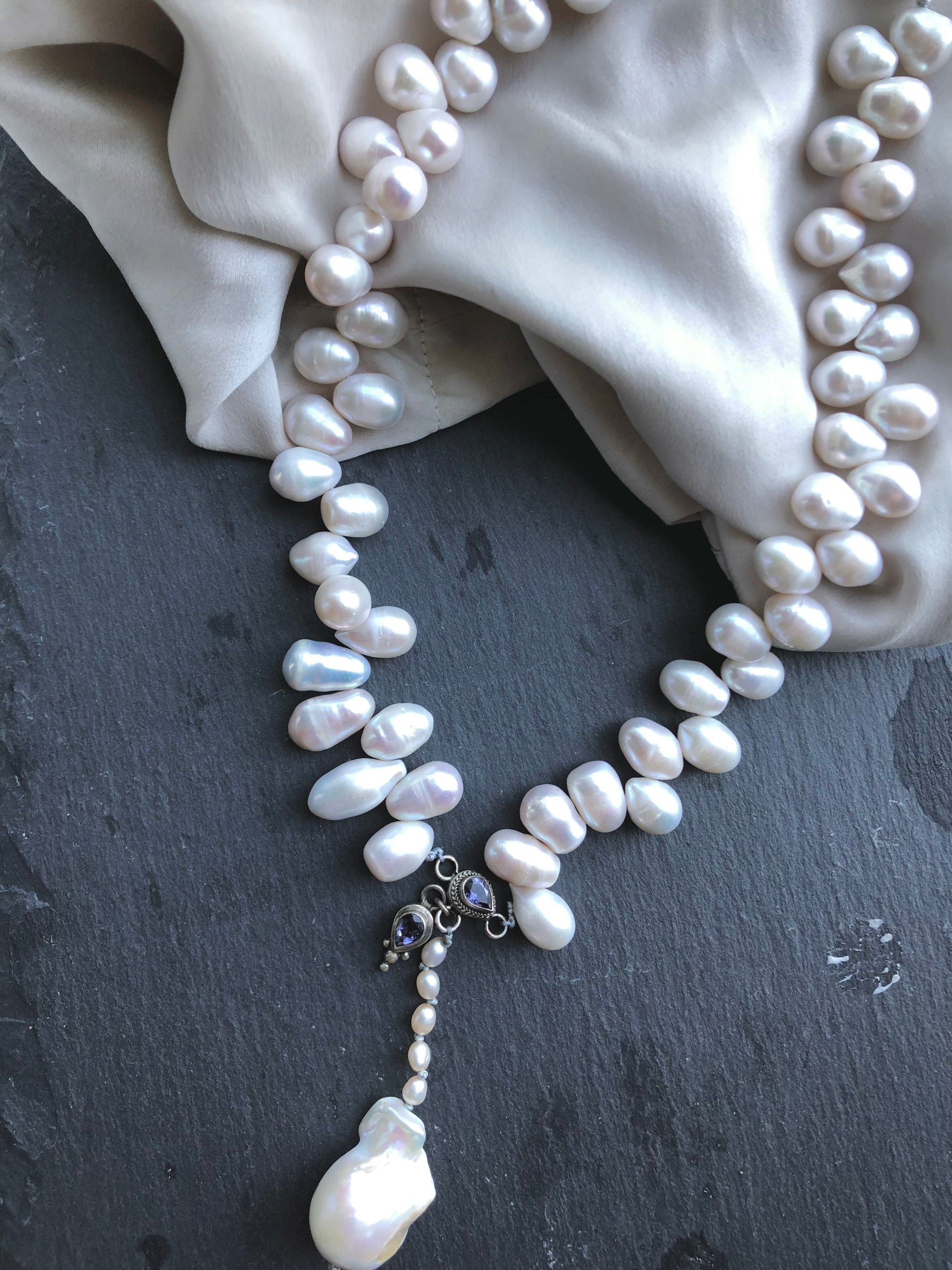 Materials : Fresh water pearl, baroque pearl, sterling silver with amethyst
