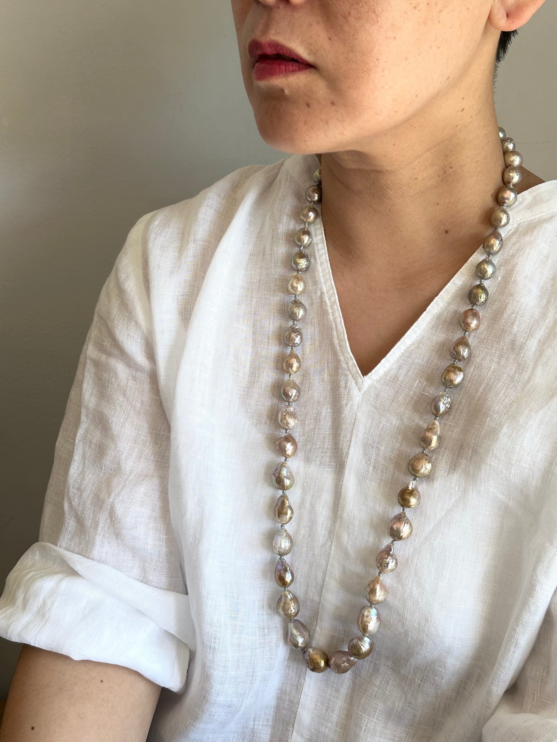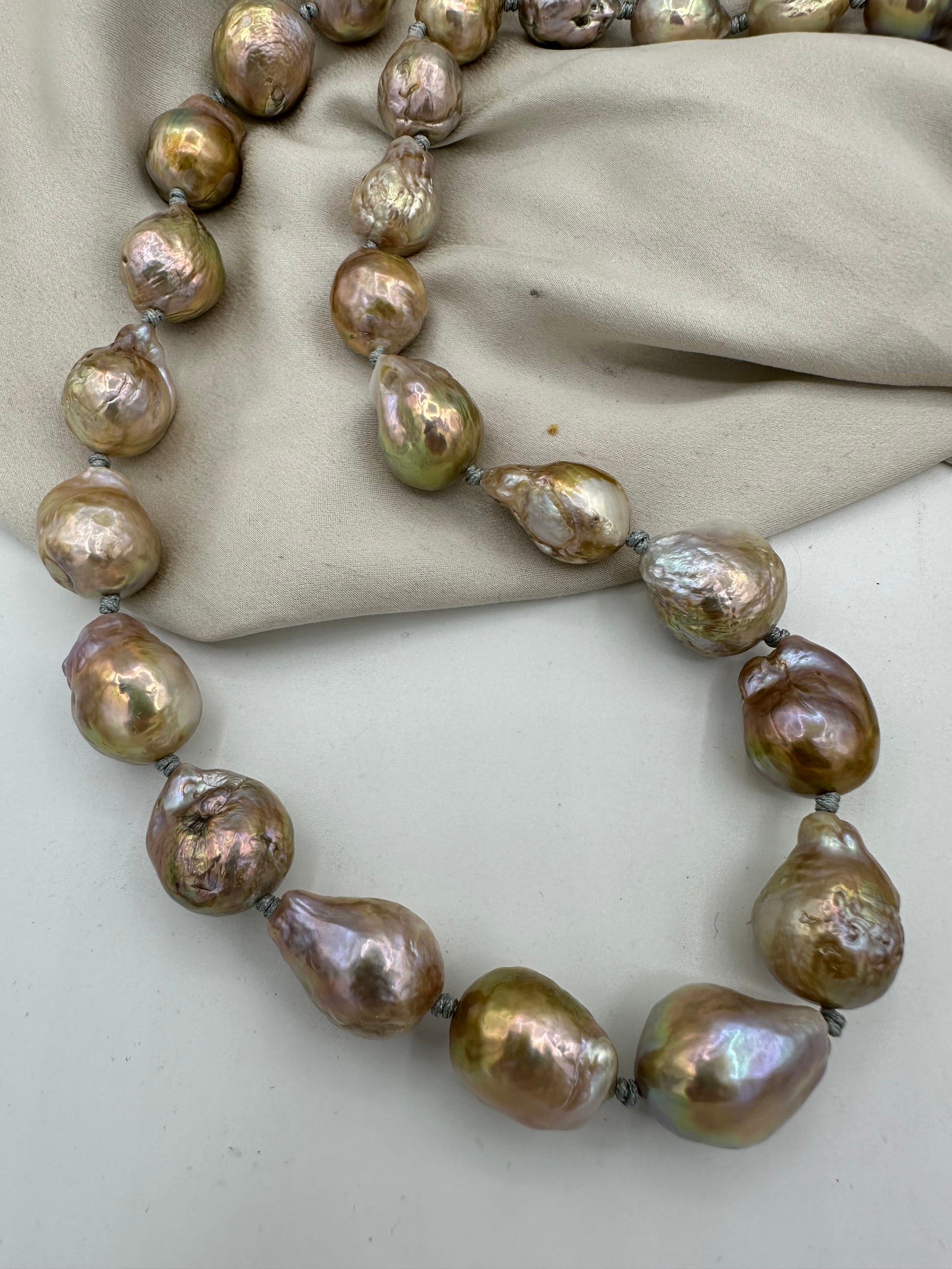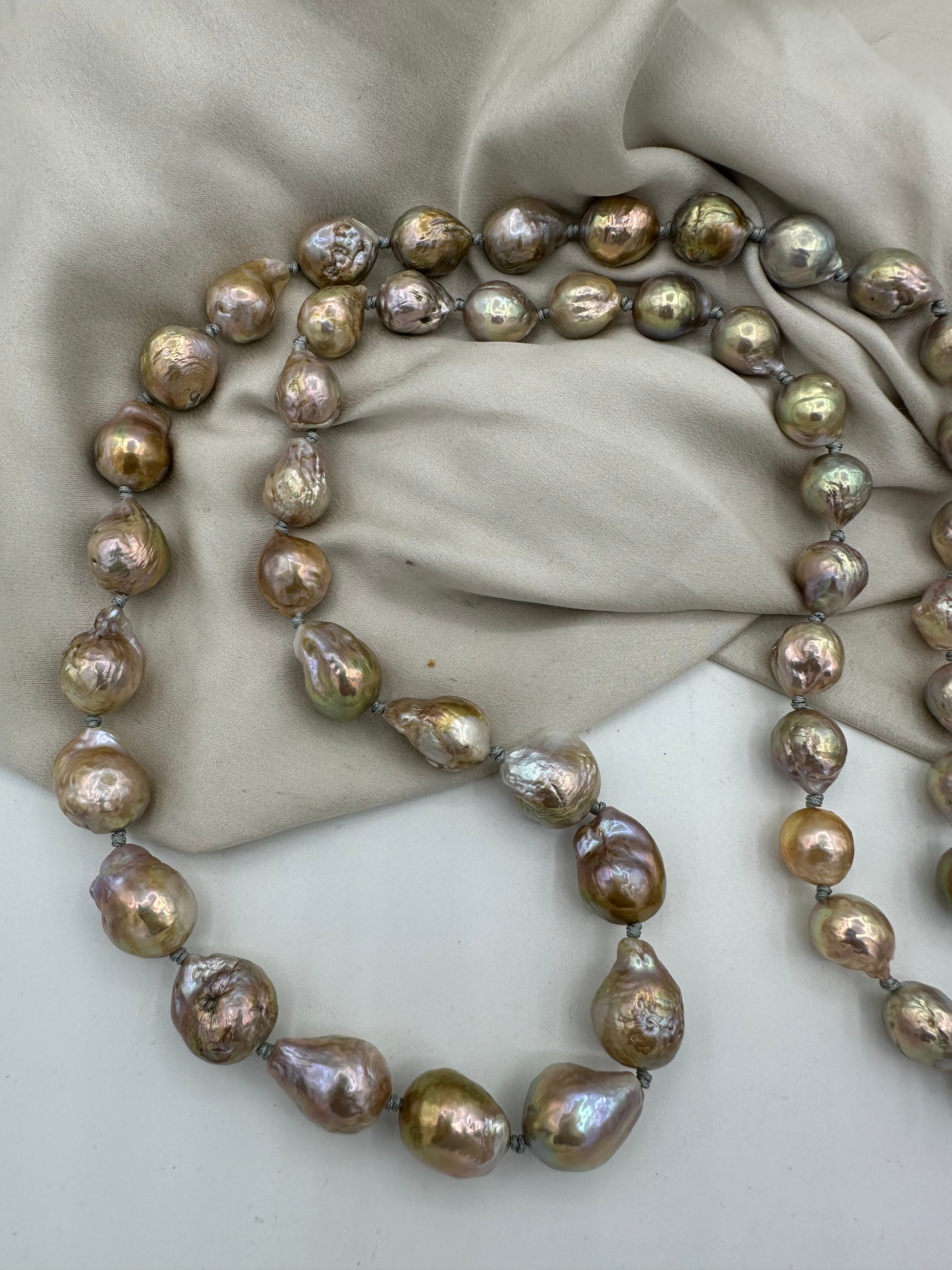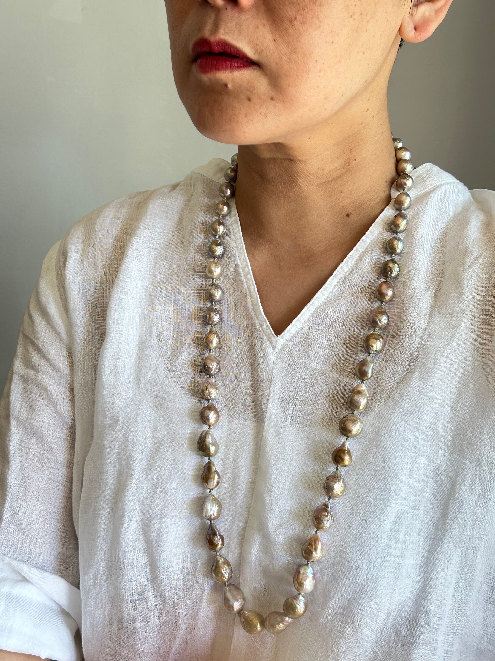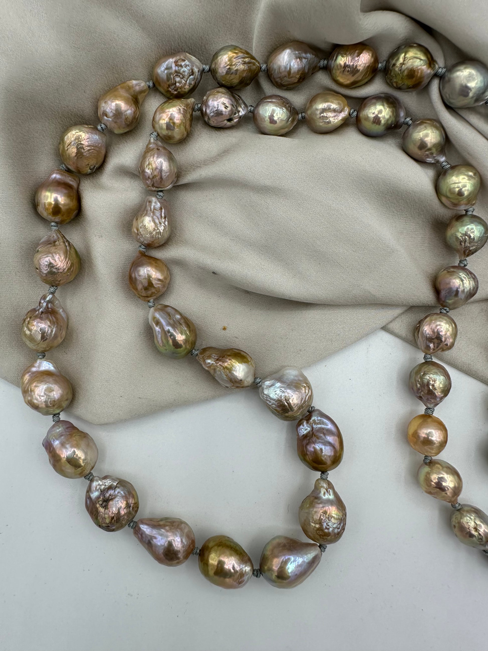 Hand knotted between each pearls, natural Edson pearls with textures.