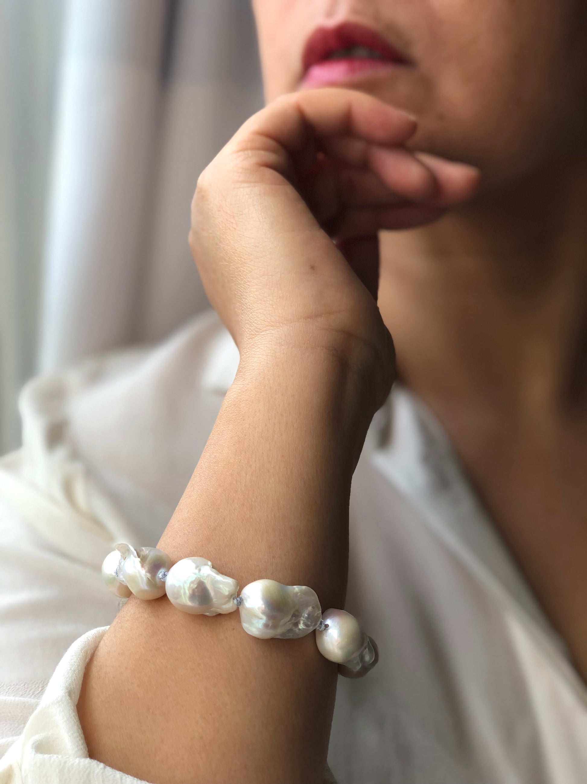 Hand knotted between each pearls, these baroque pearls are high grade and can be sized according to special request.