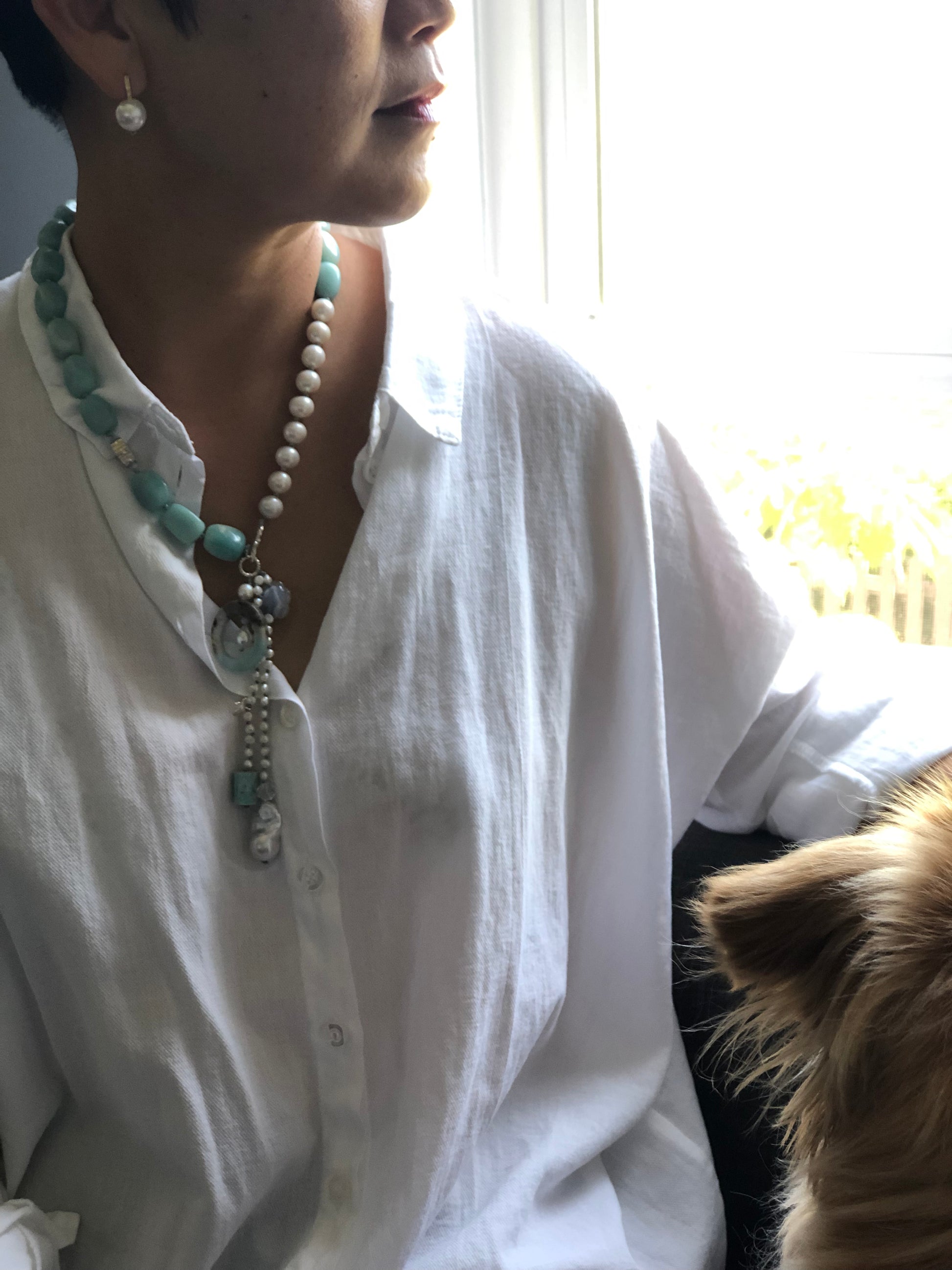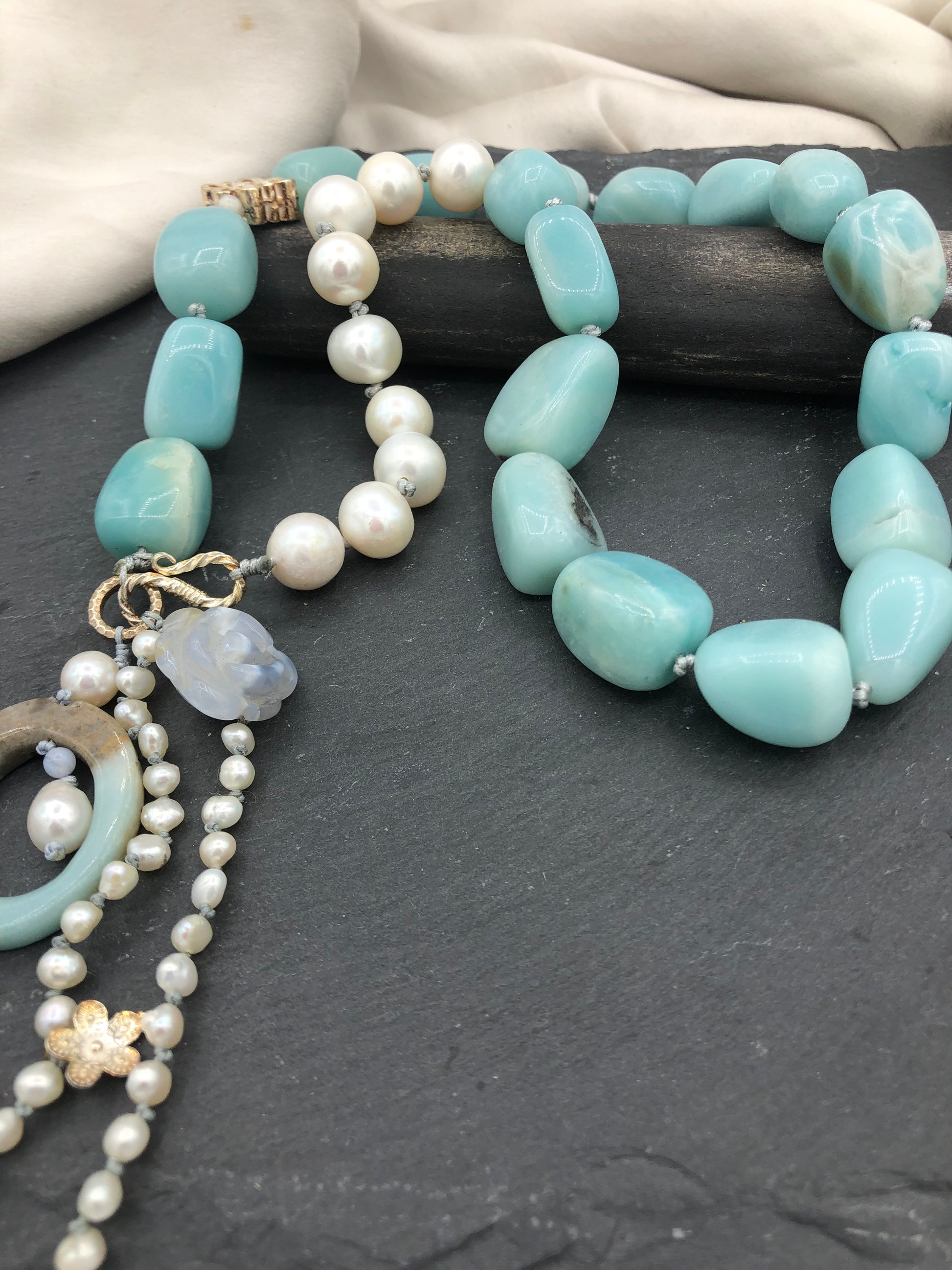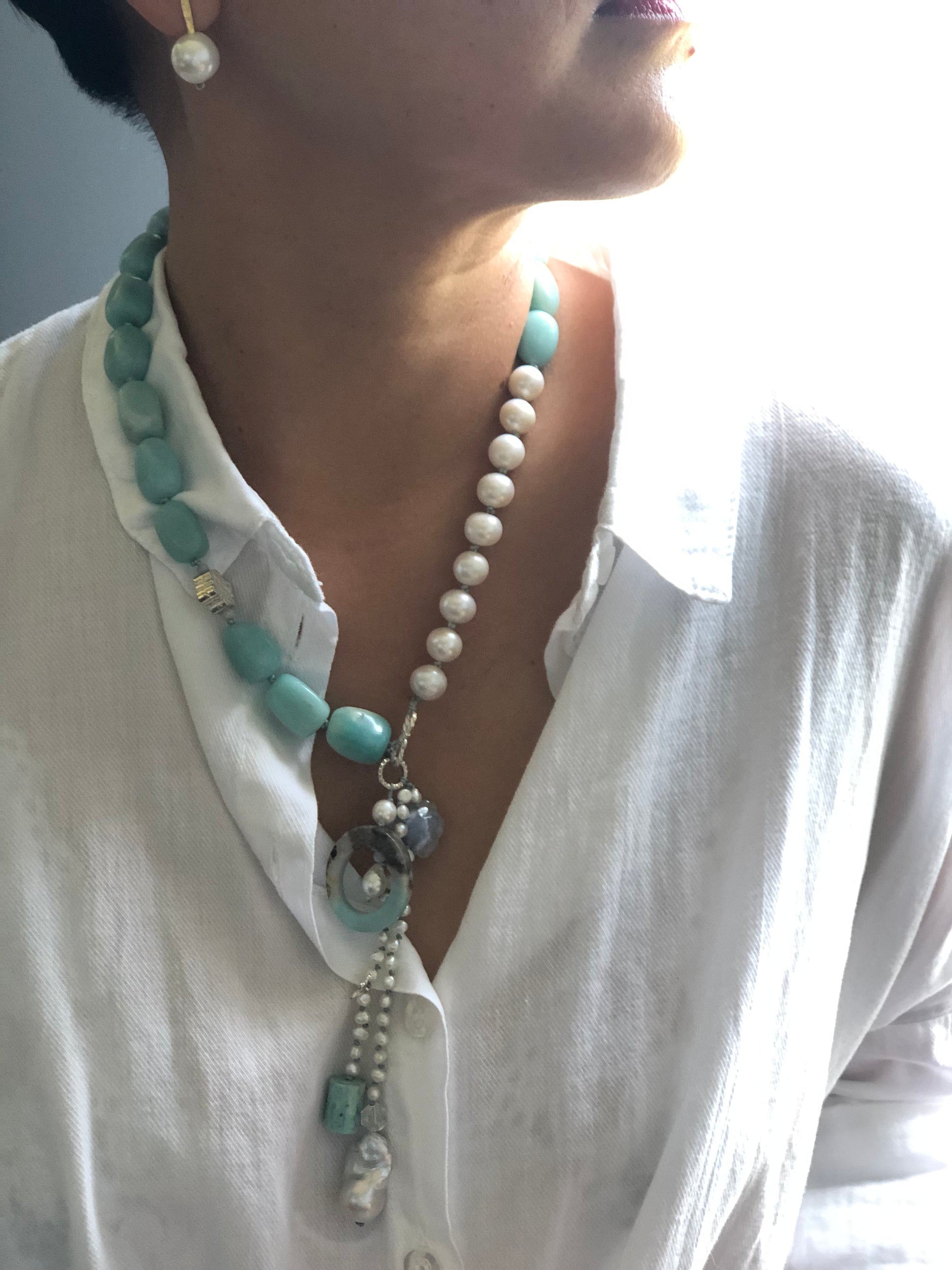 Materials : Amazonite, fresh water pearl , baroque pearls, silver