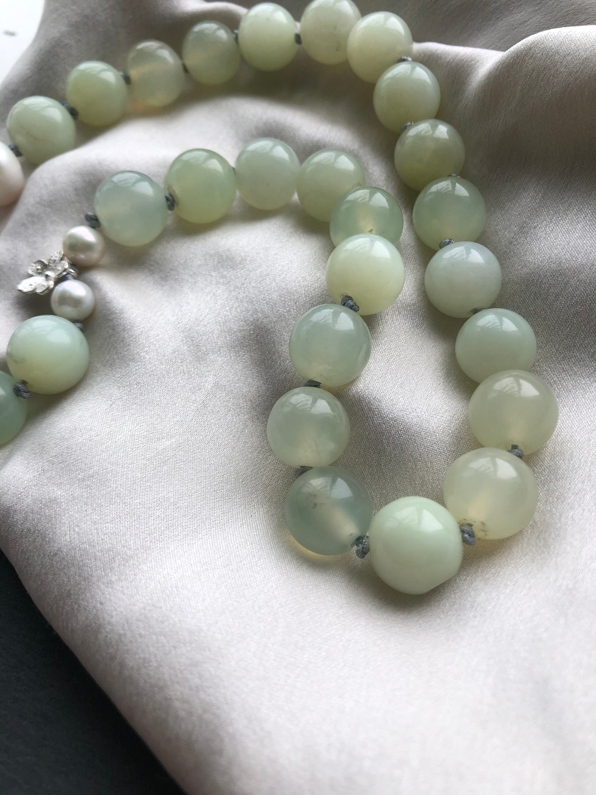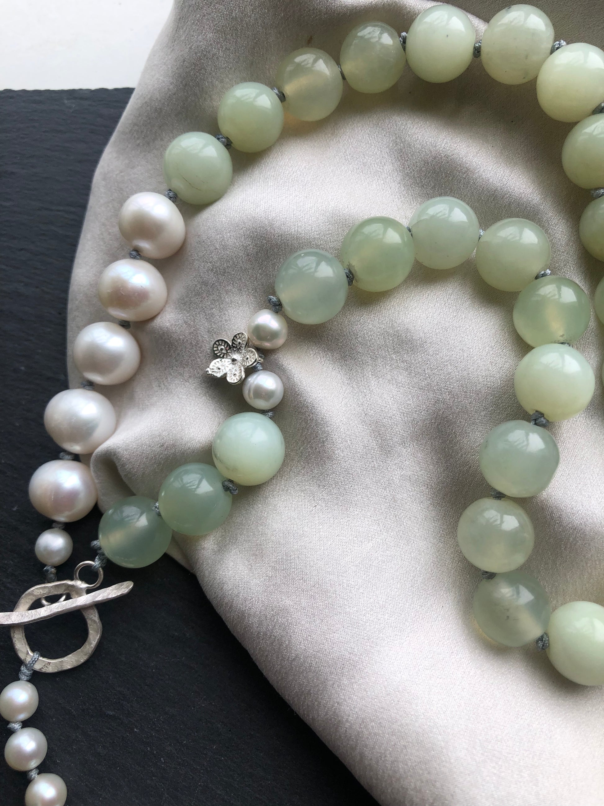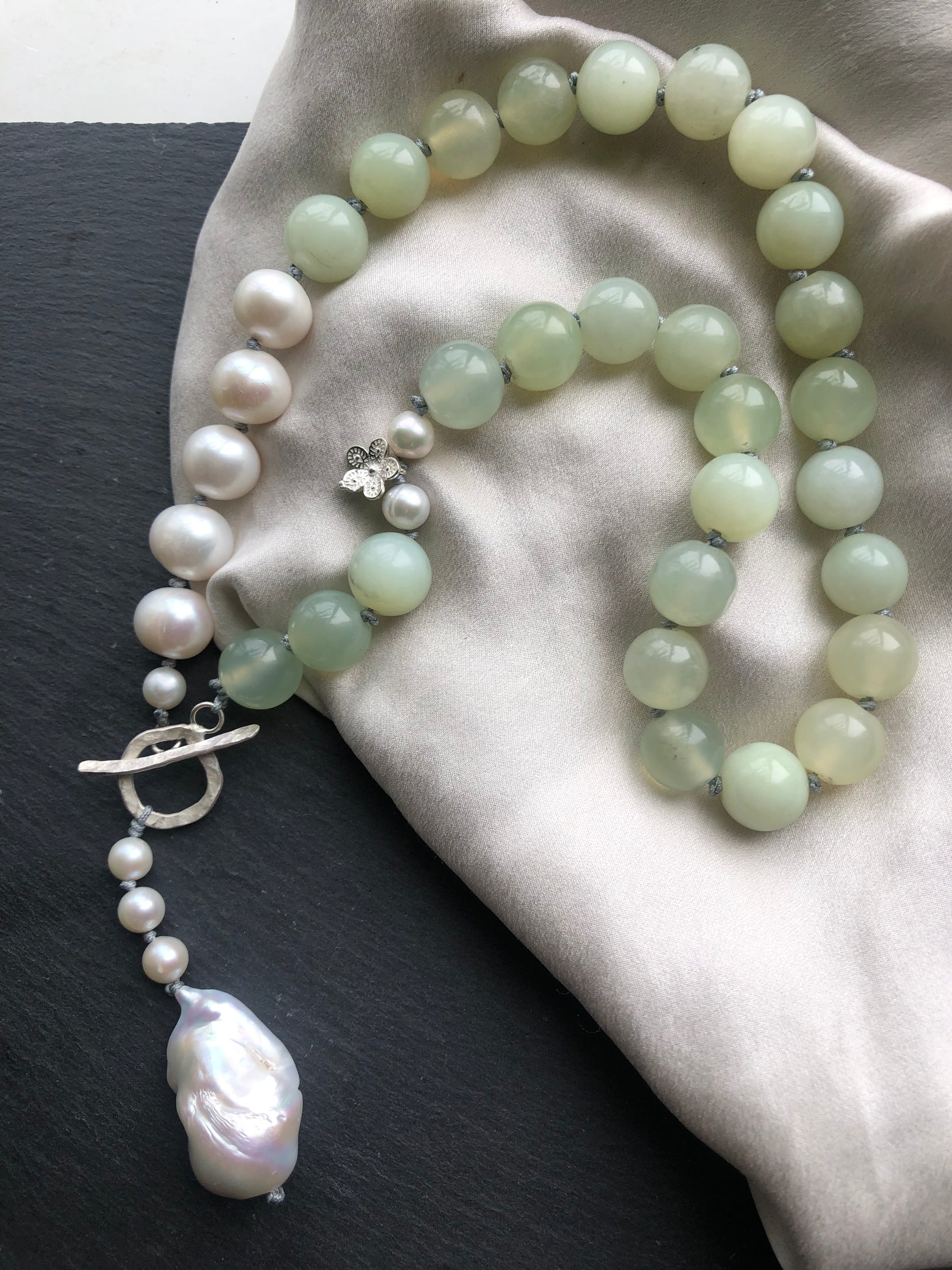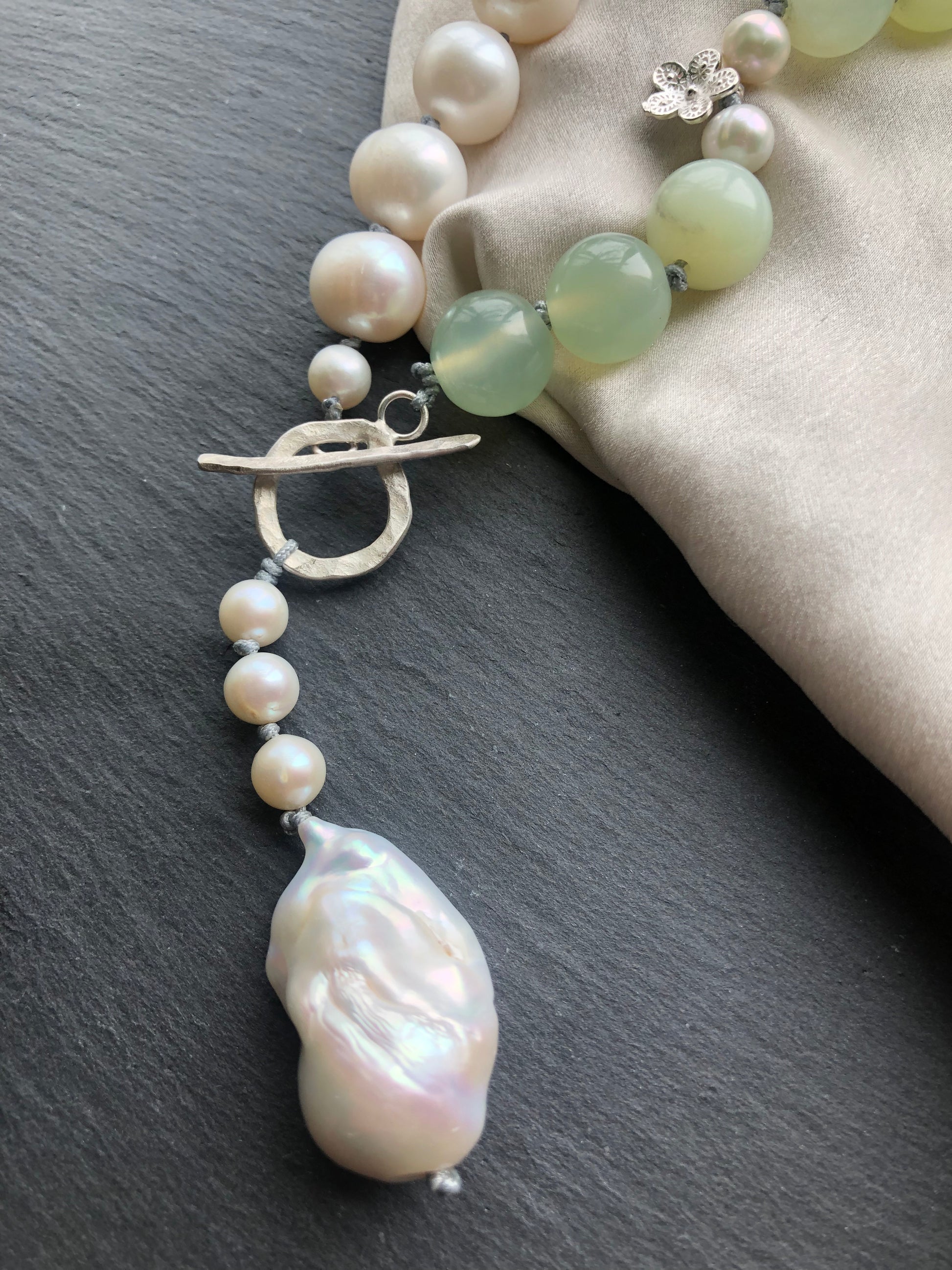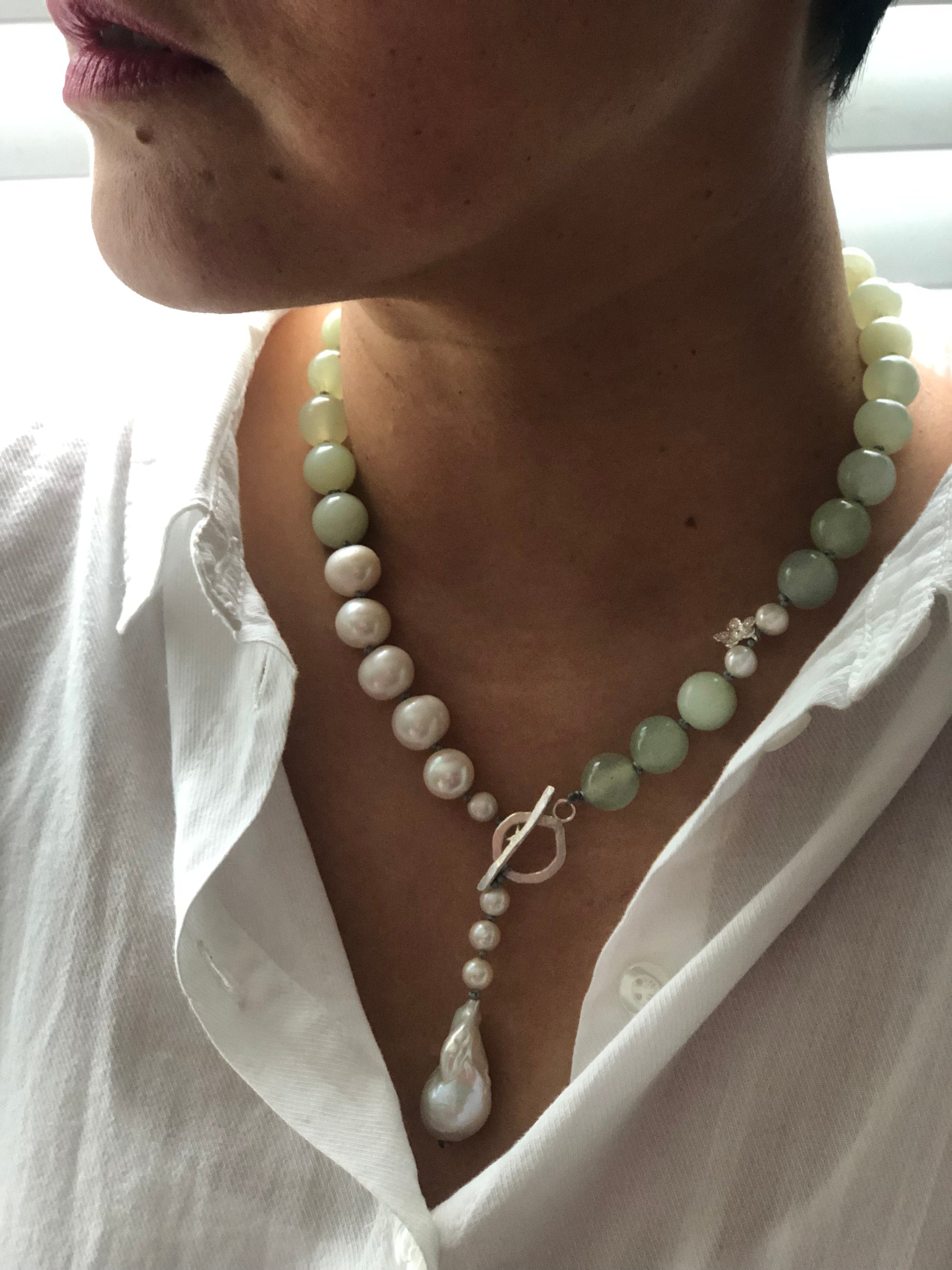 Materials : Jade, fresh water pearl, sterling silver , baroque pearl