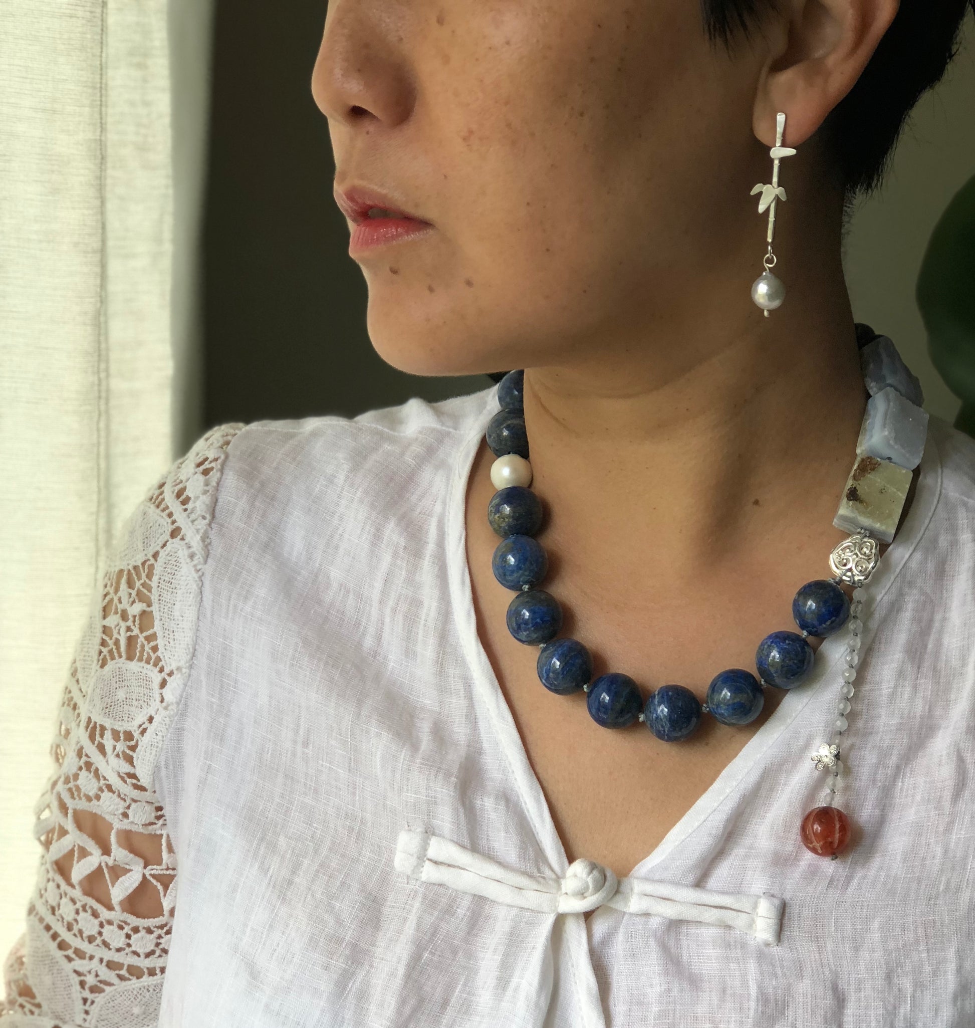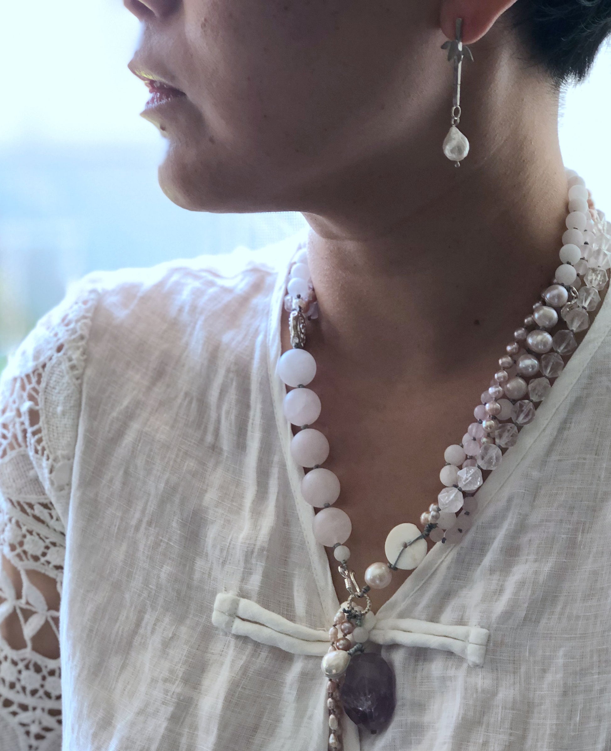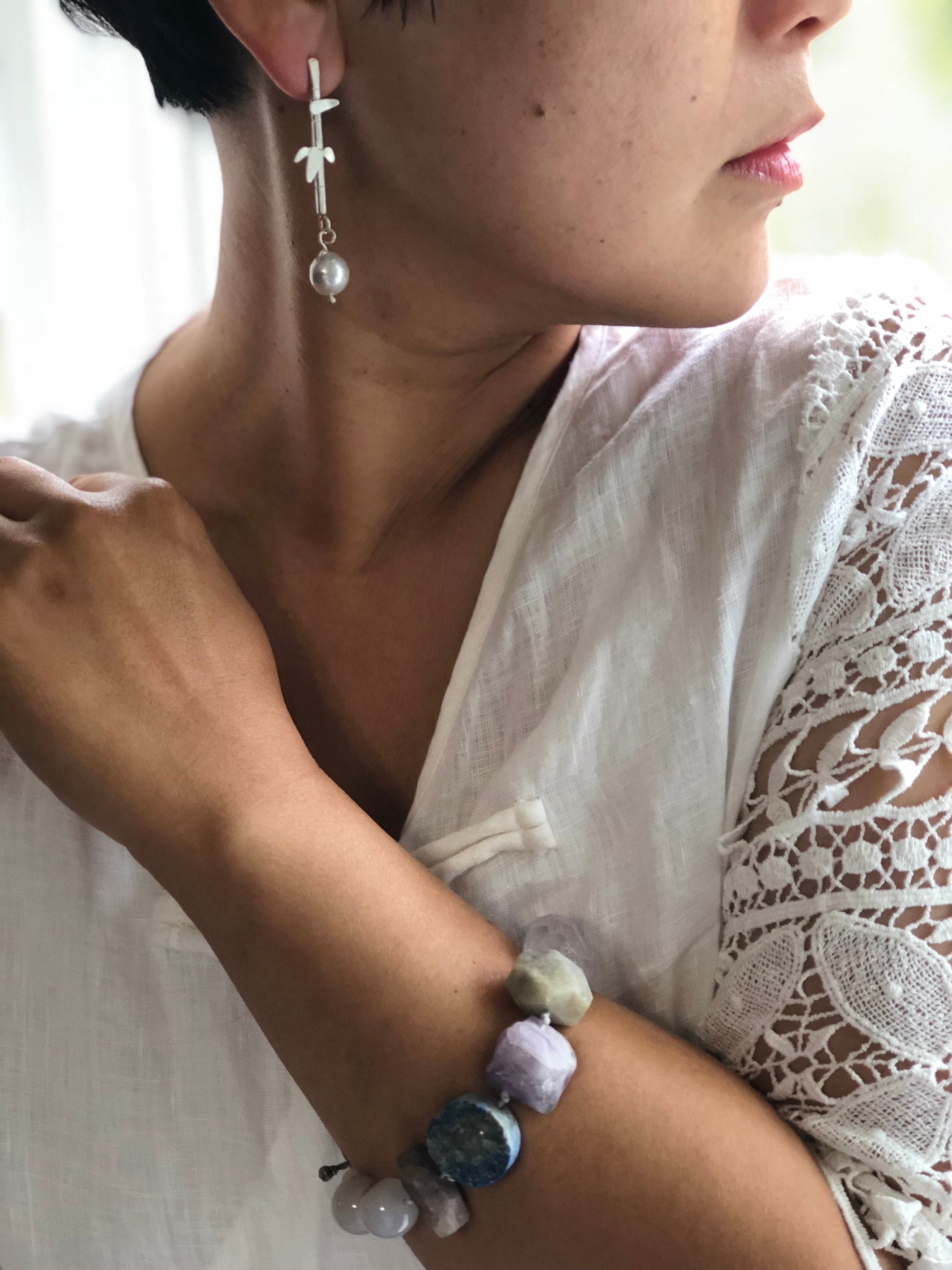Materials : Fine silver, fresh water pearl, sterling silver wire