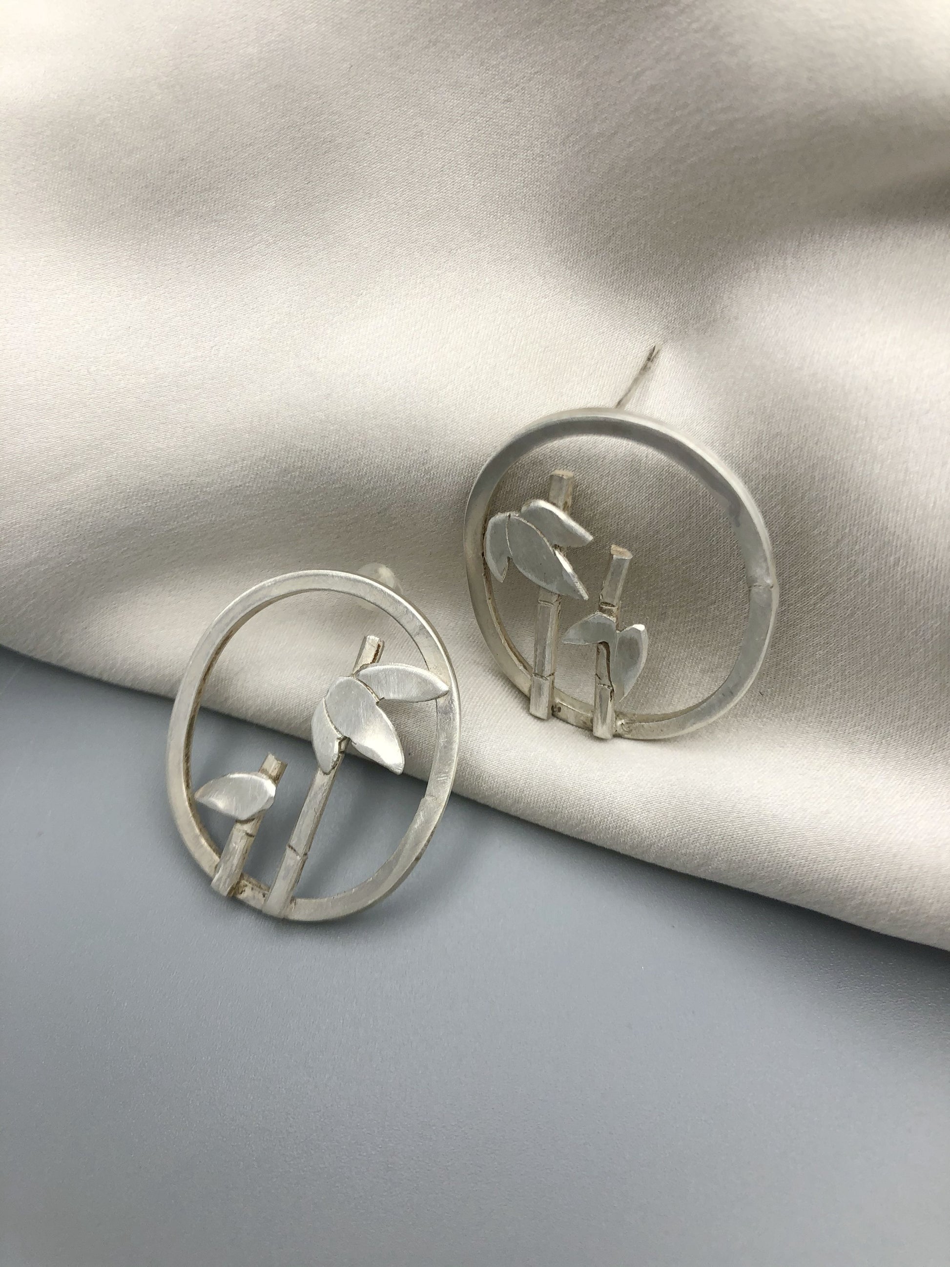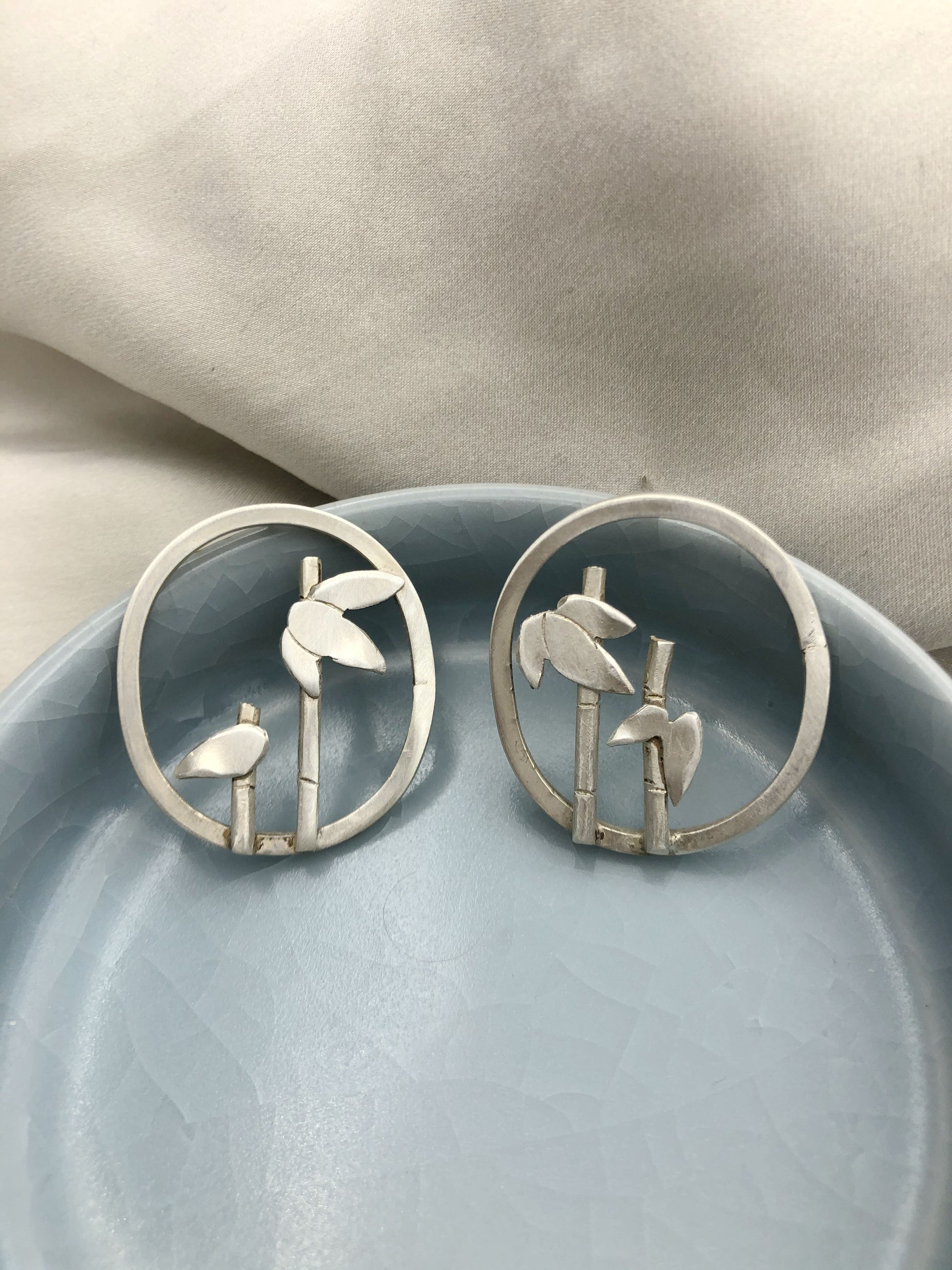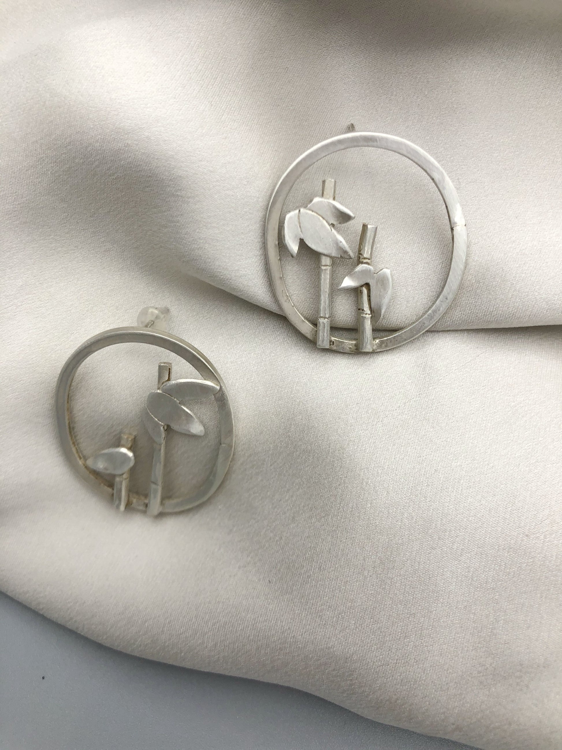 Bamboo is my favorite plant. Free hand patterned and hammered on fine silver .