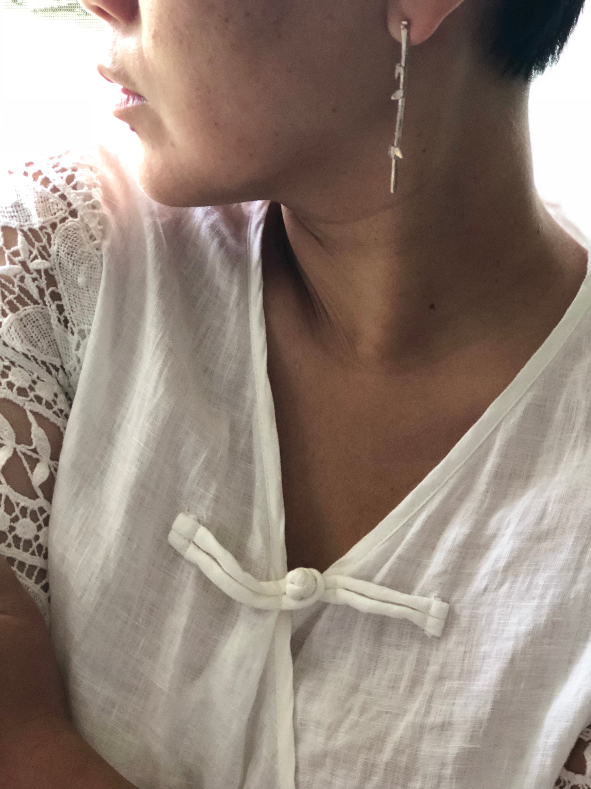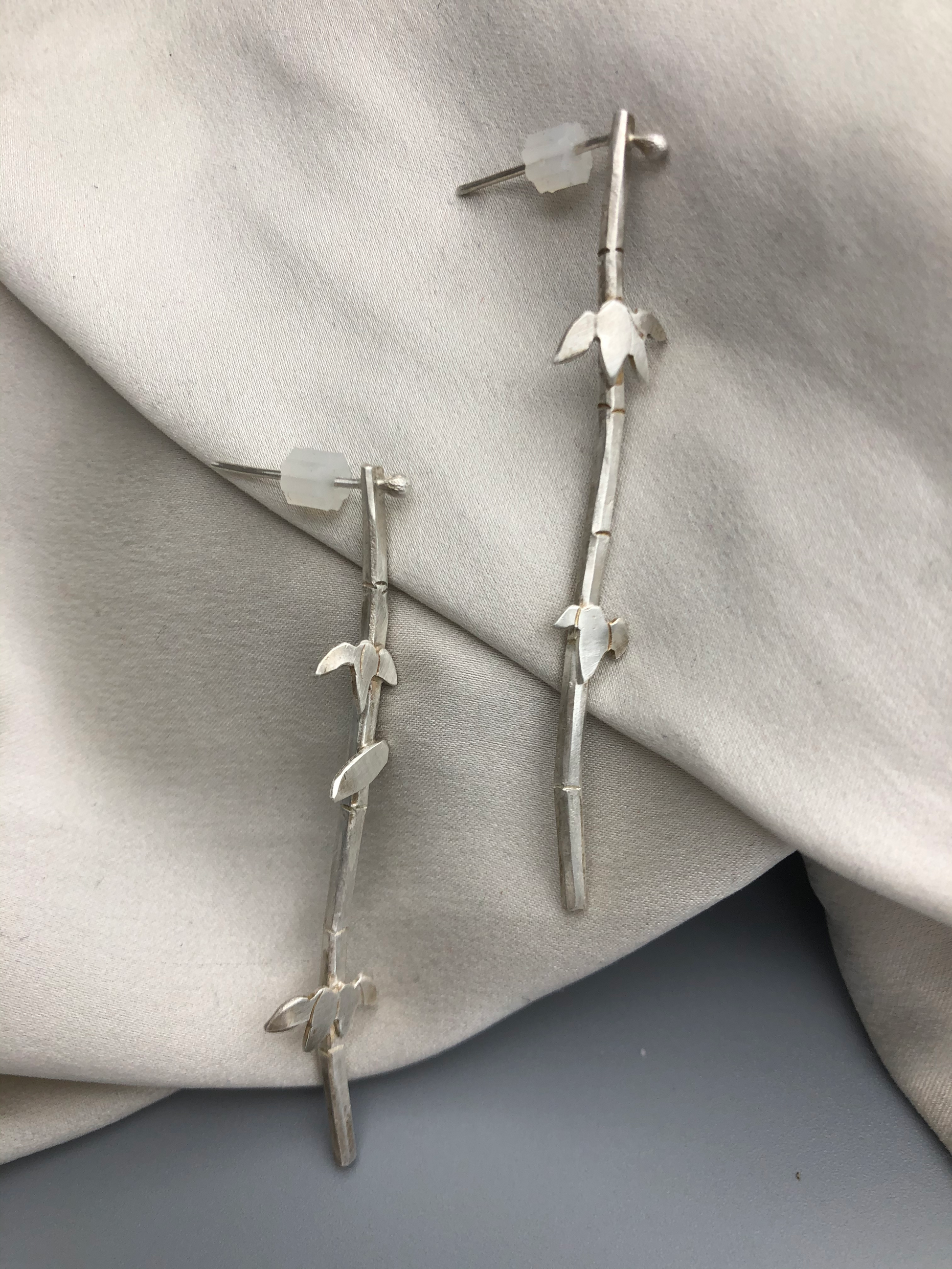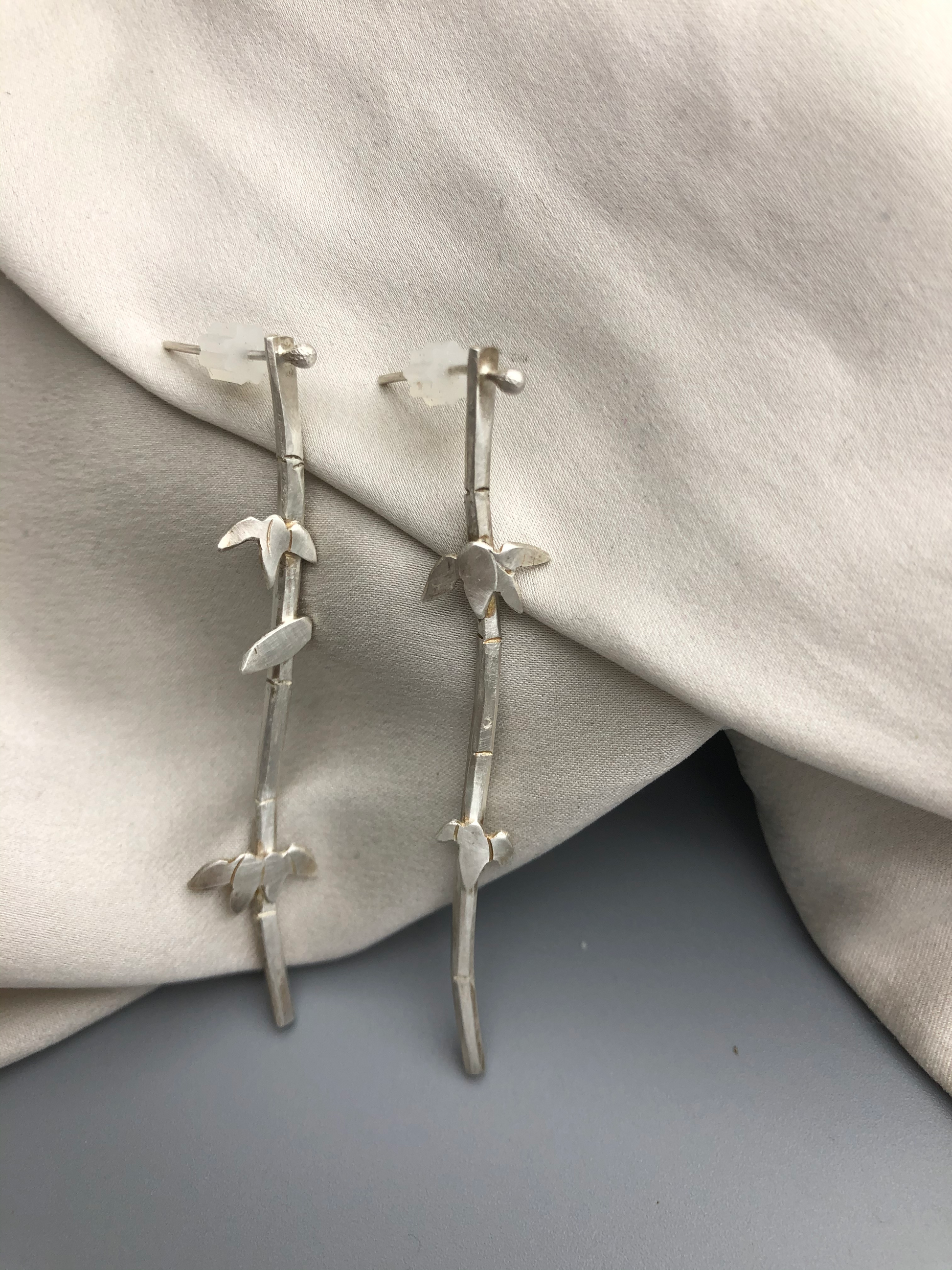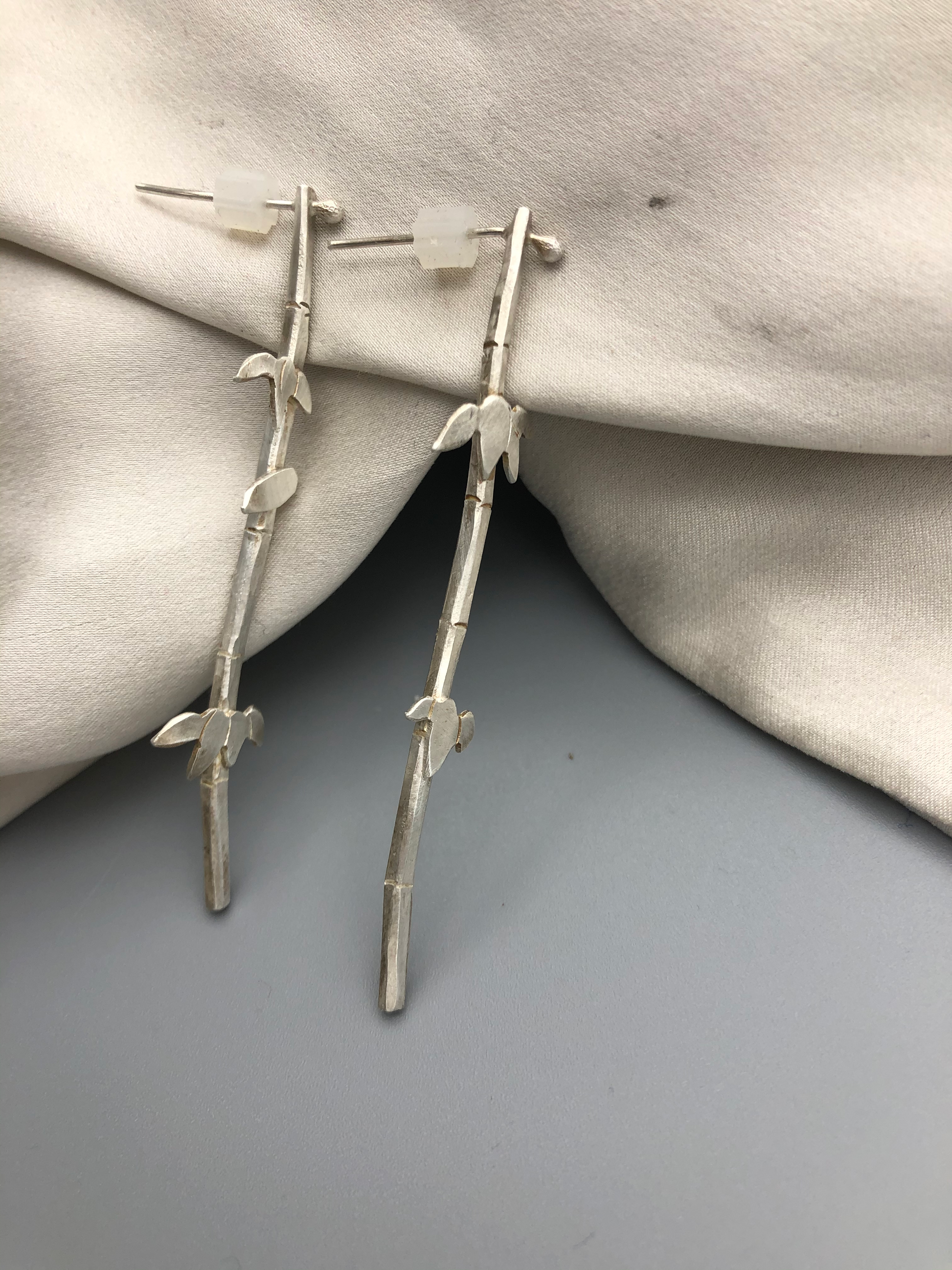 Inspired by bamboo, hand patterned and hammered on fine silver .