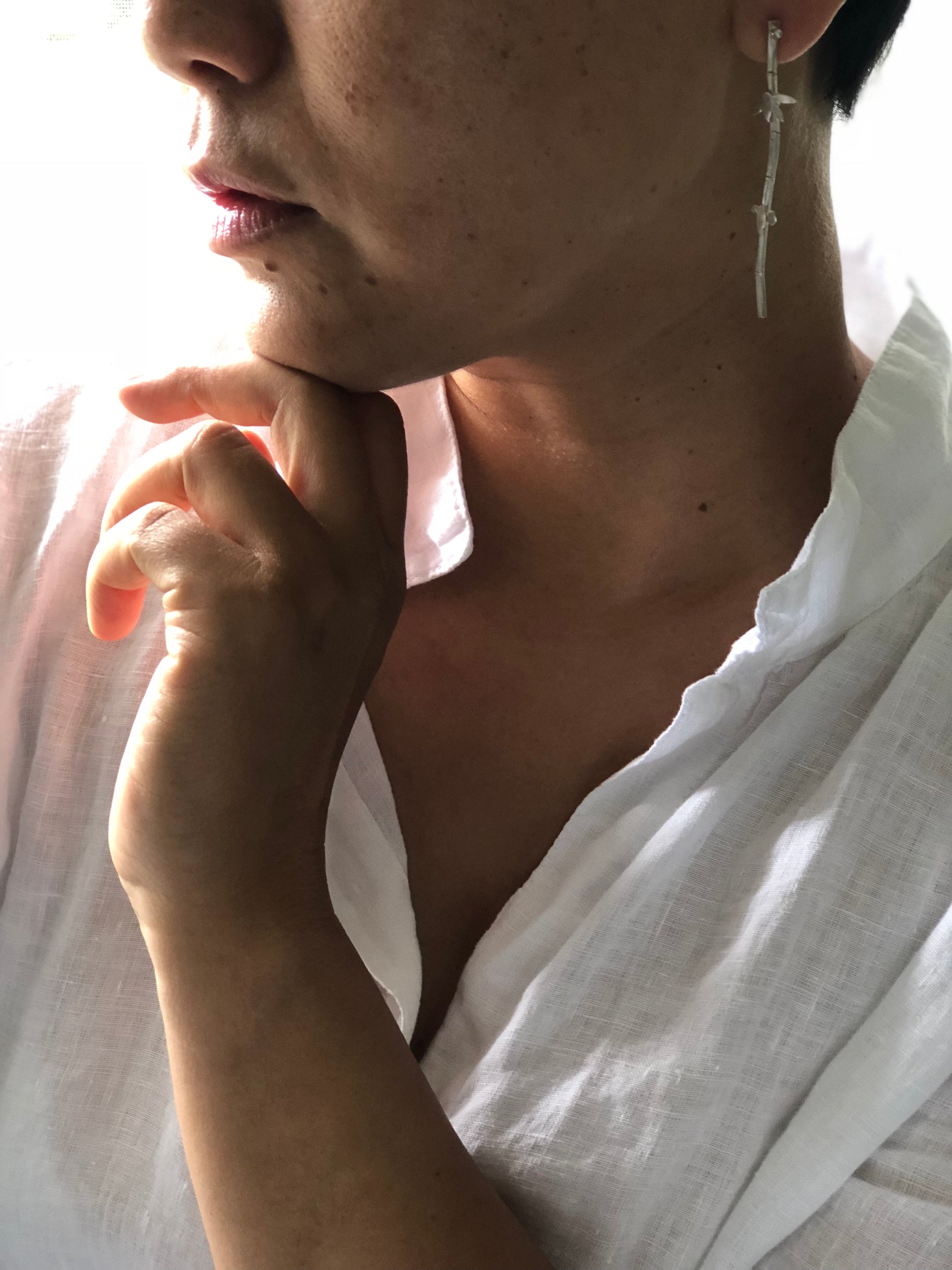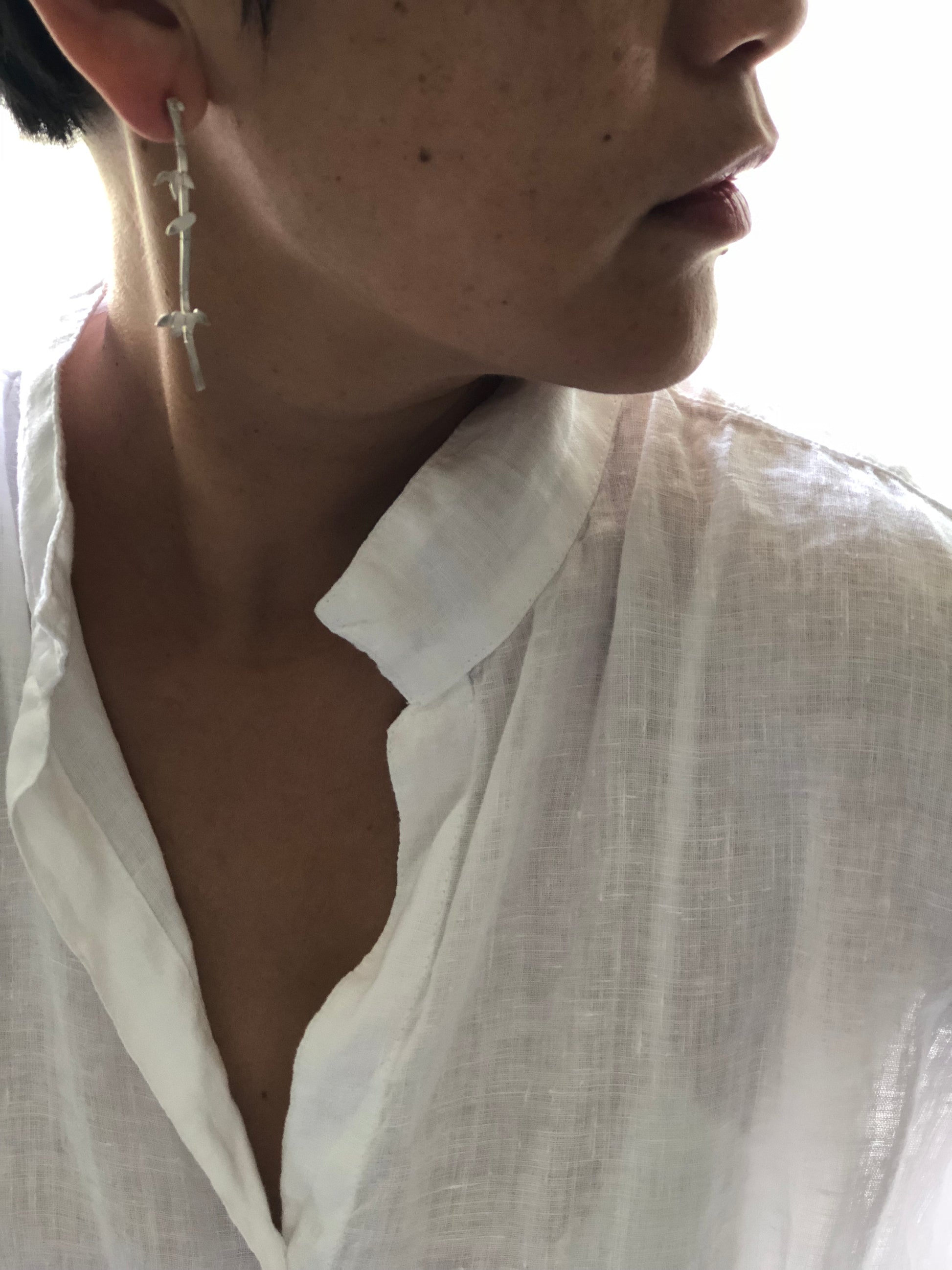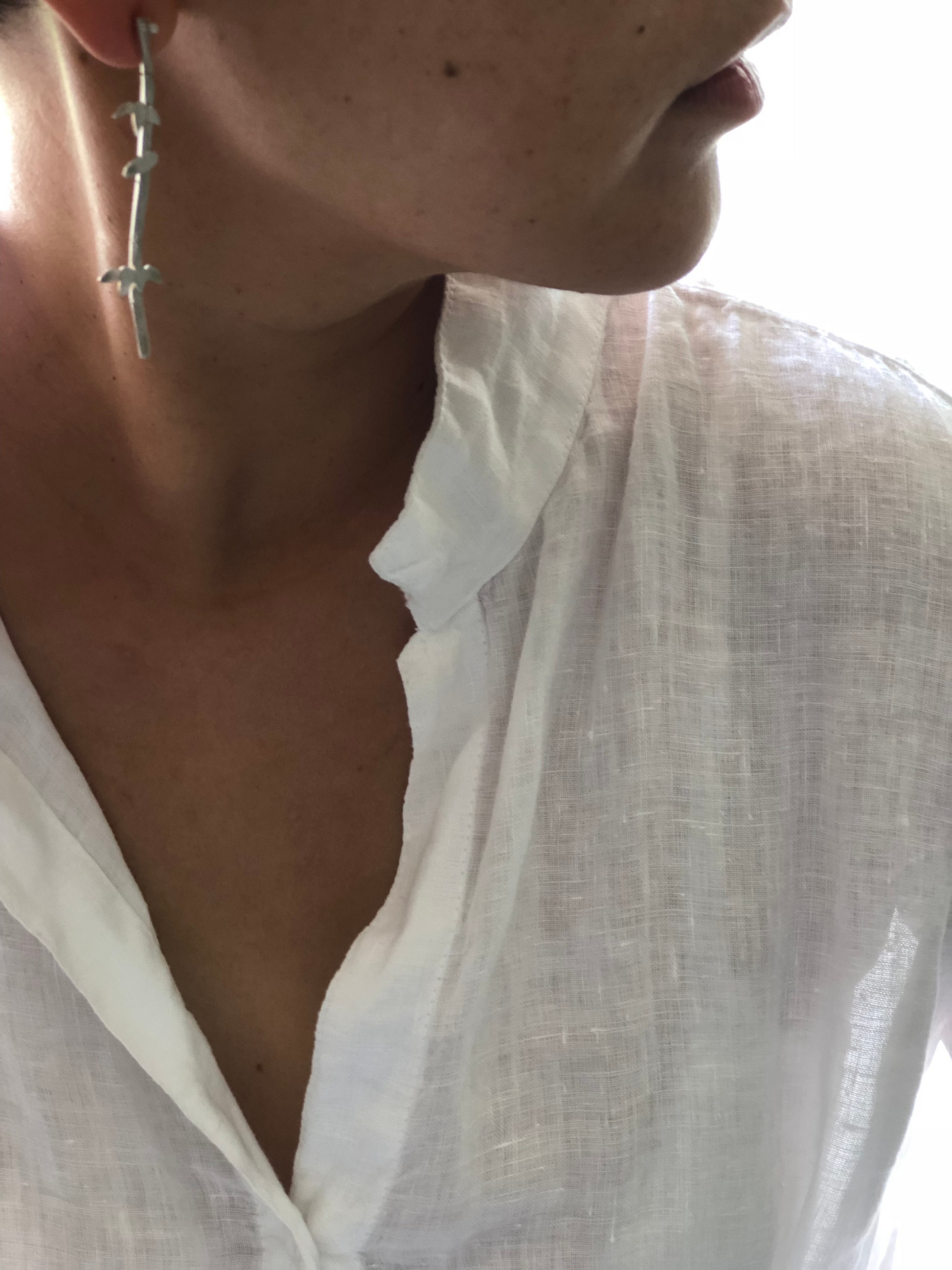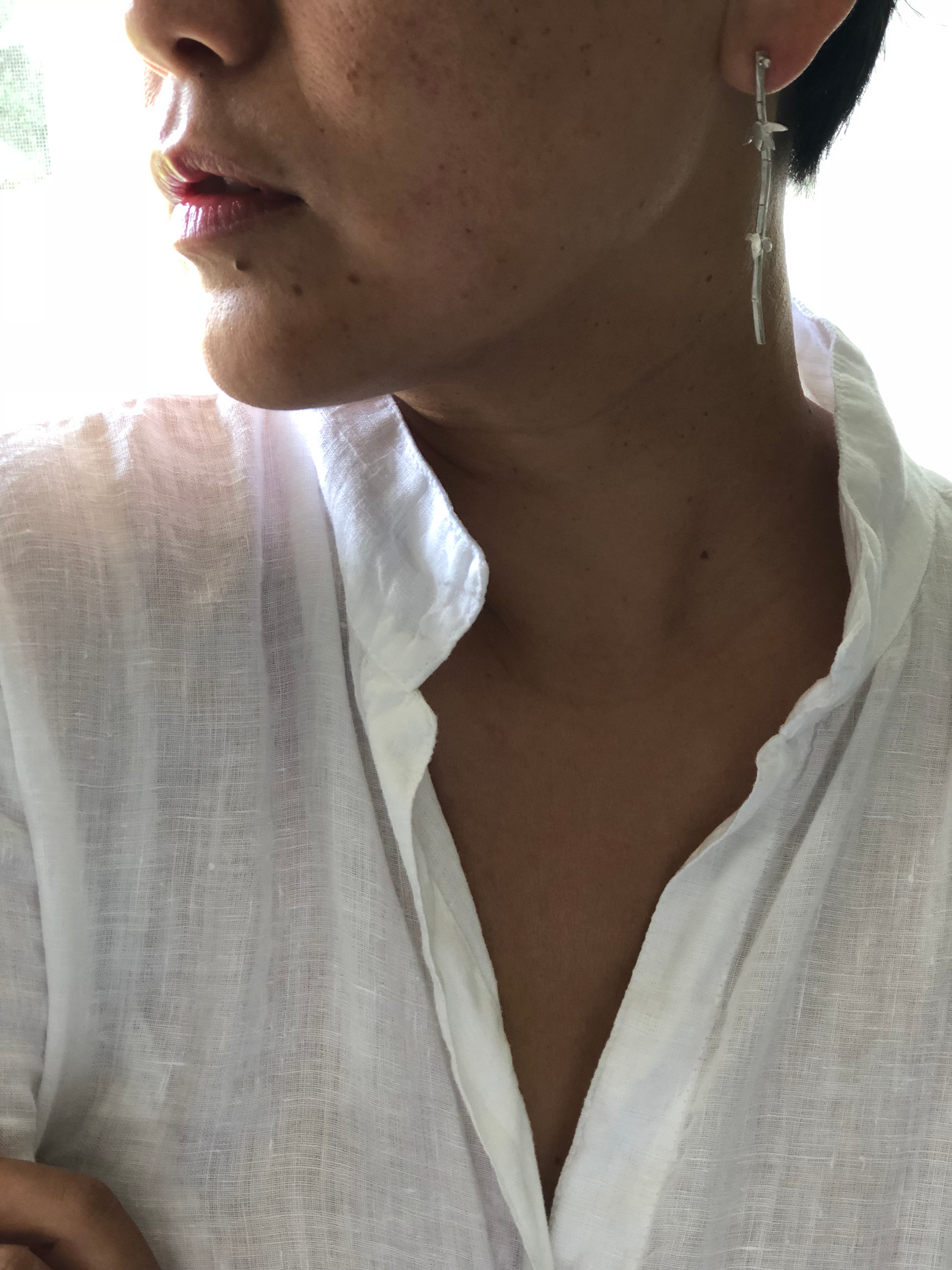 Inspired by bamboo, hand patterned and hammered on fine silver .