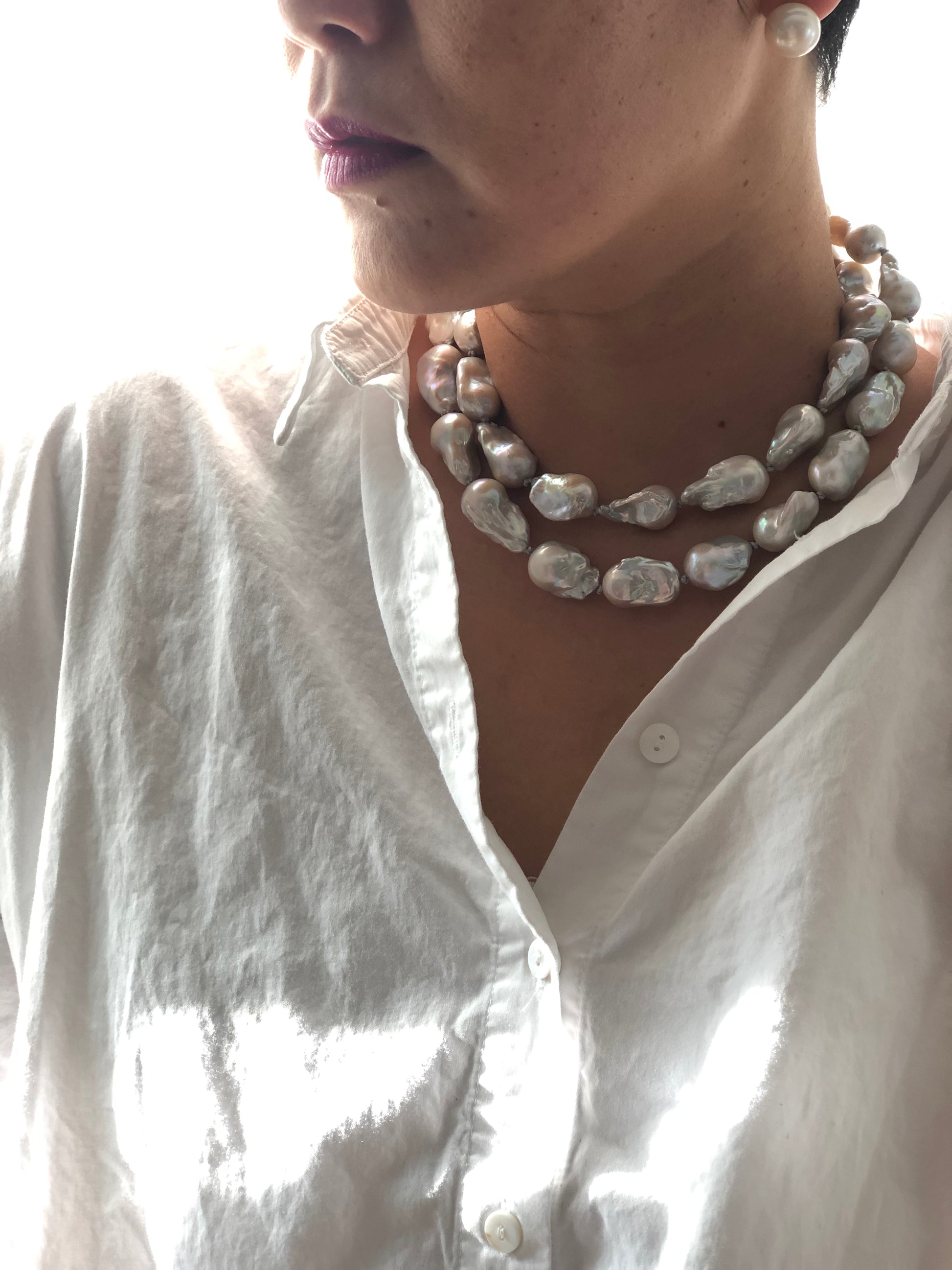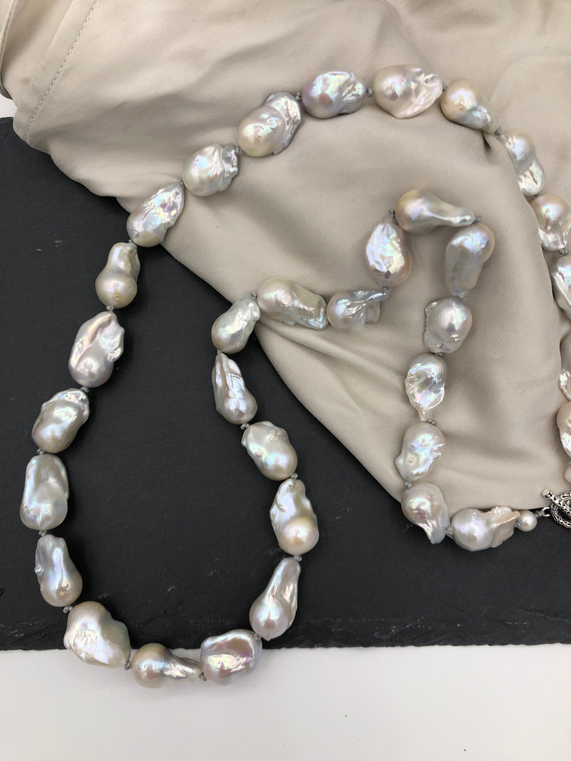 Grade 6A baroque pearl strand, hand knotted between each beads, can be wore long or doubled.