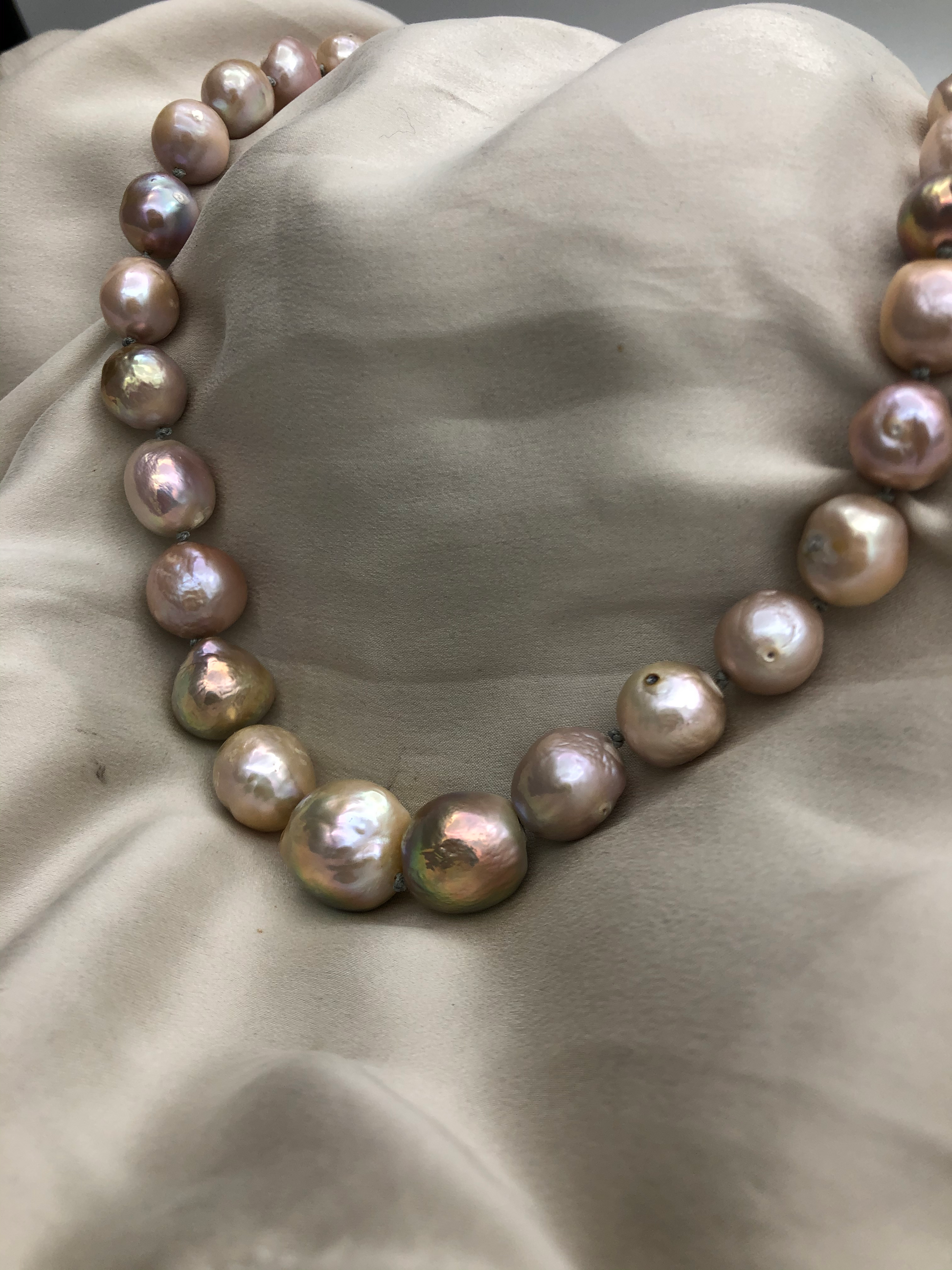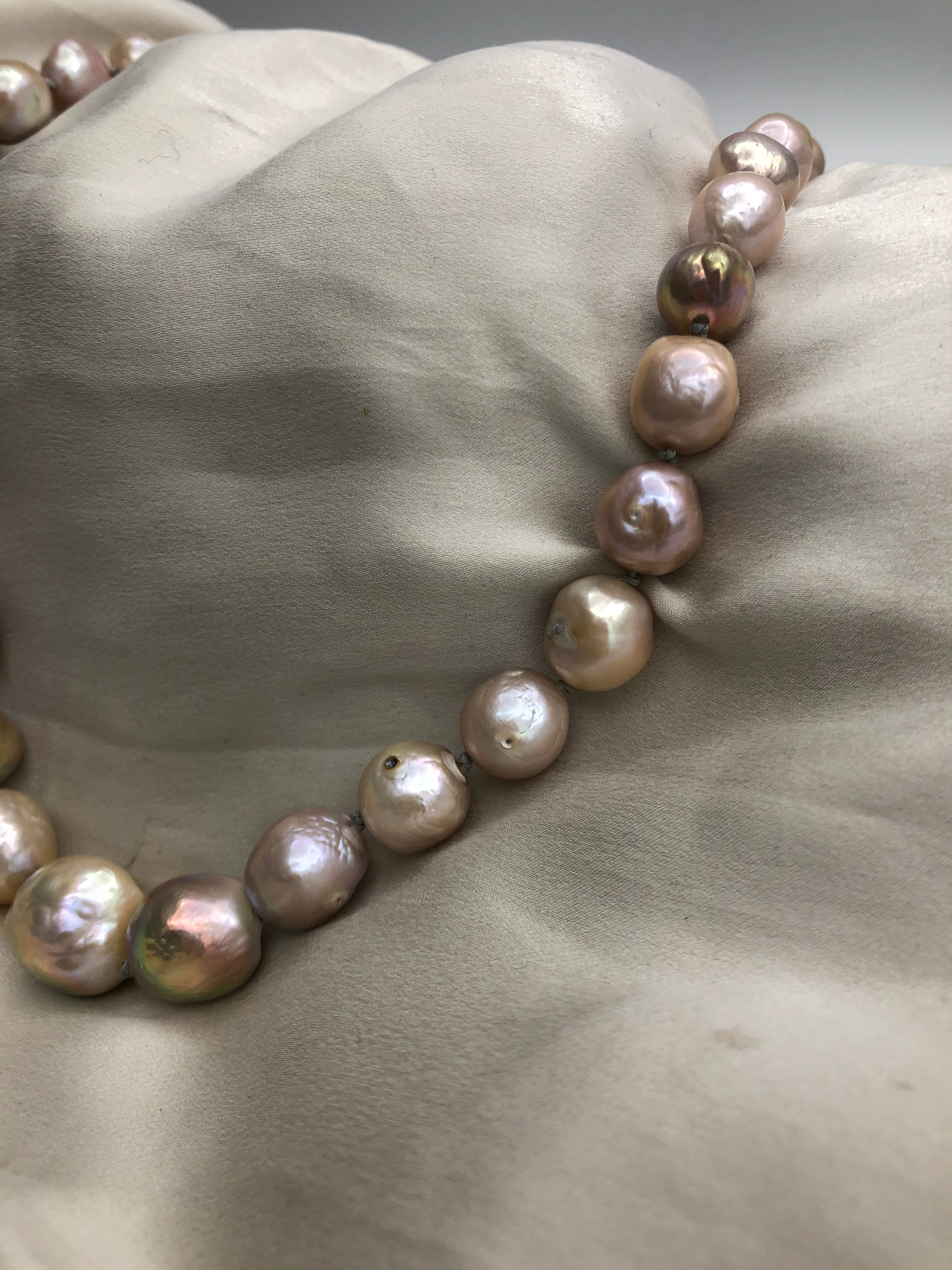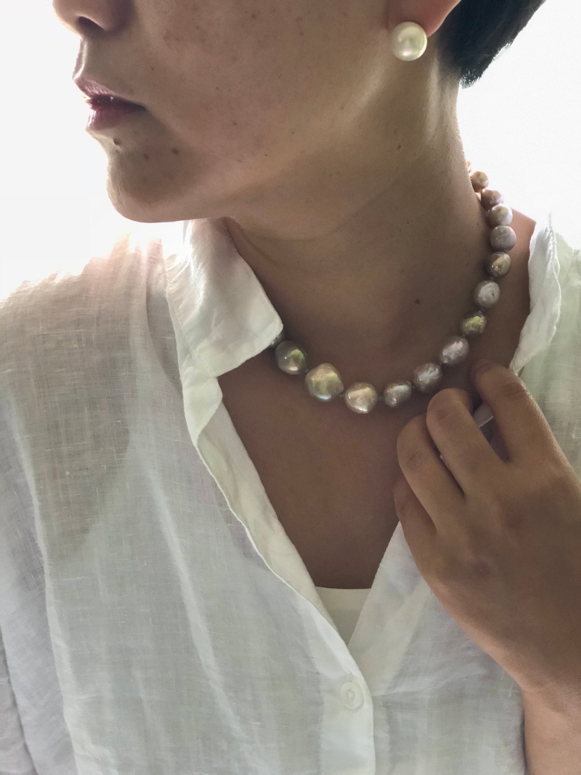This type of pearl is called Edson, they are bigger in size, and more luster than usual, but sometimes has a little bit textures. You can wear as a single strand , or layer it up with other pearl, or even other necklaces . Hand knotted between each beads, can be resized for special request.
