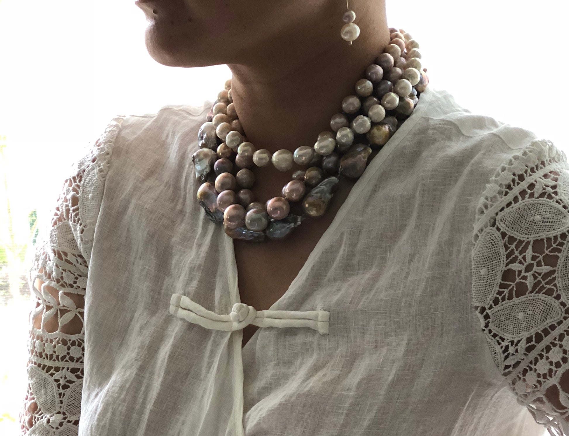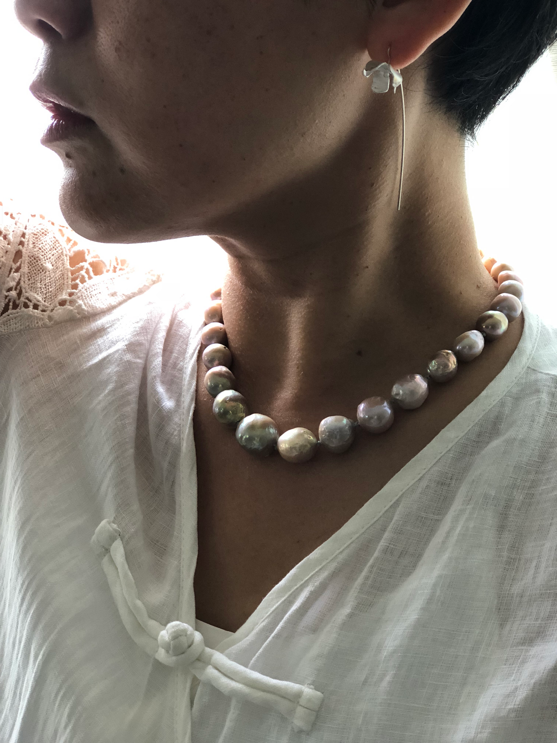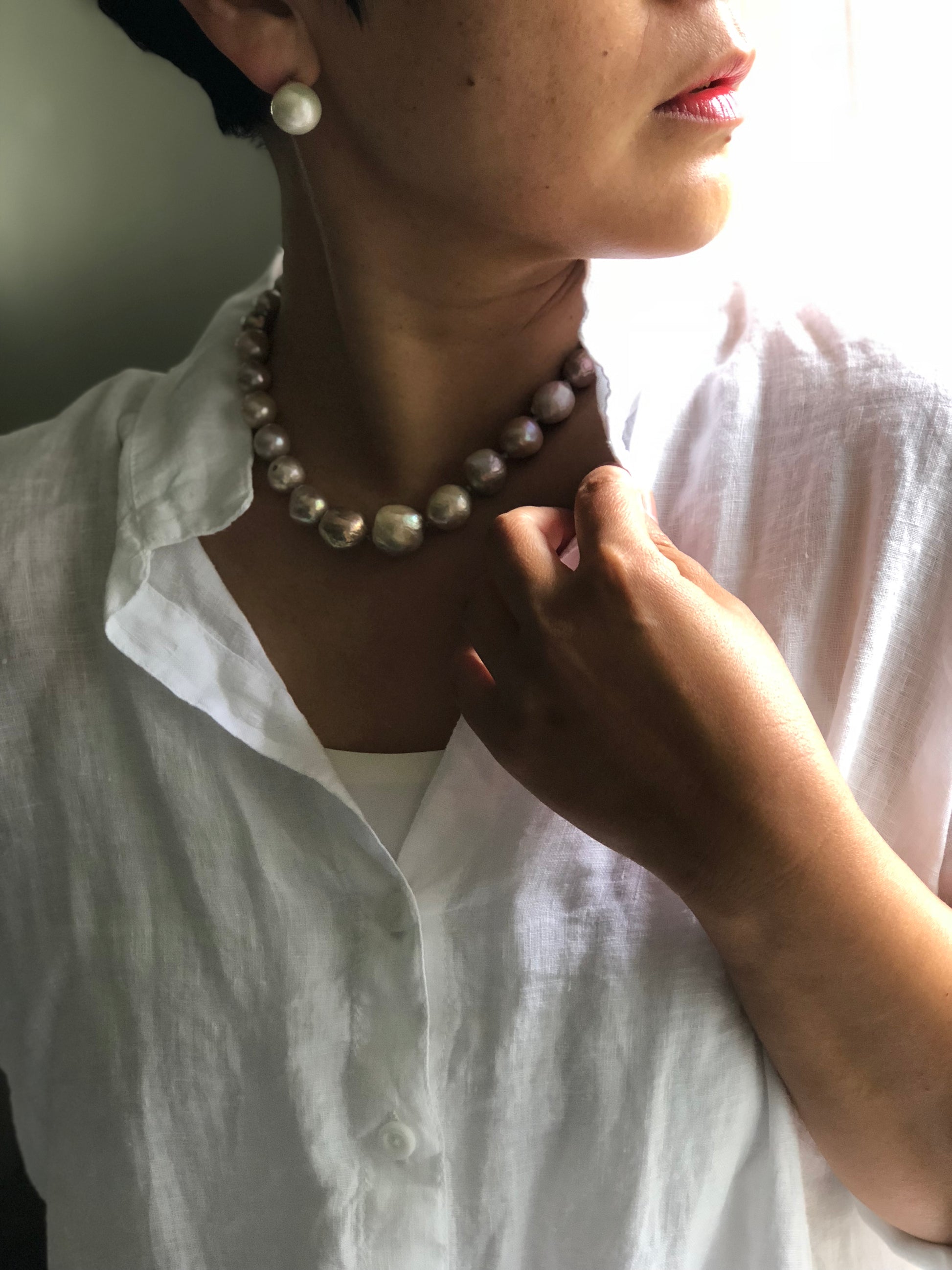 This type of pearl is called Edson, they are bigger in size, and more luster than usual, but sometimes has a little bit textures. You can wear as a single strand , or layer it up with other pearl, or even other necklaces . Hand knotted between each beads, can be resized for special request.