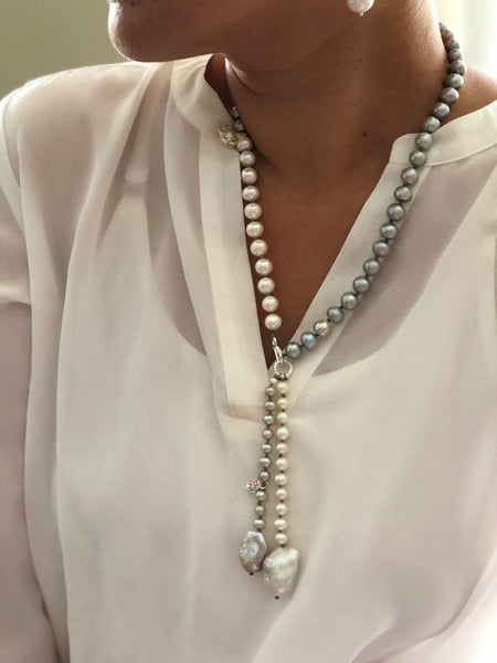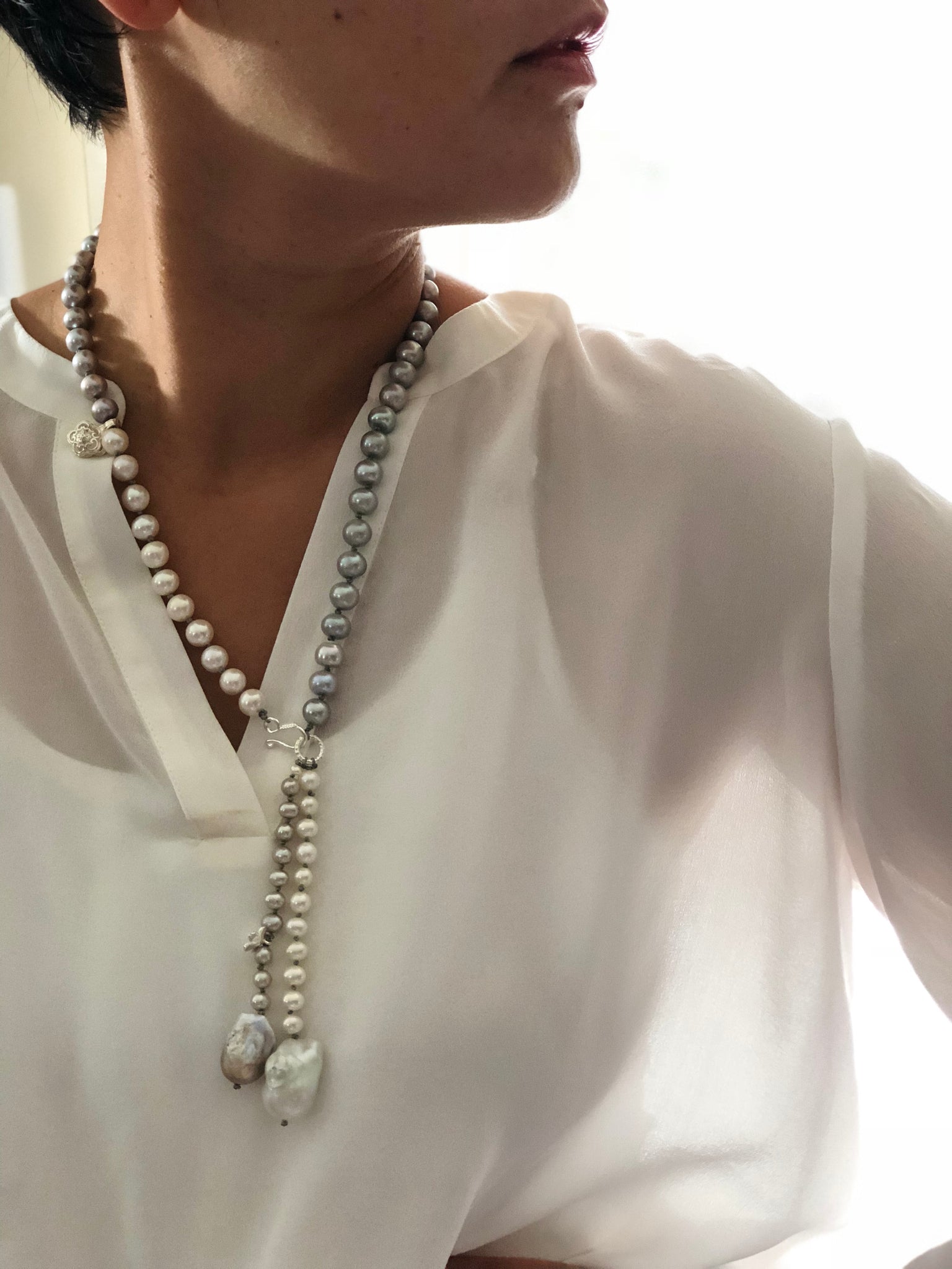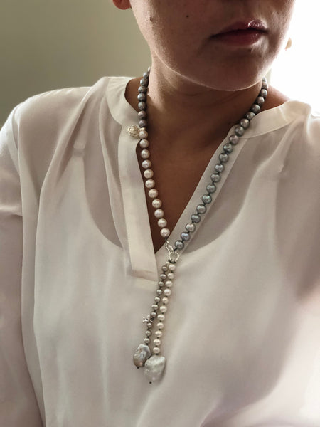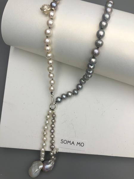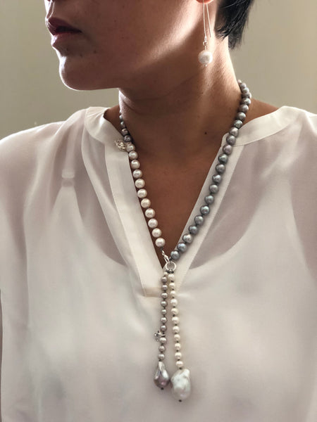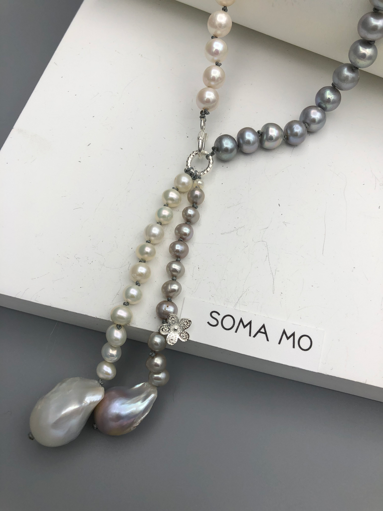 Materials : Fresh water pearl in rare grey color and whiter, baroque pearl, sterling silver