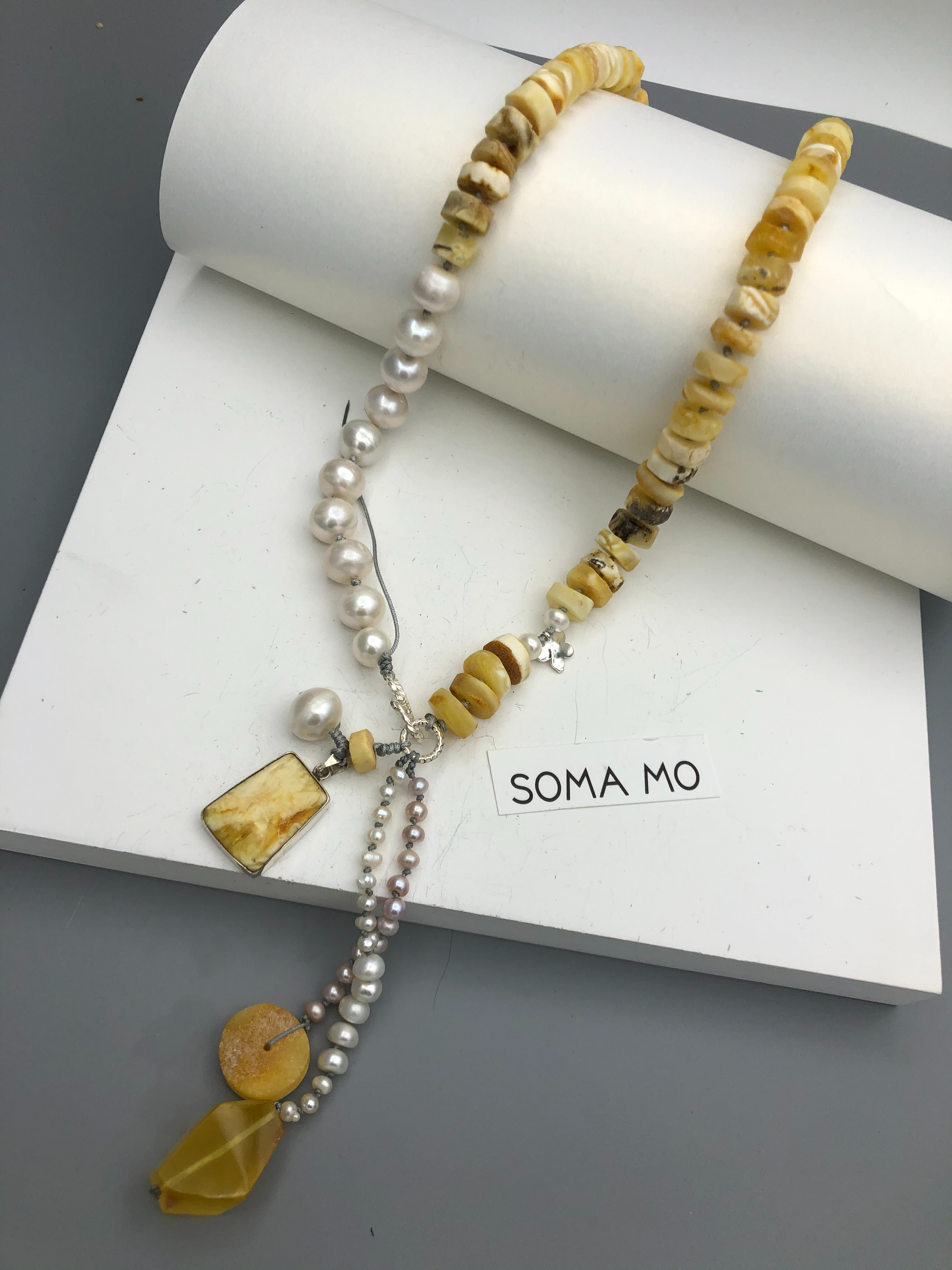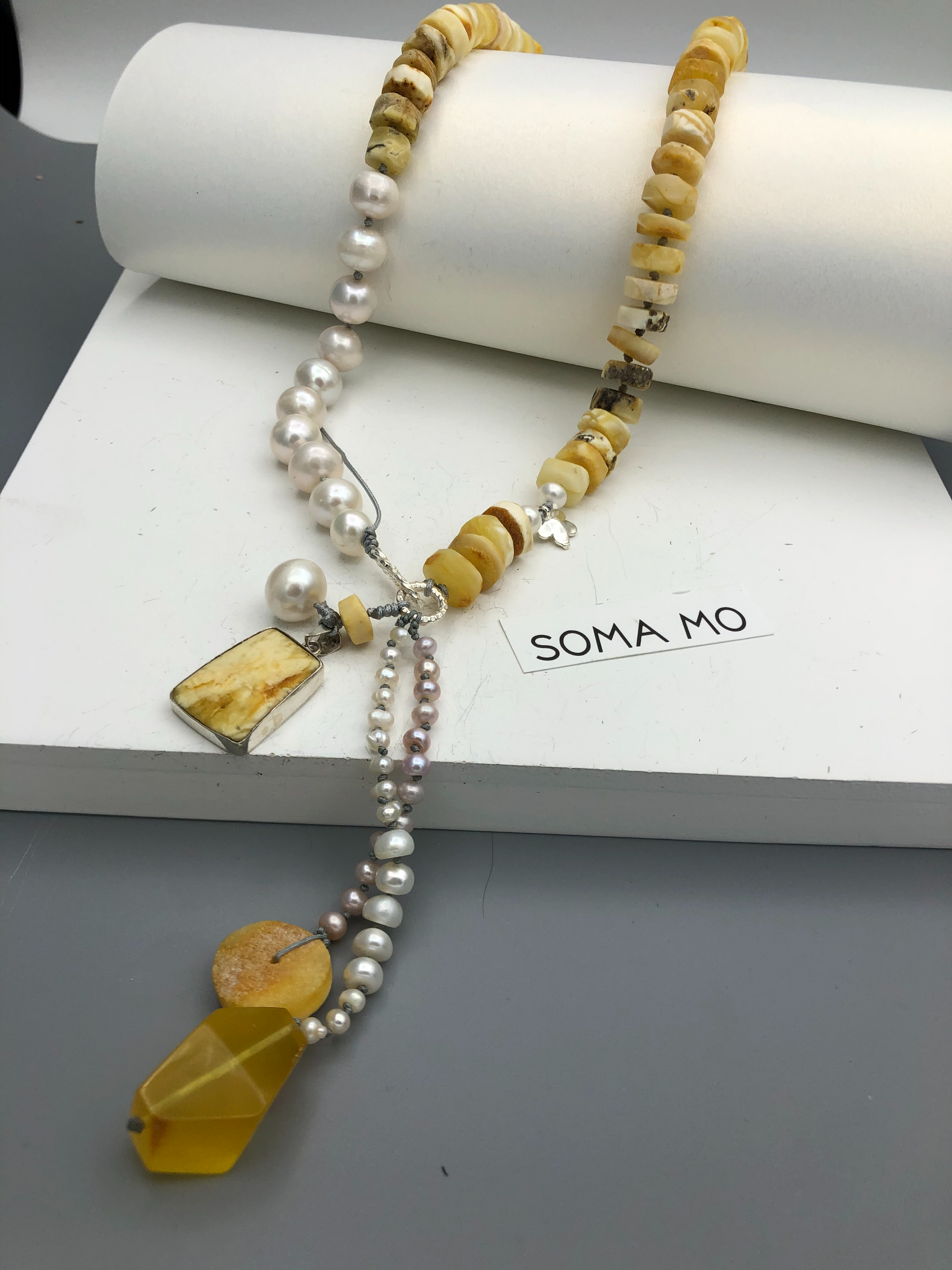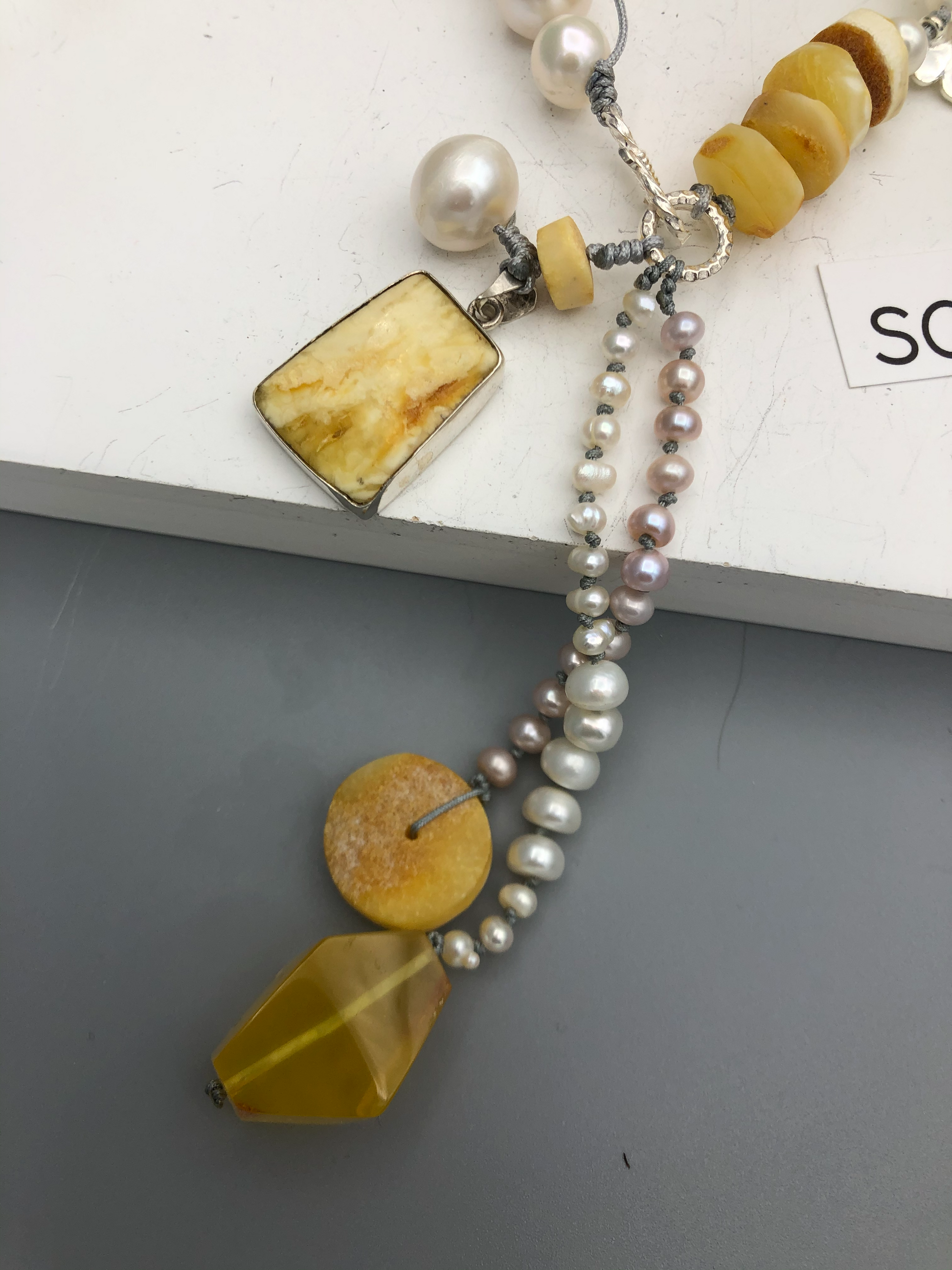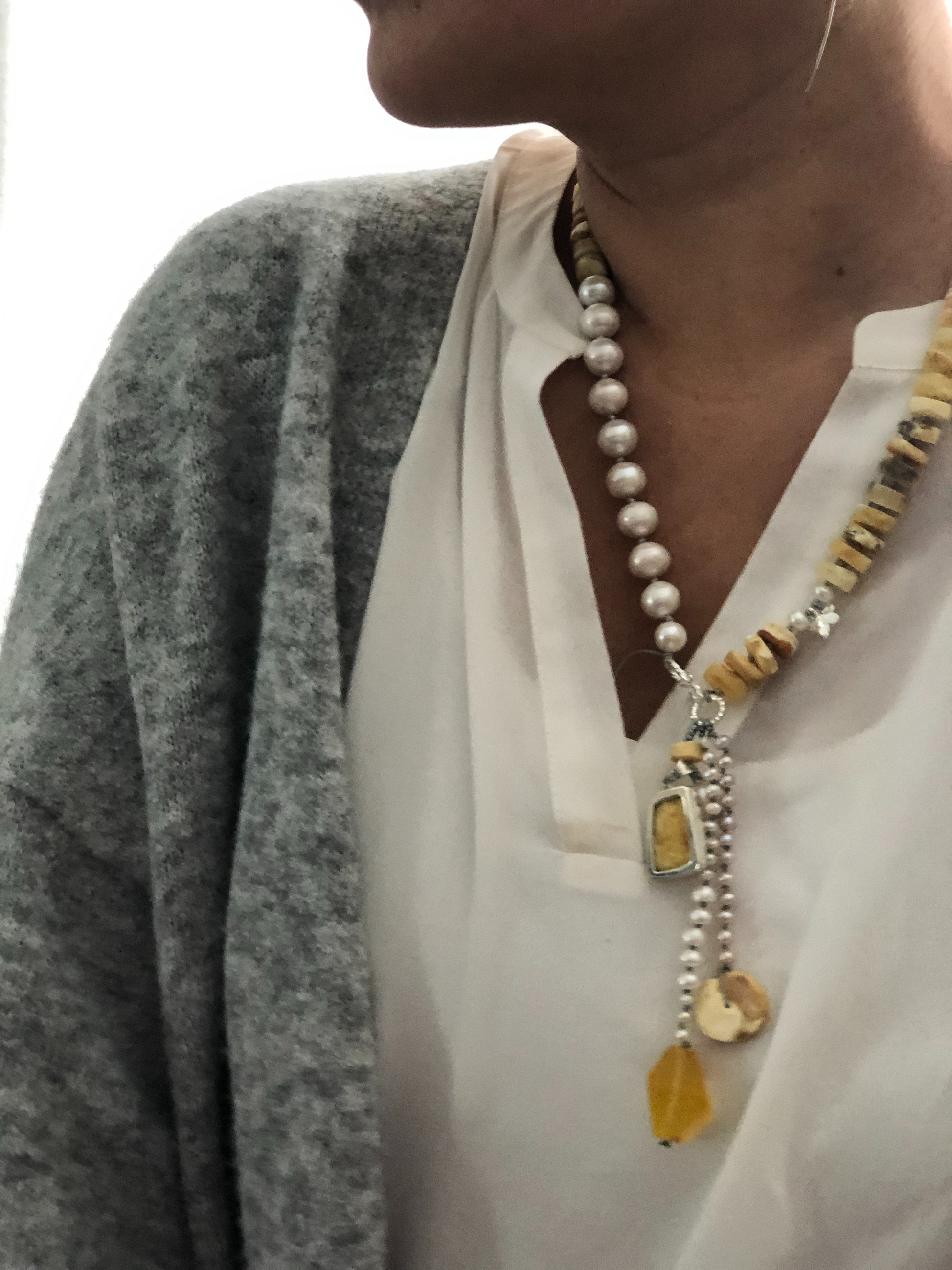 Materials : Baltic amber , fresh water pearl, amber pendent with silver