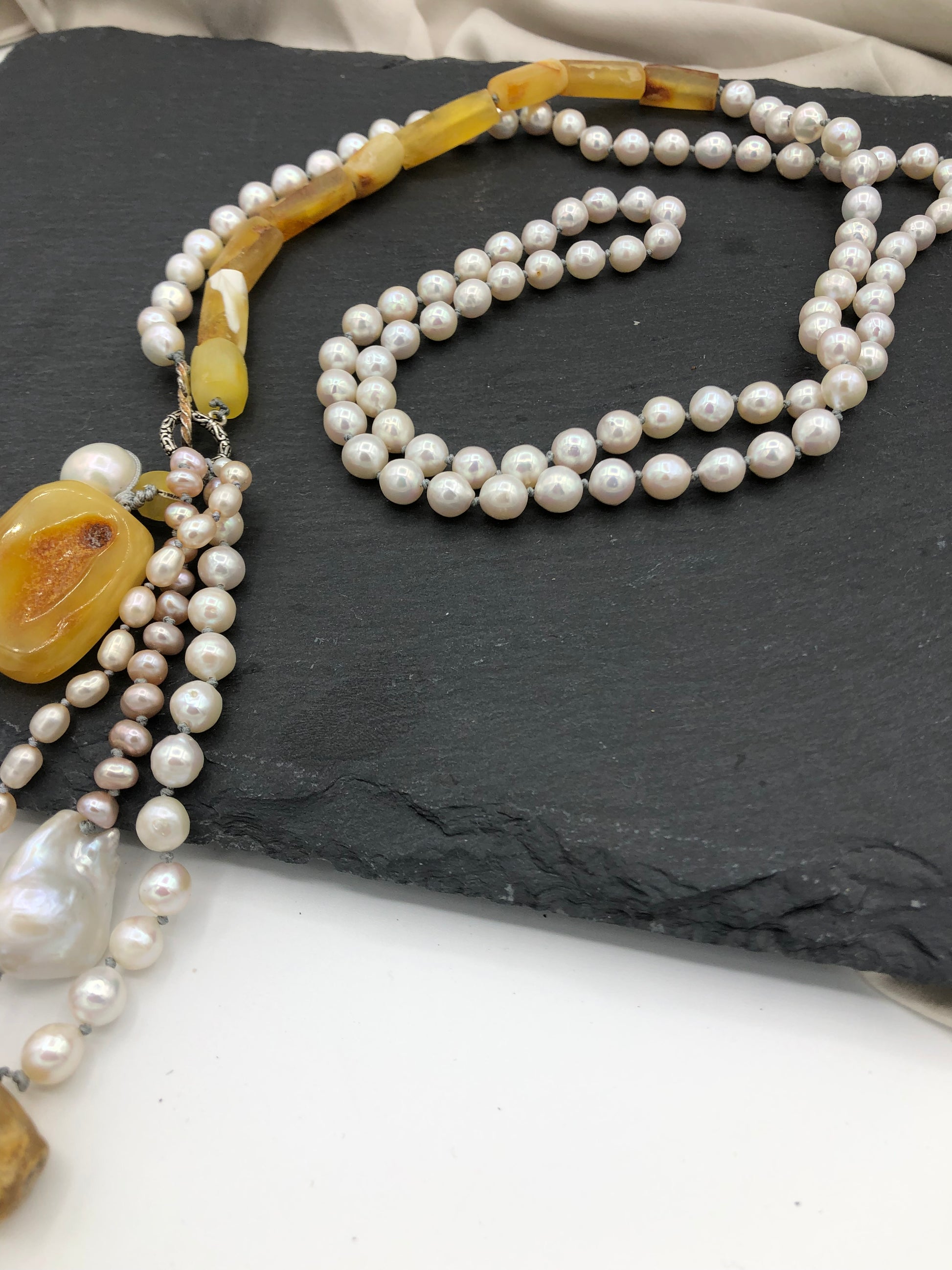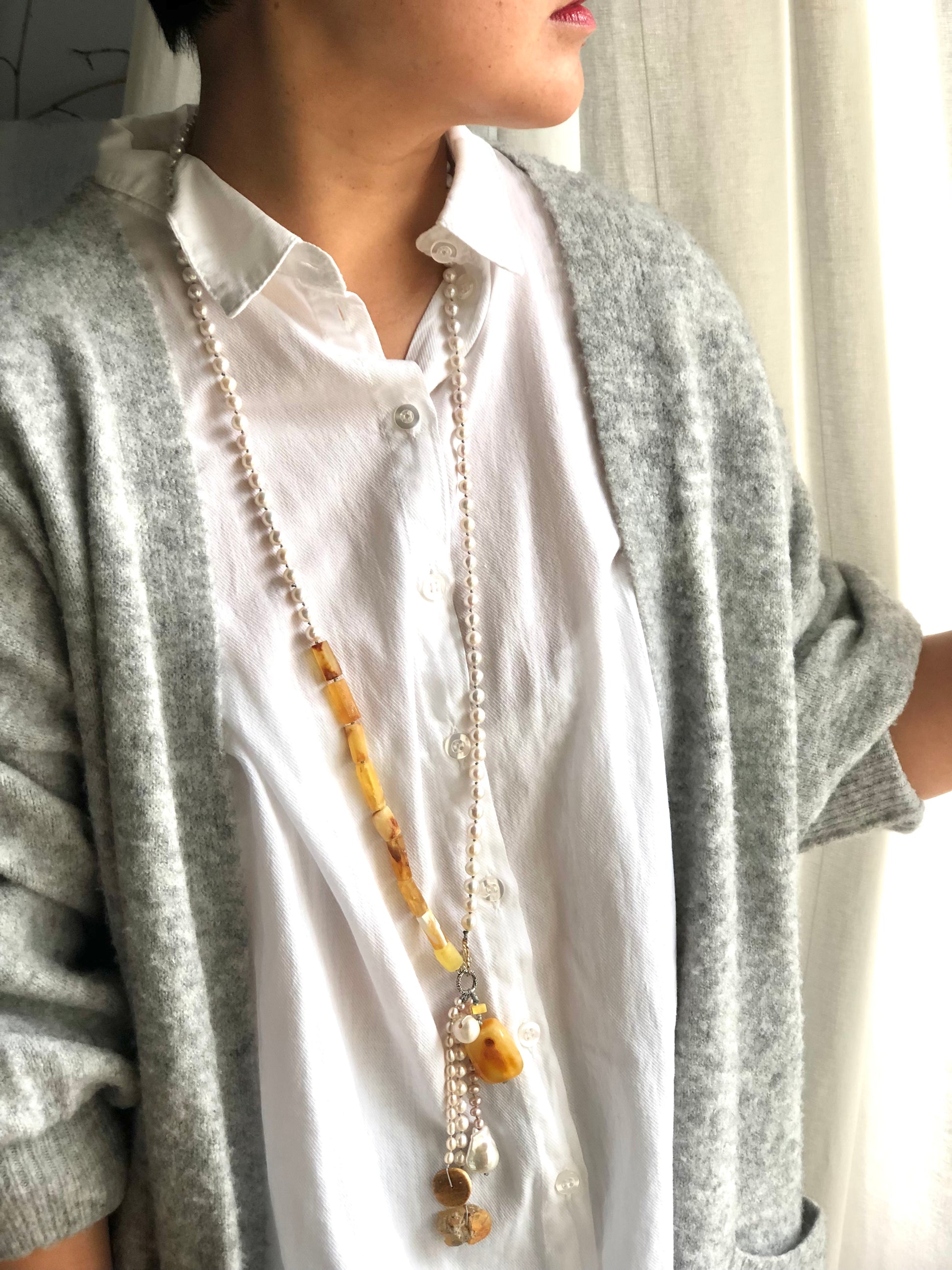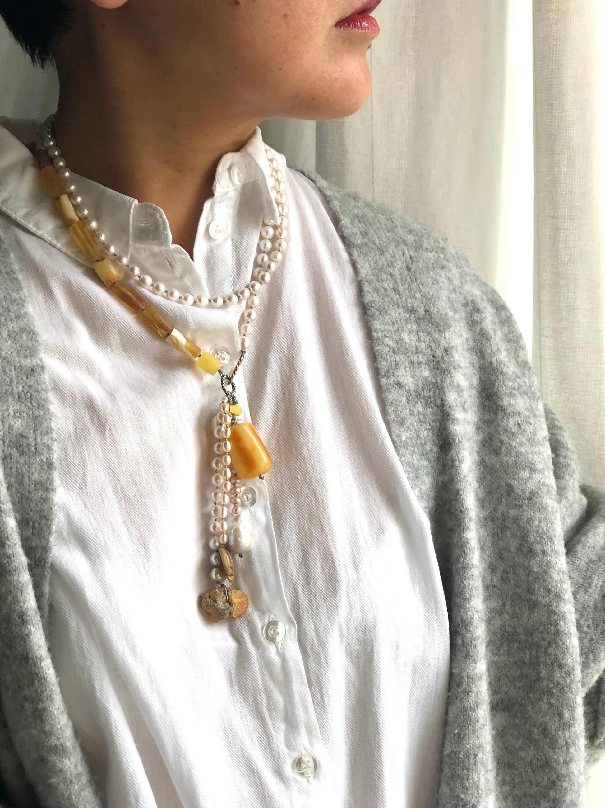 Hand knotted between each beads, this necklace can be wore long or doubled.