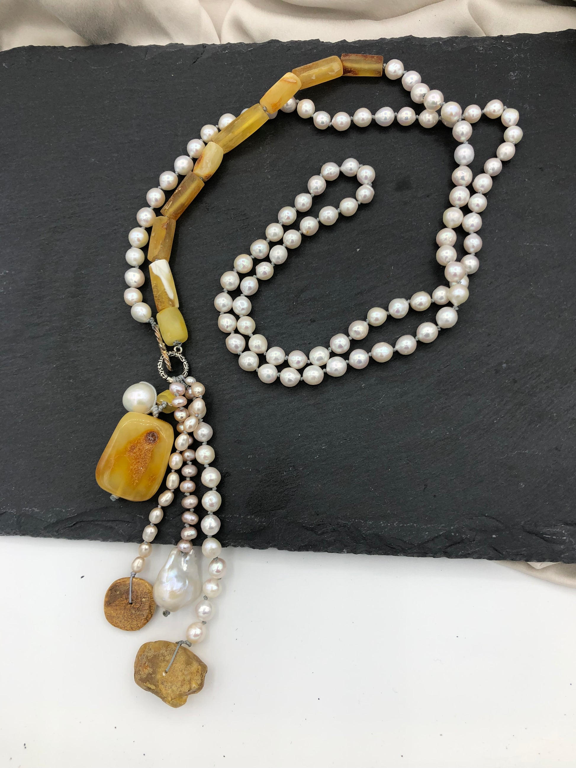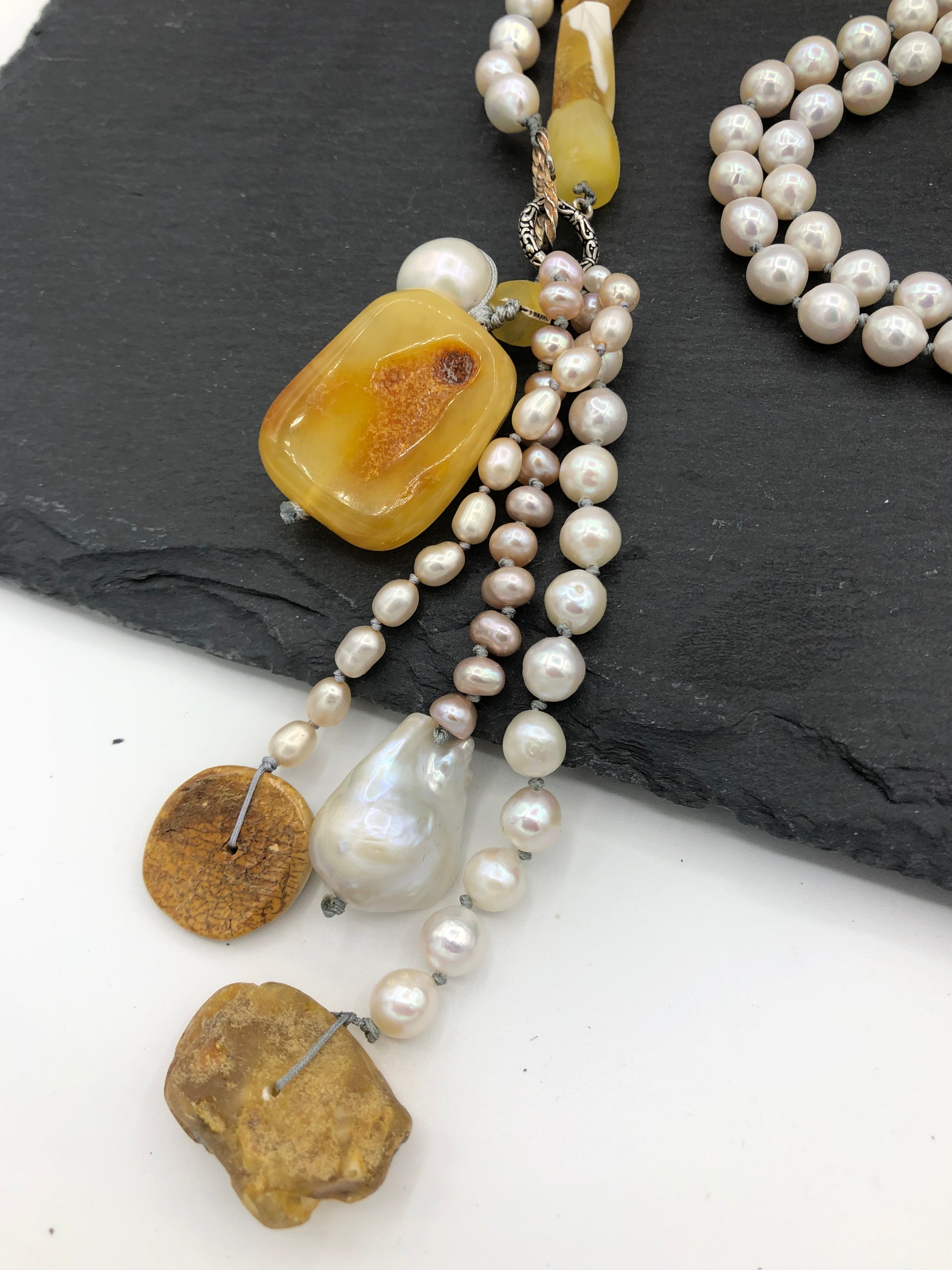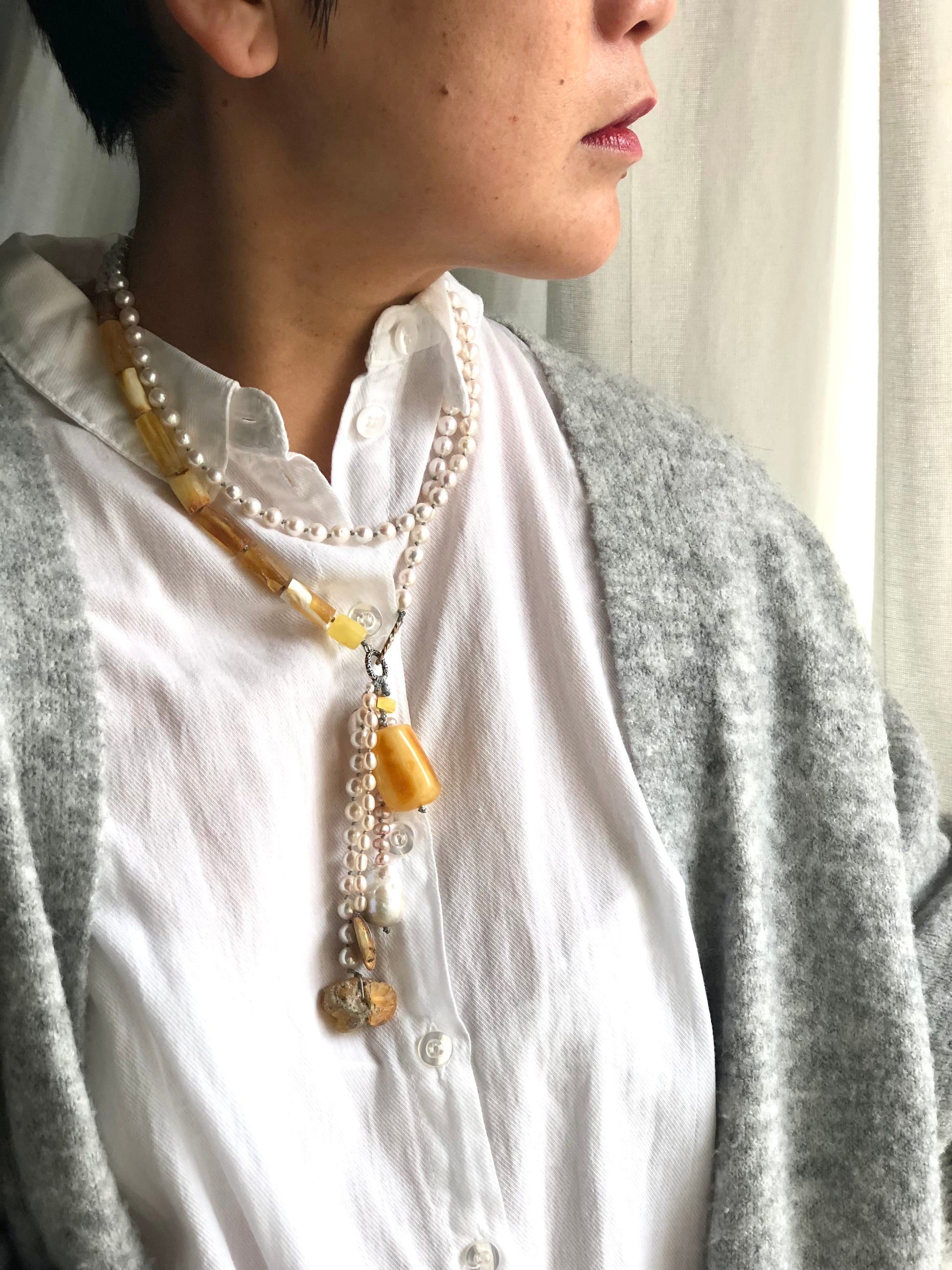 Hand knotted between each beads, this necklace can be wore long or doubled.