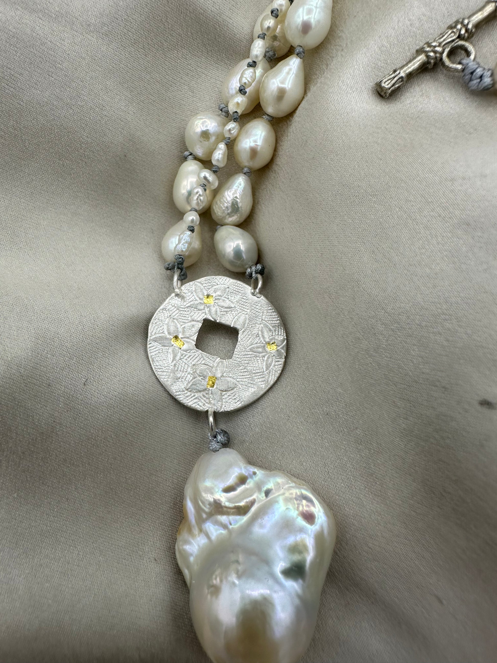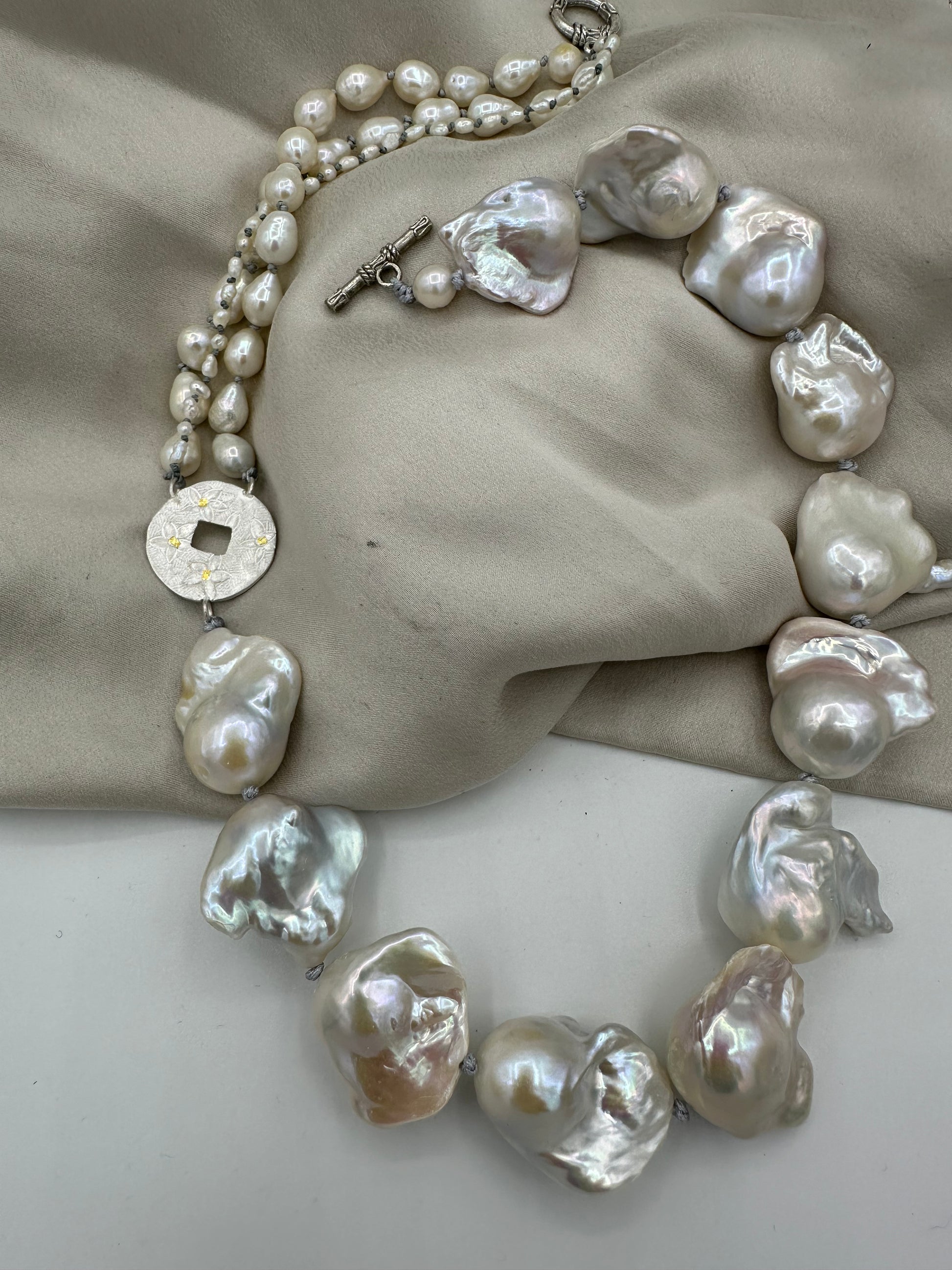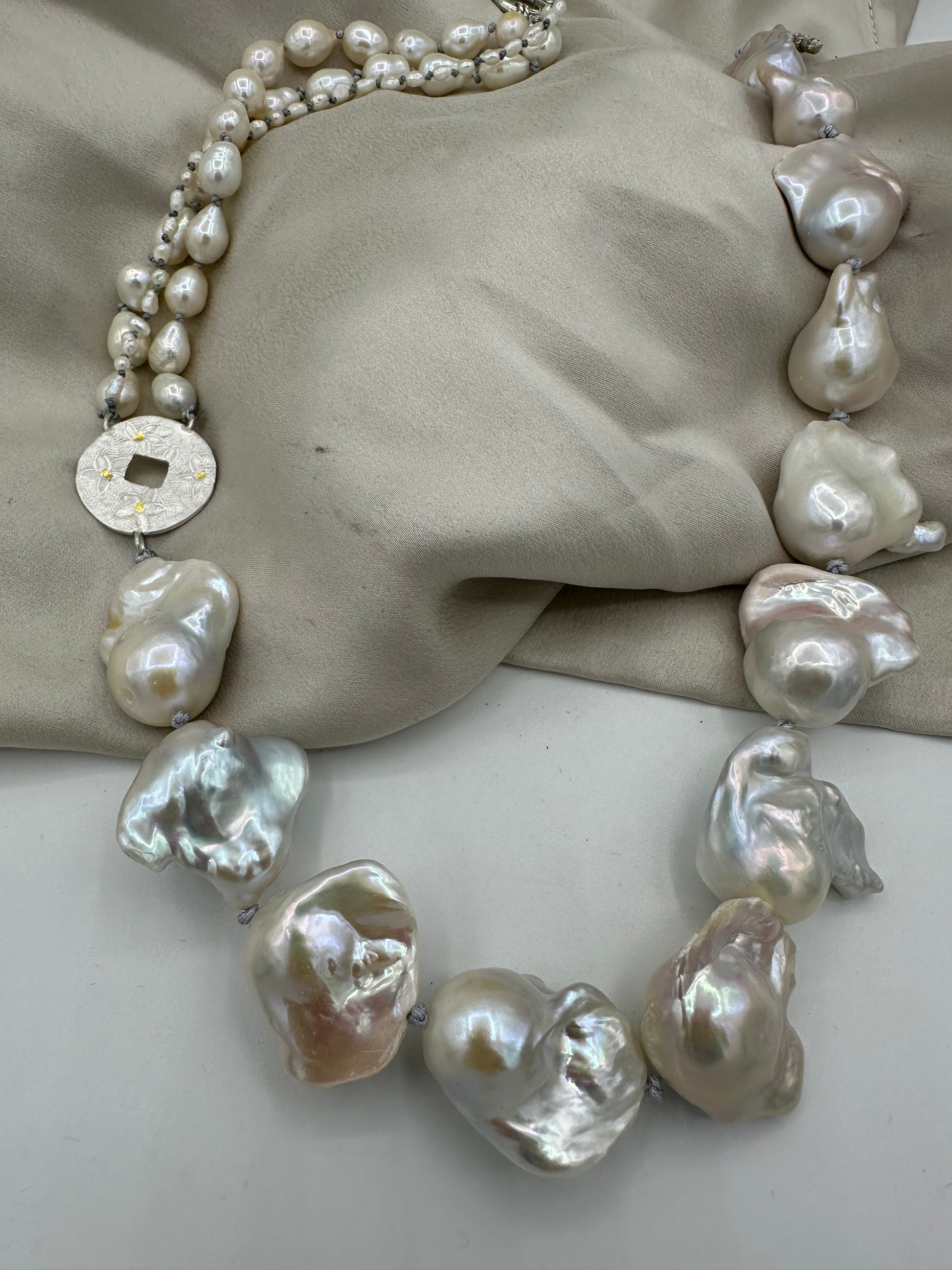 Materials : Baroque pearl, Fresh water pearl, fine silver , fine gold (kumboo)