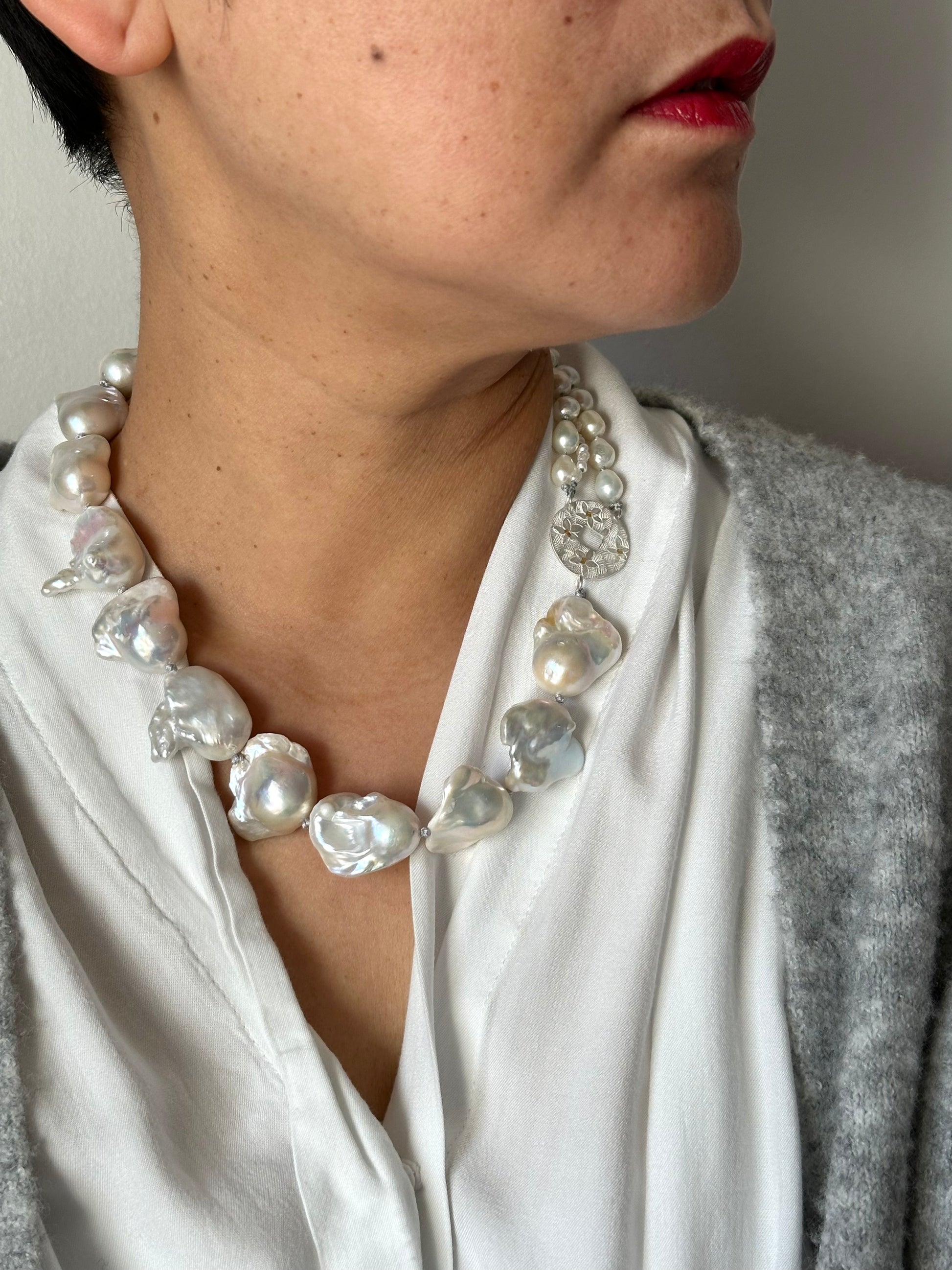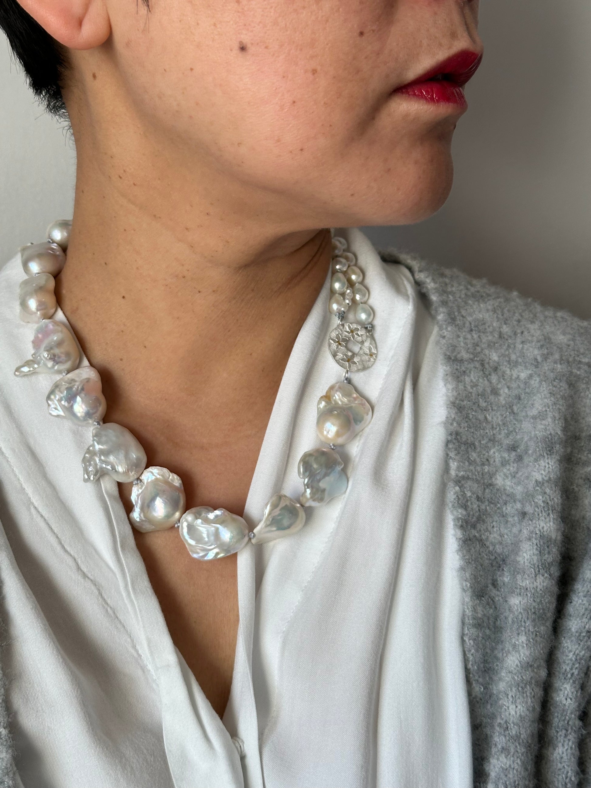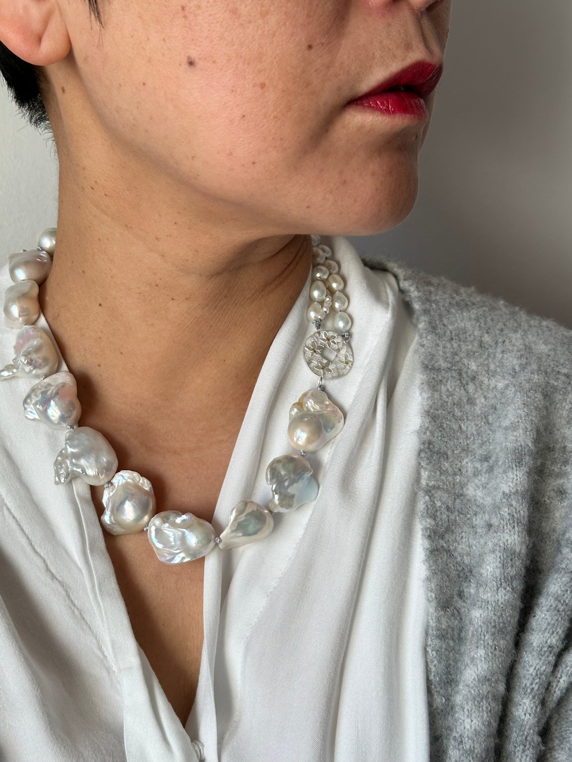 Materials : Baroque pearl, Fresh water pearl, fine silver , fine gold (kumboo)