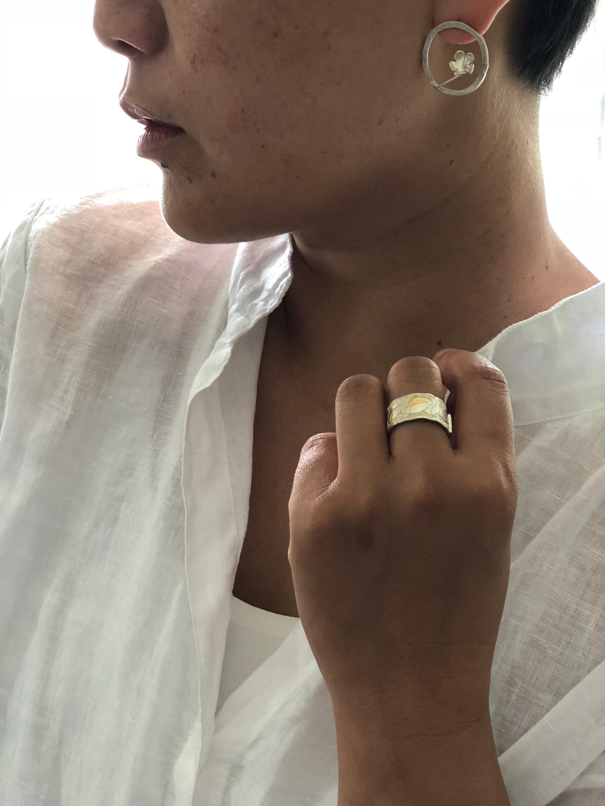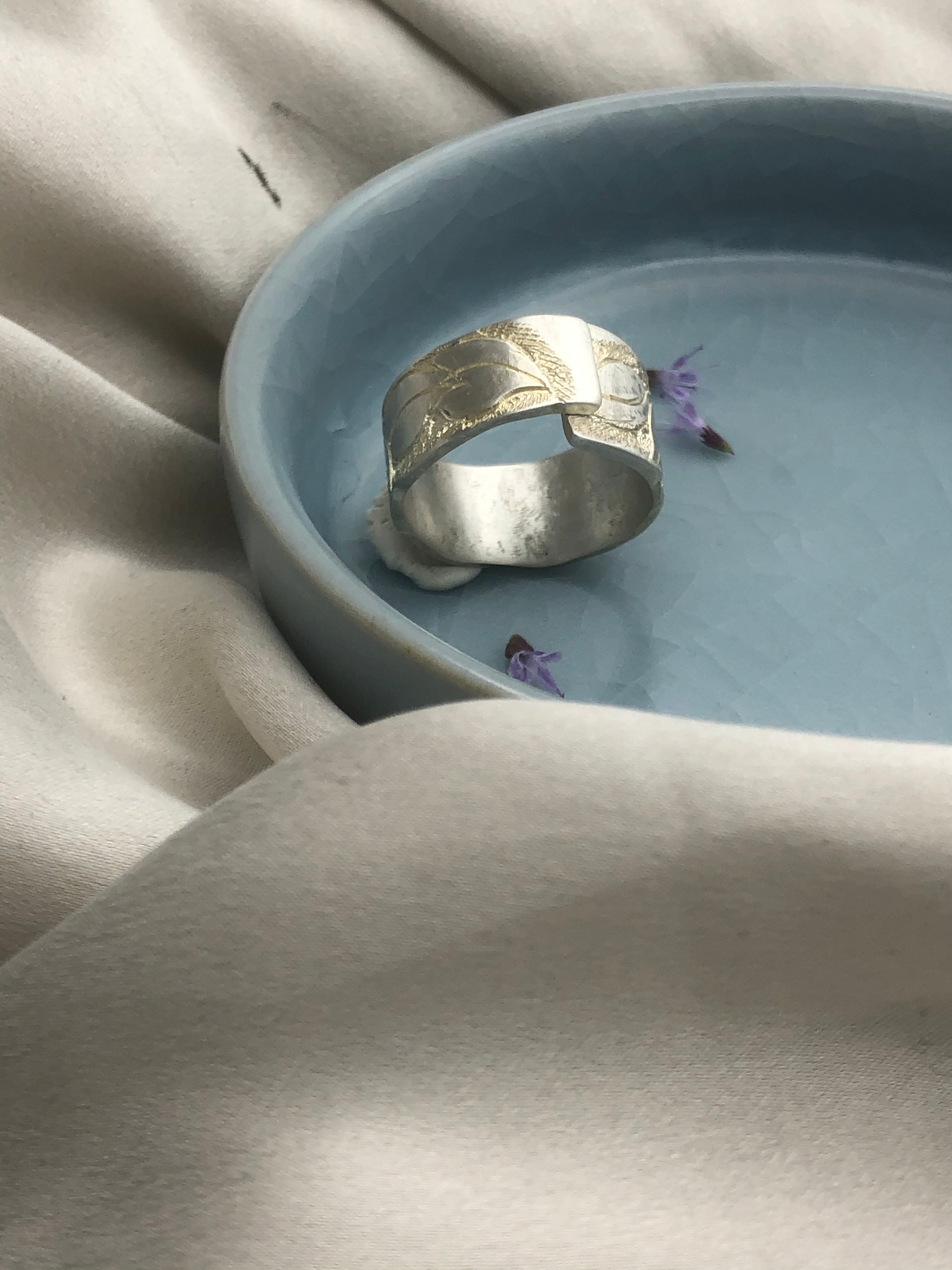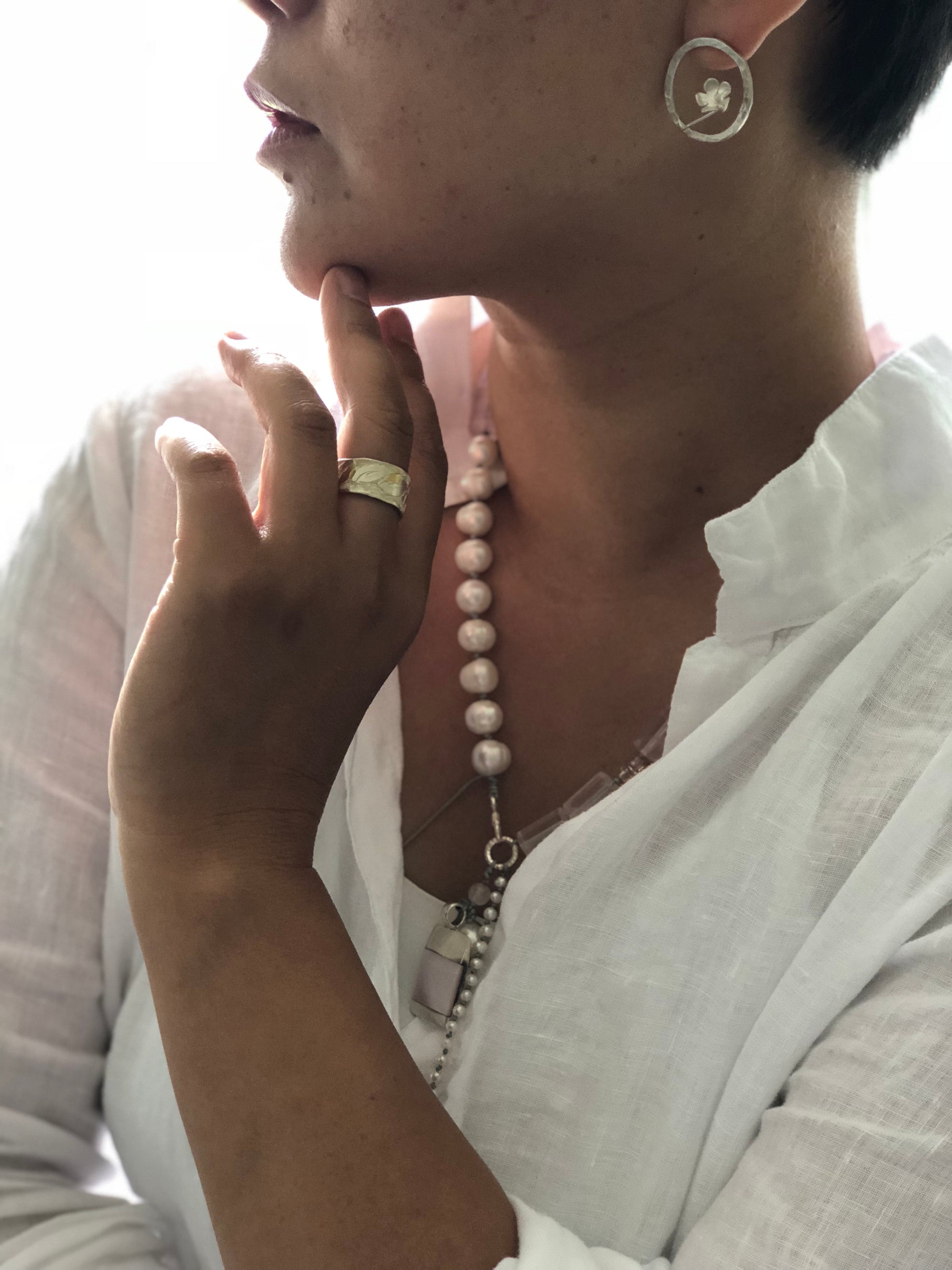 Using traditional Tibetan silver skill, free hand patterned and hammered on fine sliver. Only hand tools are used .