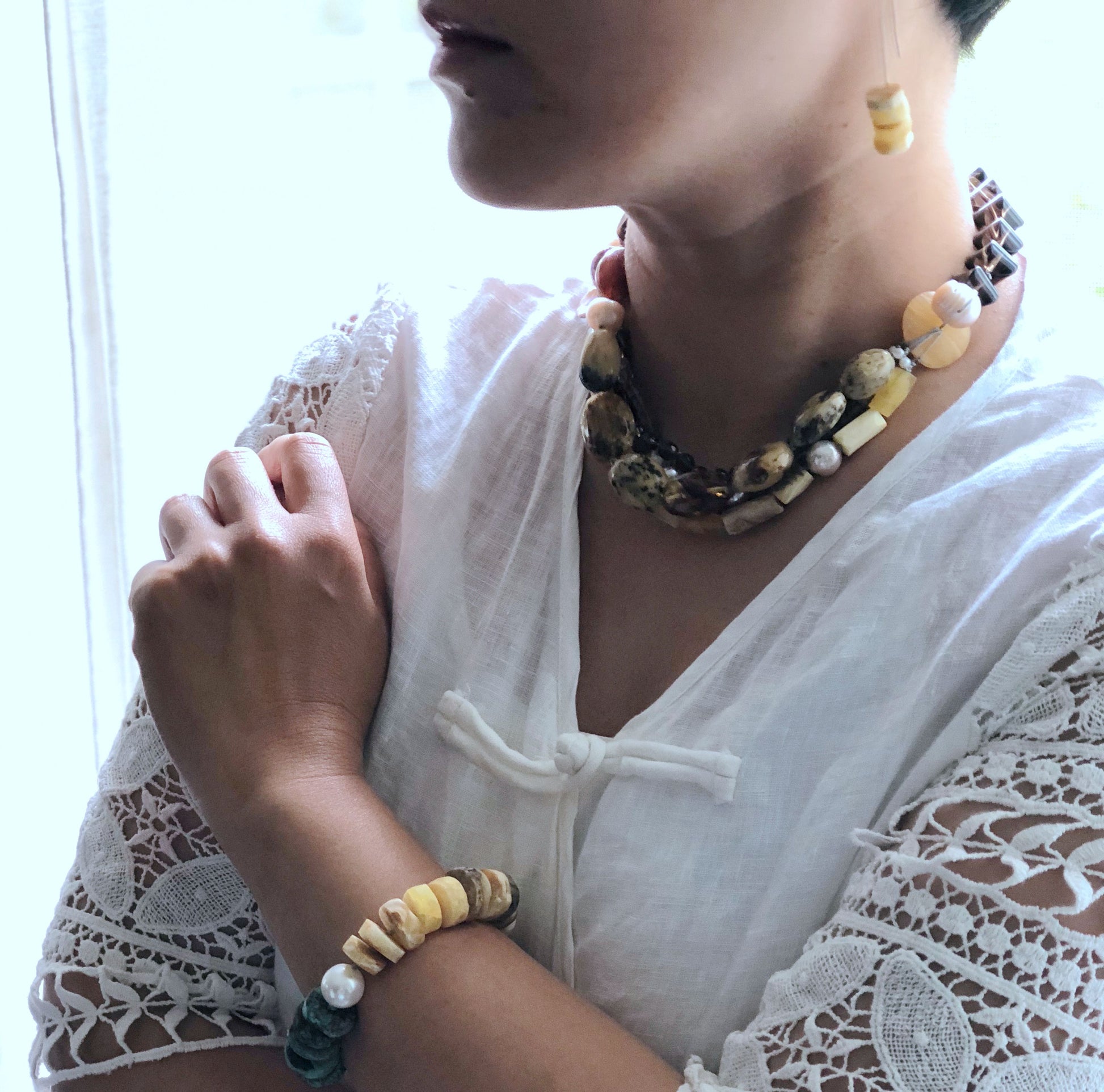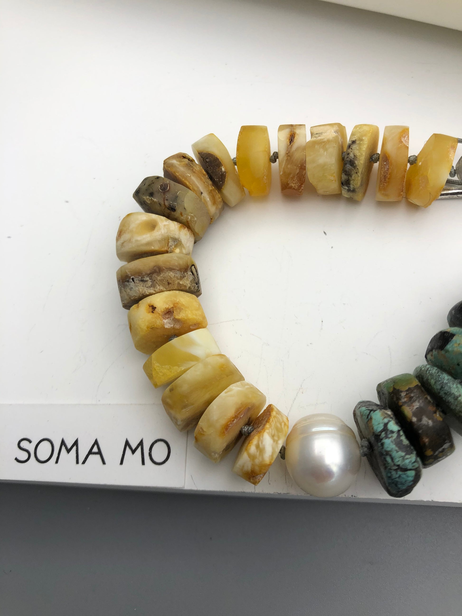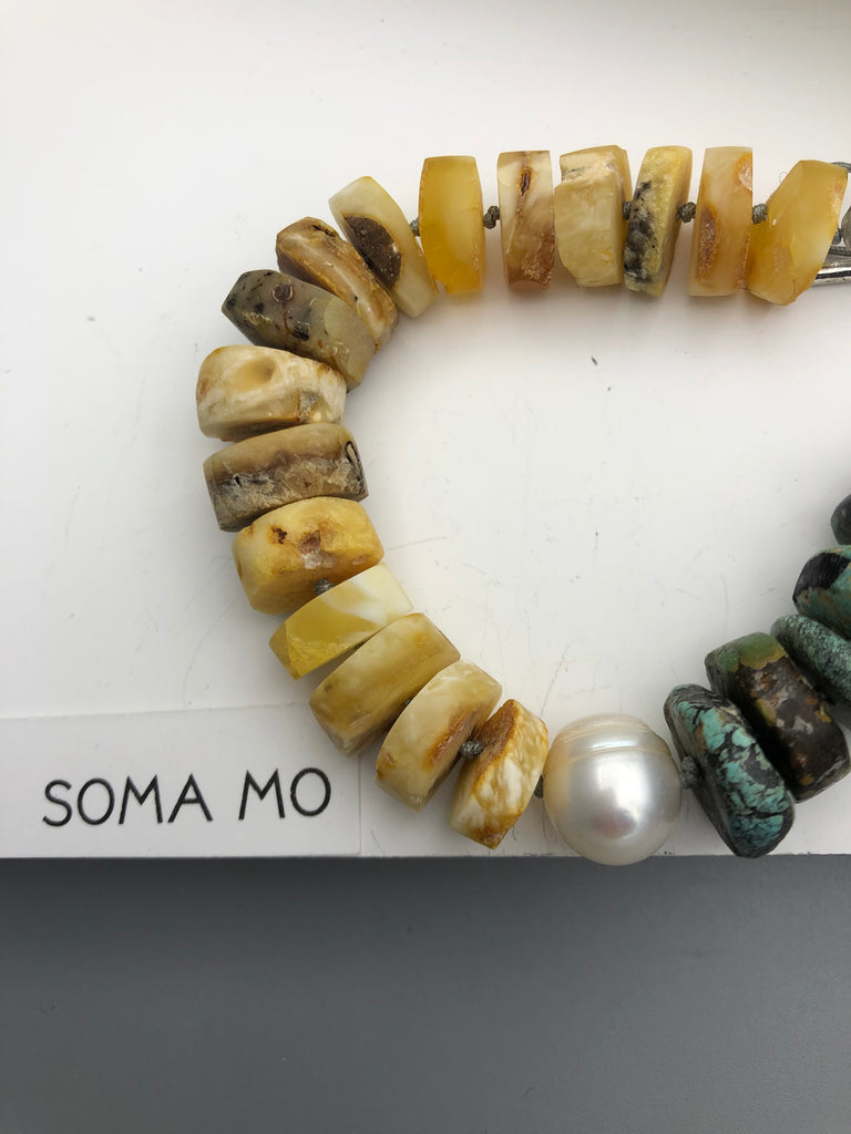 Materials : Baltic amber, fresh water pearl, tequoise