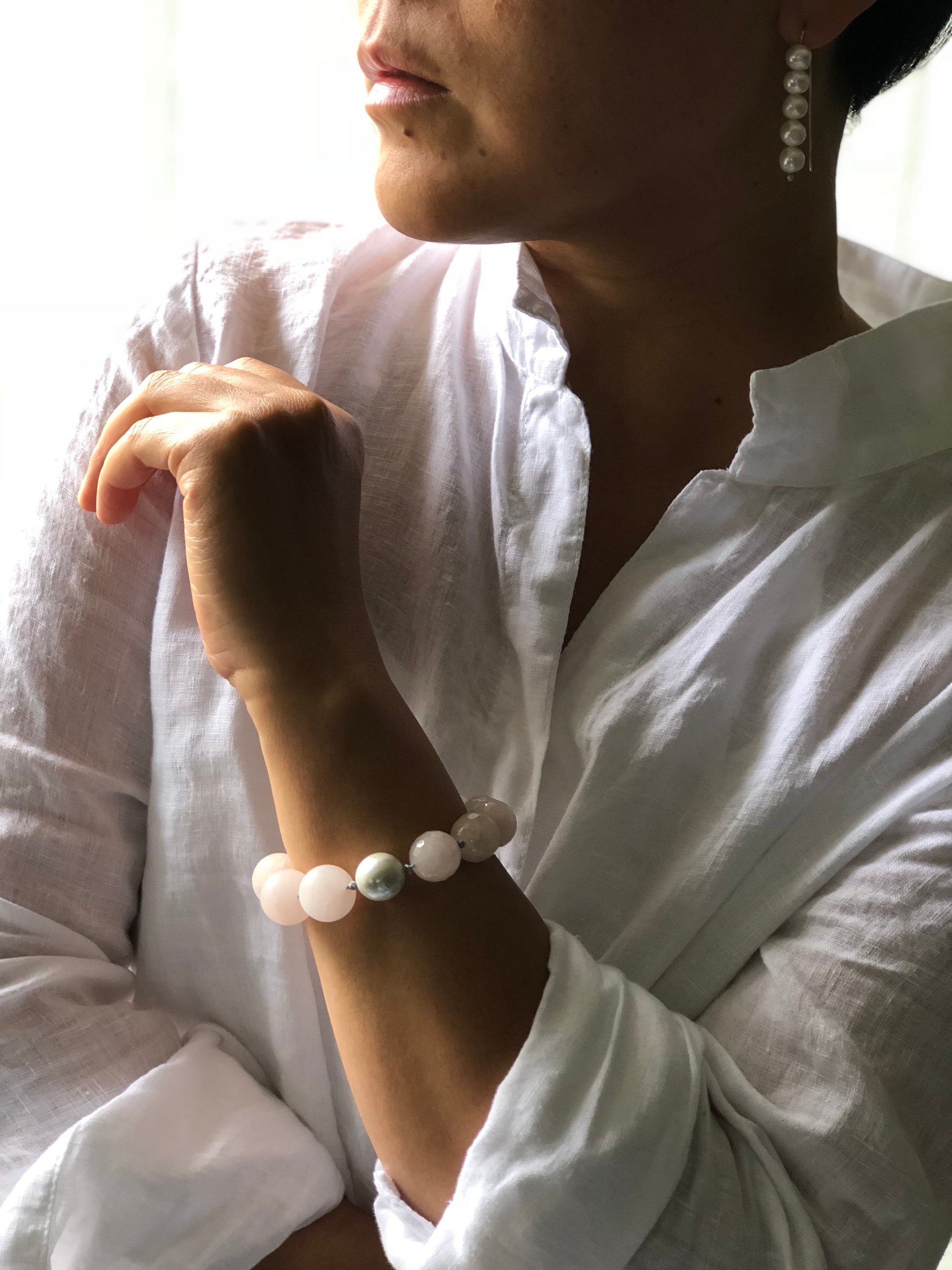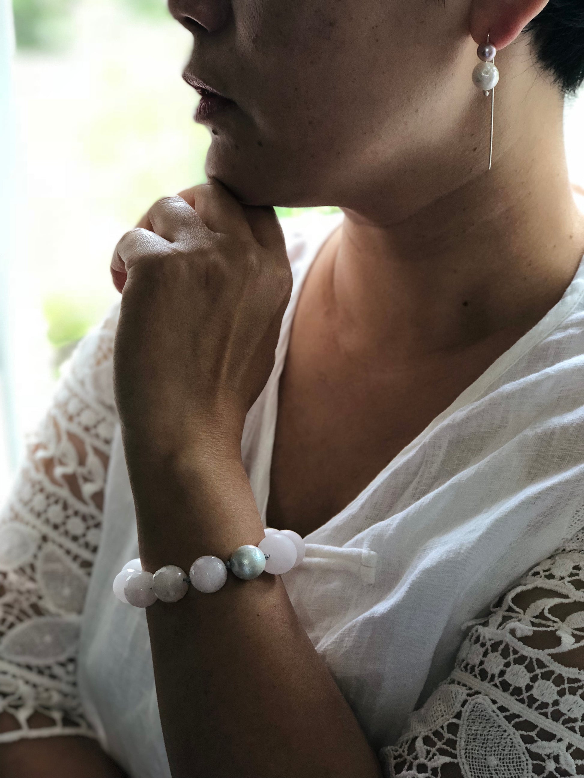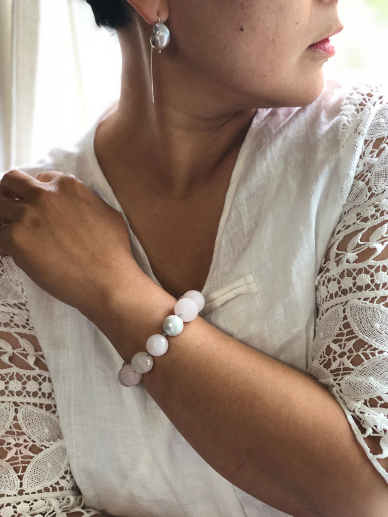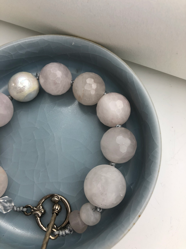 Rose quartz in two different textures, polished and matte finish, hand knotted between each beads, can be resized for special request.