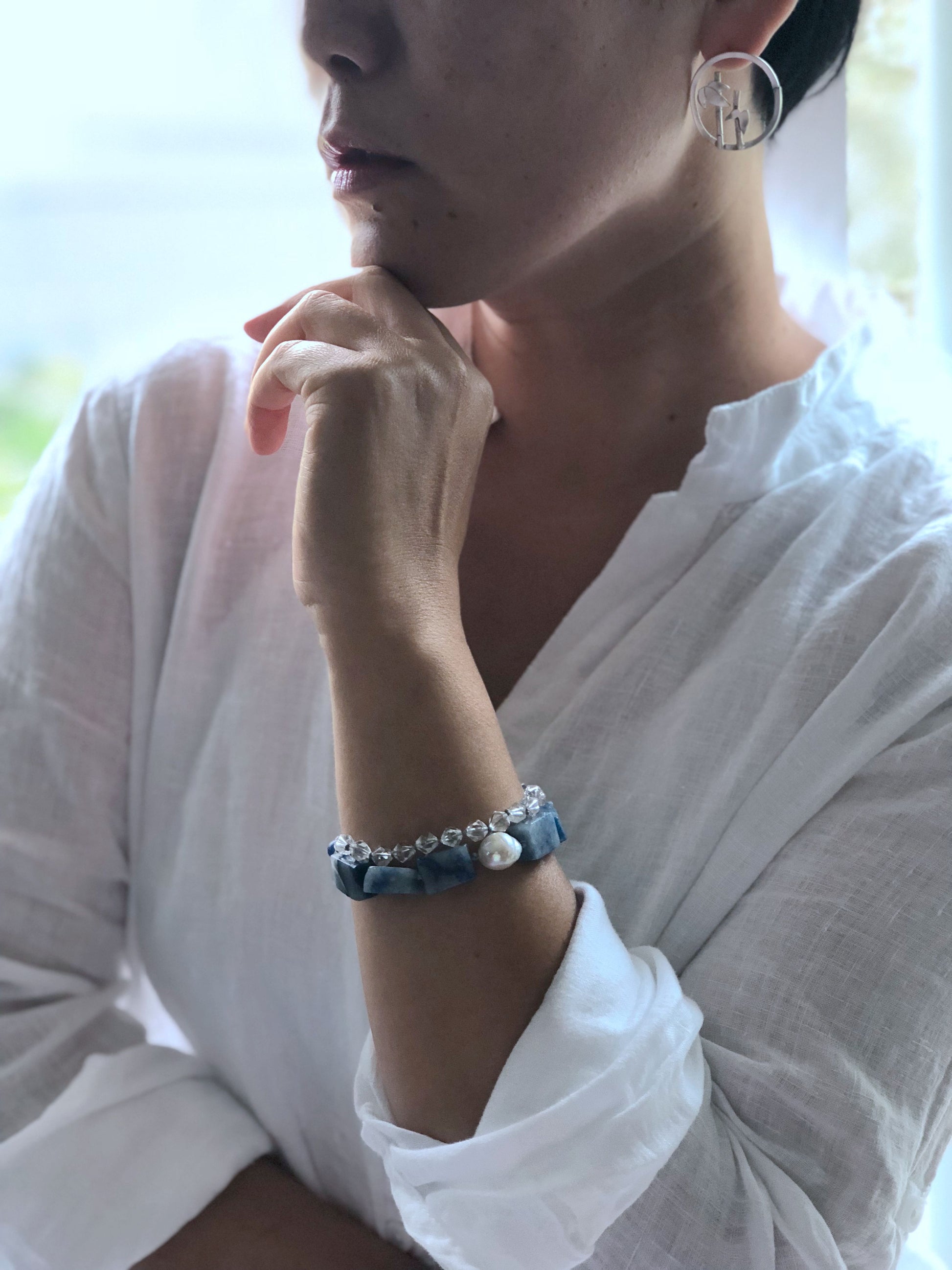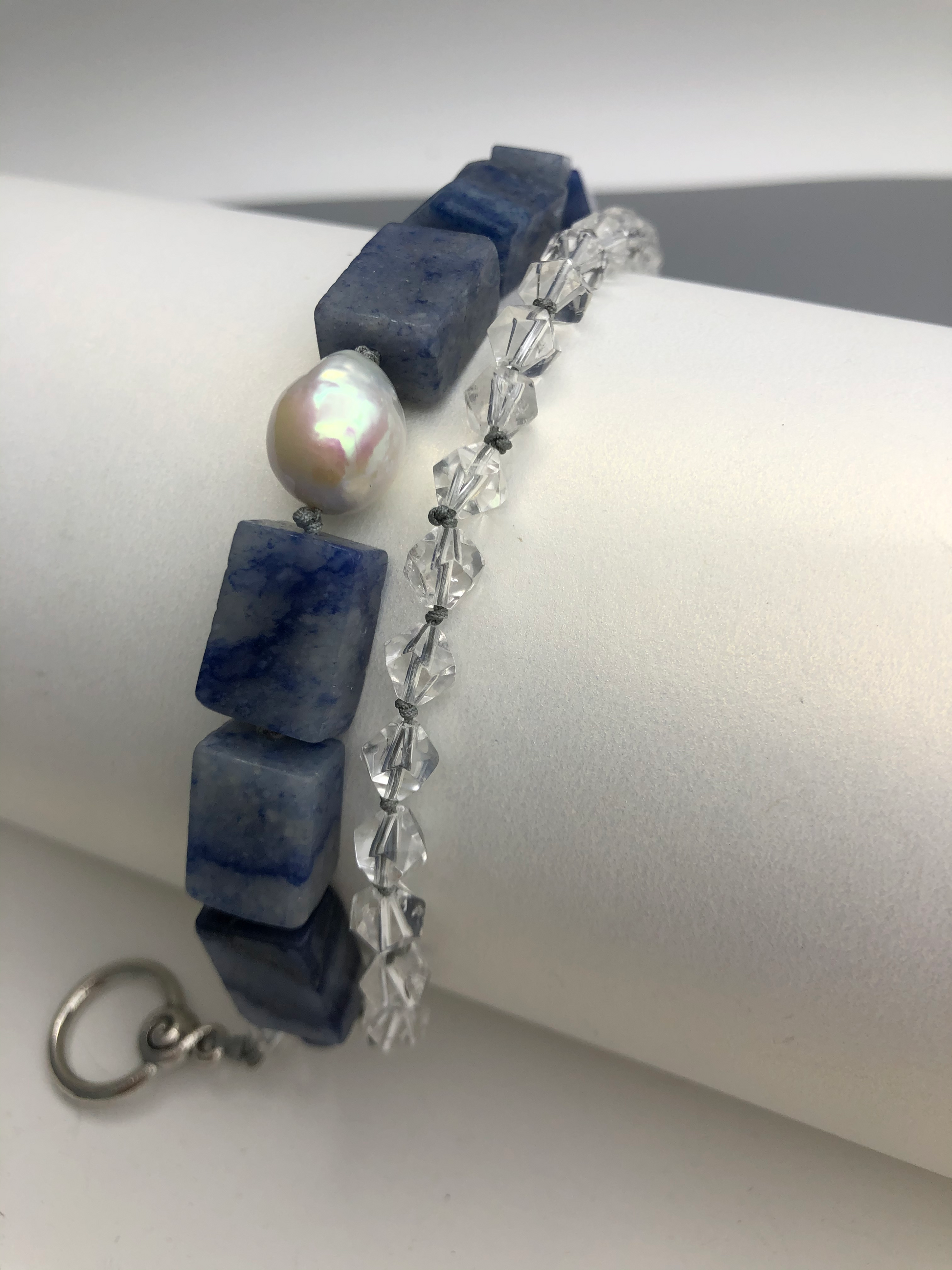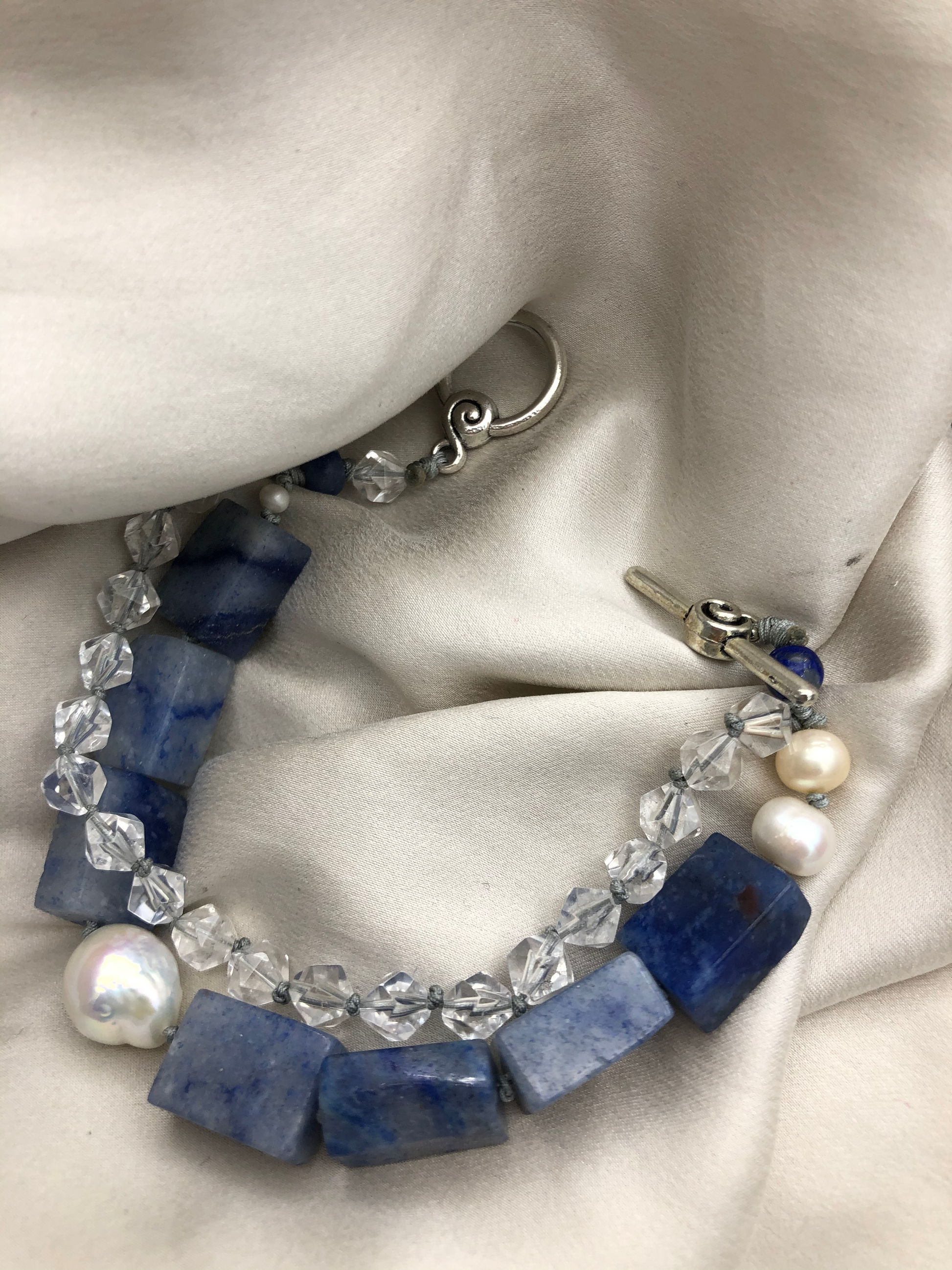 Materials : Blue agate, clear quartz, fresh water pearl