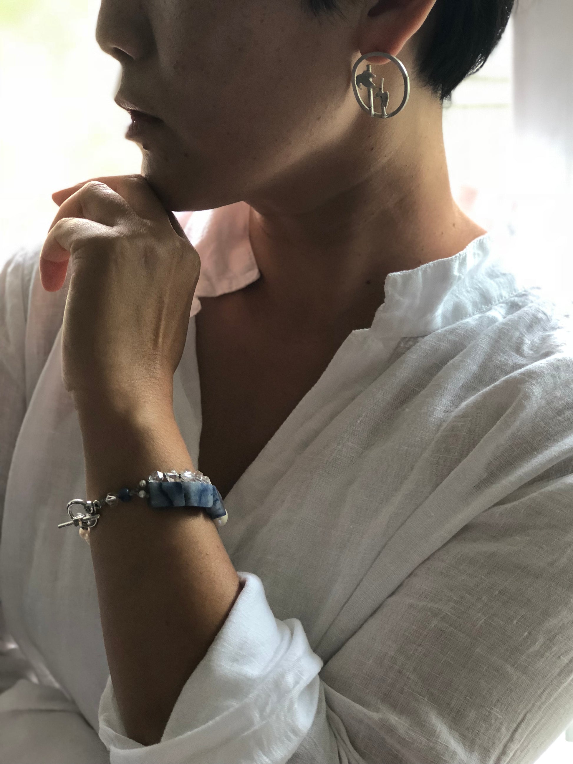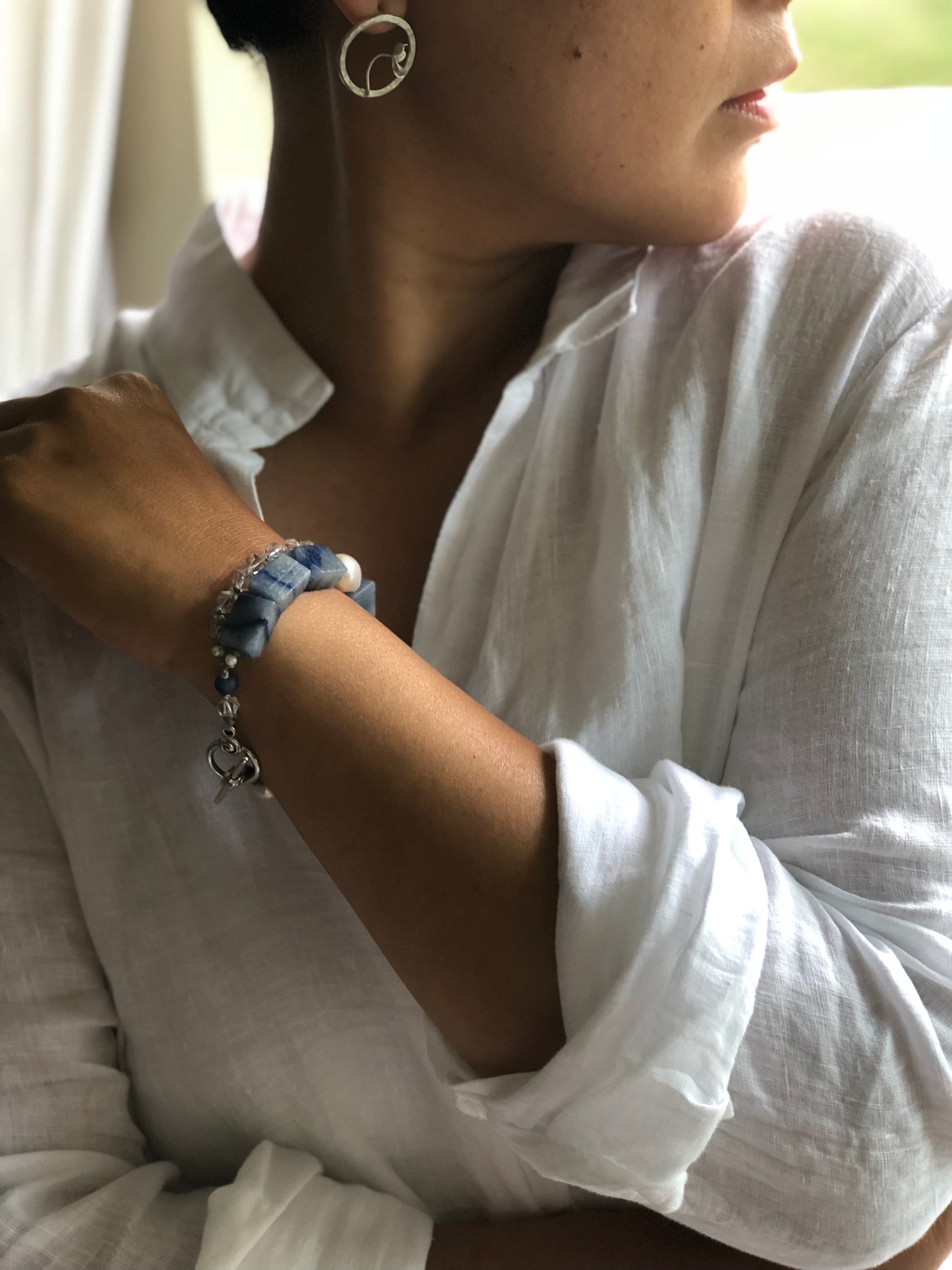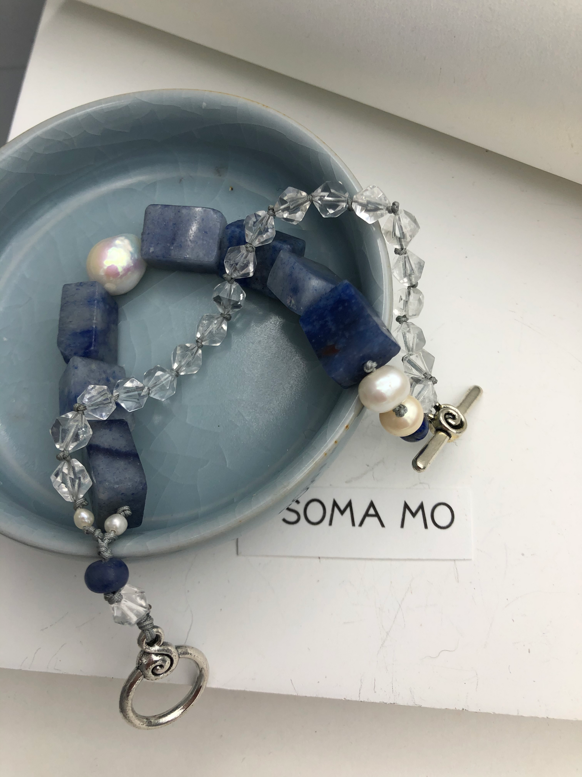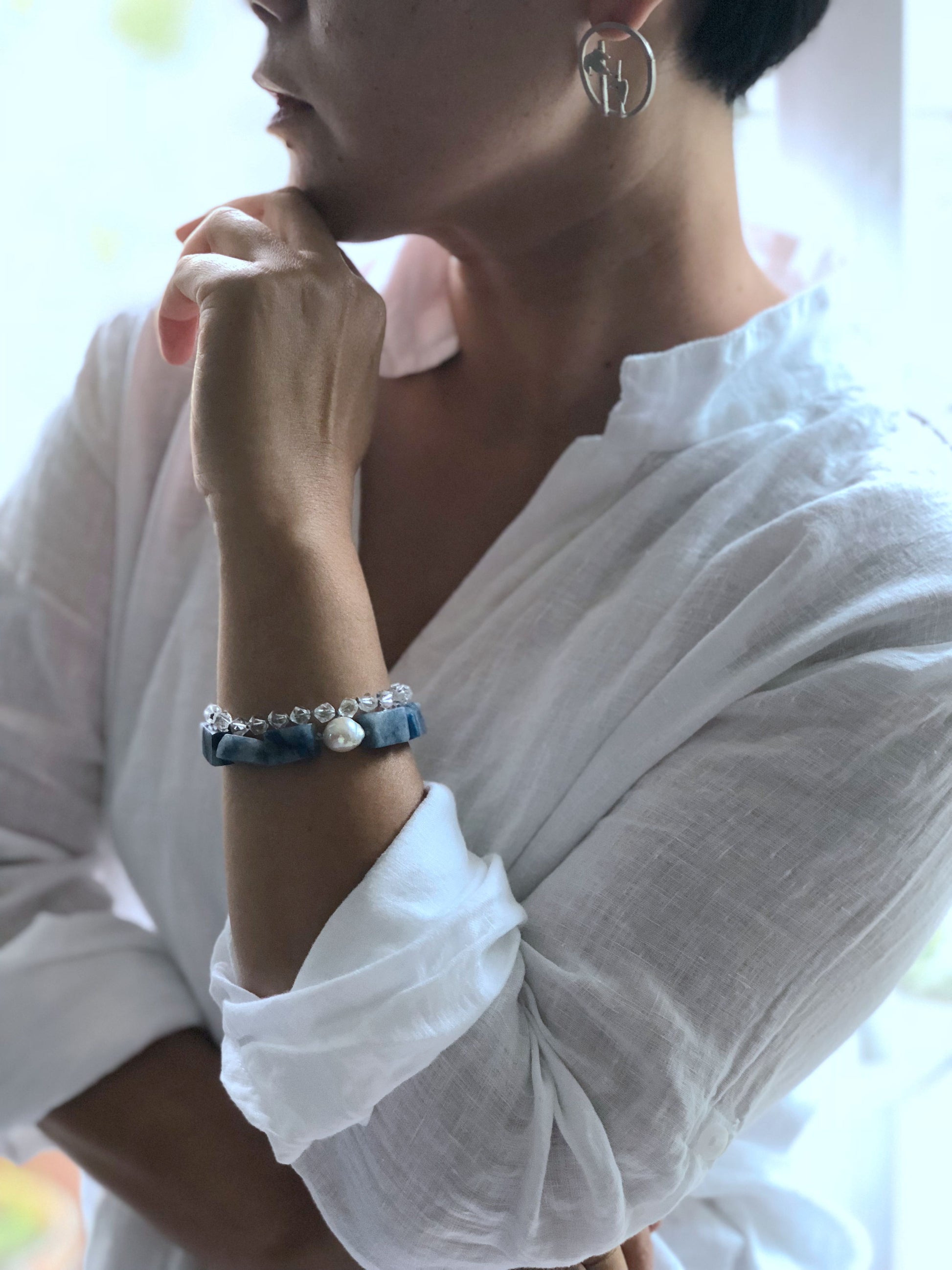 Materials : Blue agate, clear quartz, fresh water pearl