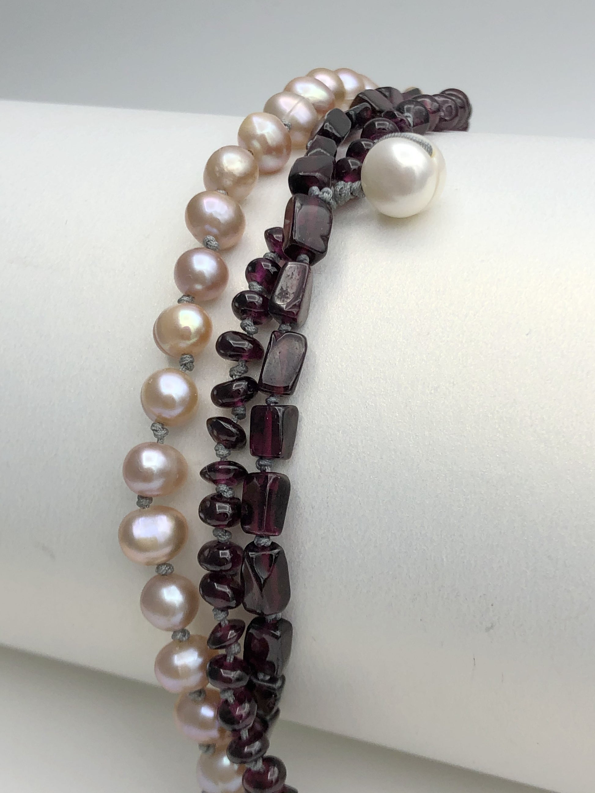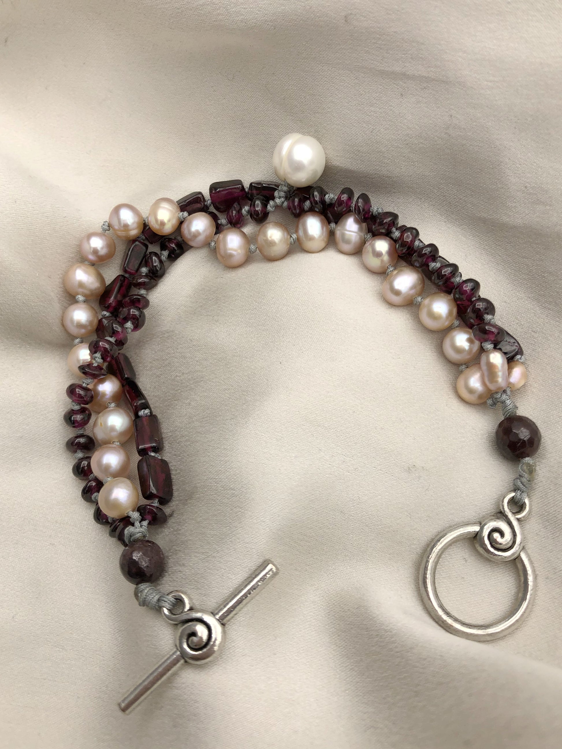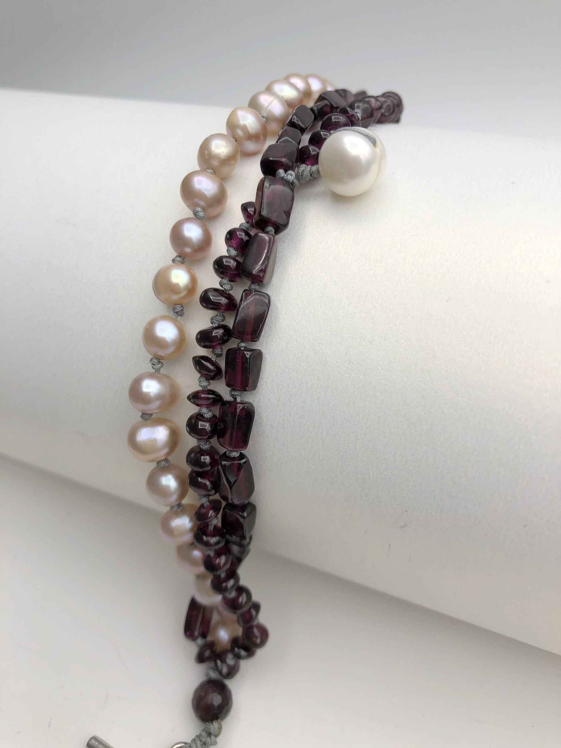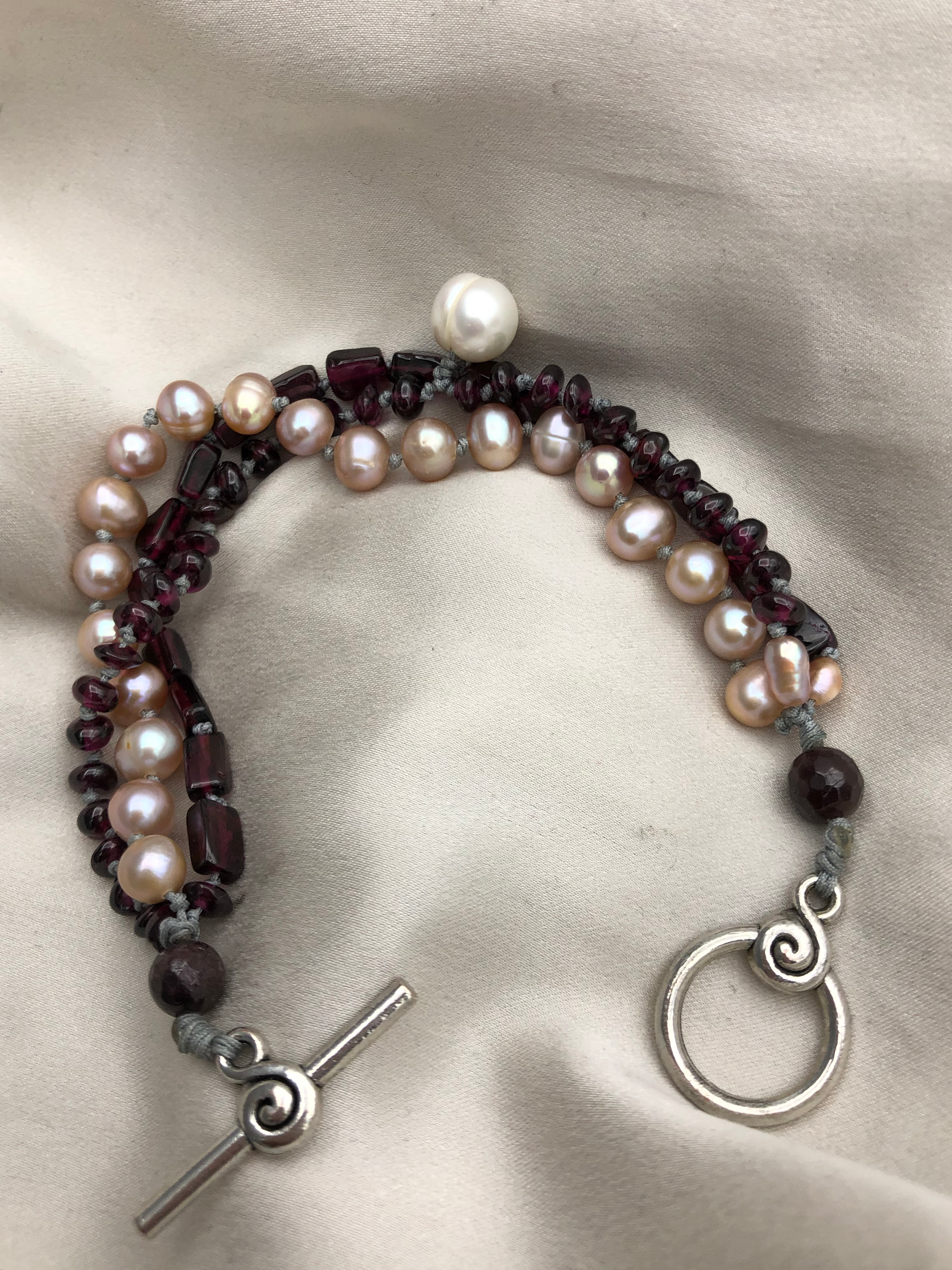 Garnet and fresh water pearl, hand knotted between each beads, can be resized for special request.