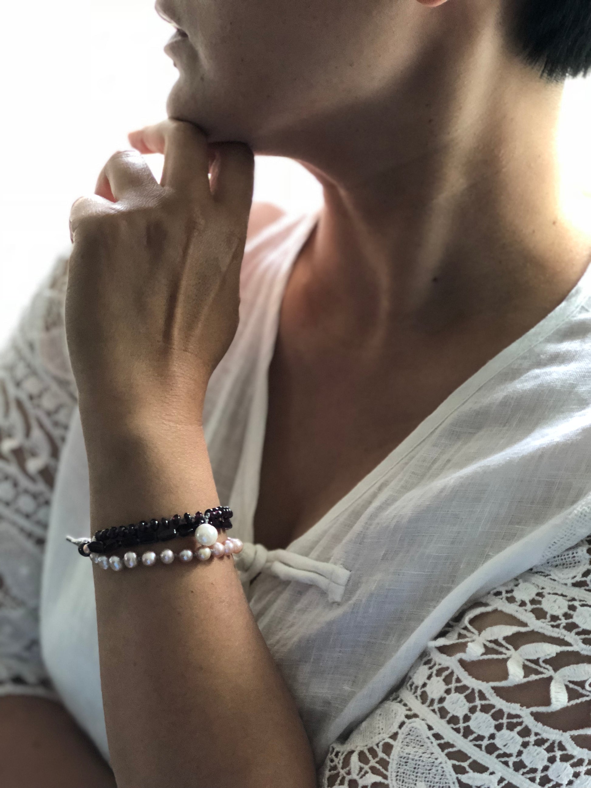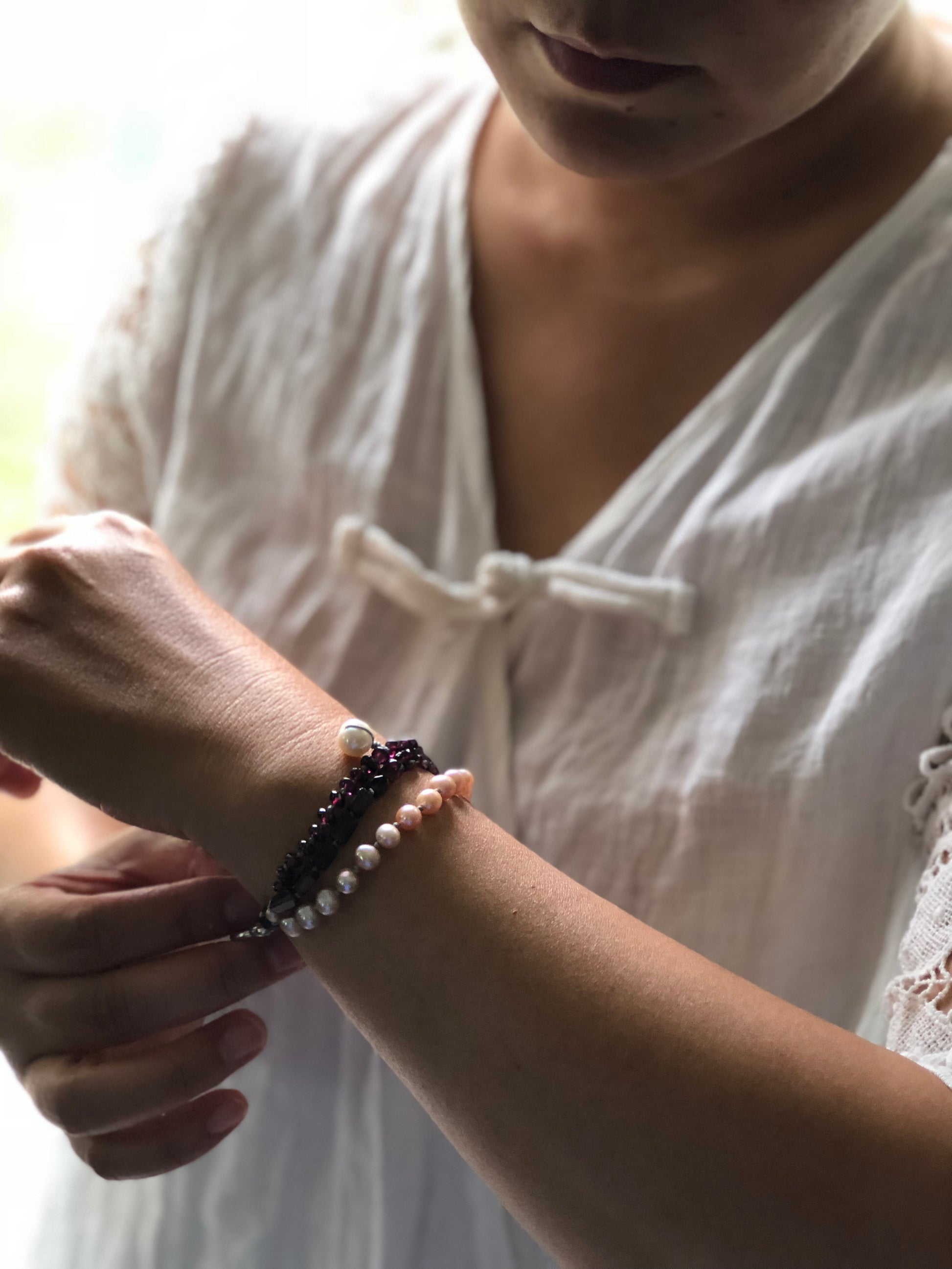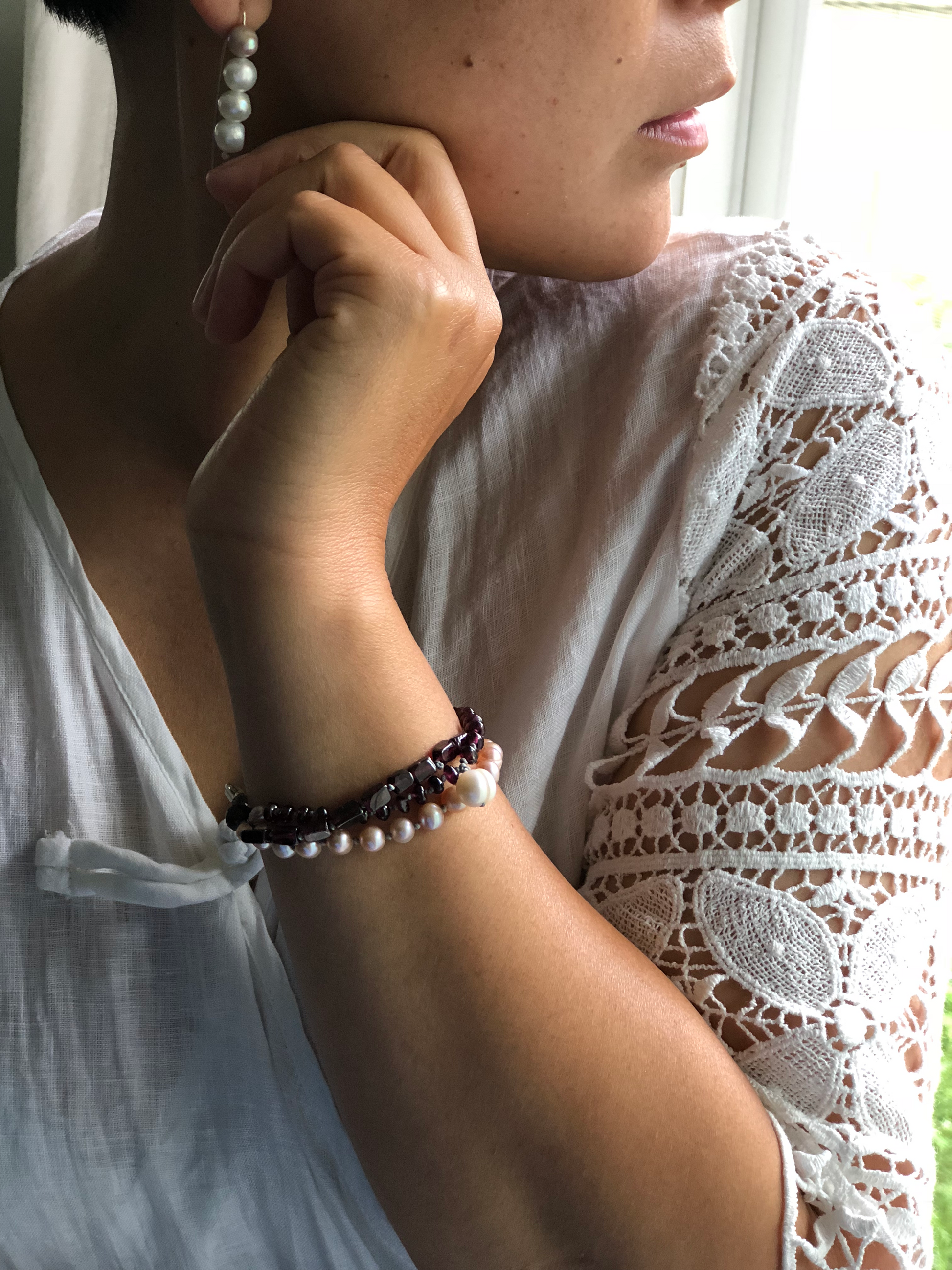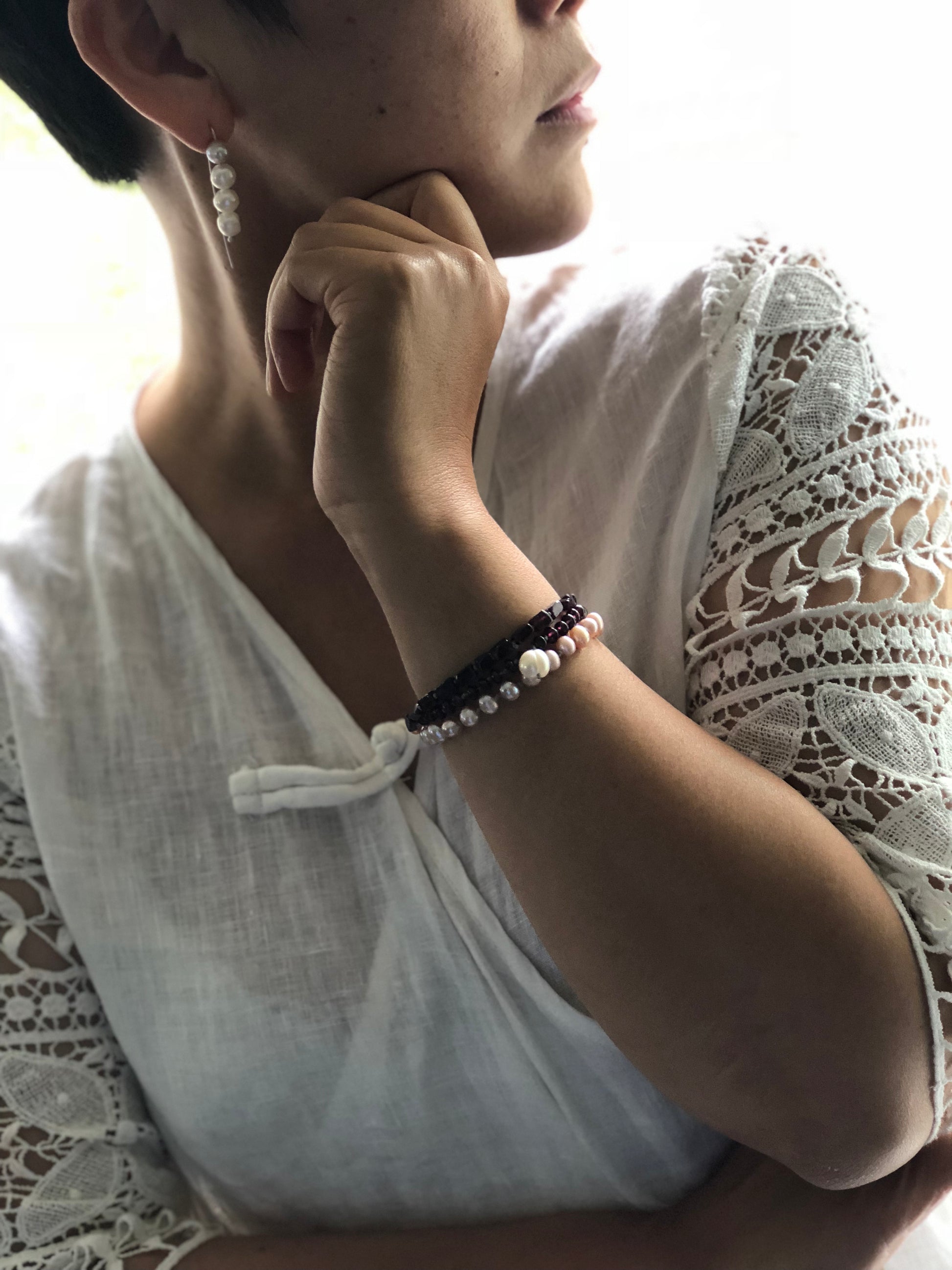 Garnet and fresh water pearl, hand knotted between each beads, can be resized for special request.
