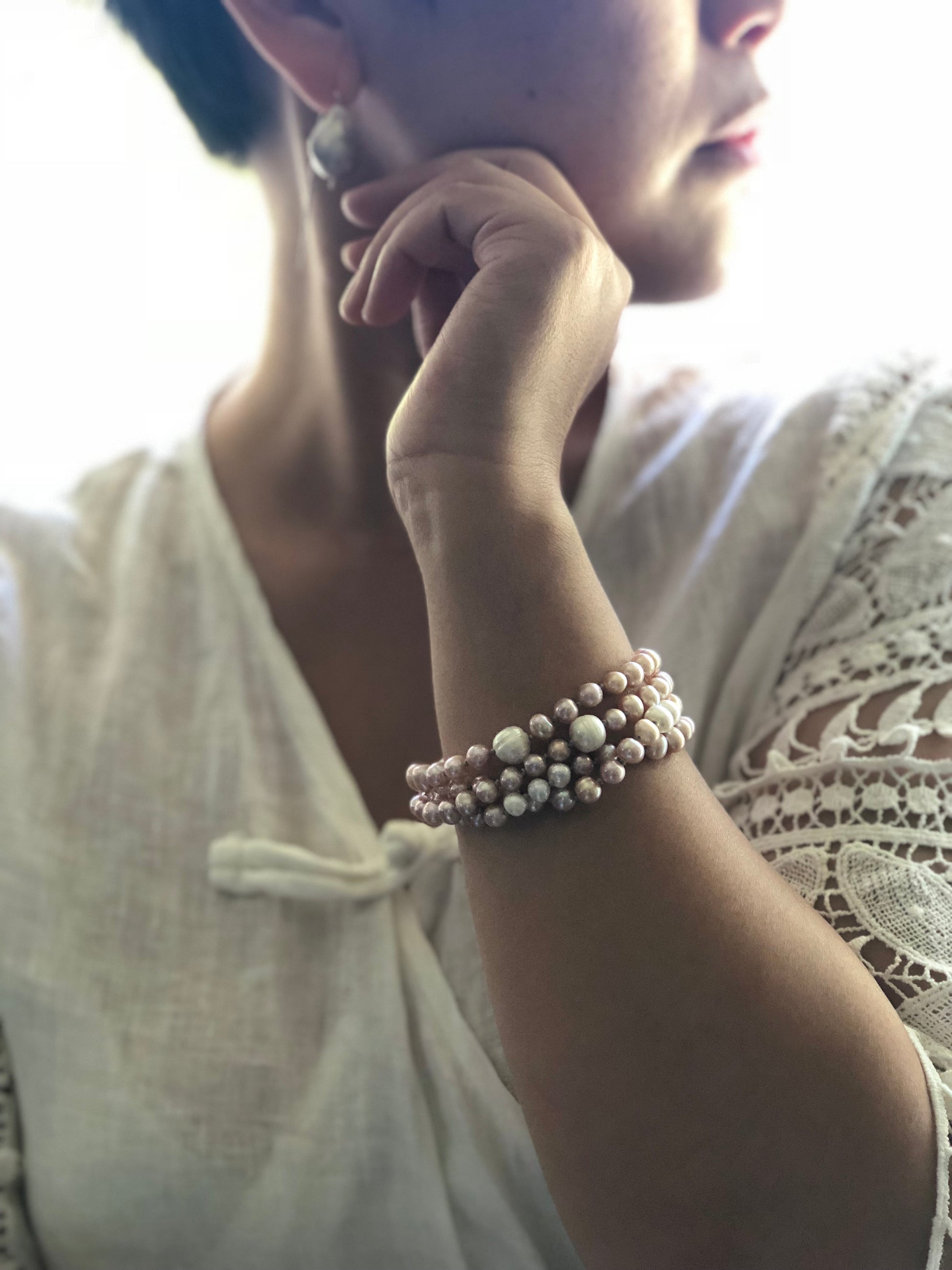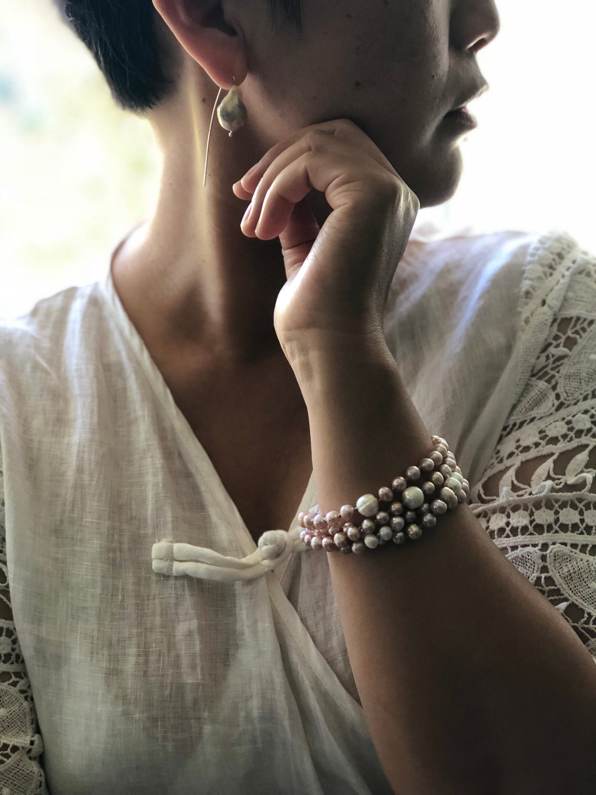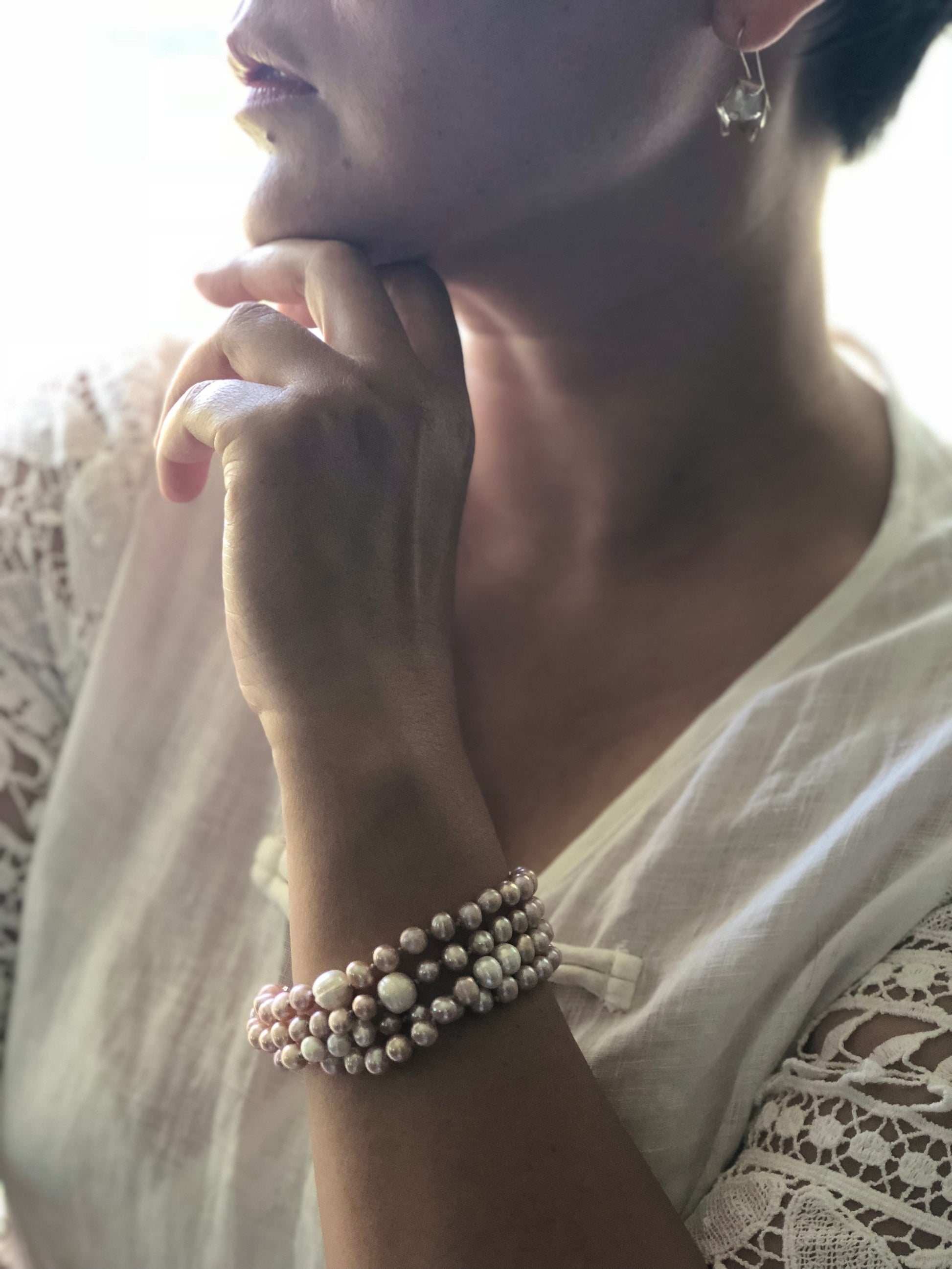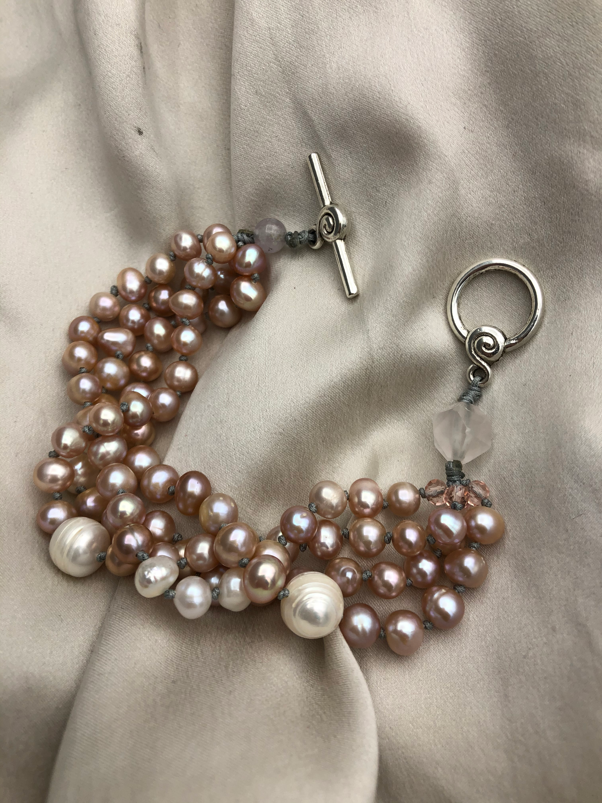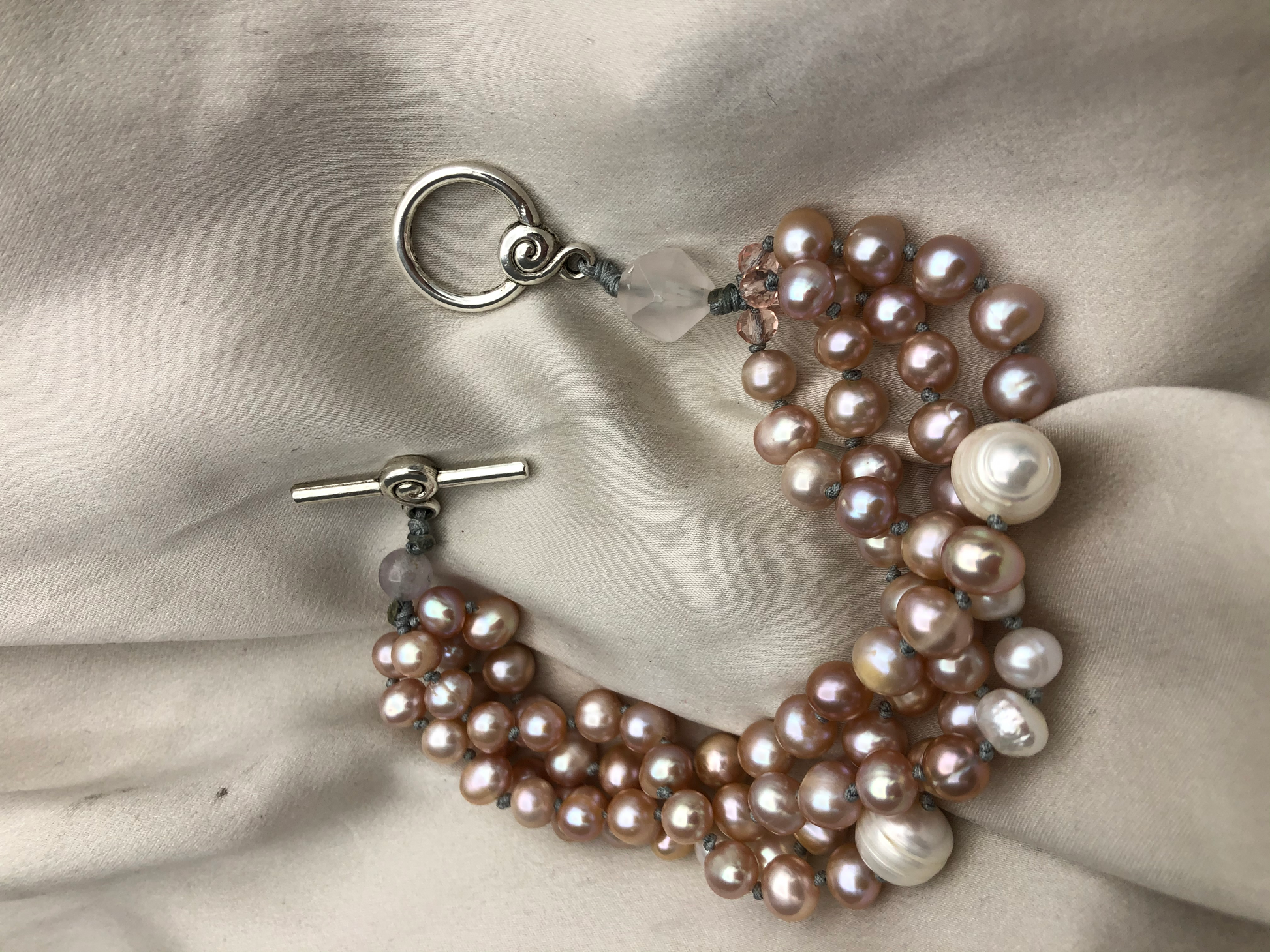 Four strand of treasures. Hand knotted between each beads, can be resized for special request.