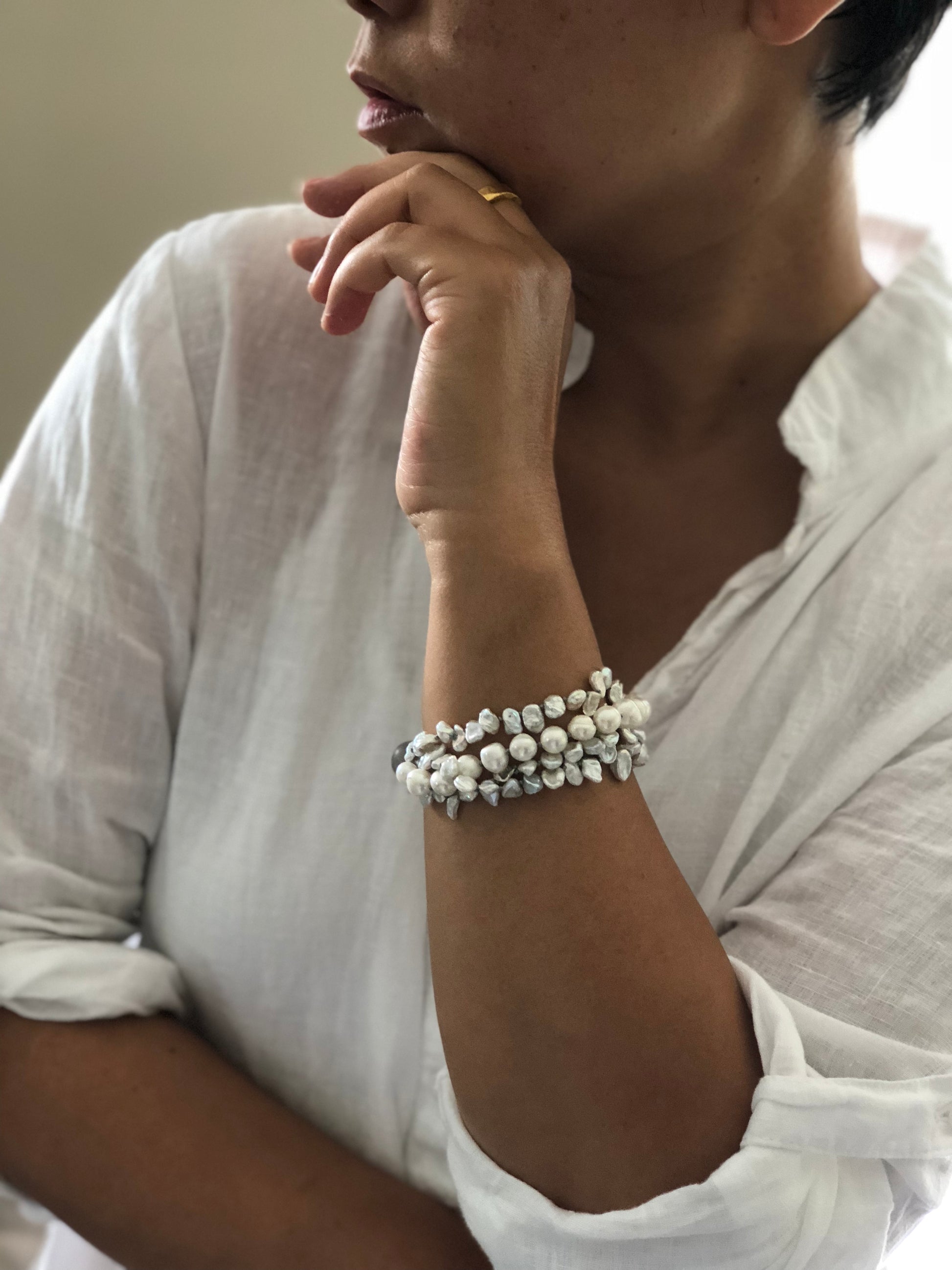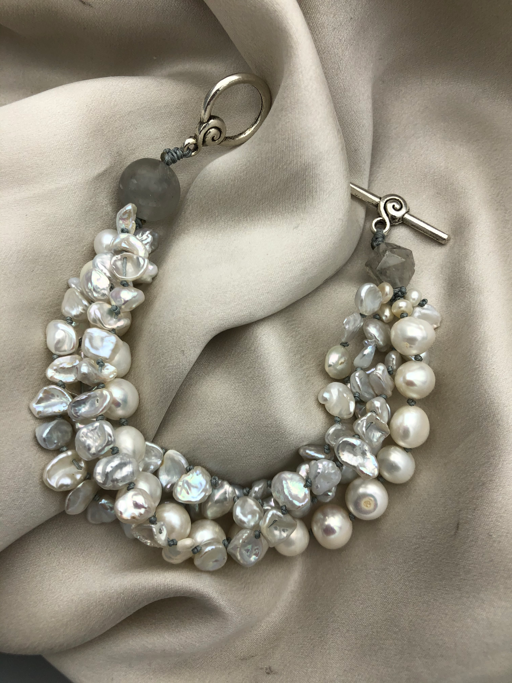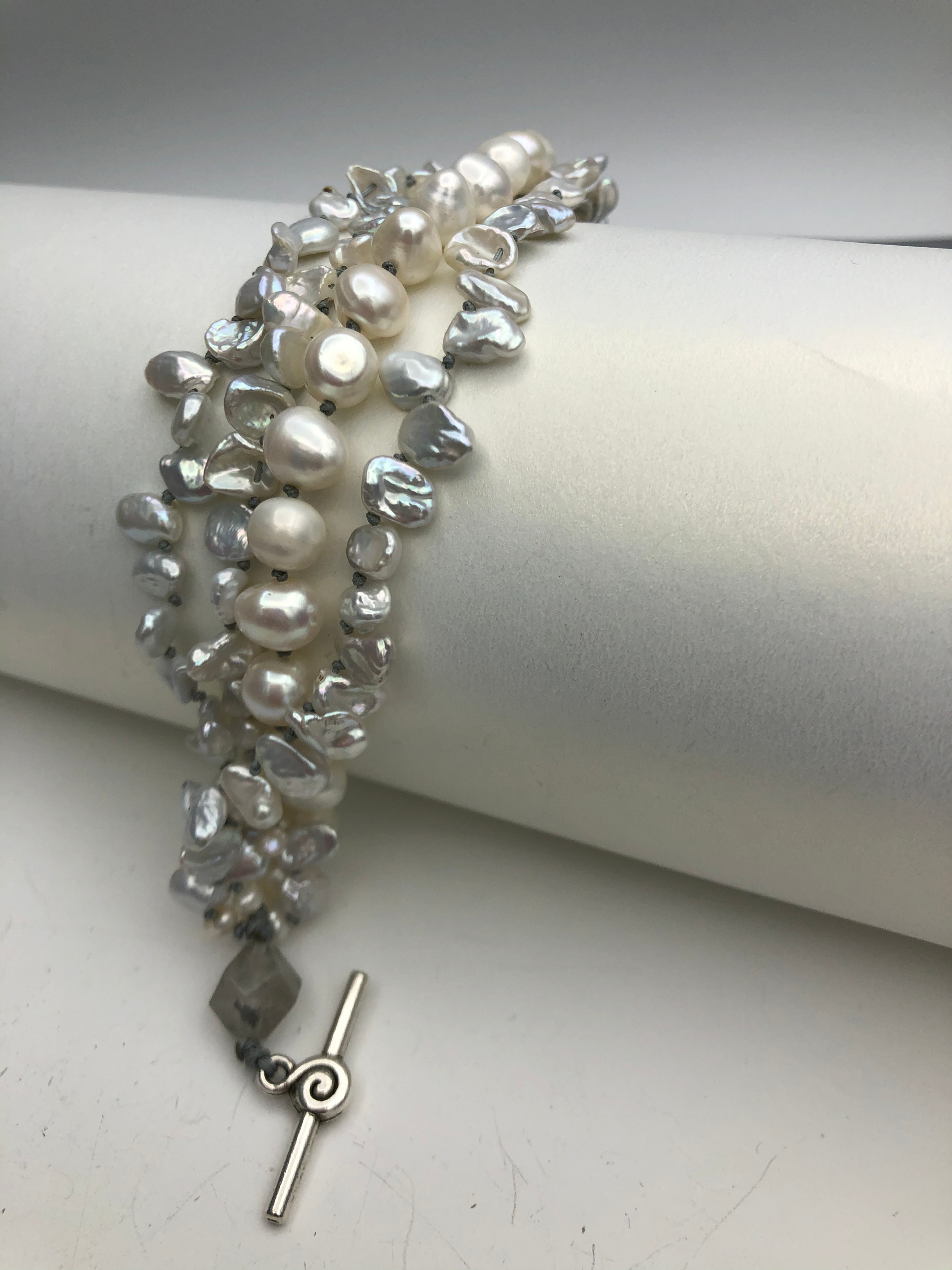 Materials : Fresh water pearl in white color, labrodrite