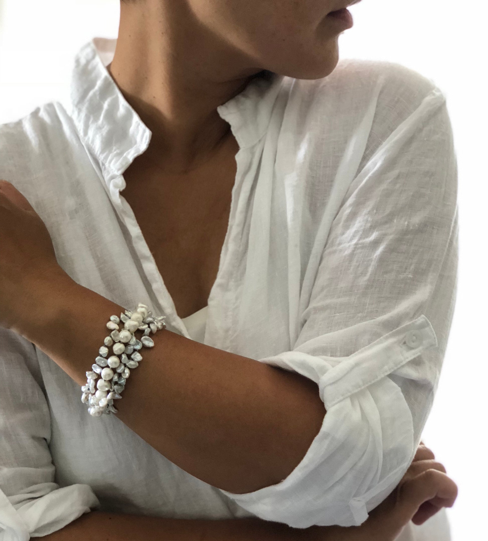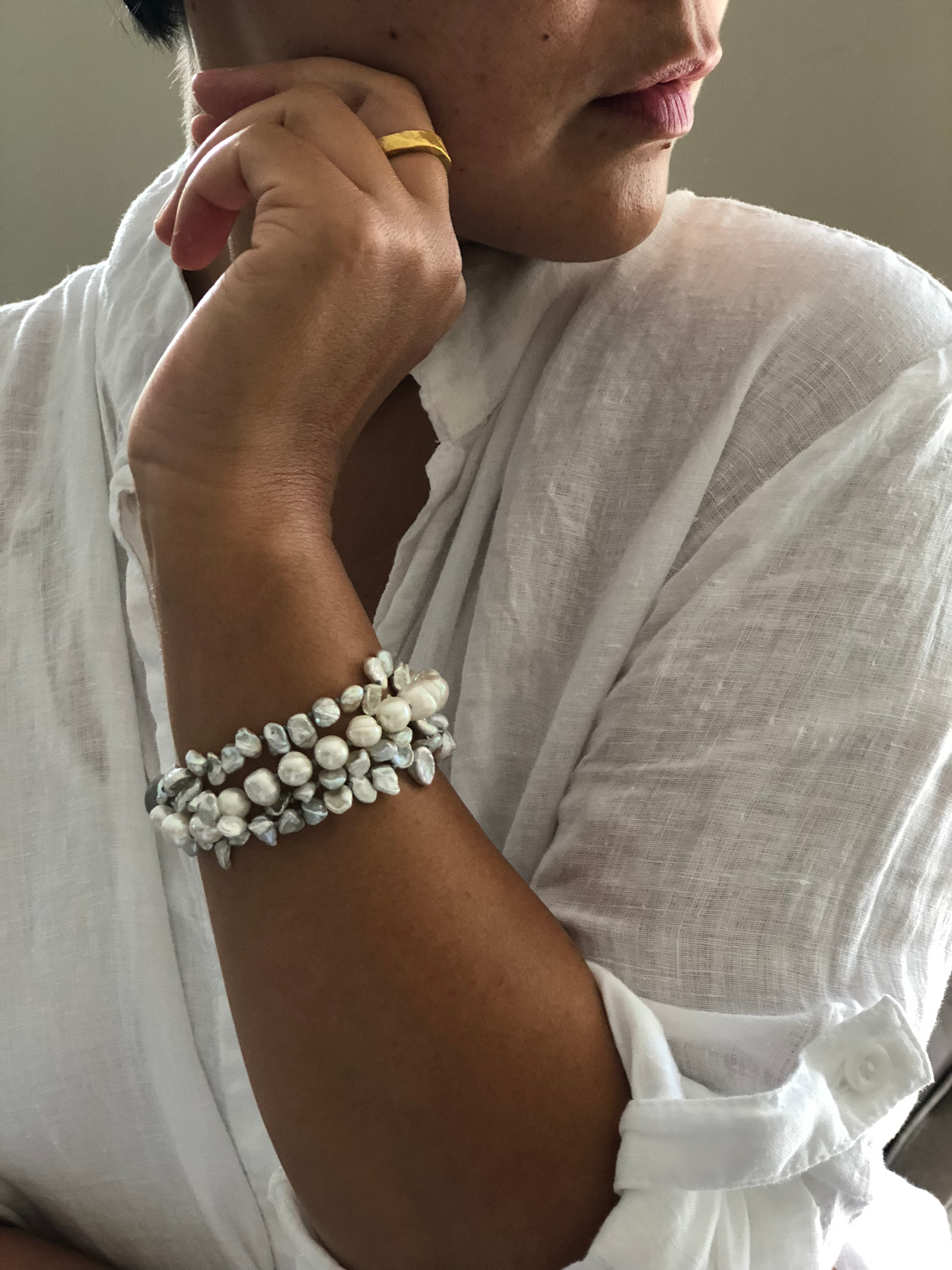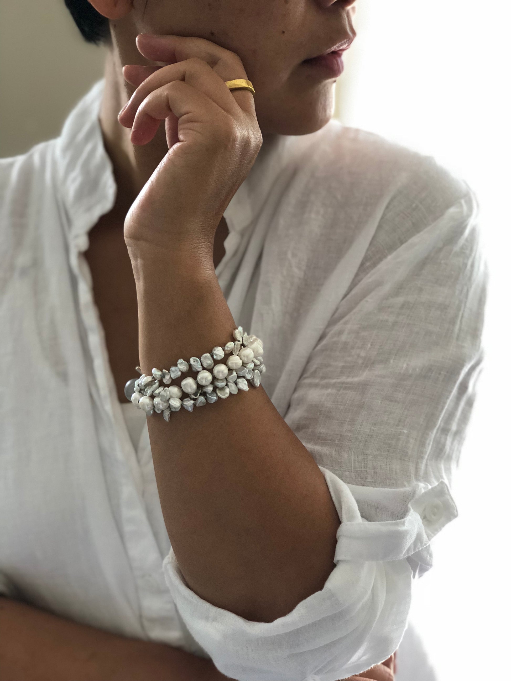 Materials : Fresh water pearl in white color, labrodrite