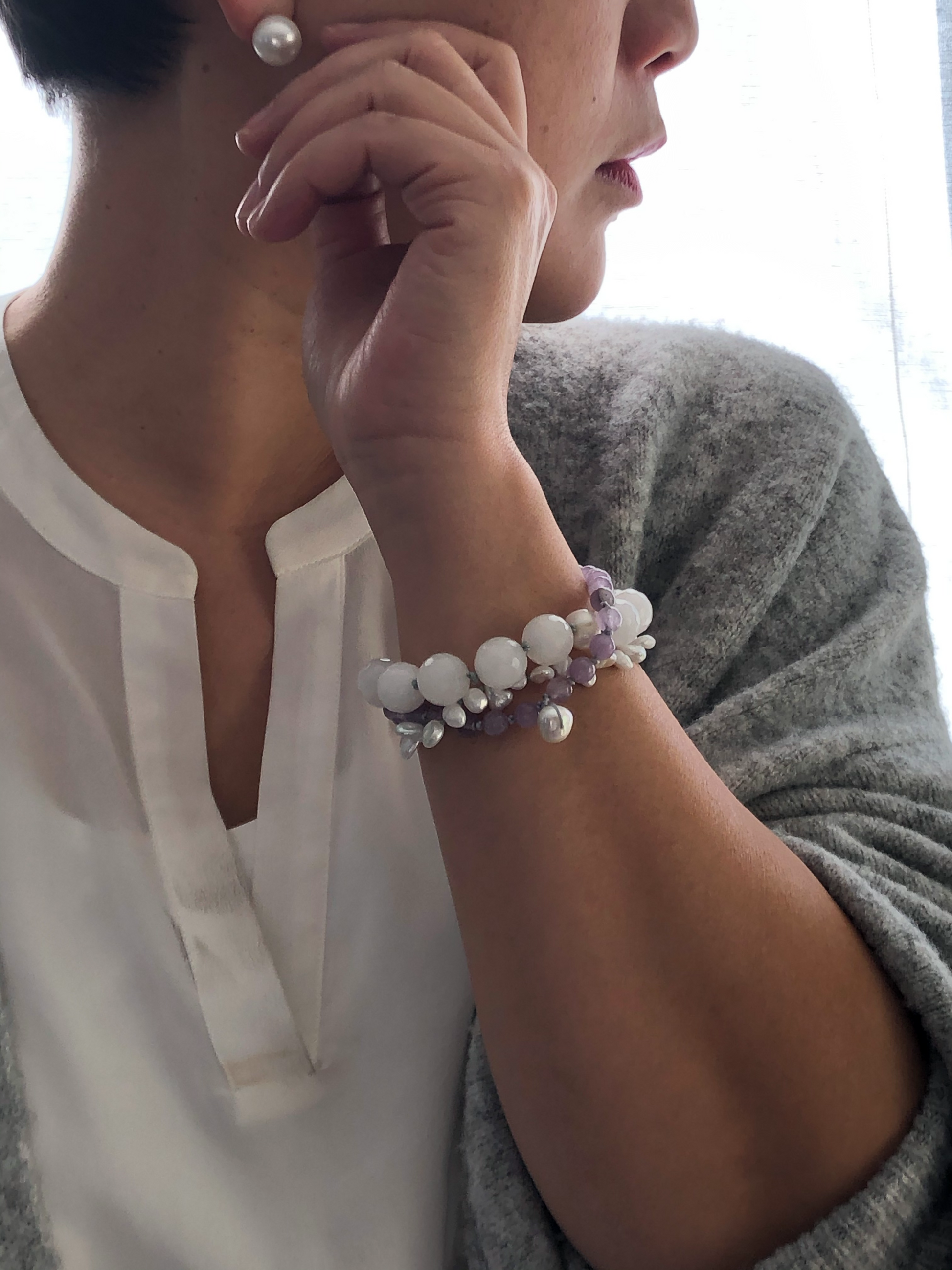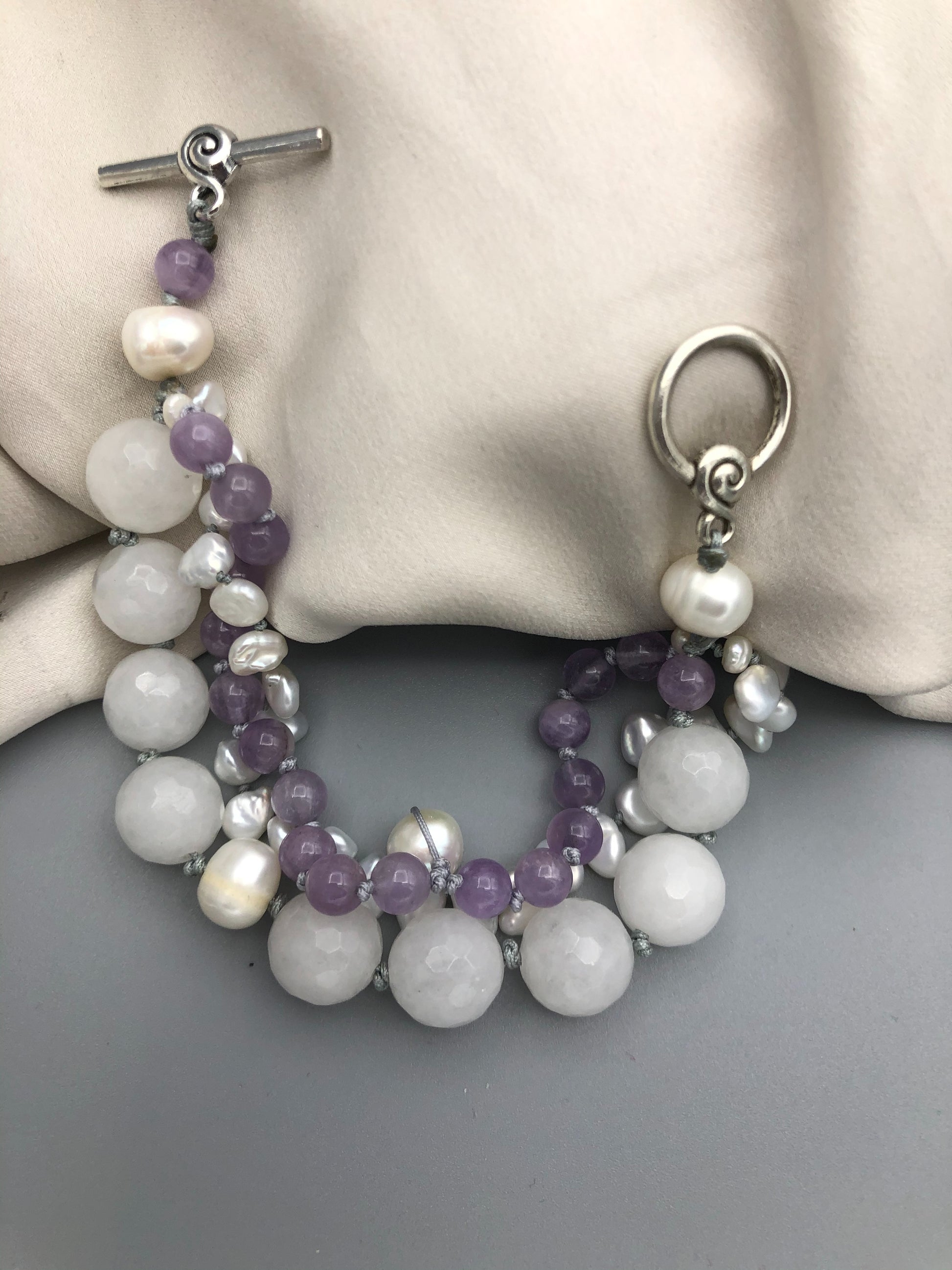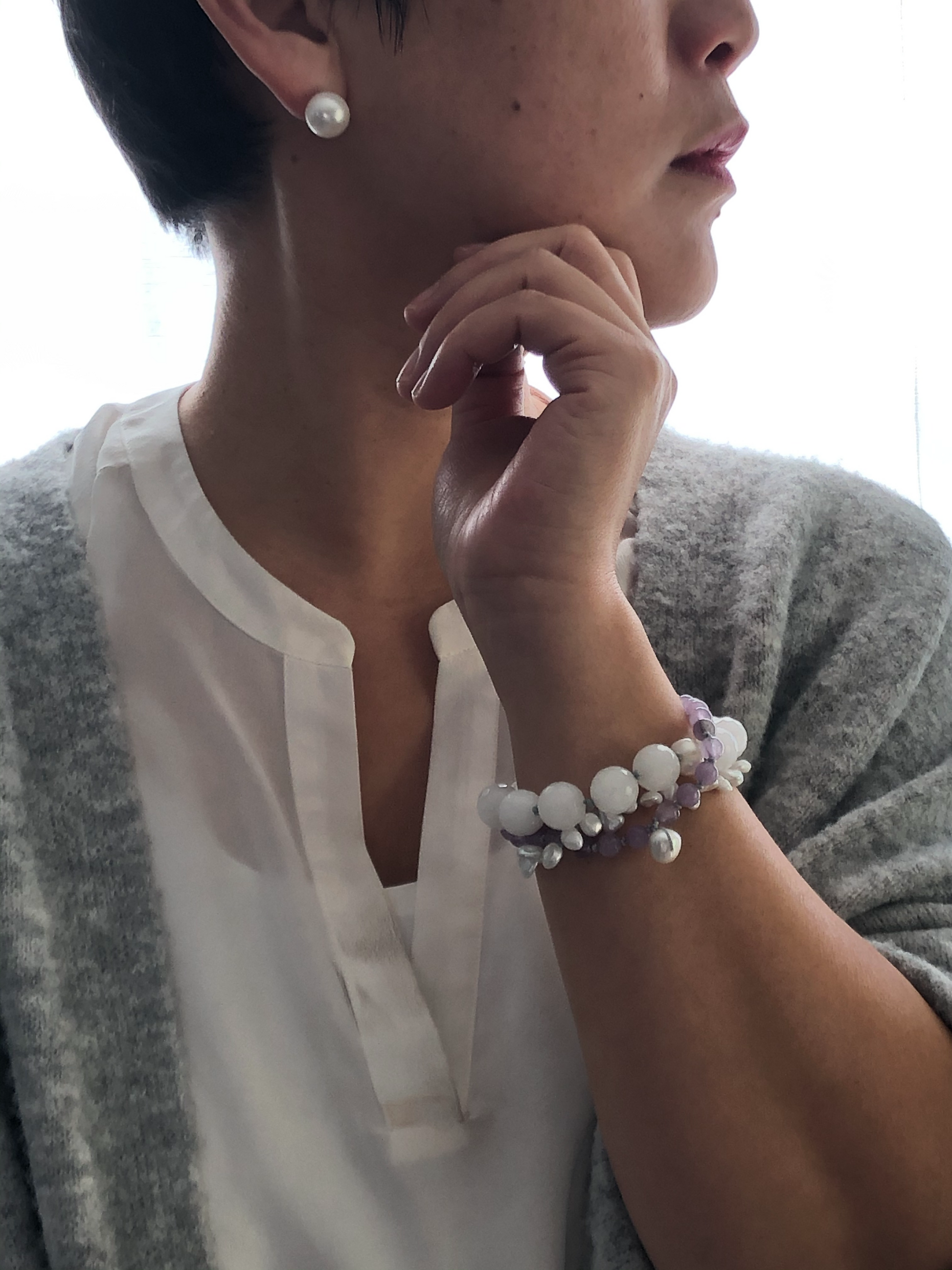 Materials : Amethyst, fresh water pearl, white agate