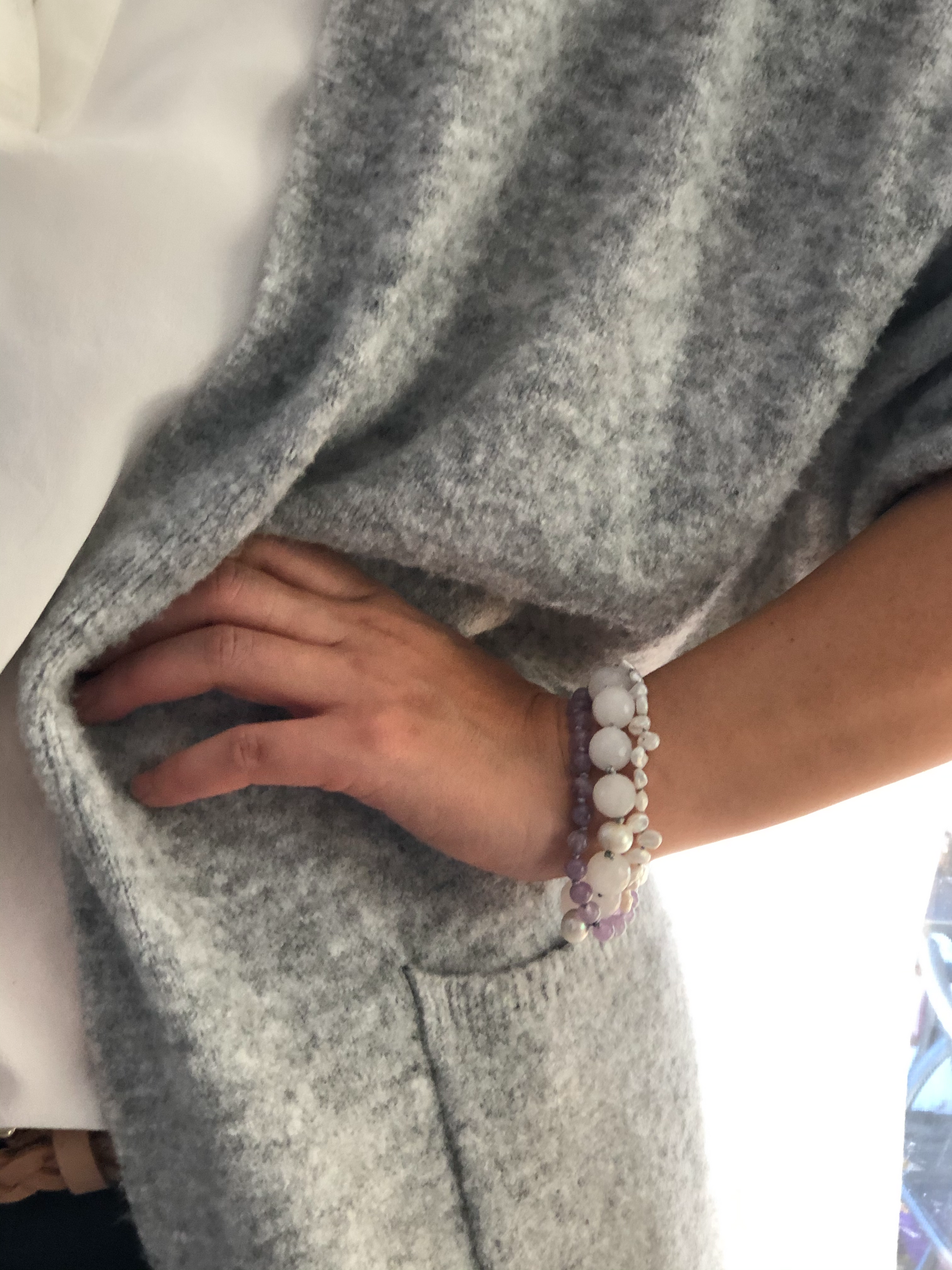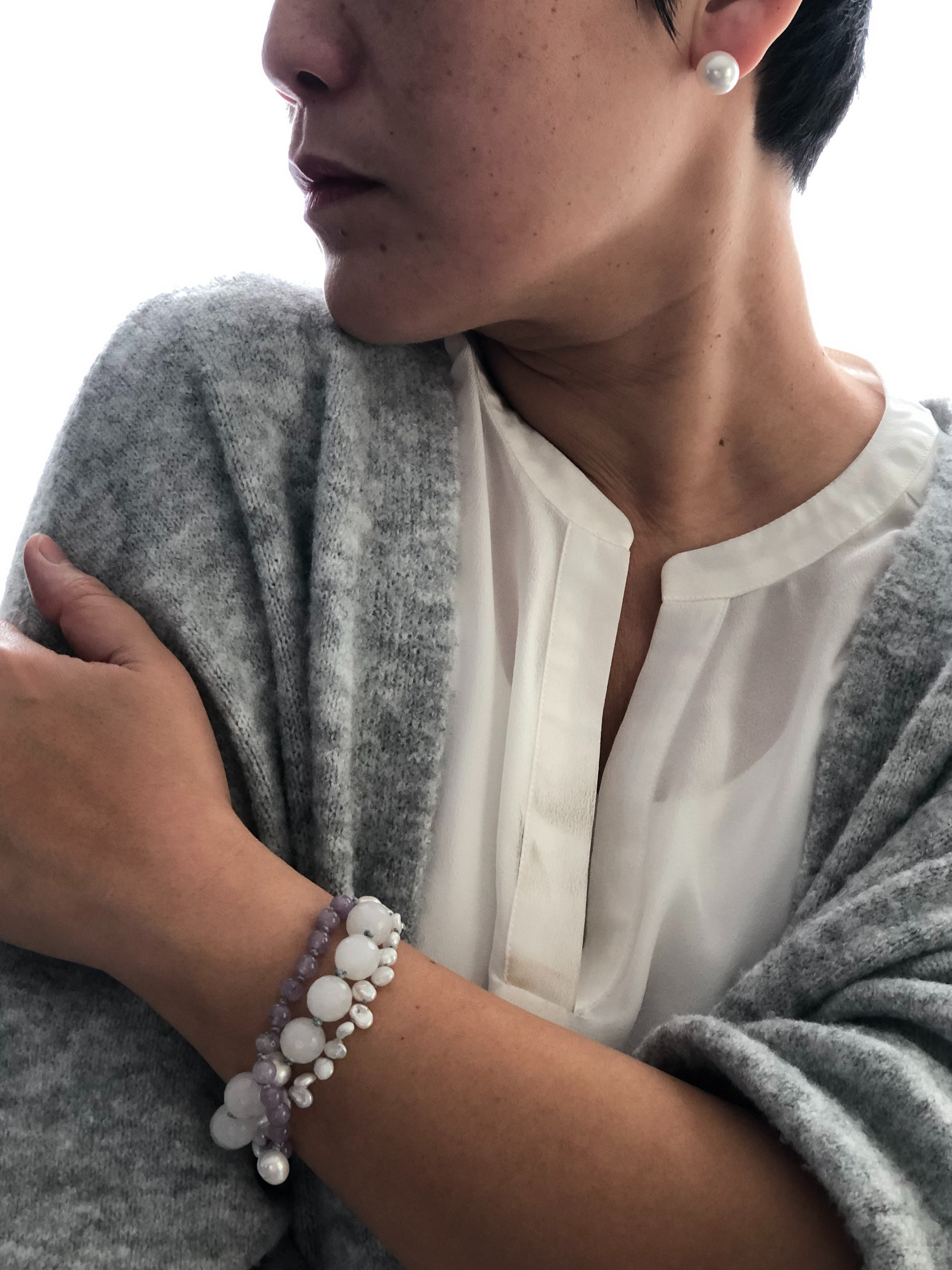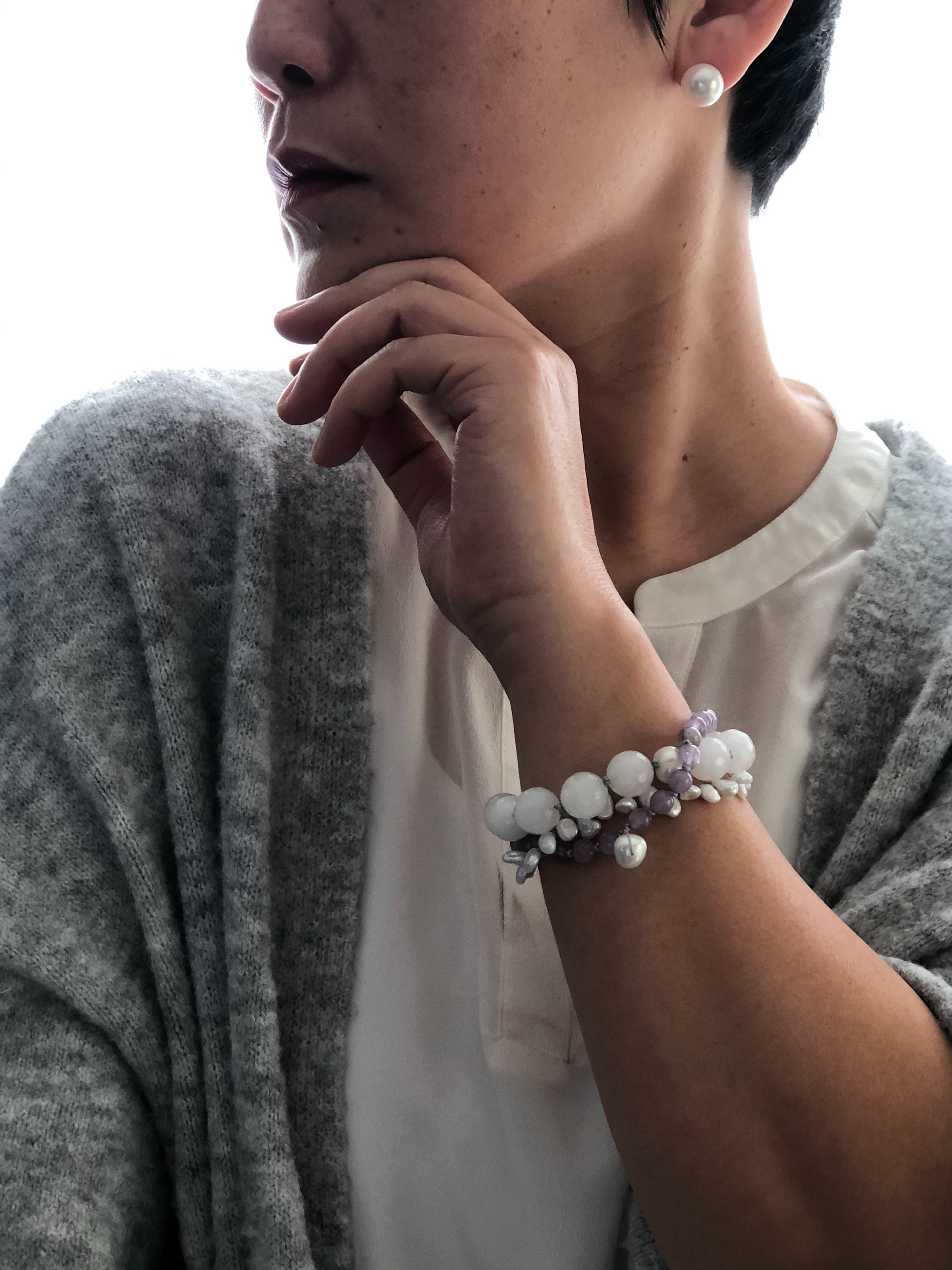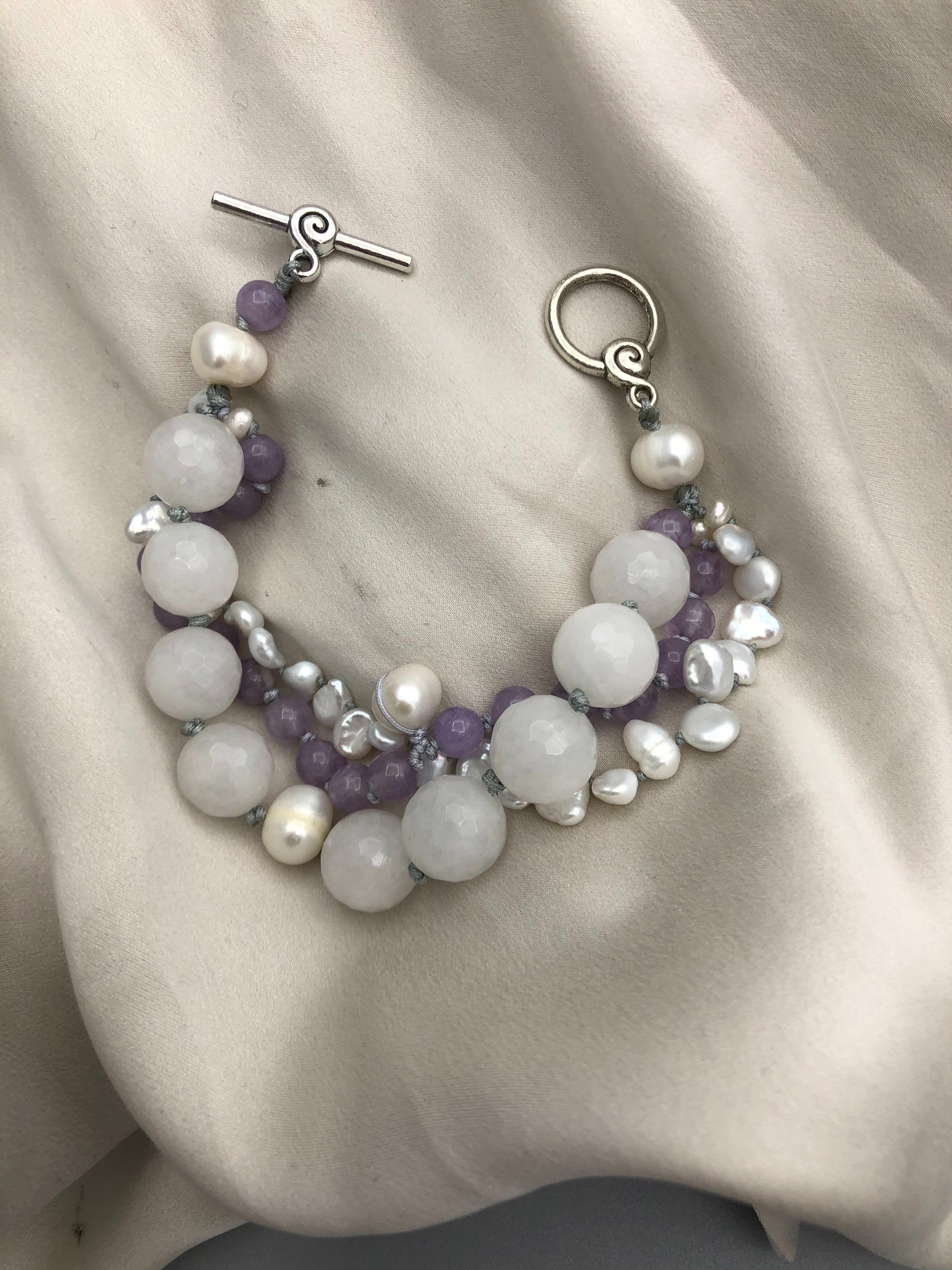 Materials : Amethyst, fresh water pearl, white agate