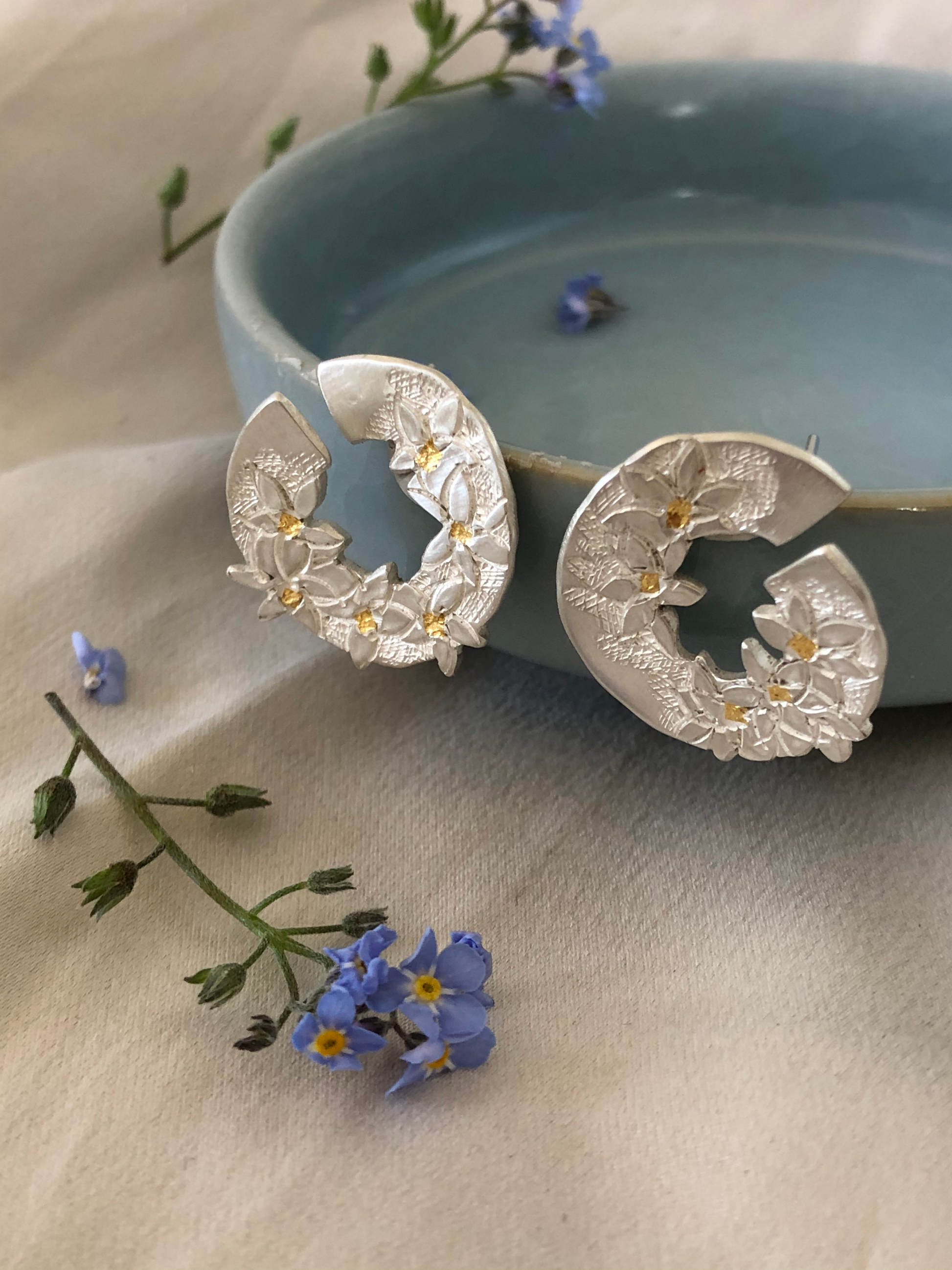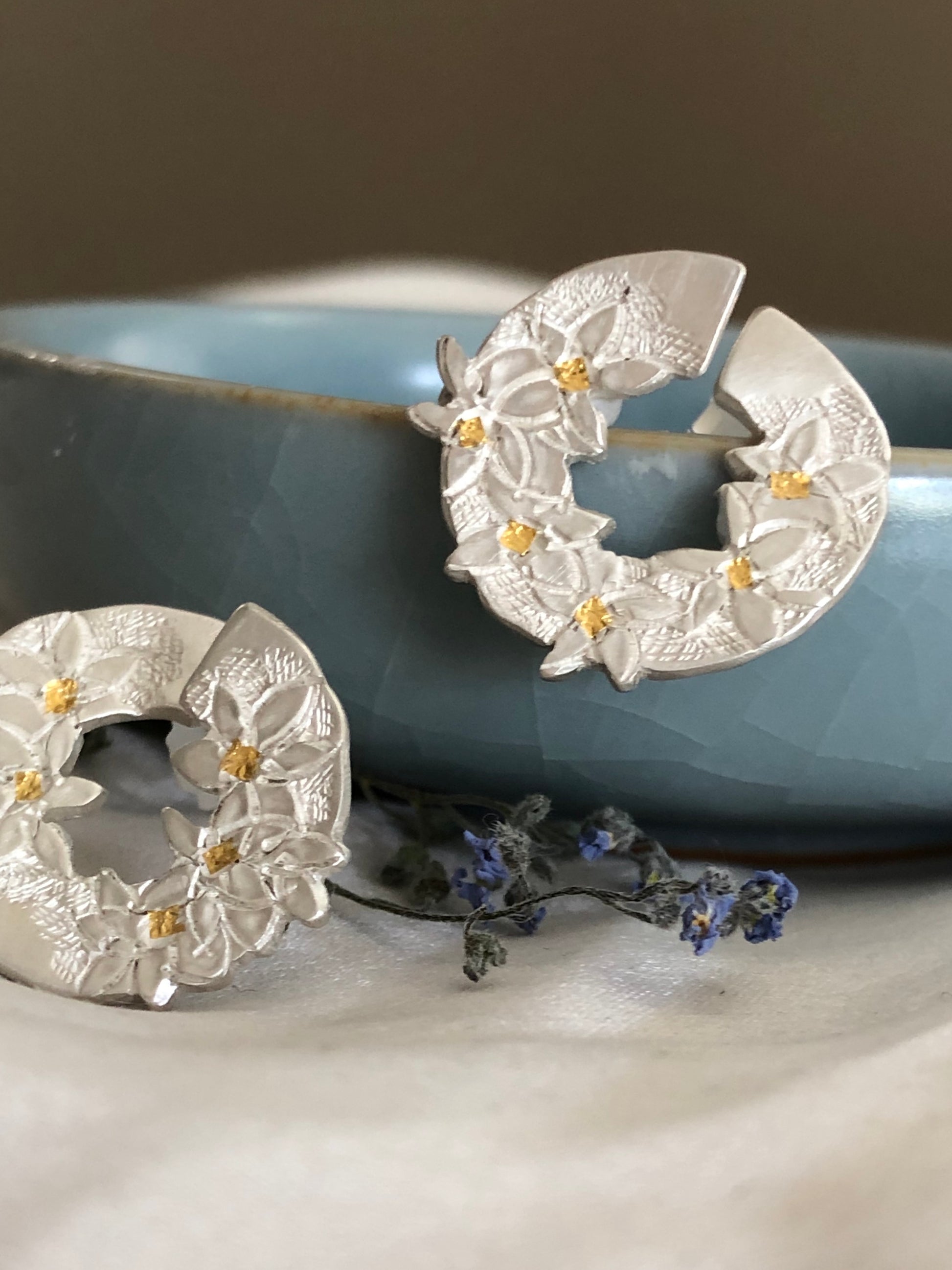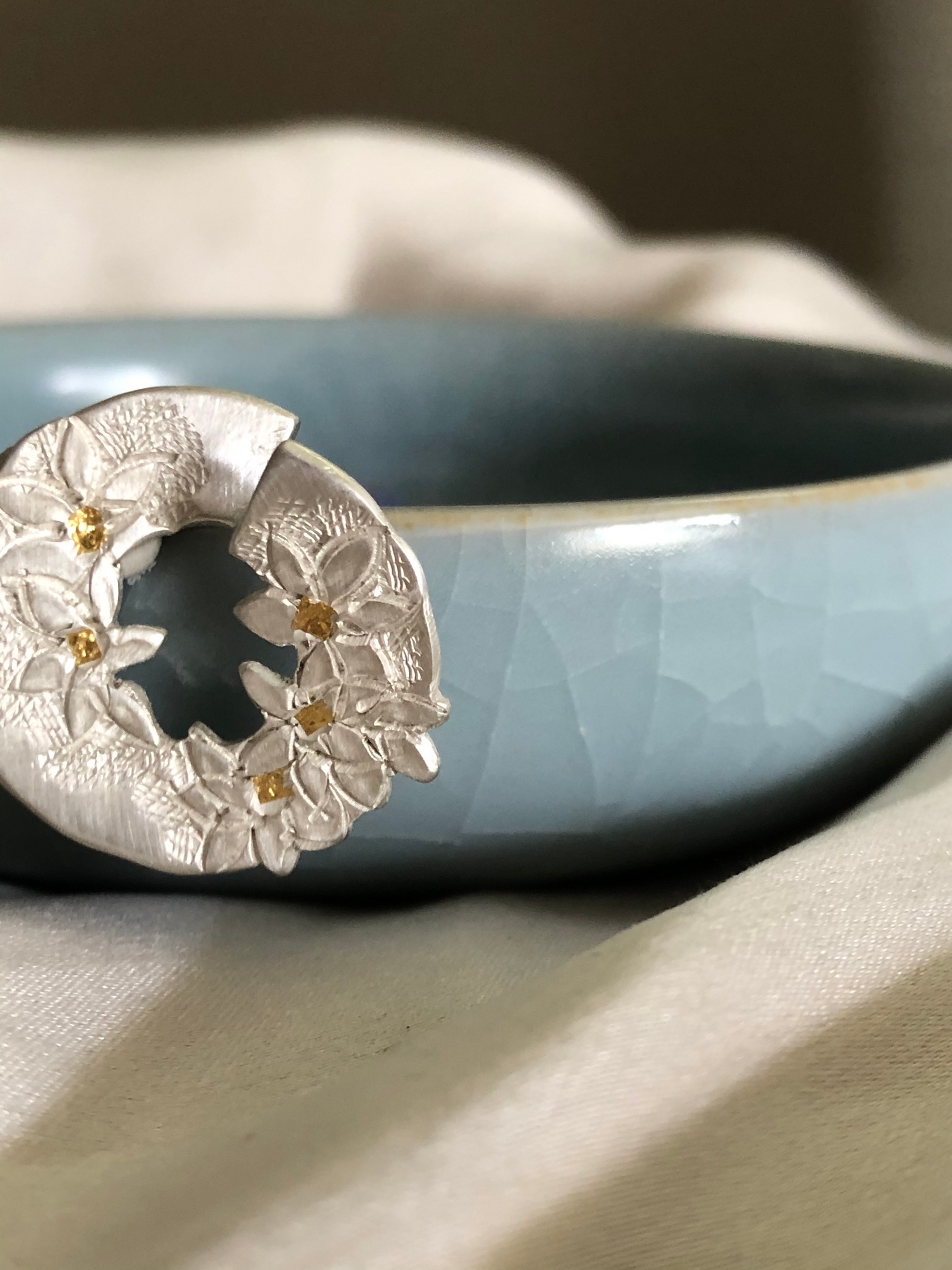 Smaller version of Peach Blossom 003, free hand drawings , traditional Tibetan silver skill used on this design, which only hand tools used for the skill .