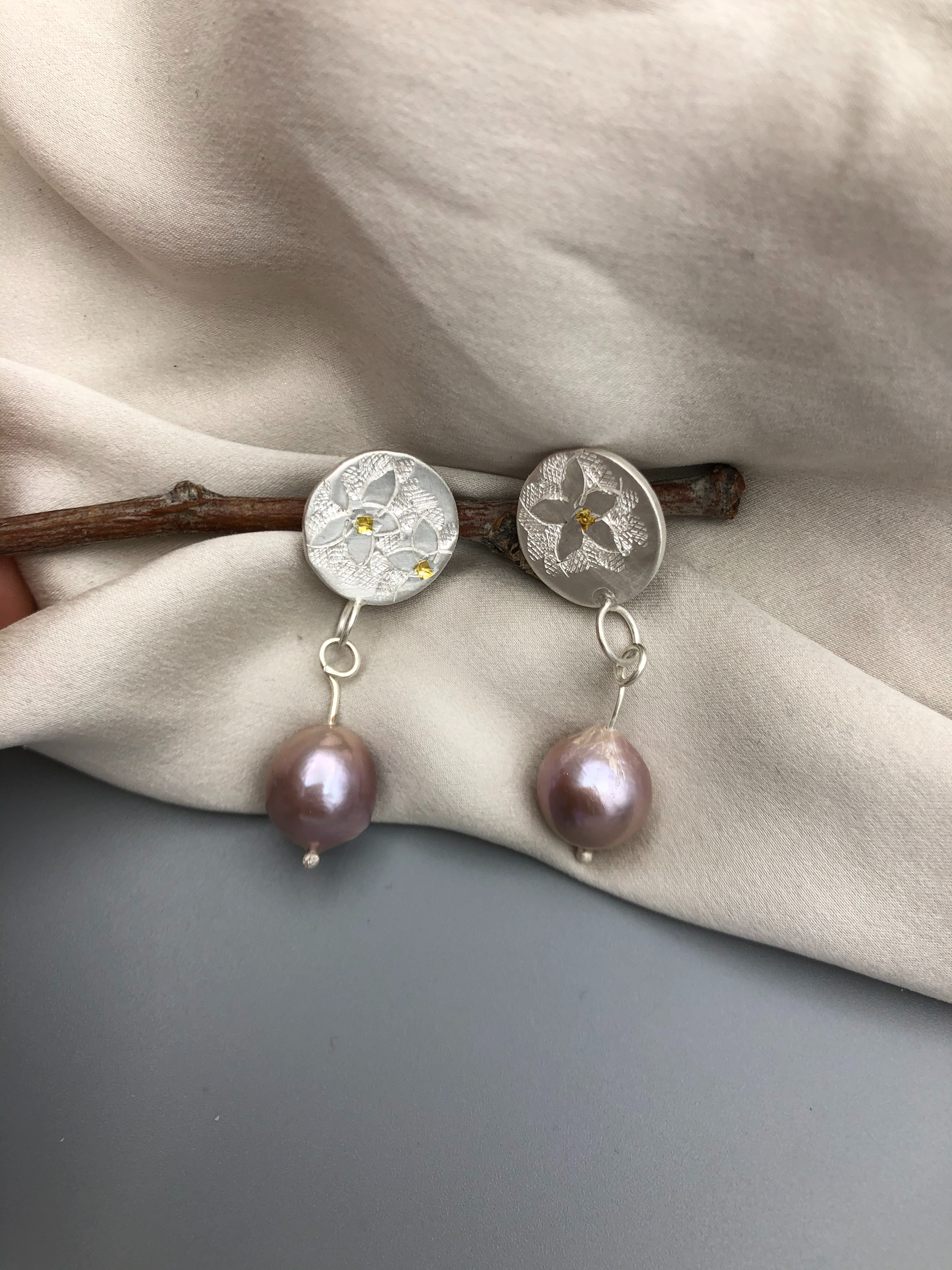 Materials : Fine silver , fine gold ( kumboo), fresh water pearl