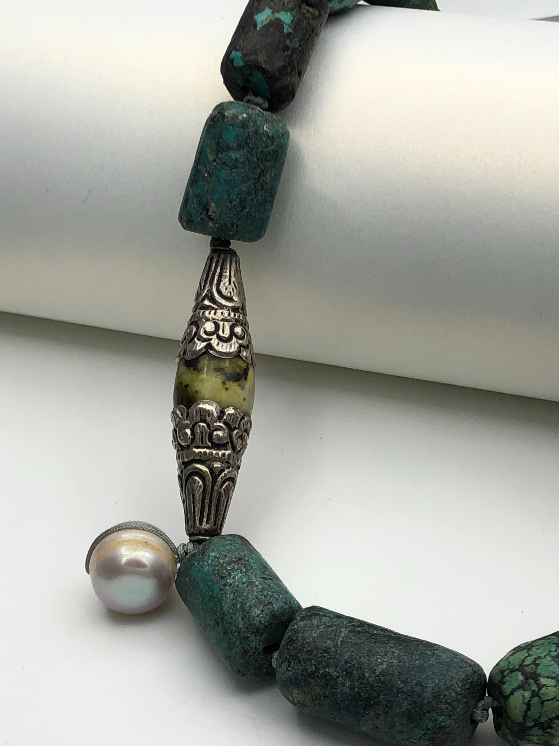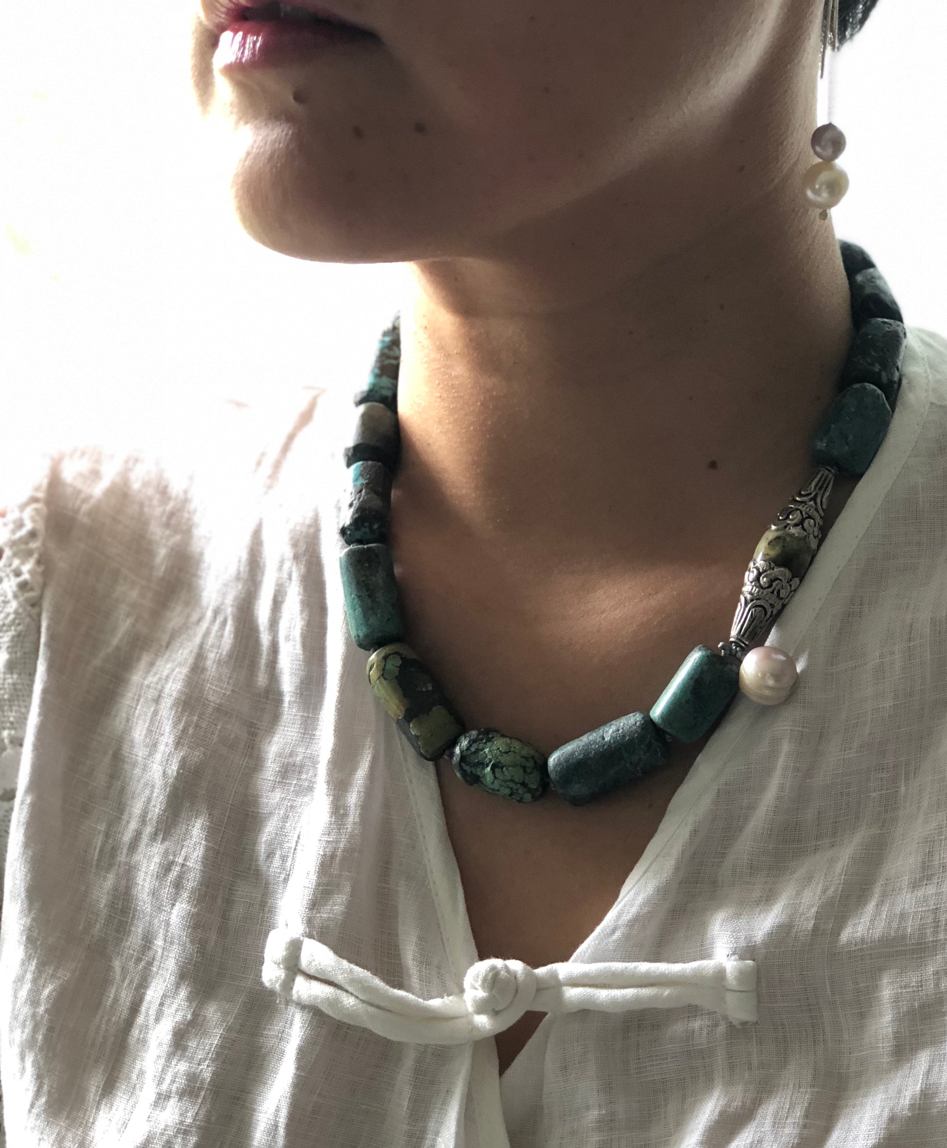 Materials : Tequoise, Tibetan pendent, fresh water pearl