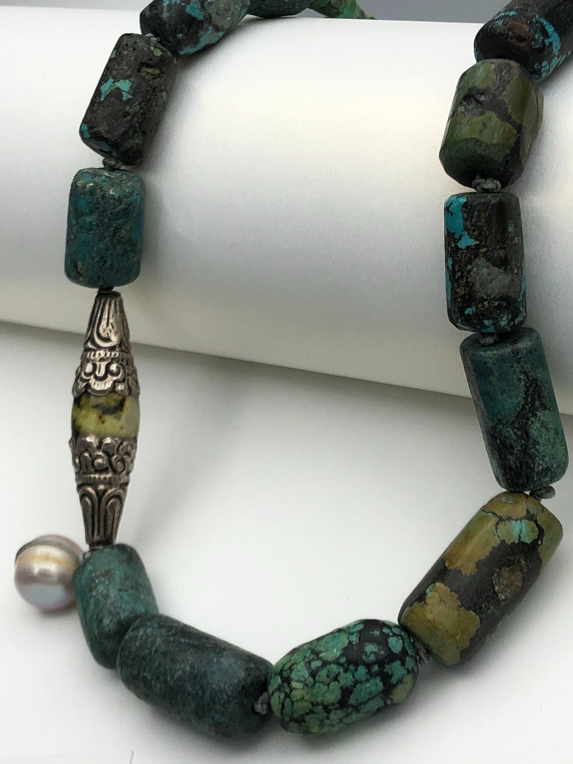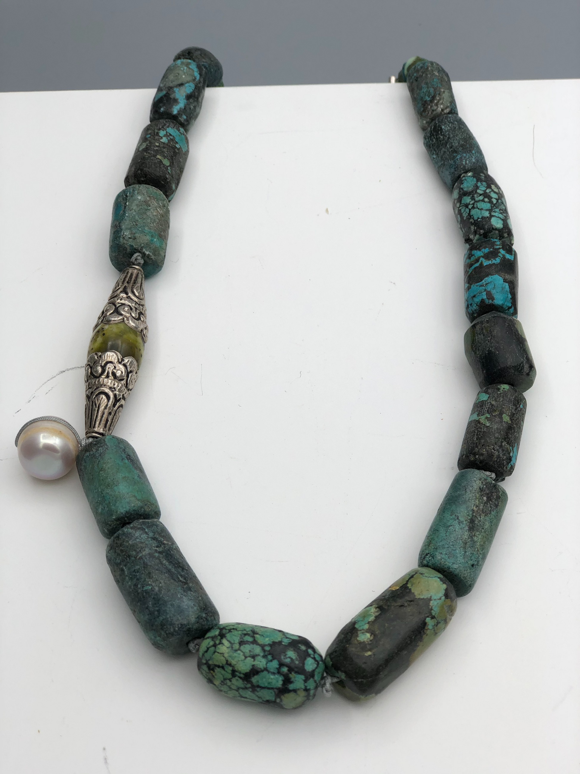 Old tequoise beads with Tibetan pendent, this one piece is simple but very classic .