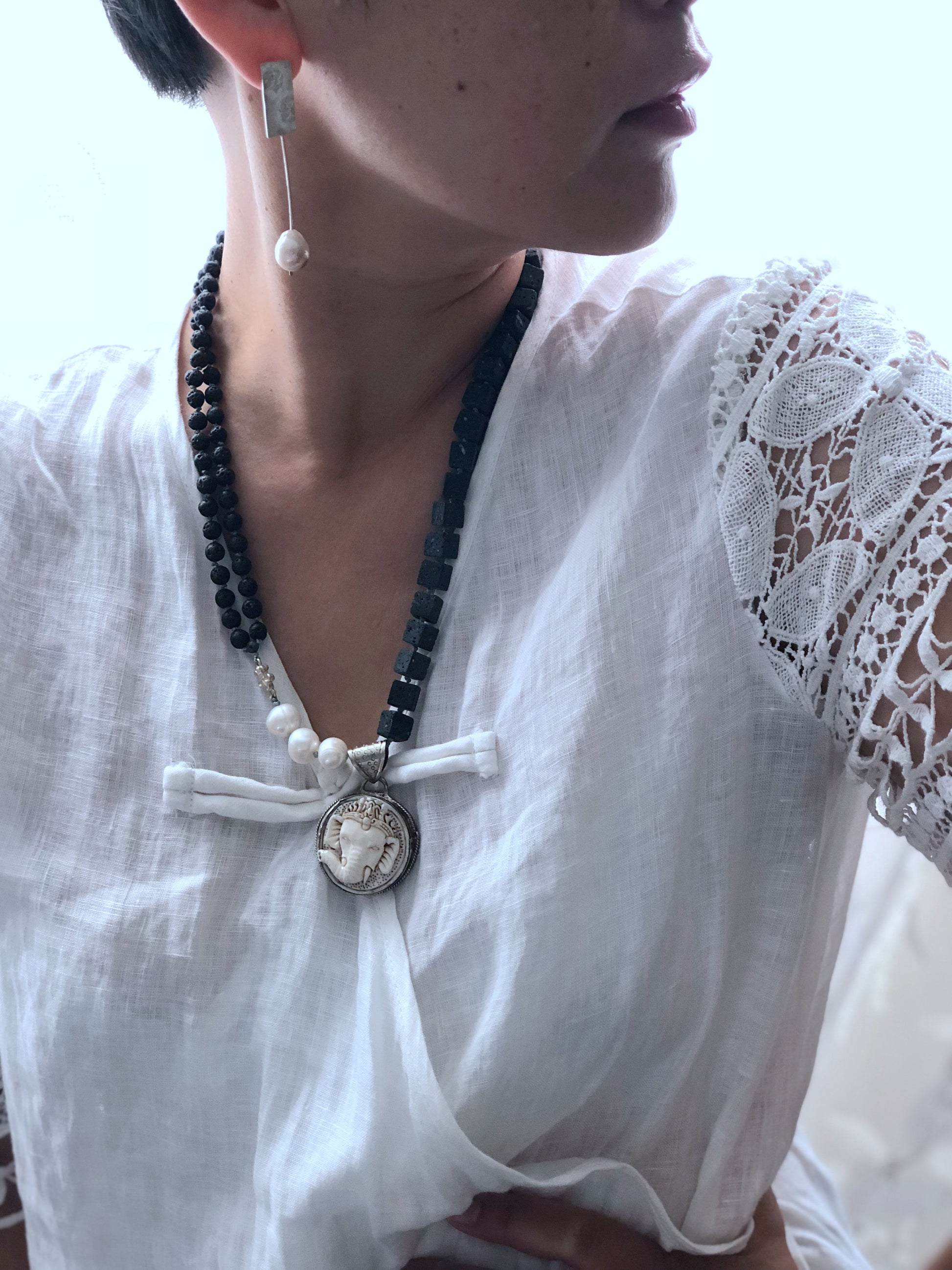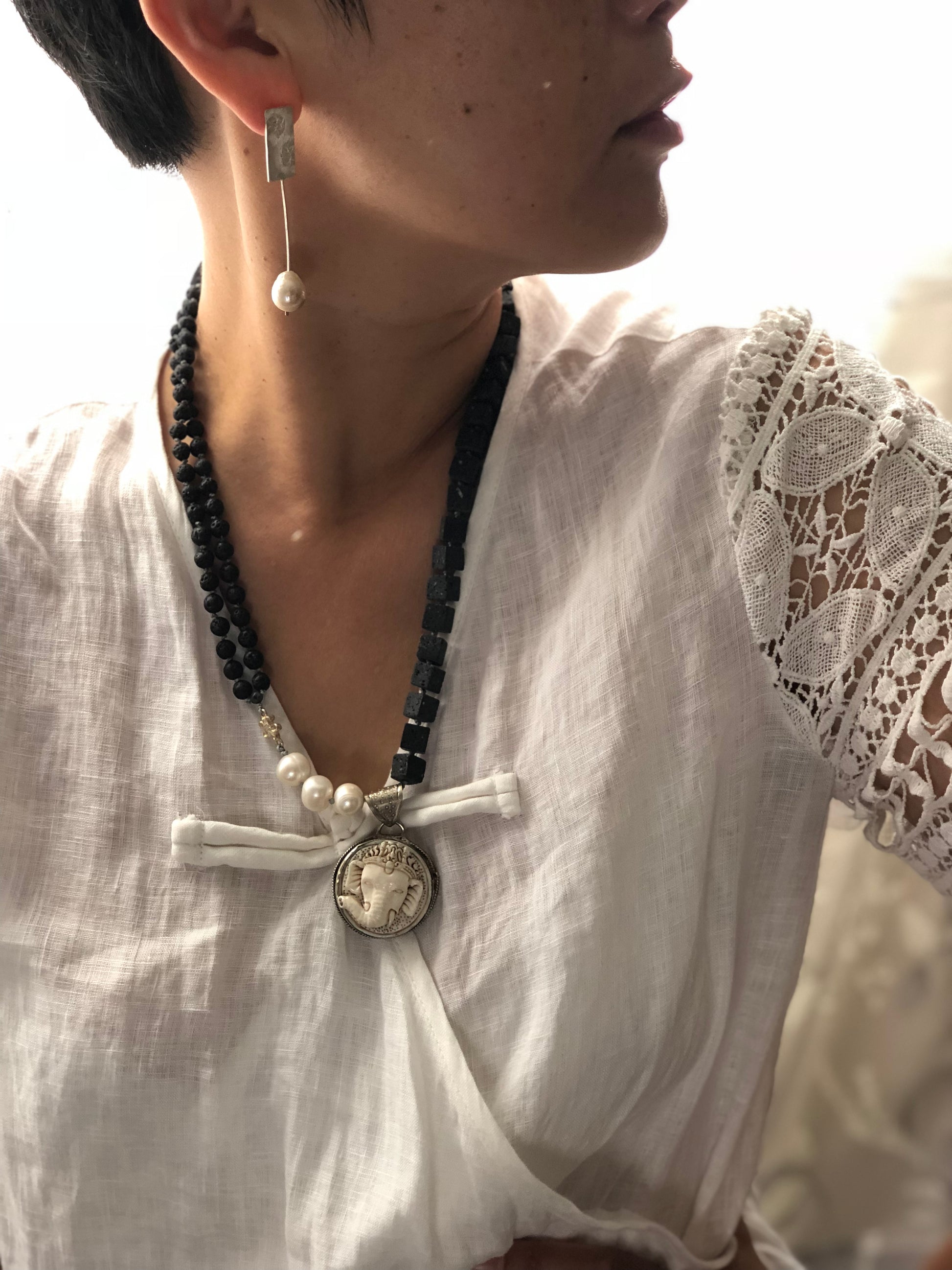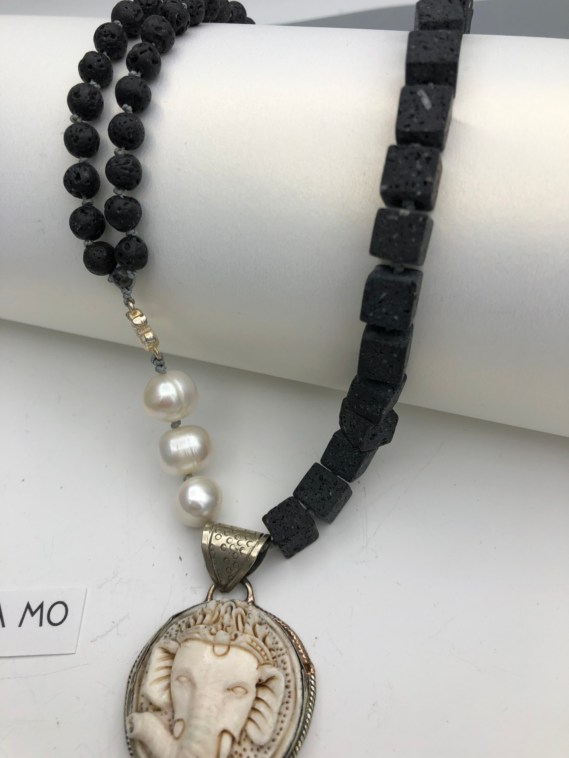 Materials : Lava rock, fresh water pearl, elephant pendent