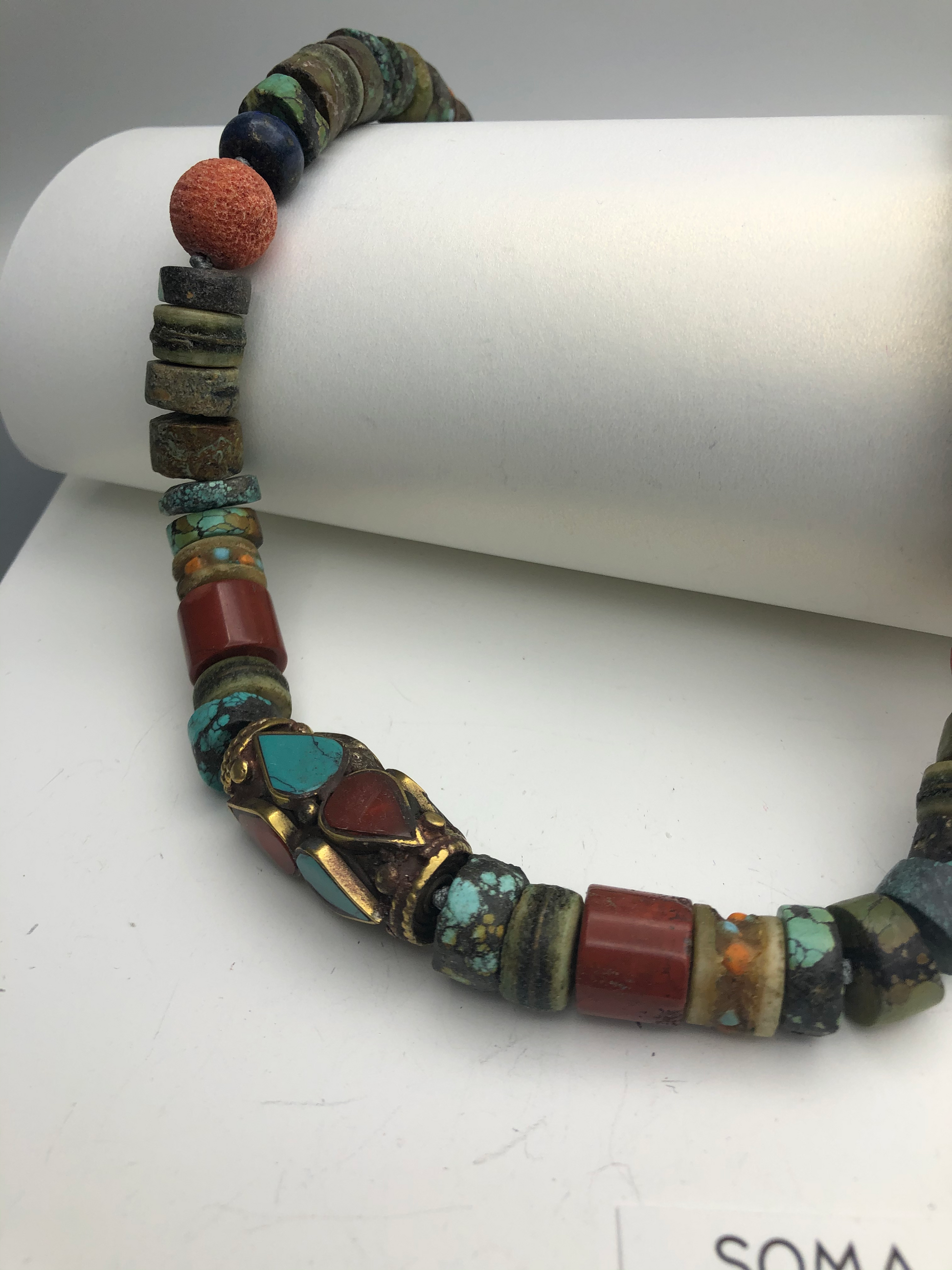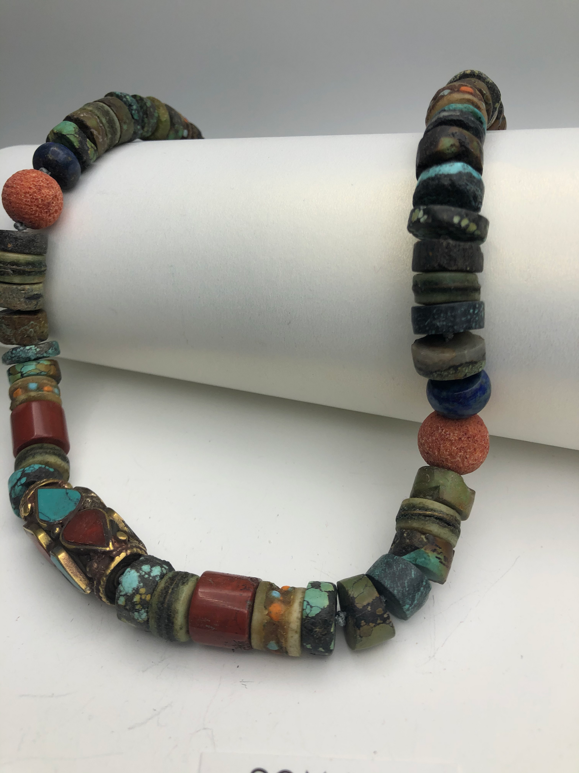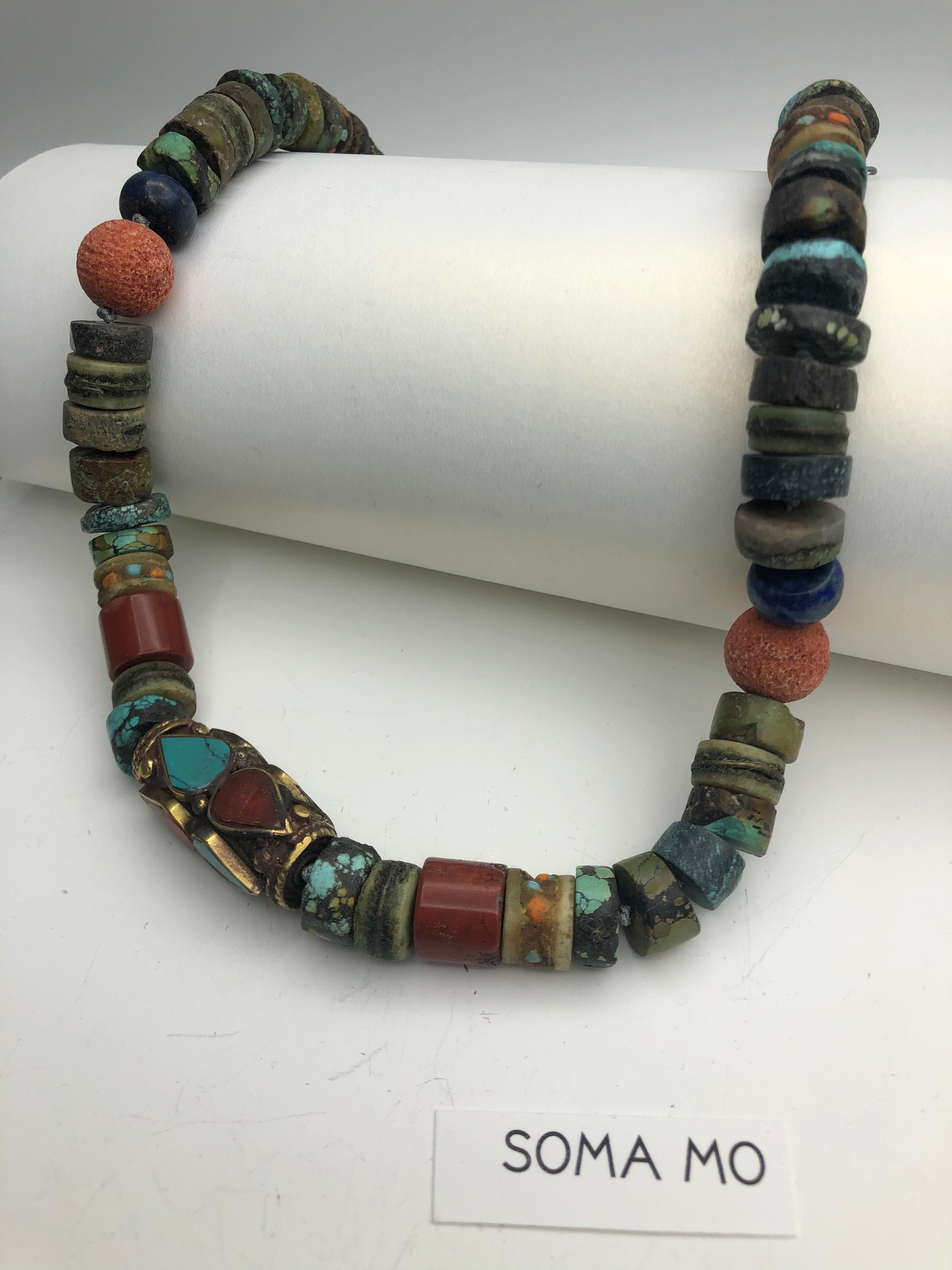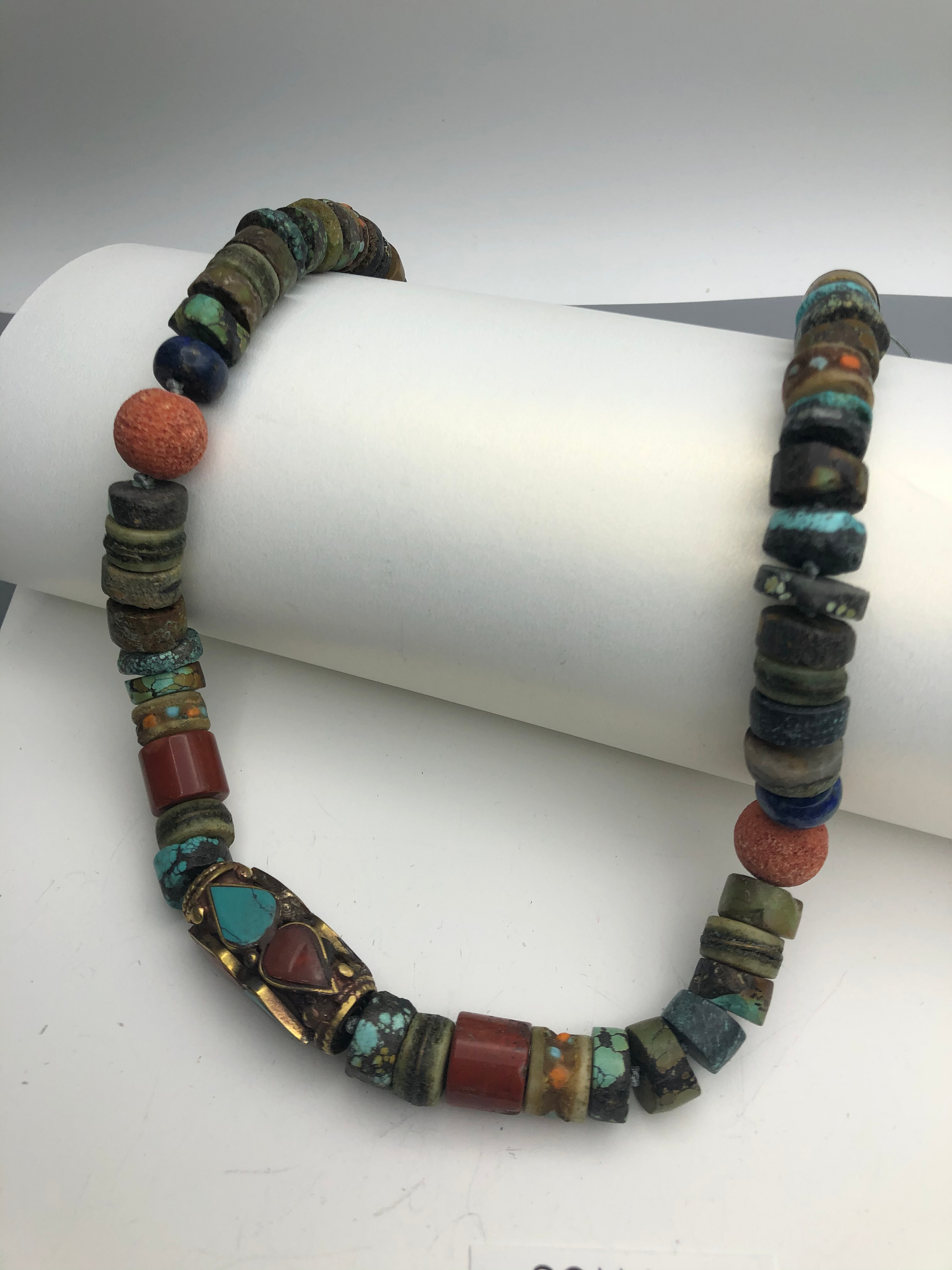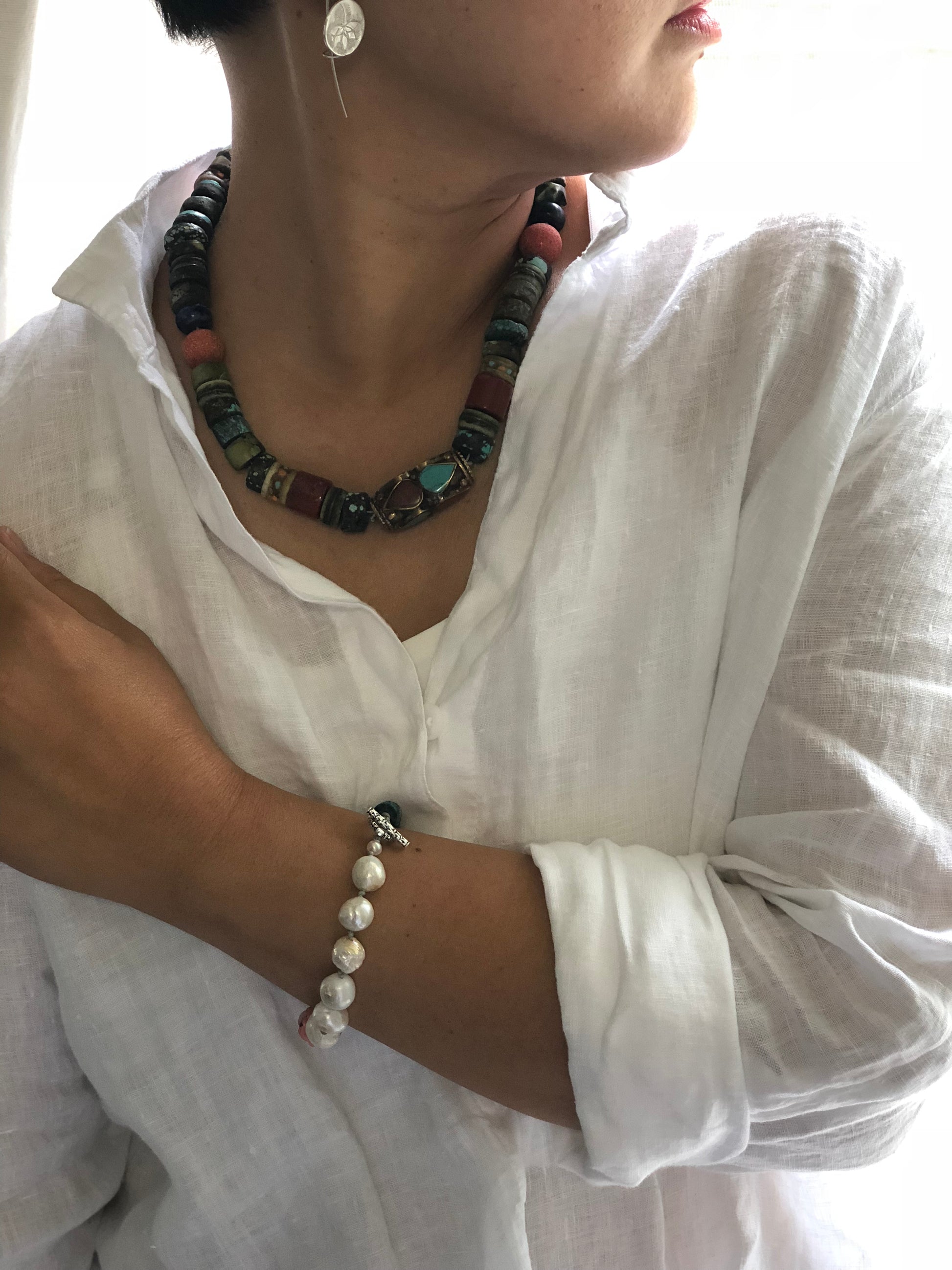 Materials : Turquoise, coral, old Tibetan prayer beads