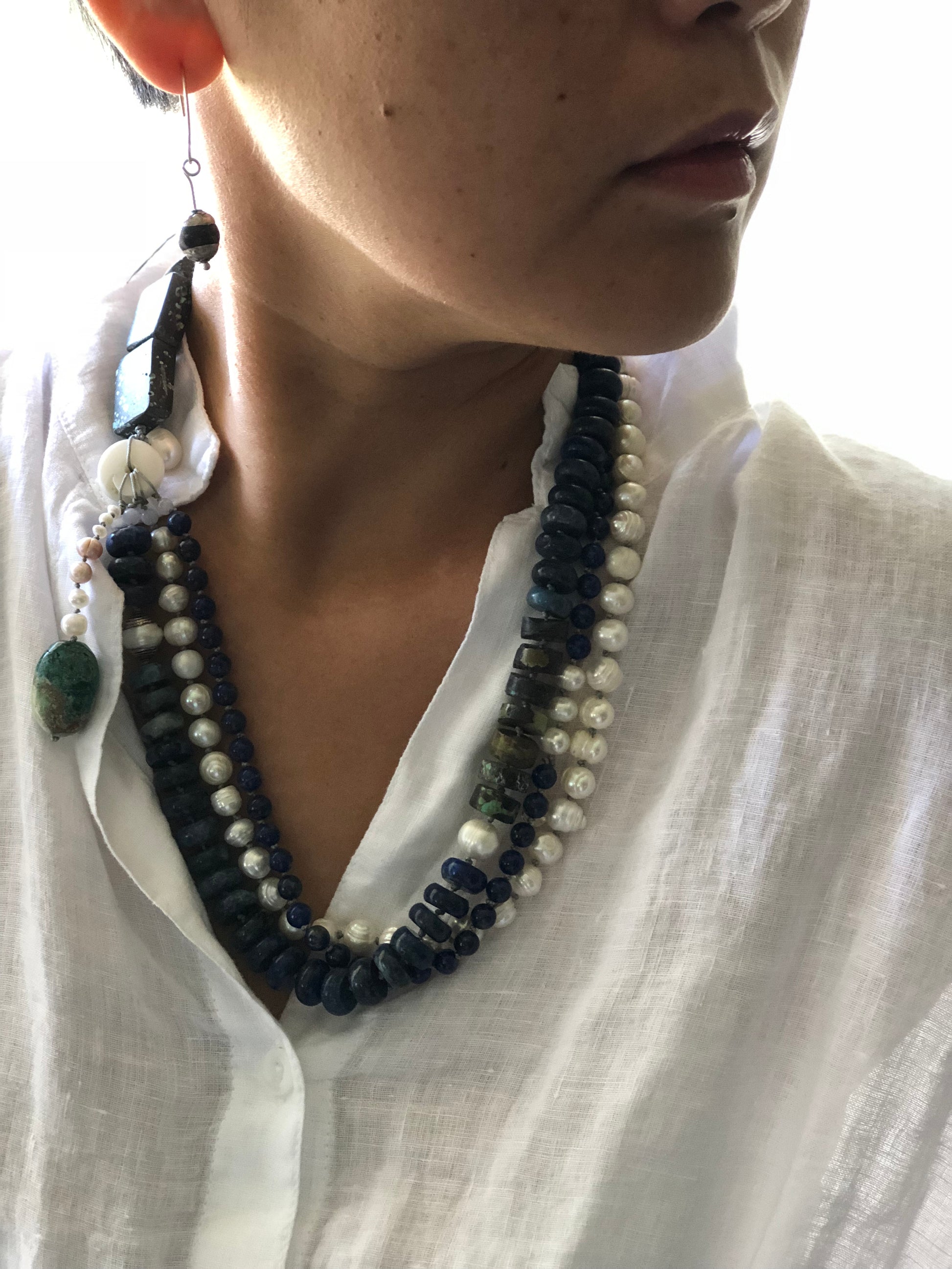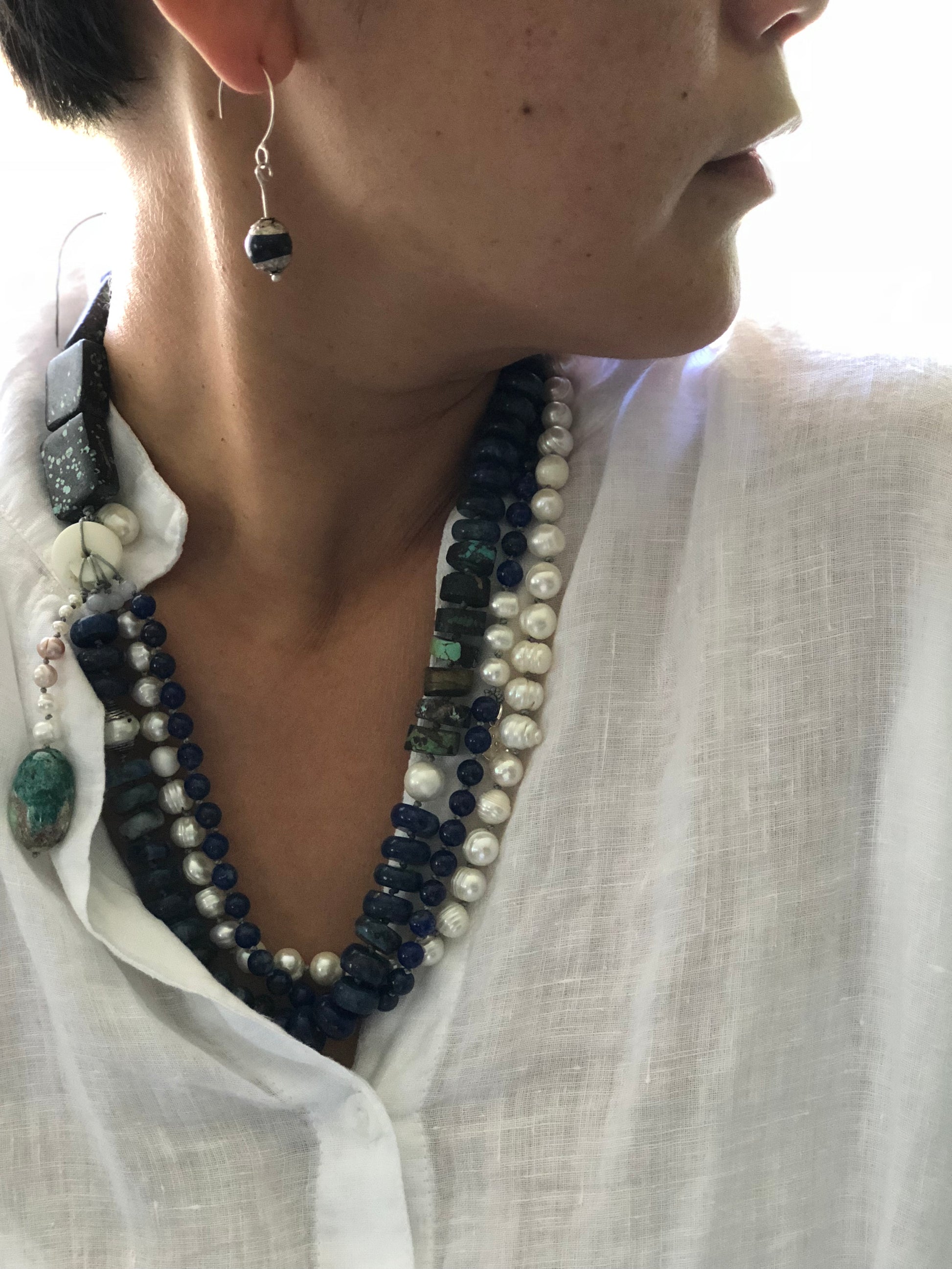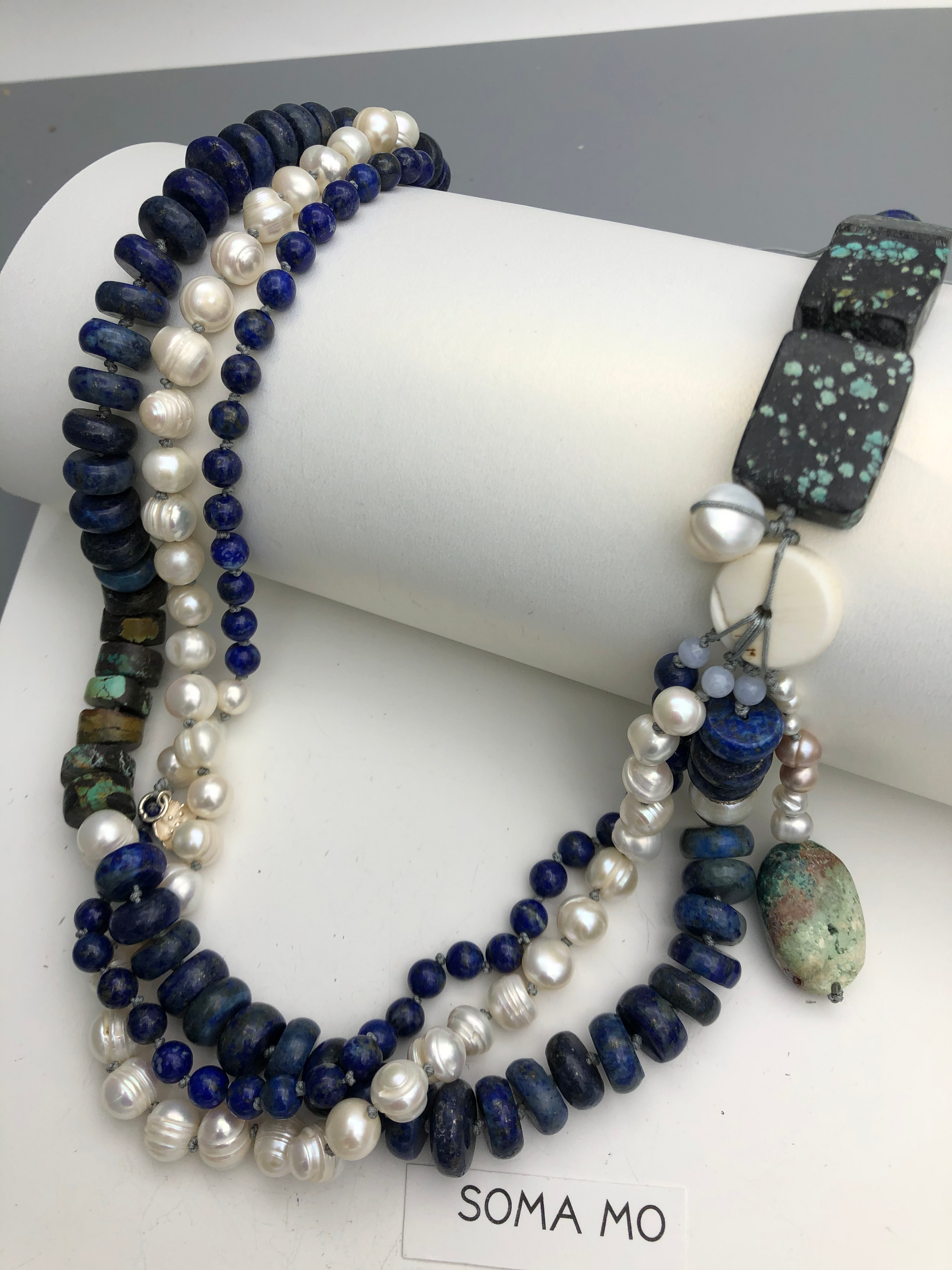 Materials : Lapis, turquoise, fresh water pearl, silver