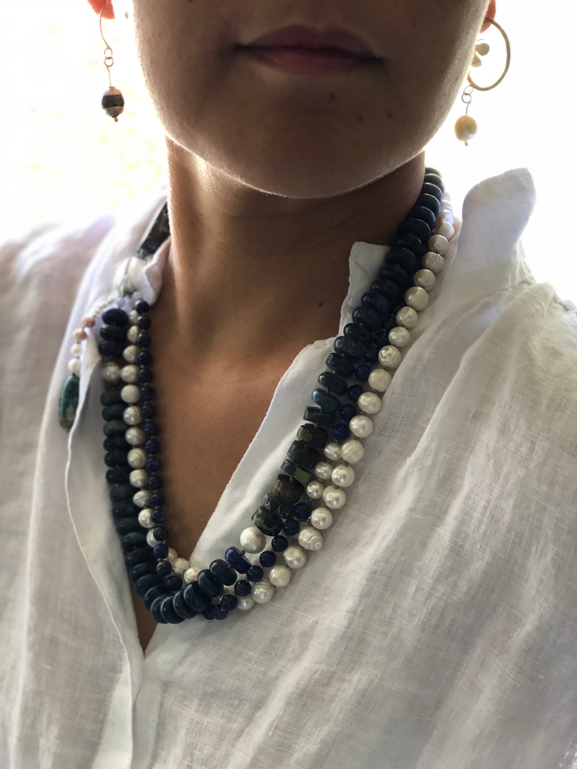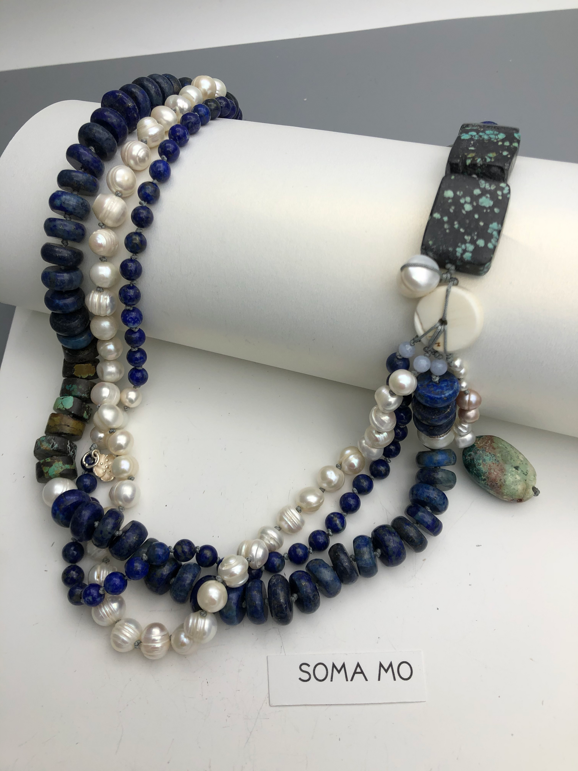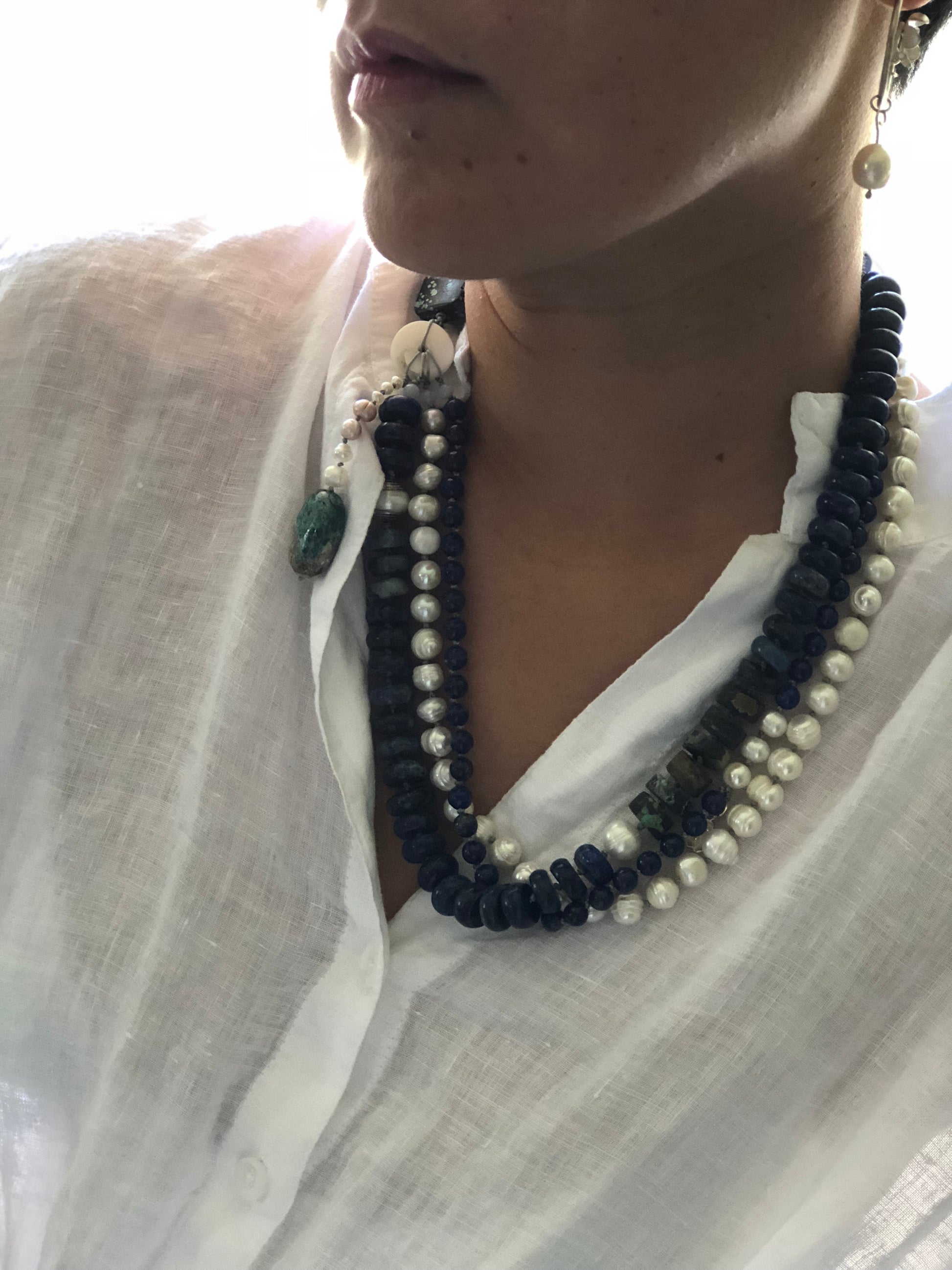 Materials : Lapis, turquoise, fresh water pearl, silver