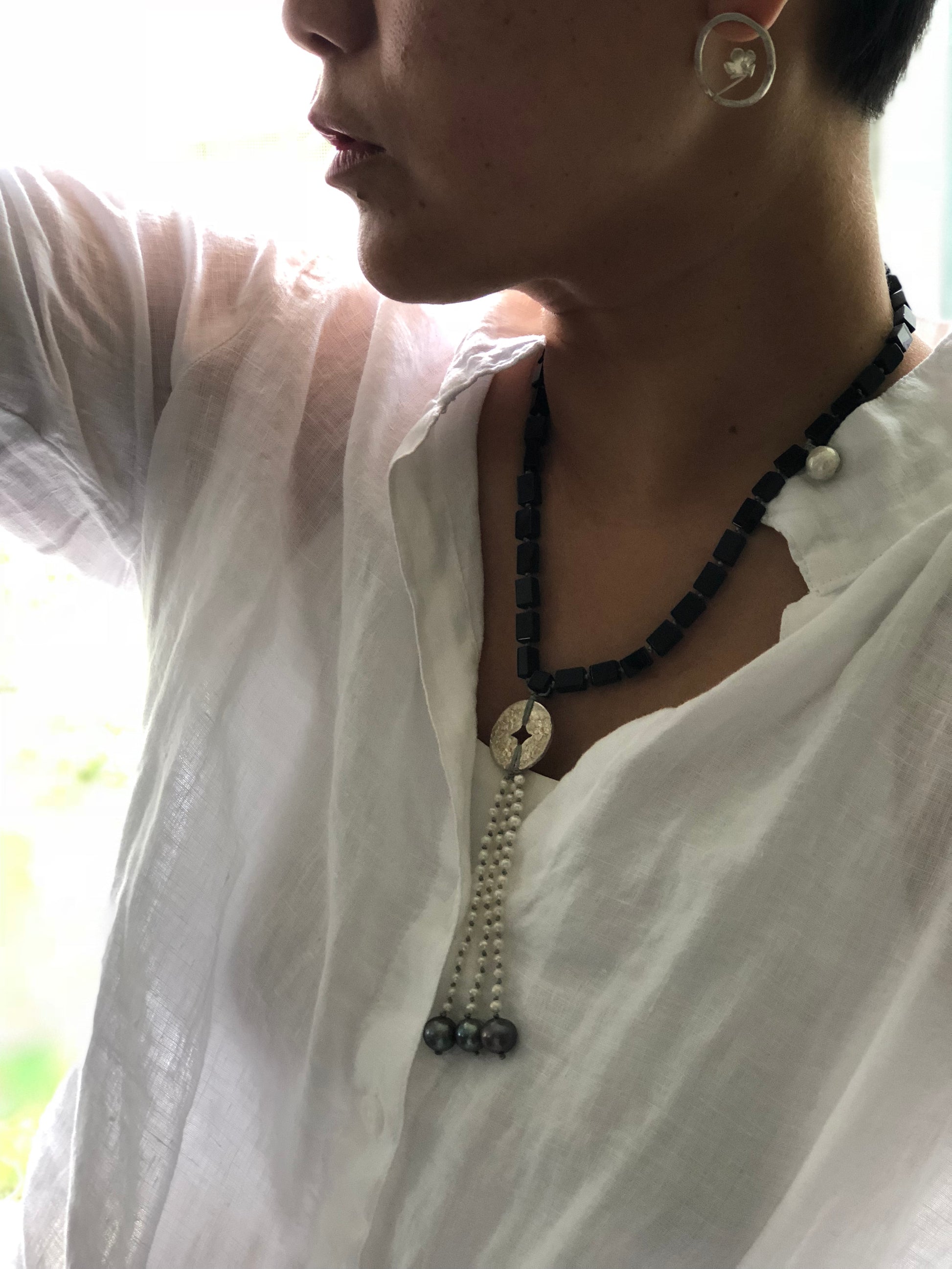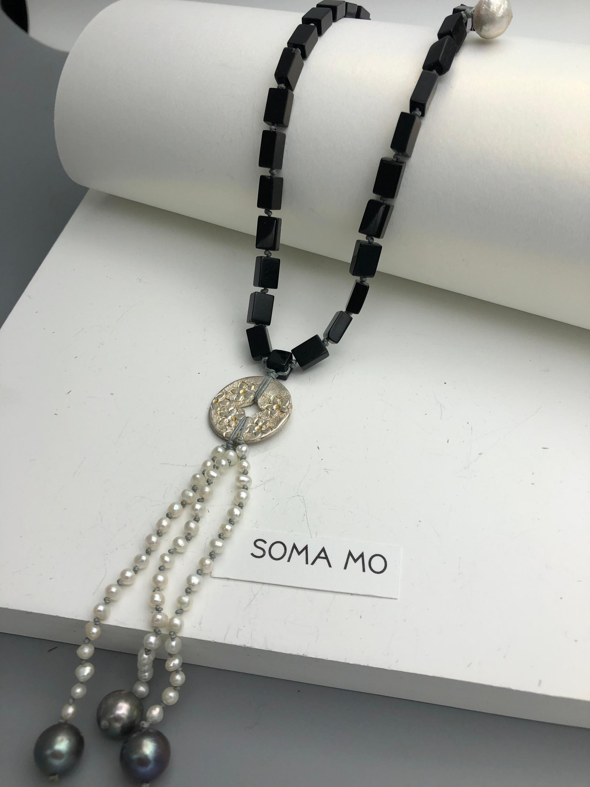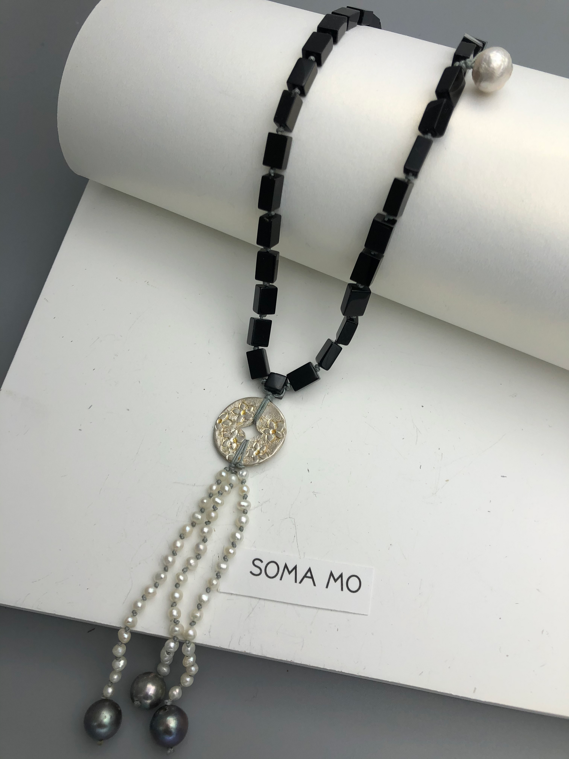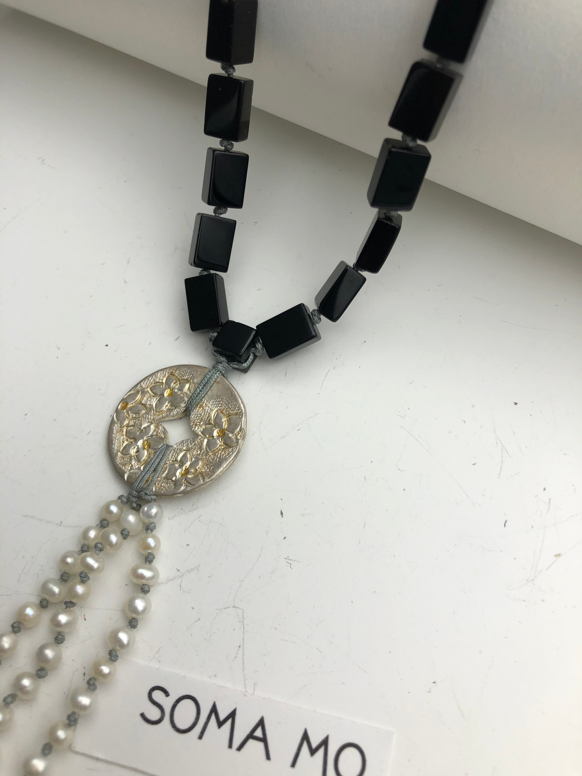 Materials : Fine silver , fine gold( kumboo), black onyx, fresh water pearl