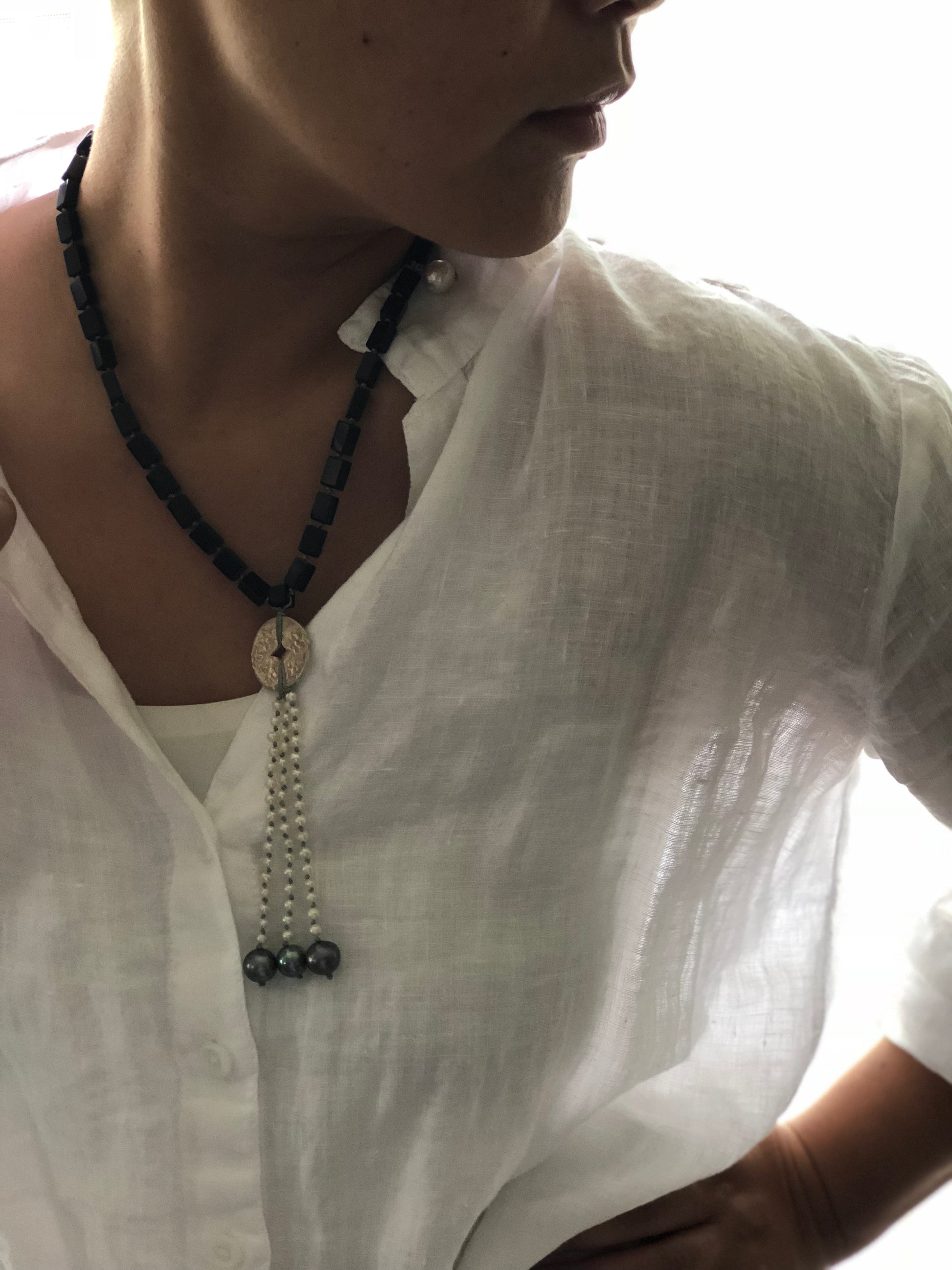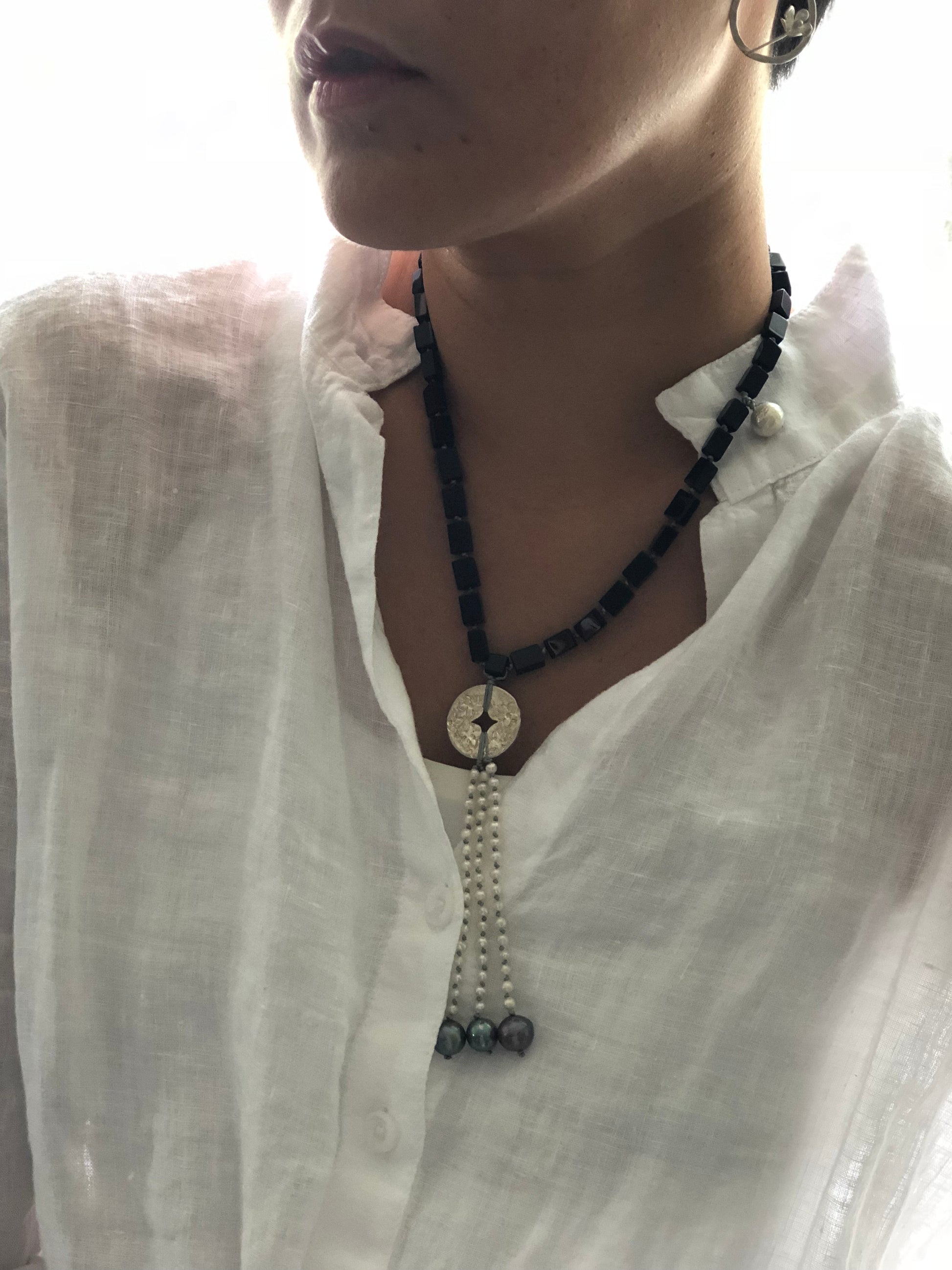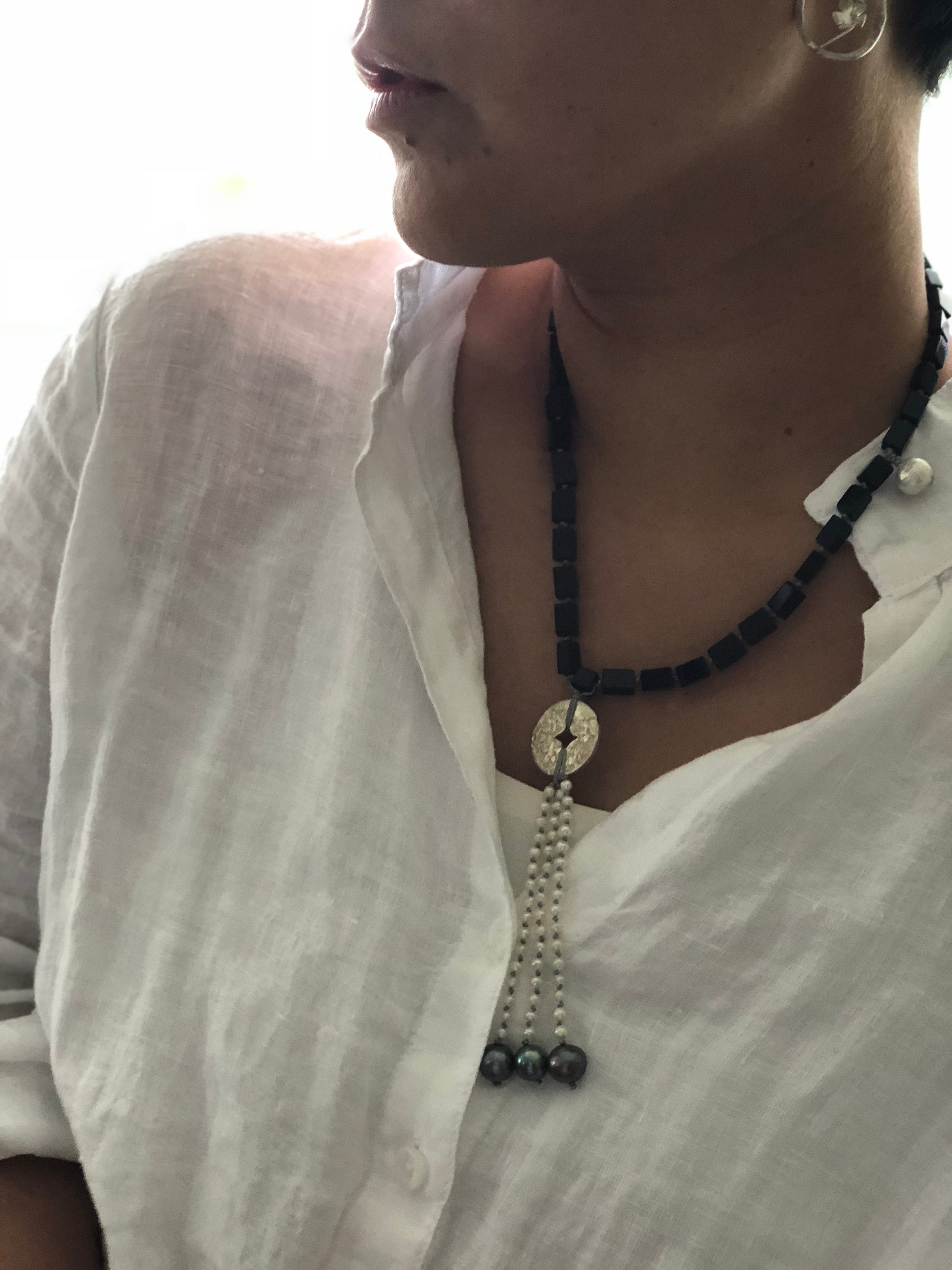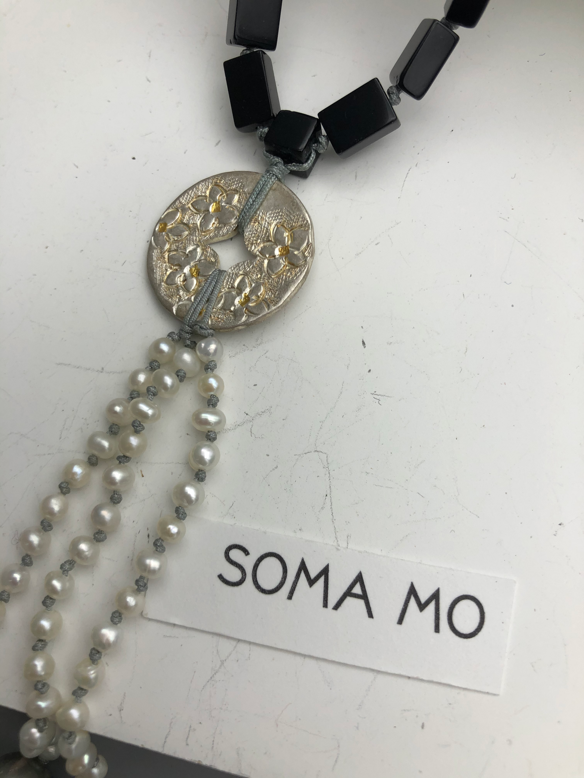 Materials : Fine silver , fine gold( kumboo), black onyx, fresh water pearl