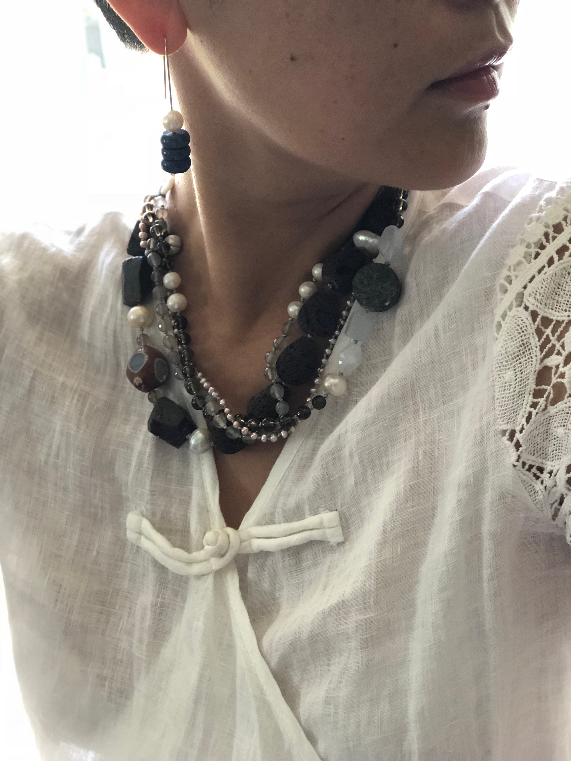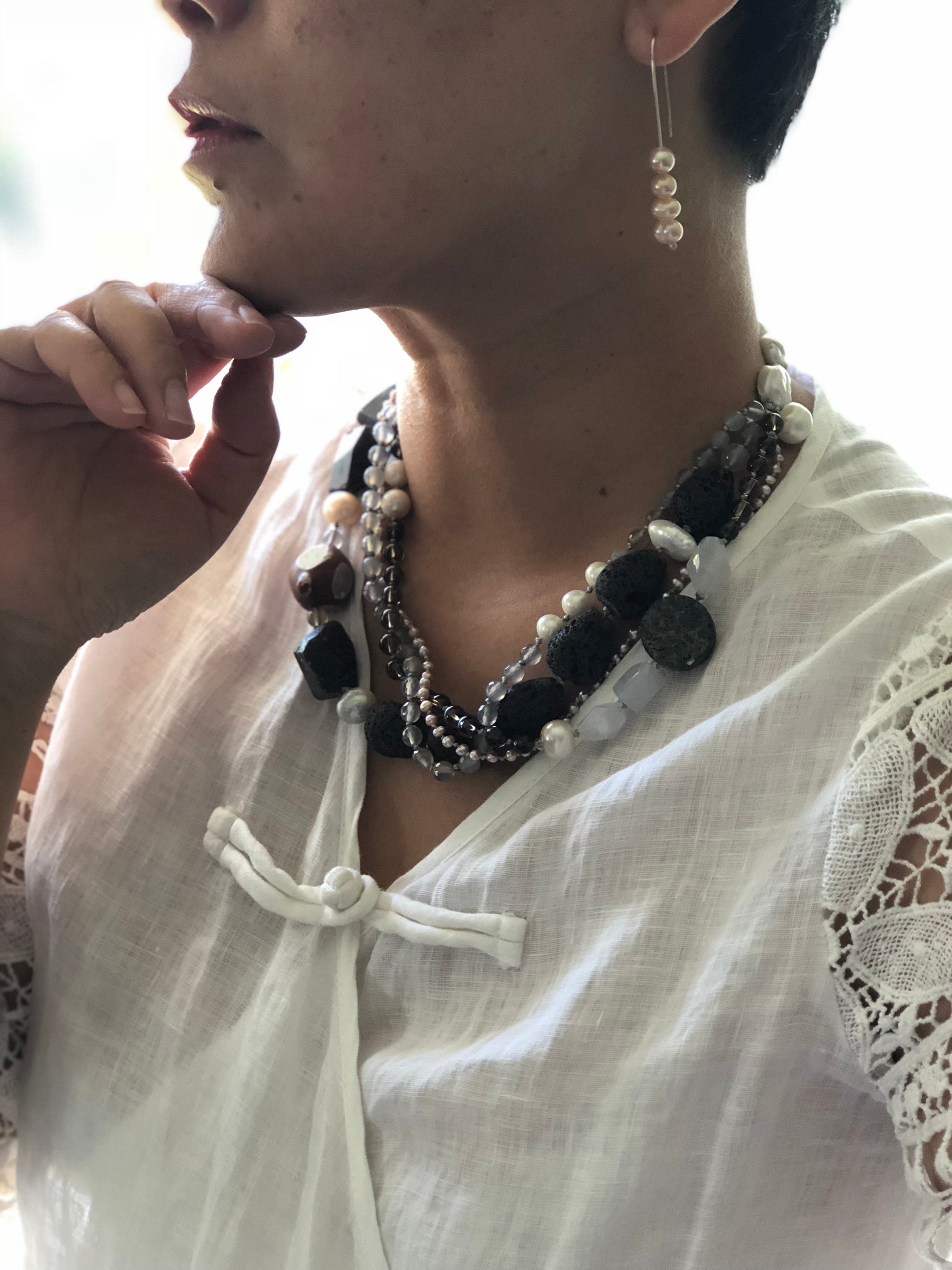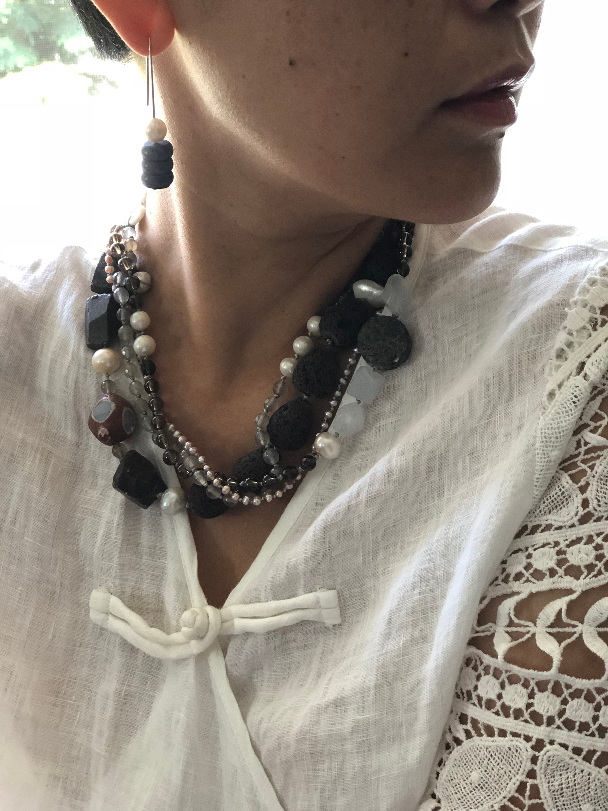 Materials : lava, agate, fresh water pearl, blue lace agate